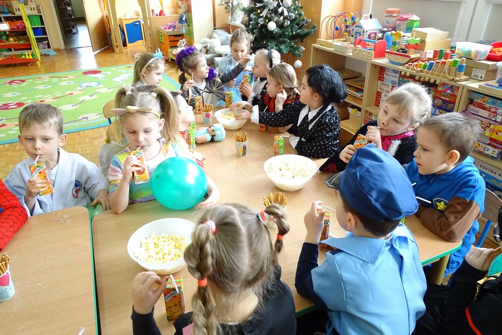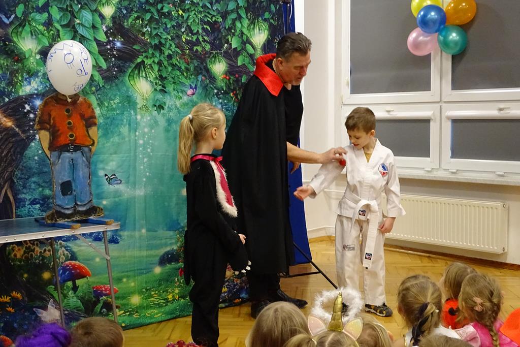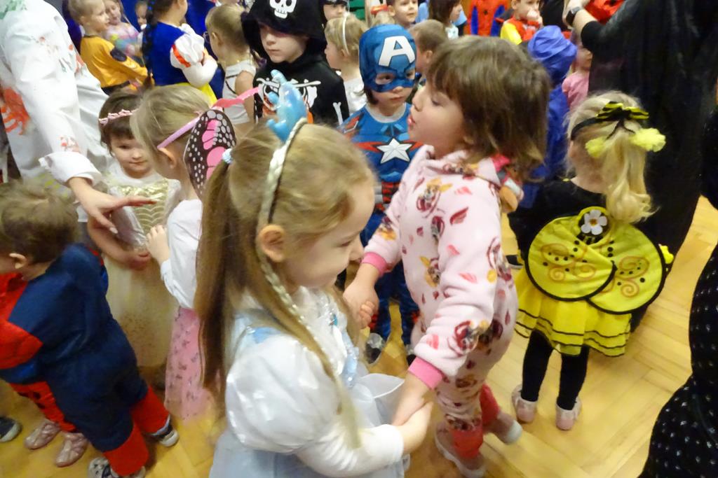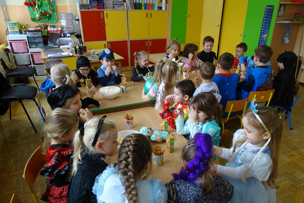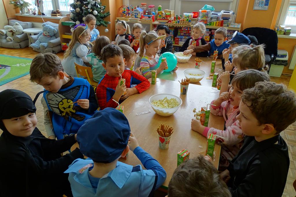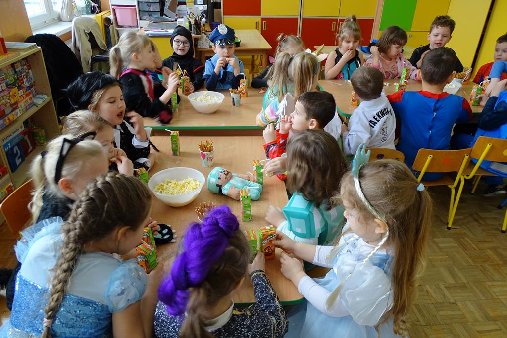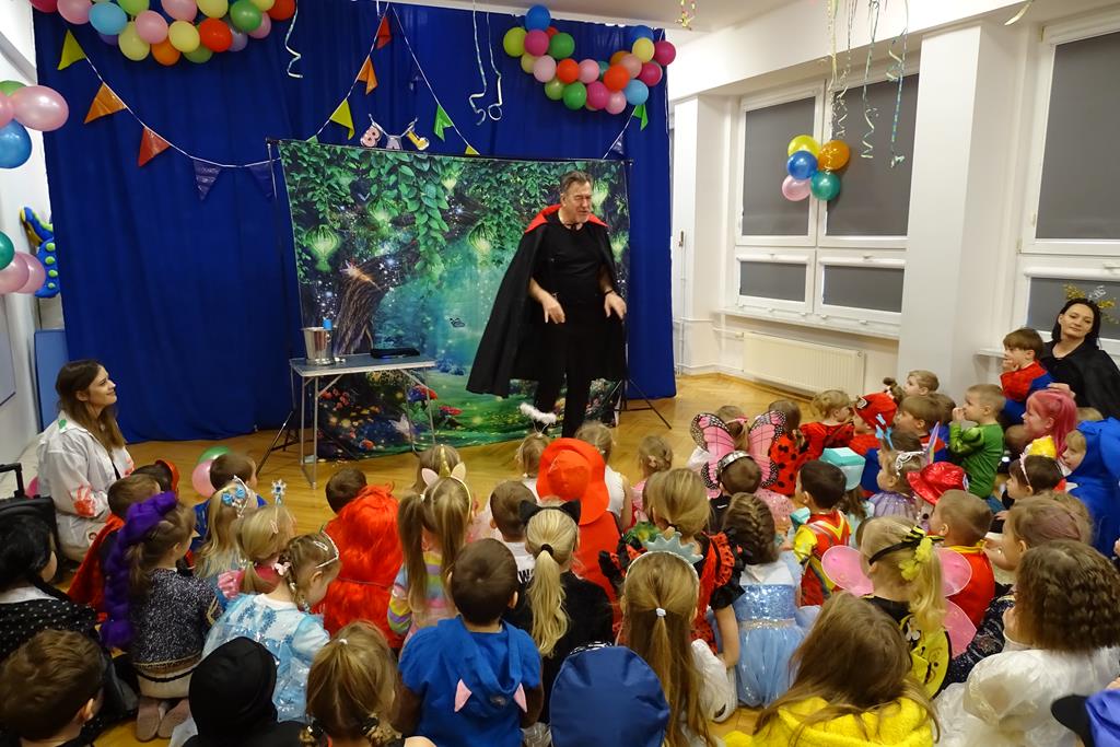Karnawałowy bal dostarczył SÓWKOM mnóstwo radości i niezapomnianych wrażeń. Mali uczestnicy bawili się przy dźwiękach muzyki, tańczyli i z dumą prezentowali swoje kolorowe, bajkowe przebrania. Ogromną niespodzianką była wizyta magika, który swoimi niezwykłymi trikami oczarował wszystkich, wywołując salwy śmiechu i zachwytu. Nie zabrakło również smacznego poczęstunku. Był to wyjątkowy dzień pełen emocji i magii.