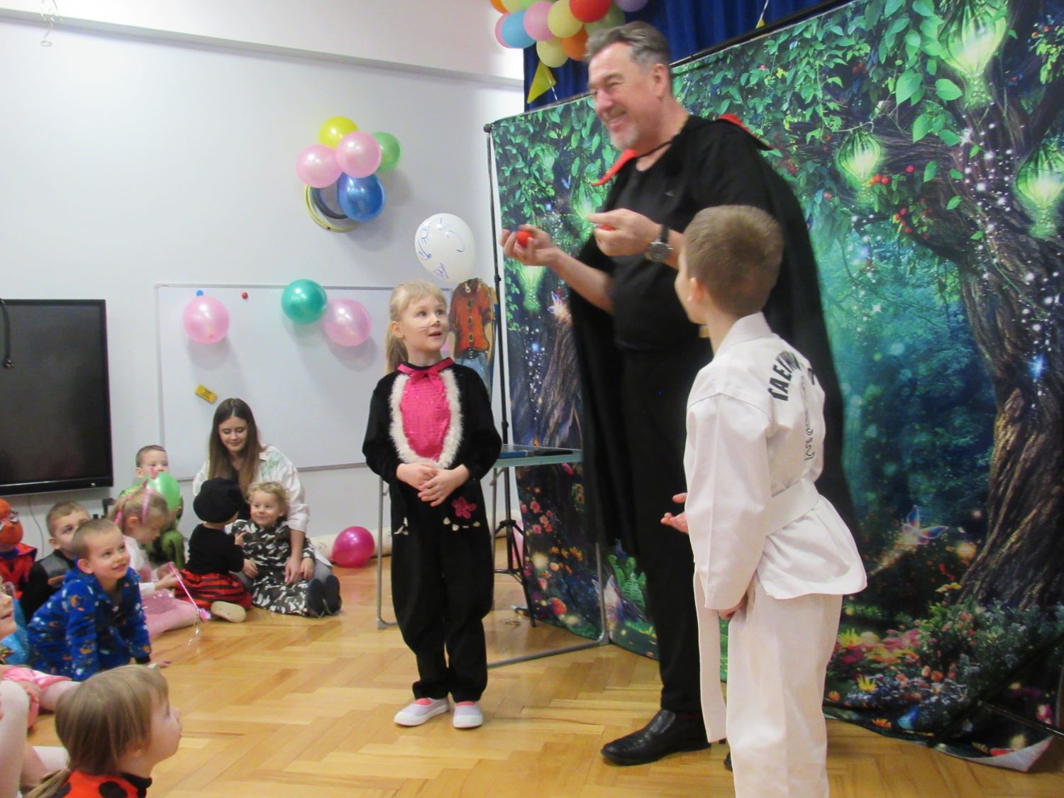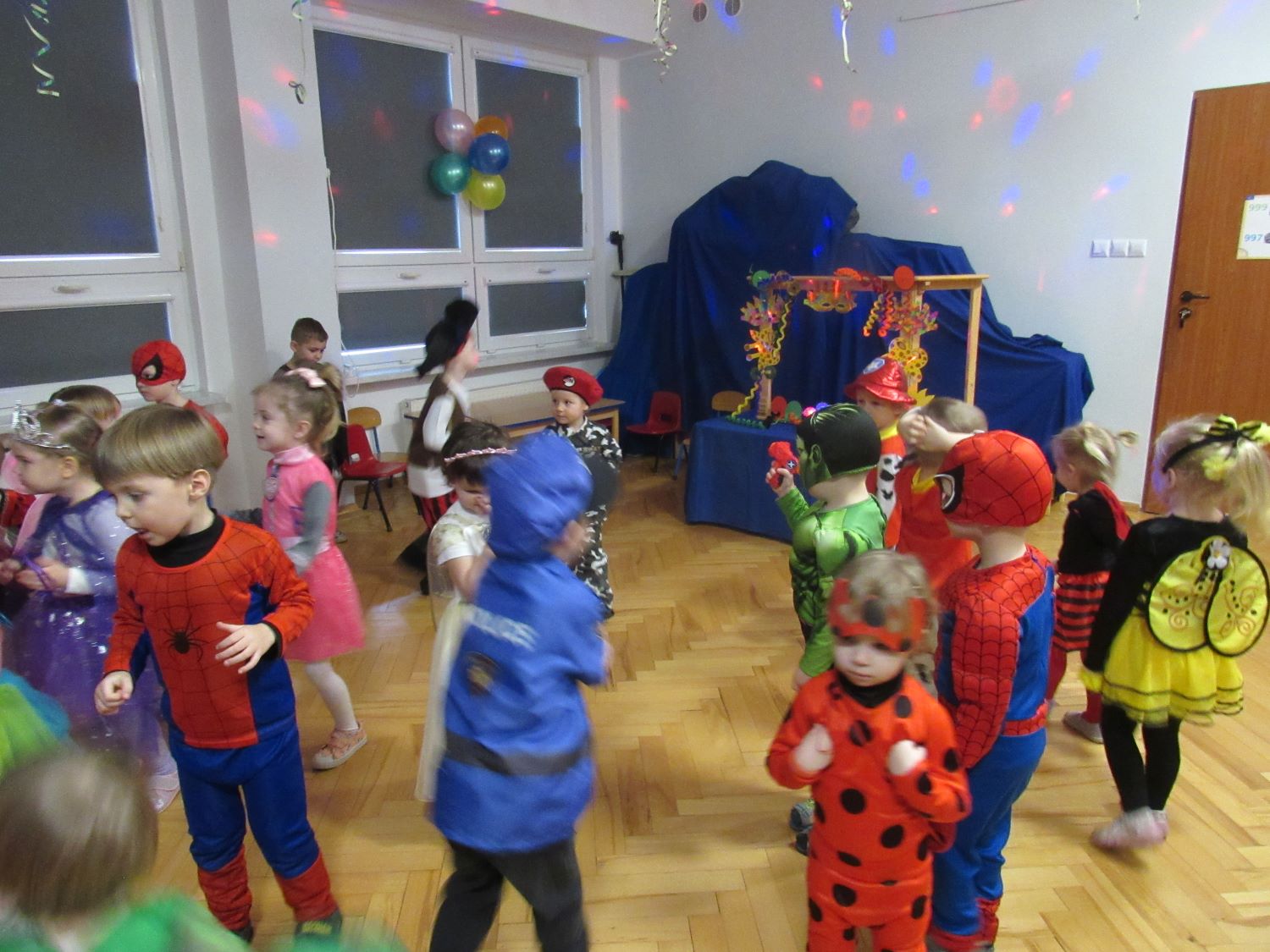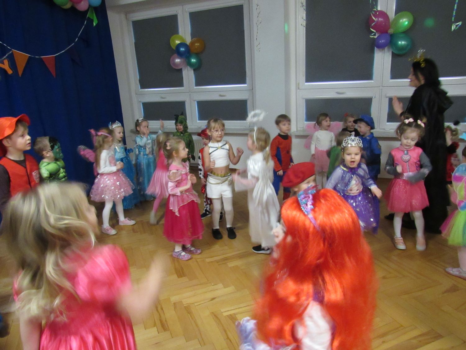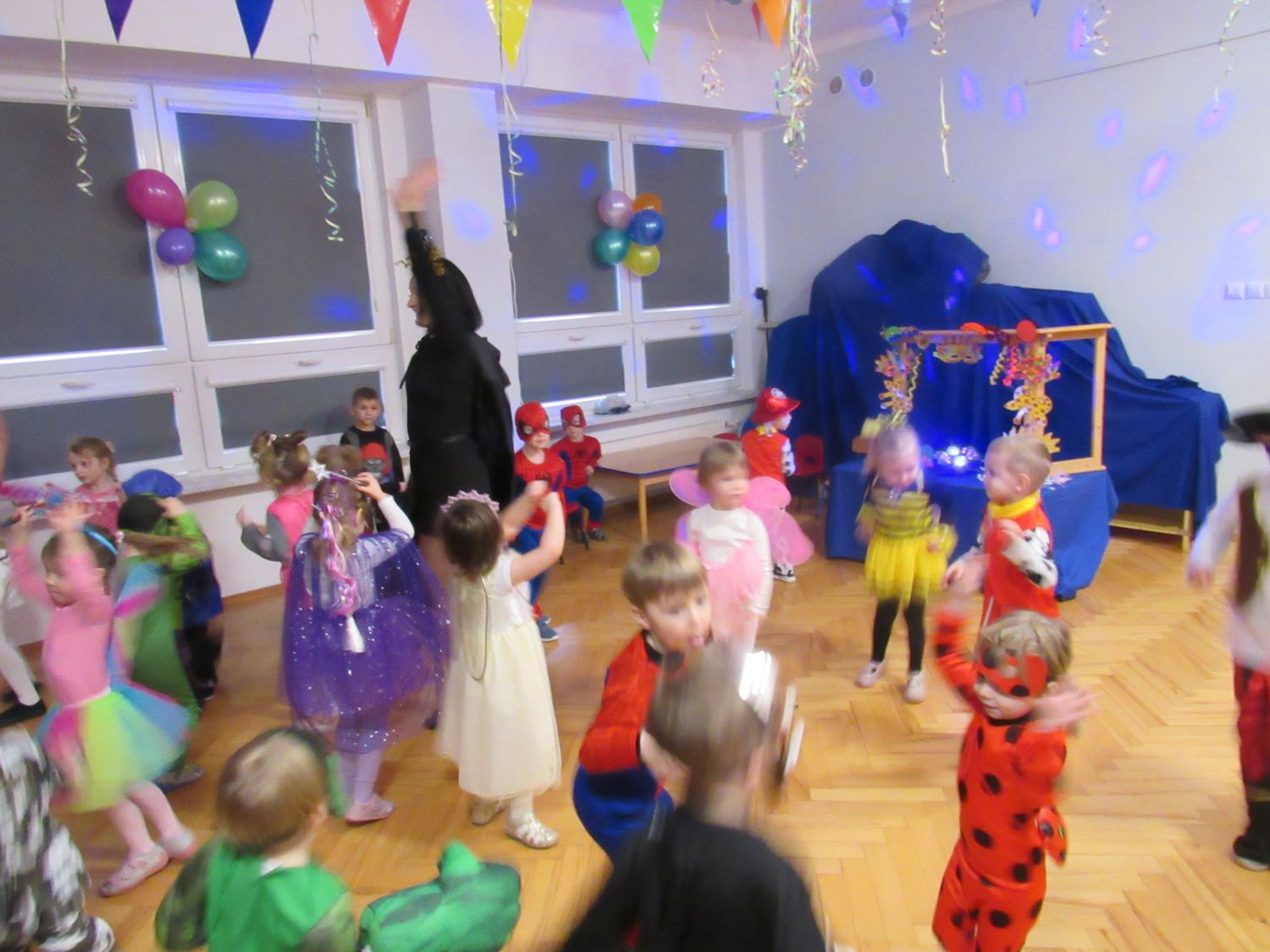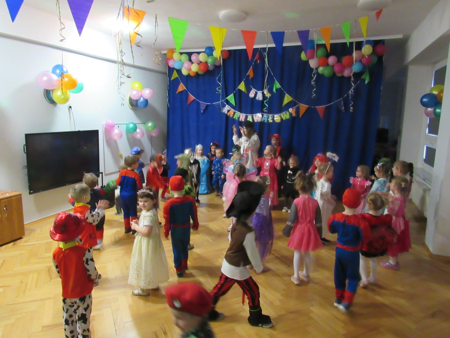 W przedszkolu odbył się wspaniały bal karnawałowy. Już od samego rana dzieci przychodziły do przedszkola w kolorowych i pomysłowych strojach karnawałowych. Wszyscy z radością prezentowali swoje przebrania i z uśmiechem na twarzach brali udział we wspólnej zabawie. Dzieci bawiły się i tańczyły przy wesołej muzyce na pięknie przystrojonej sali gimnastycznej. Nie zabrakło również pamiątkowych zdjęć, które uwieczniły te wyjątkowe chwile. Po wesołych tańcach na dzieci czekał poczęstunek – popcorn, galaretka oraz soczki. Dodatkową atrakcją była wizyta magika – pana Macieja, który swoimi niezwykłymi sztuczkami zachwycił wszystkie dzieci i wywołał wiele uśmiechów oraz radości. Bal karnawałowy dostarczył wszystkim wielu radosnych emocji i na długo pozostanie w pamięci przedszkolaków.
