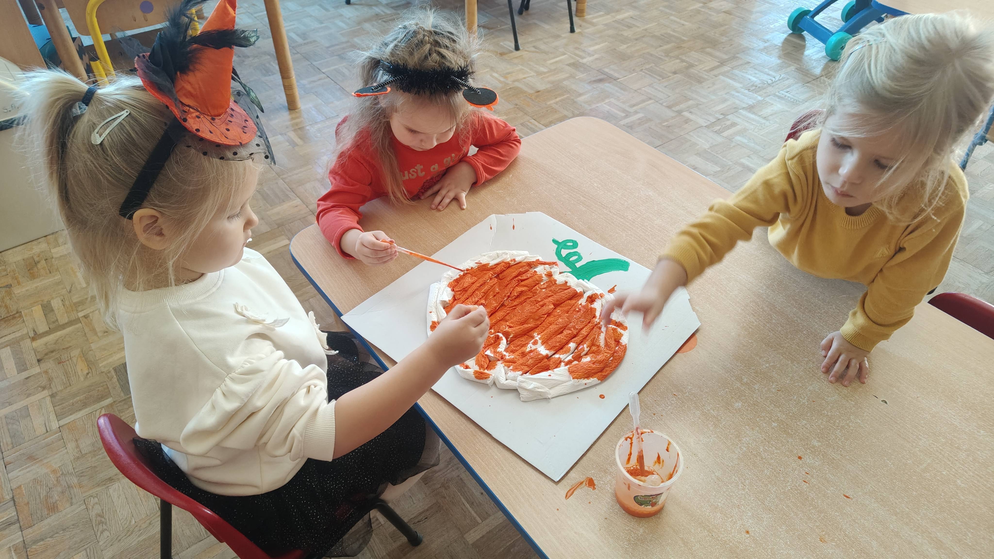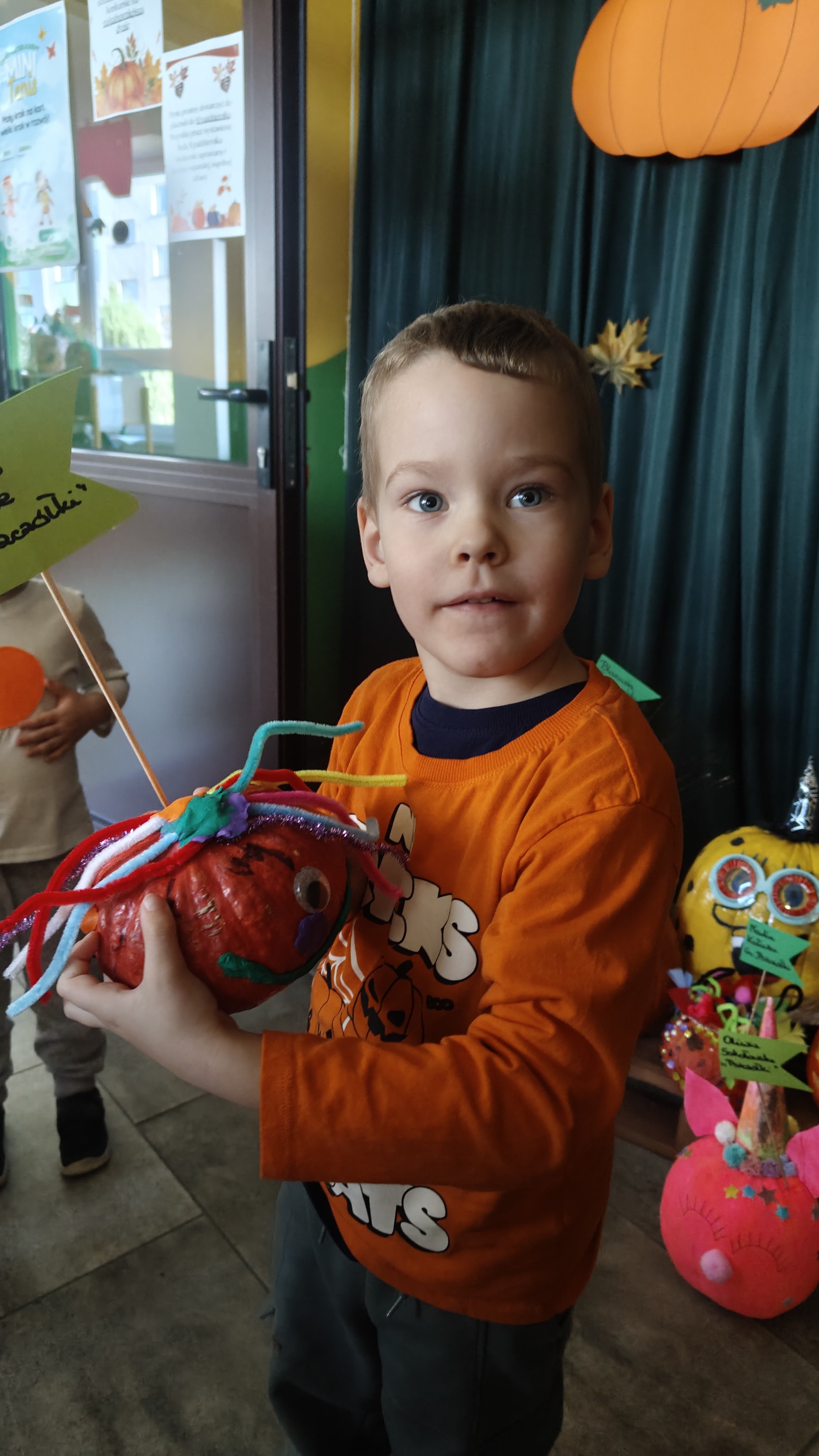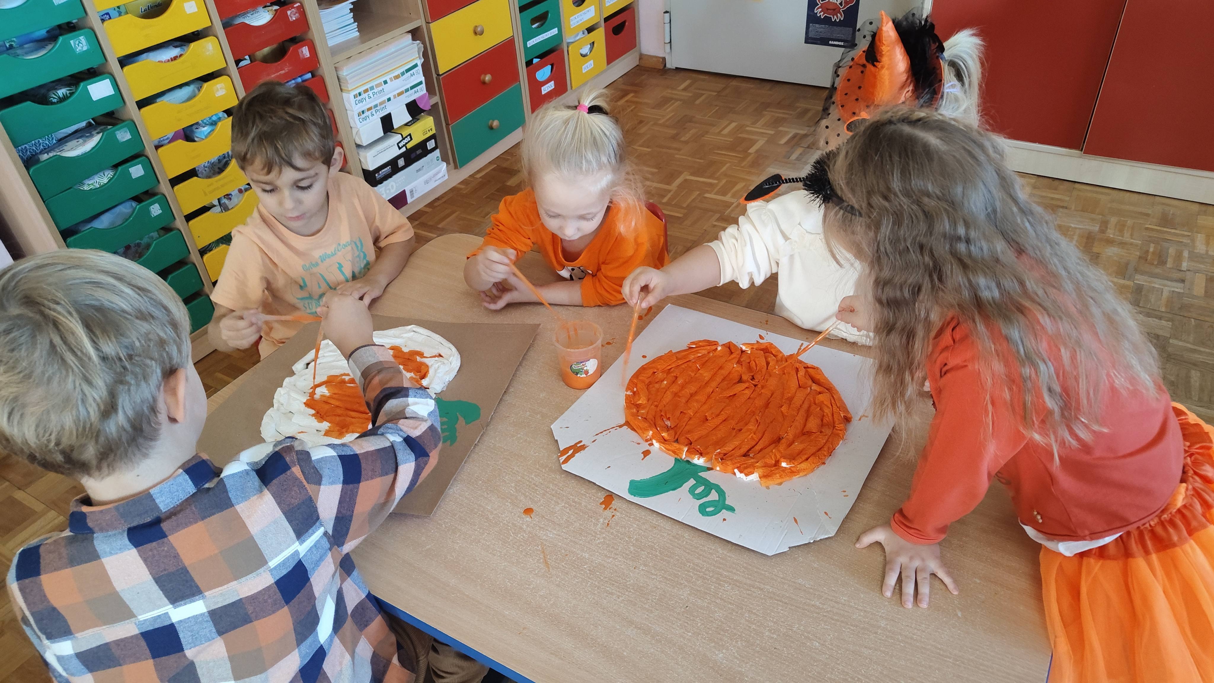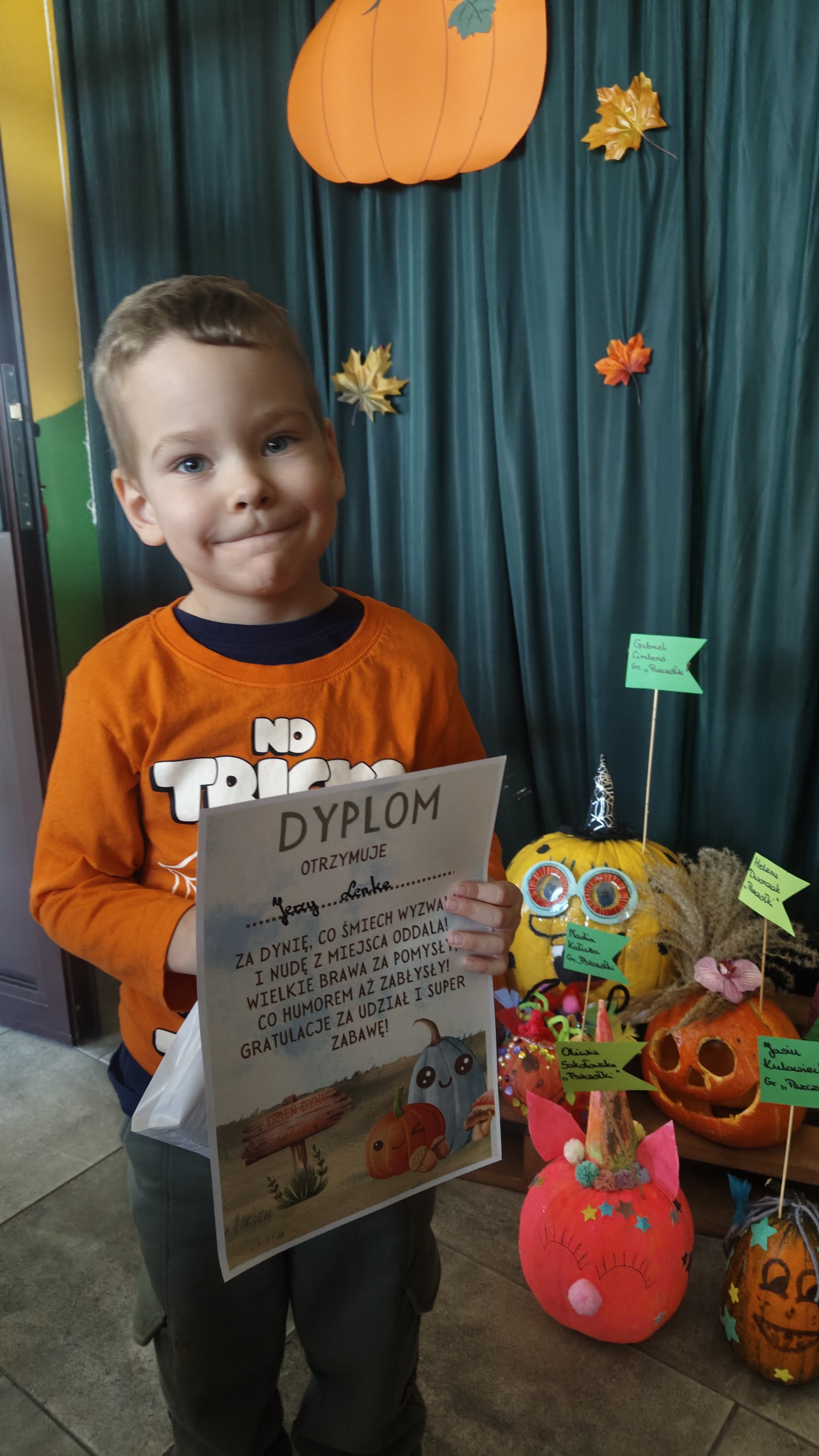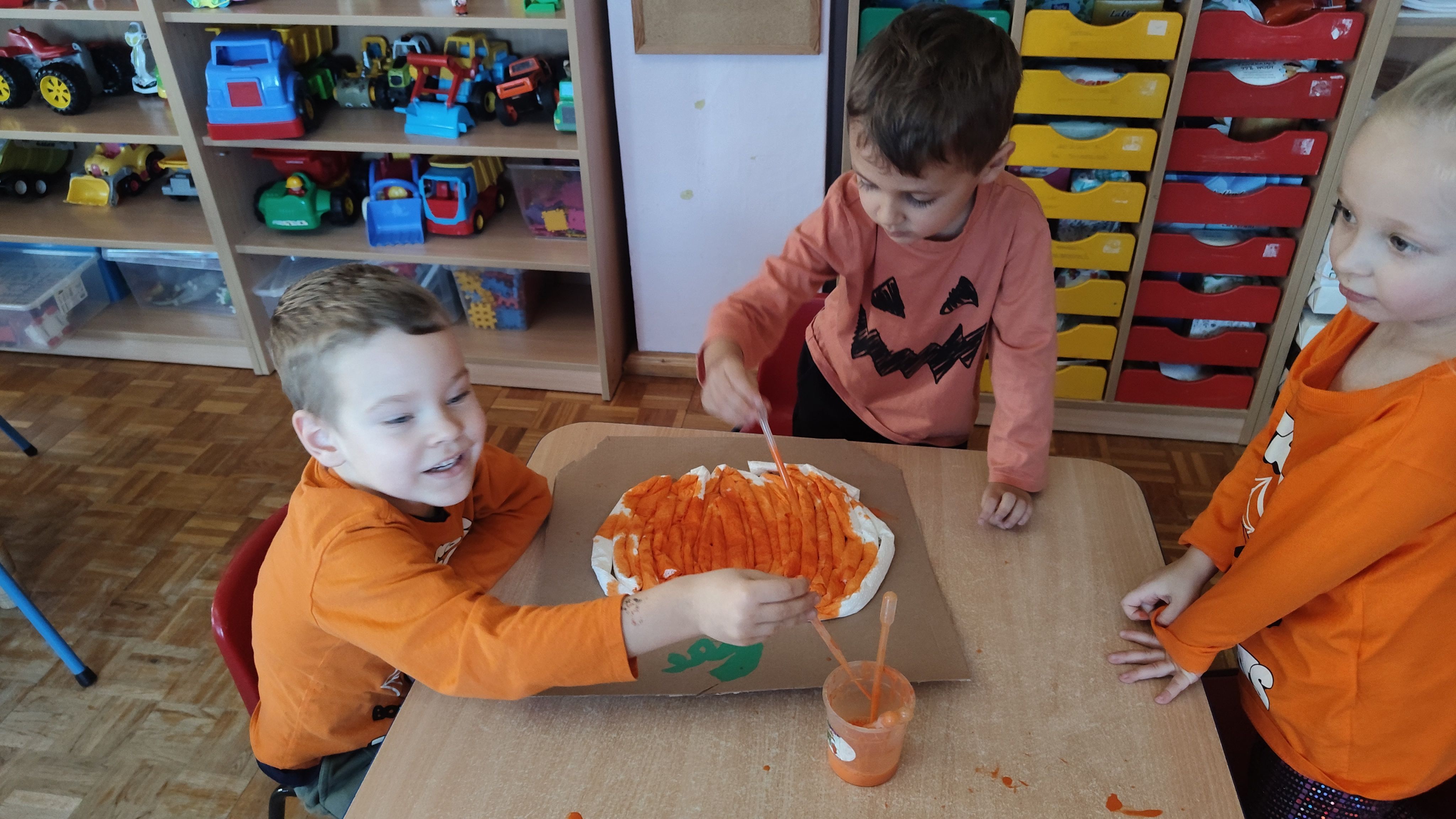 Dzisiejszy dzień upłynął nam w pomarańczowych barwach- obchodziliśmy Dzień Dyni! Dzieci miały okazję poznać właściwości, wygląd i rodzaje dyń, a także wzięły udział w wielu dyniowych aktywnościach. Śpiewaliśmy piosenkę "Podajemy dynię", bawiliśmy się w różne zabawy ruchowe z dynią w roli głównej. Najwięcej emocji wzbudziło rozstrzygnięcie konkursu na najzabawniejszą dynię- wszystkie prace zachwyciły nas pomysłowością i humorem. Serdecznie dziękujemy dzieciom i rodzicom za zaangażowanie oraz gratulujemy kreatywności.