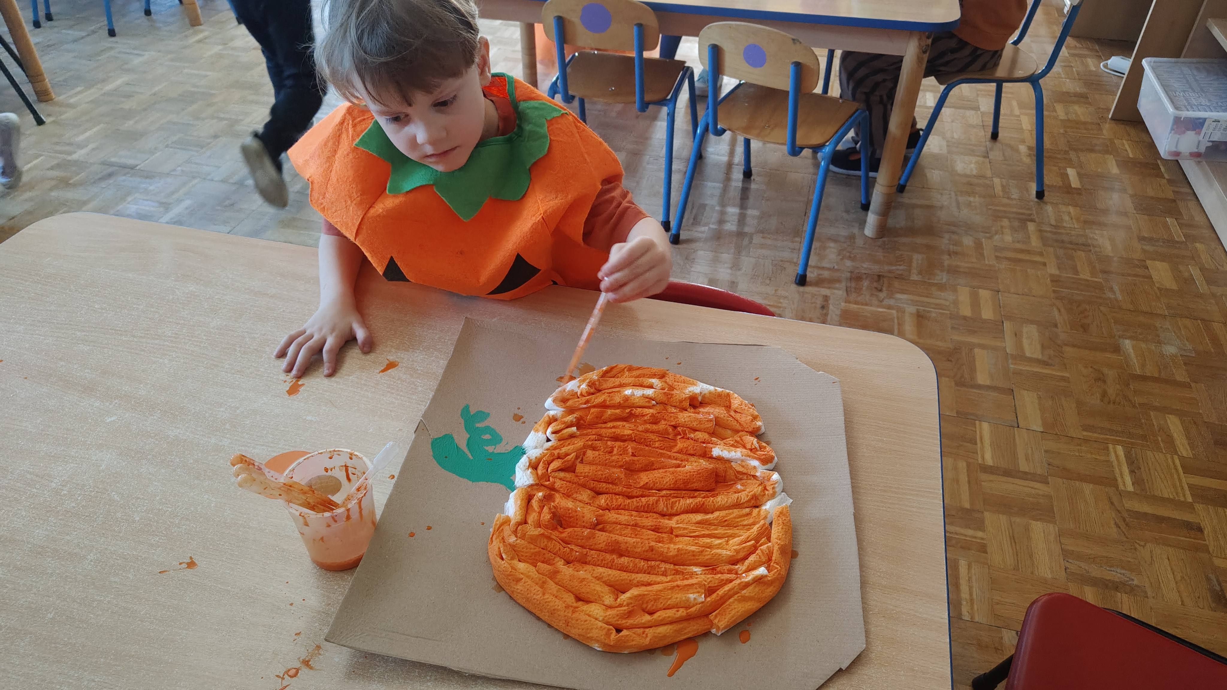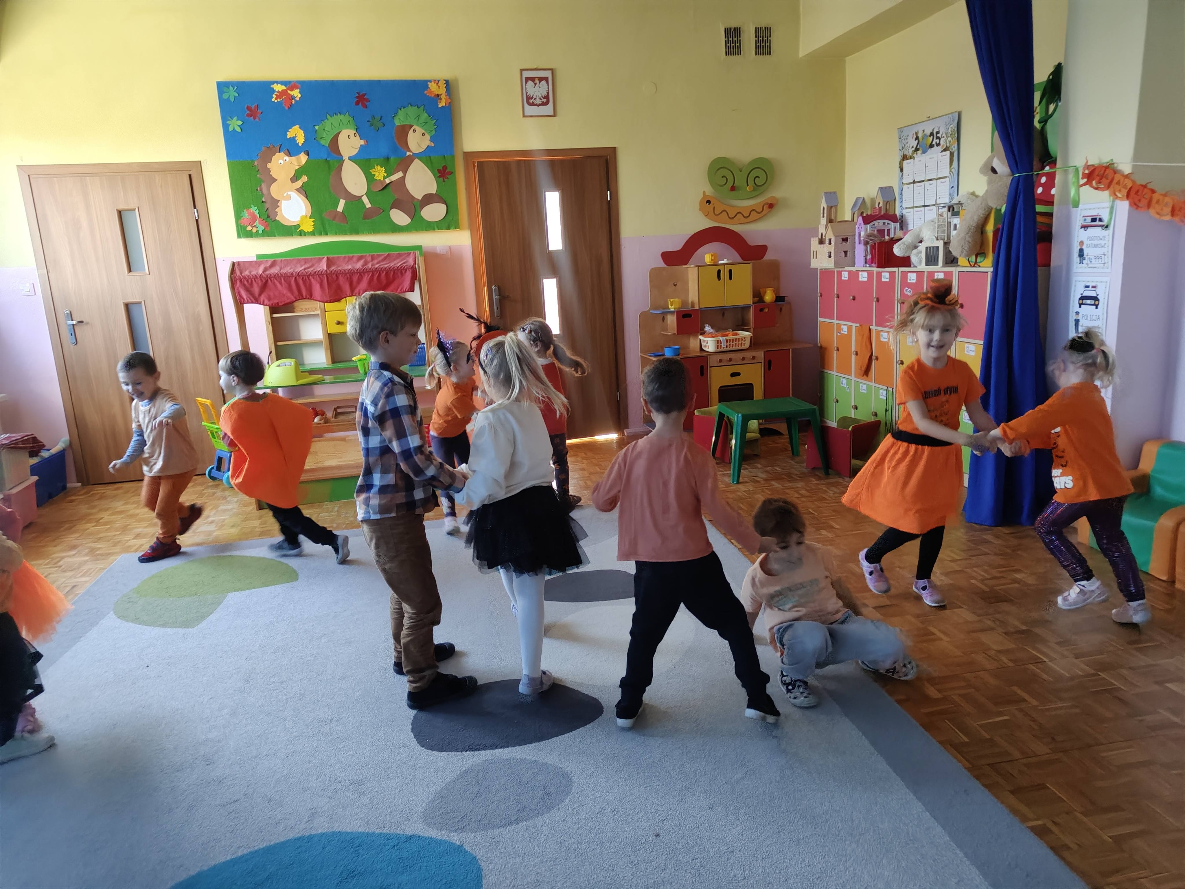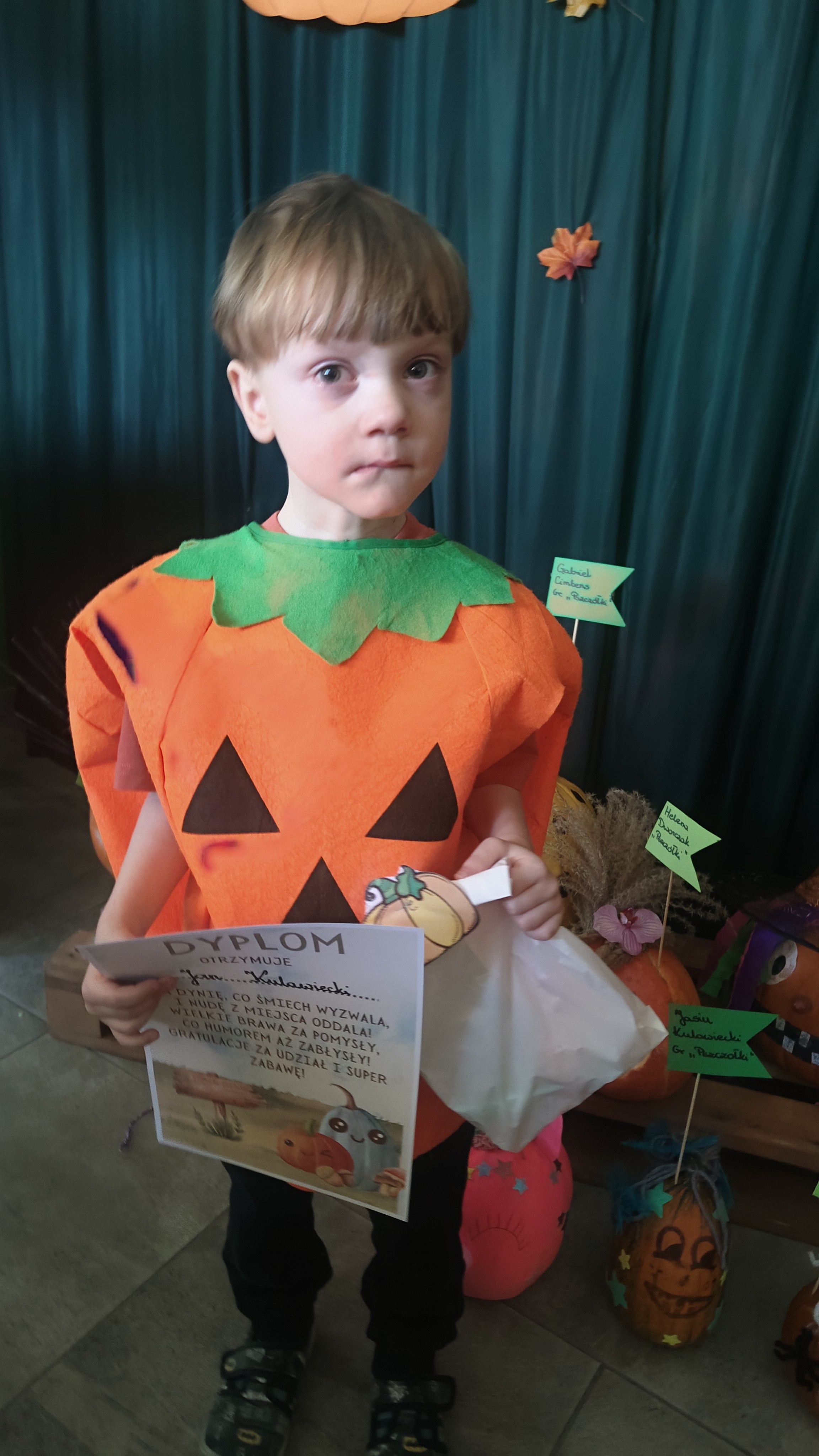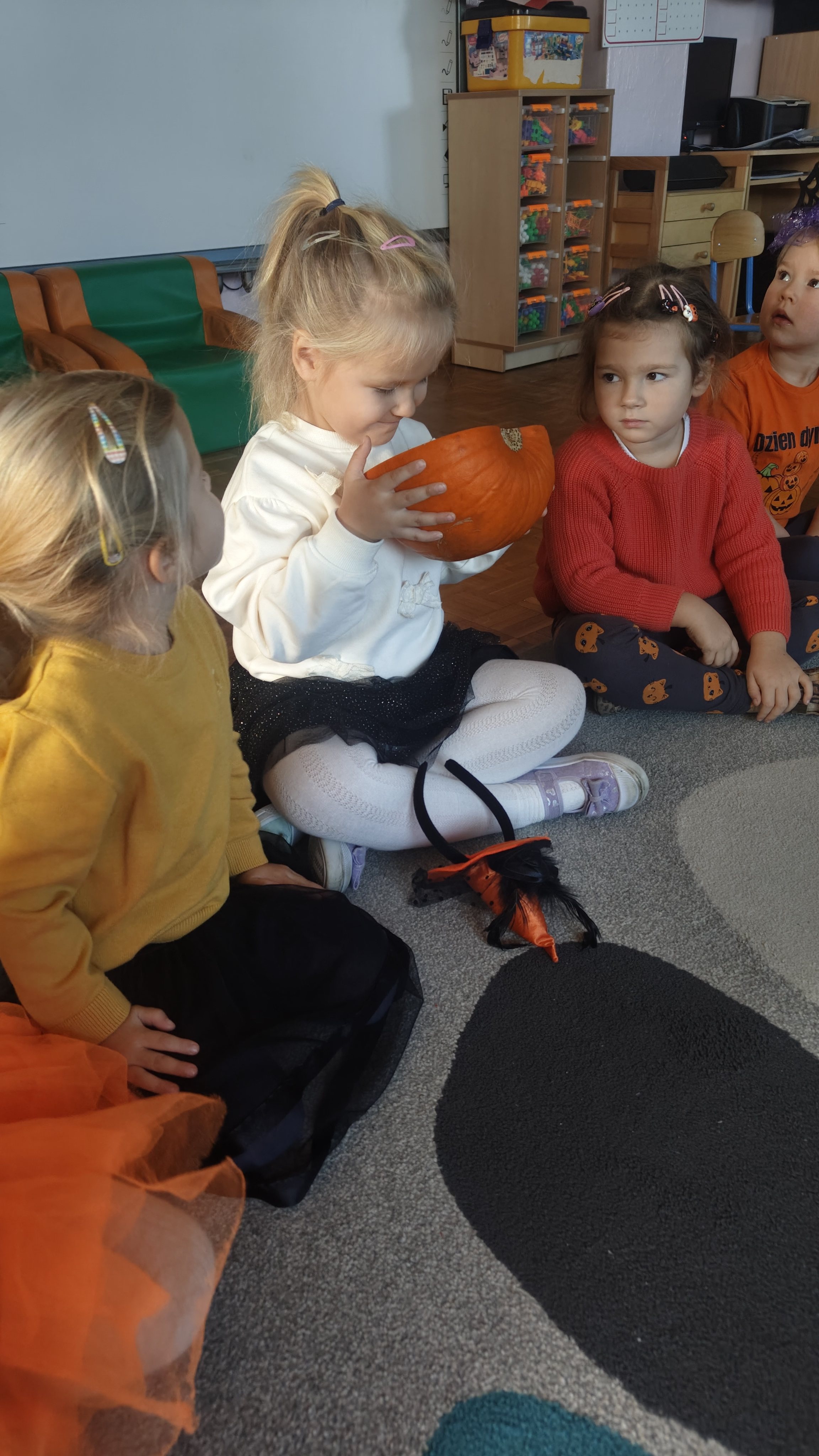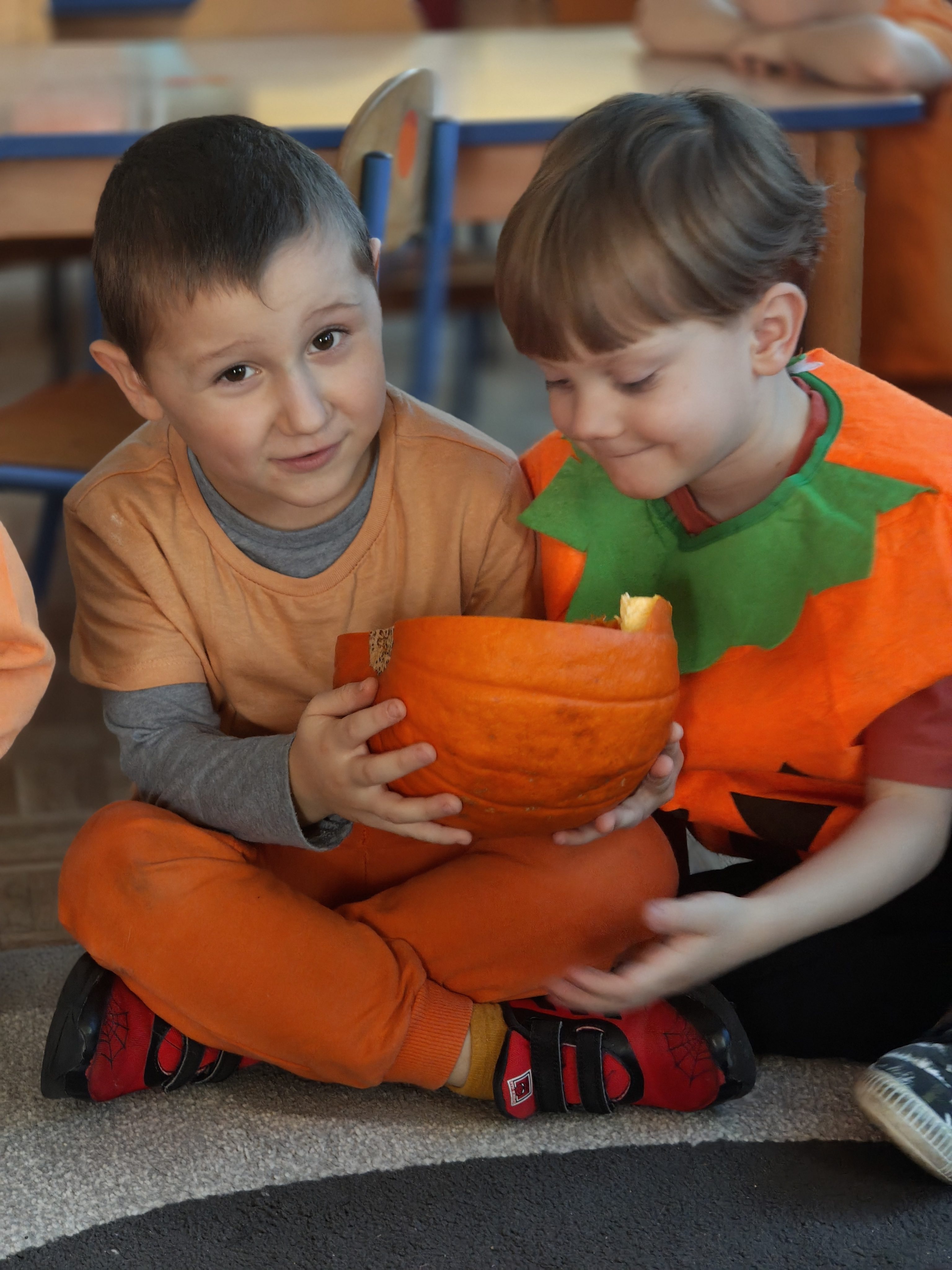 Dzisiejszy dzień upłynął nam w pomarańczowych barwach- obchodziliśmy Dzień Dyni! Dzieci miały okazję poznać właściwości, wygląd i rodzaje dyń, a także wzięły udział w wielu dyniowych aktywnościach. Śpiewaliśmy piosenkę "Podajemy dynię", bawiliśmy się w różne zabawy ruchowe z dynią w roli głównej. Najwięcej emocji wzbudziło rozstrzygnięcie konkursu na najzabawniejszą dynię- wszystkie prace zachwyciły nas pomysłowością i humorem. Serdecznie dziękujemy dzieciom i rodzicom za zaangażowanie oraz gratulujemy kreatywności.