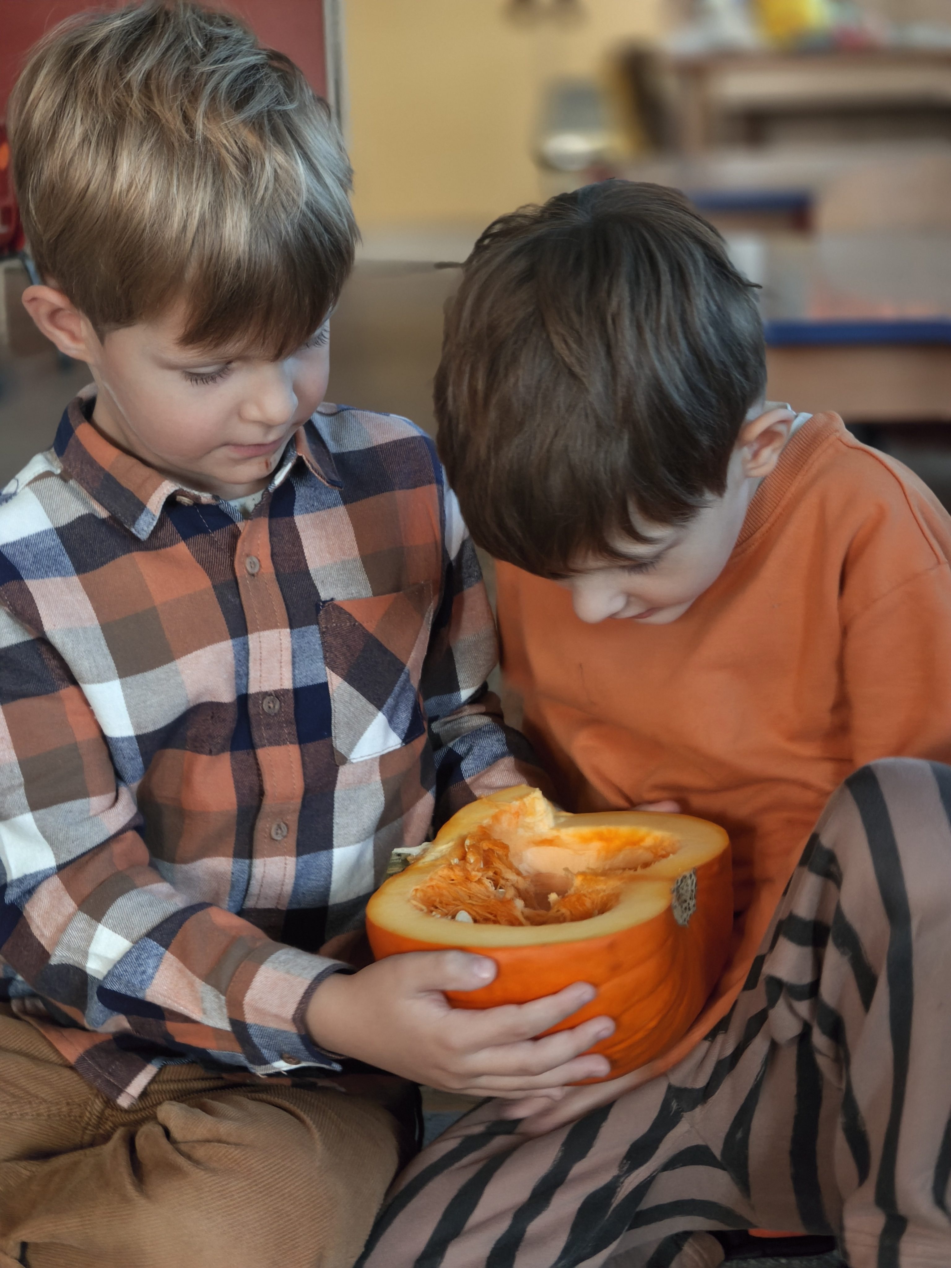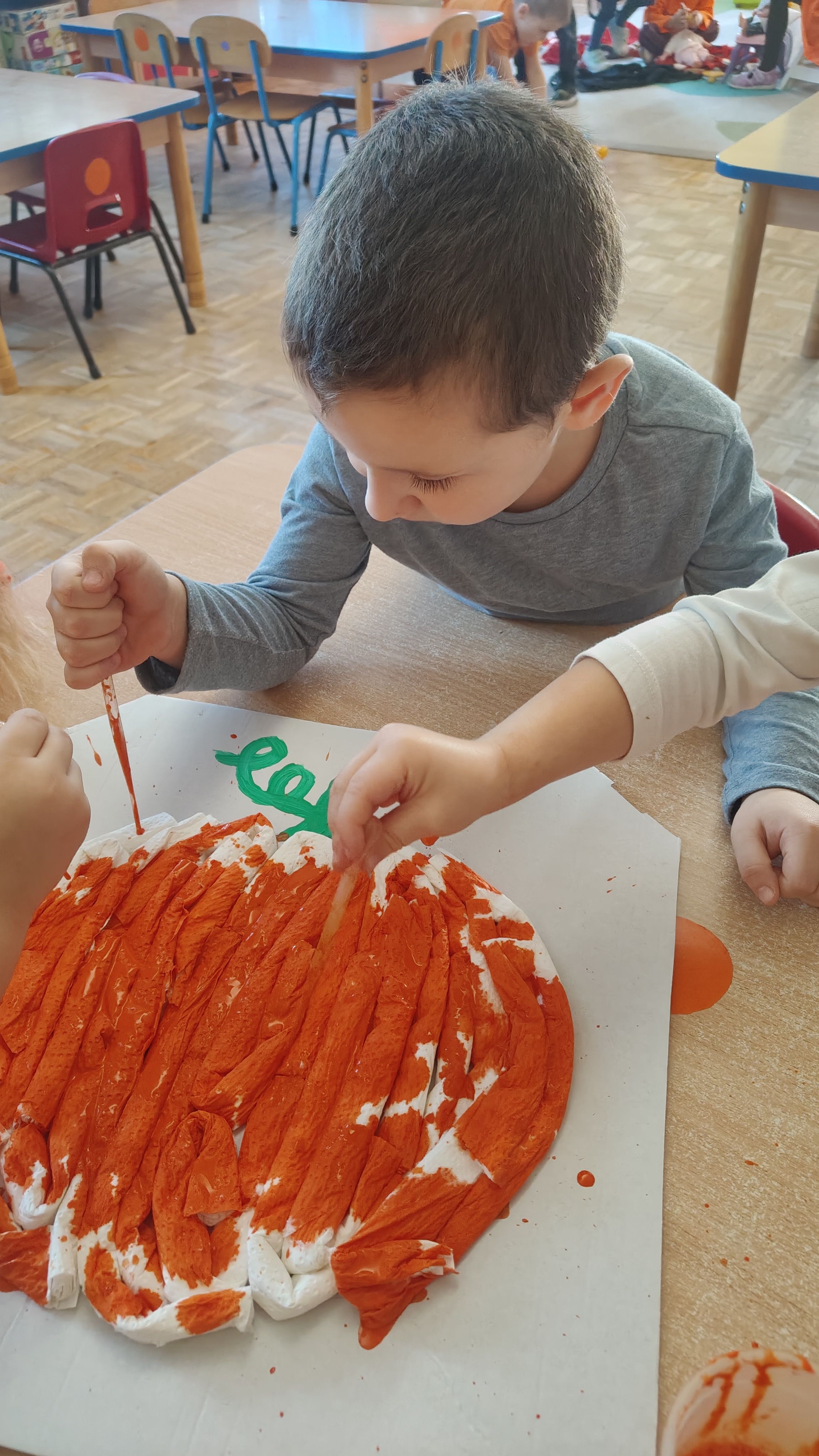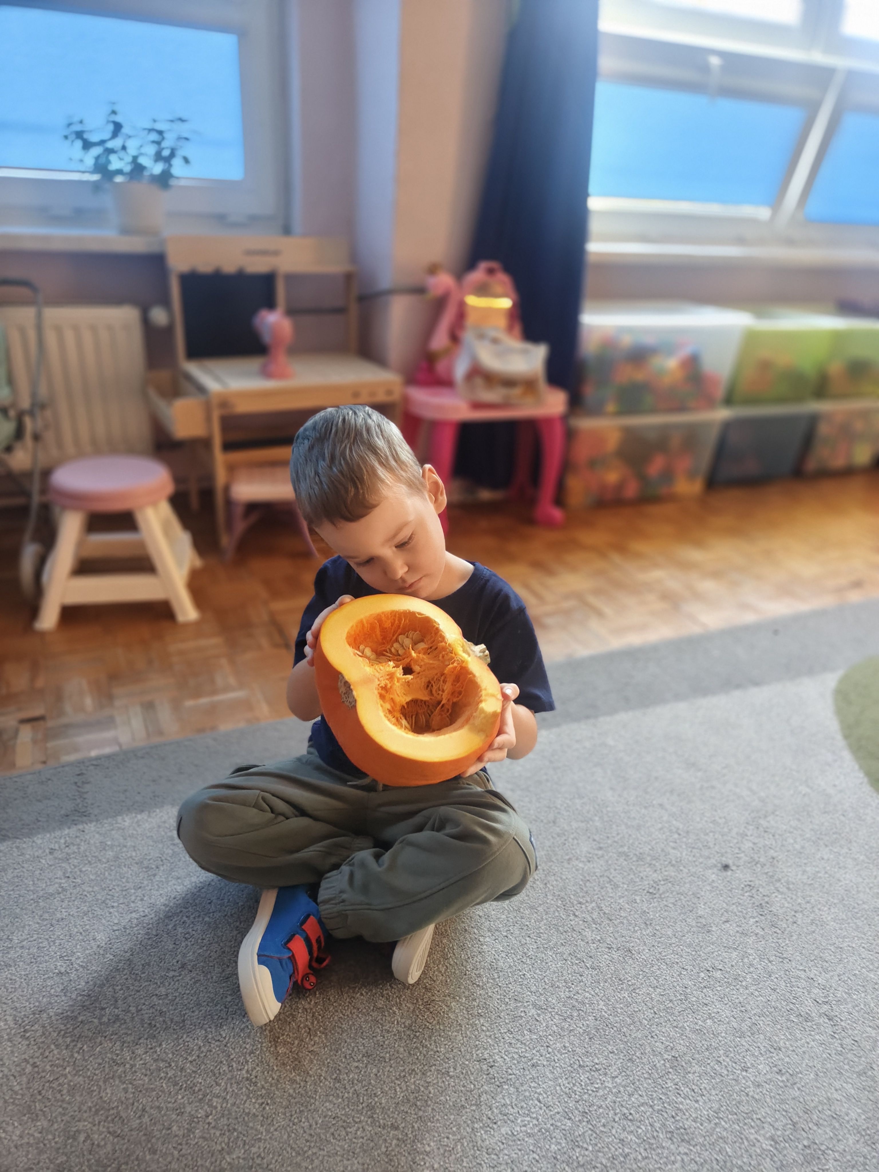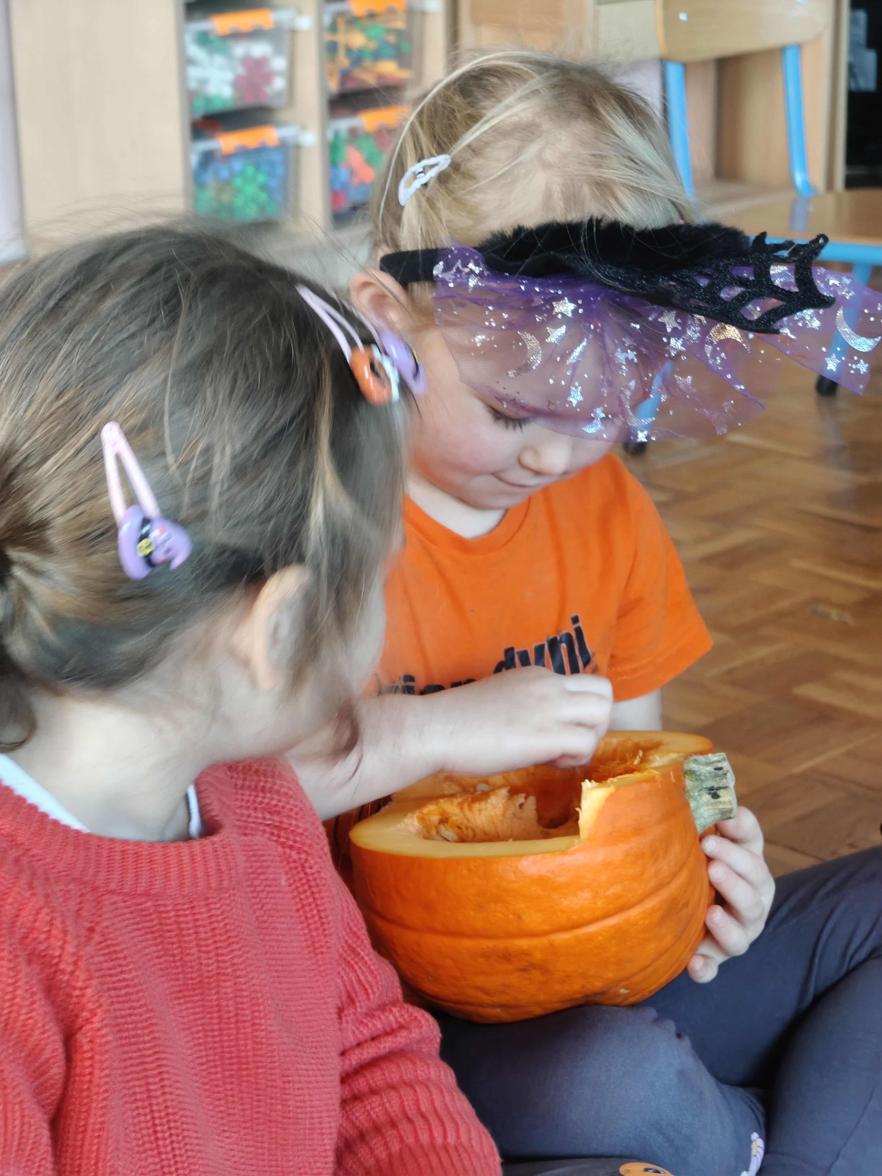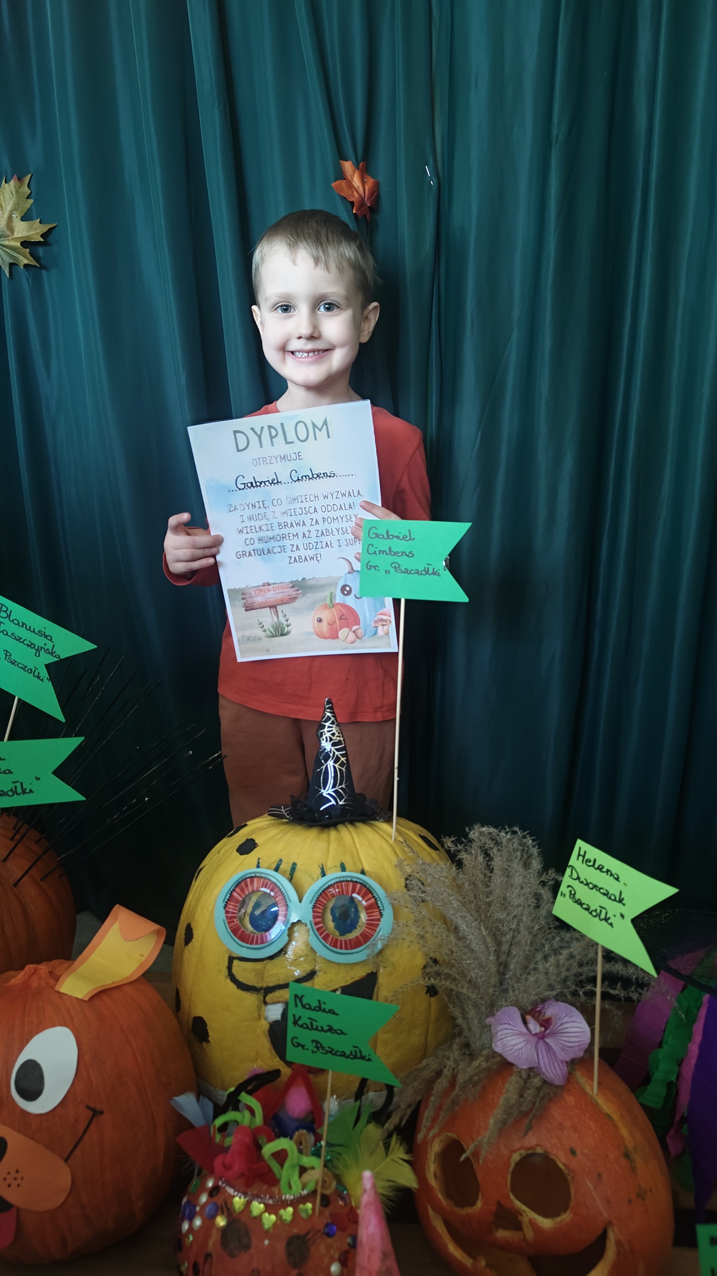 Dzisiejszy dzień upłynął nam w pomarańczowych barwach- obchodziliśmy Dzień Dyni! Dzieci miały okazję poznać właściwości, wygląd i rodzaje dyń, a także wzięły udział w wielu dyniowych aktywnościach. Śpiewaliśmy piosenkę "Podajemy dynię", bawiliśmy się w różne zabawy ruchowe z dynią w roli głównej. Najwięcej emocji wzbudziło rozstrzygnięcie konkursu na najzabawniejszą dynię- wszystkie prace zachwyciły nas pomysłowością i humorem. Serdecznie dziękujemy dzieciom i rodzicom za zaangażowanie oraz gratulujemy kreatywności.