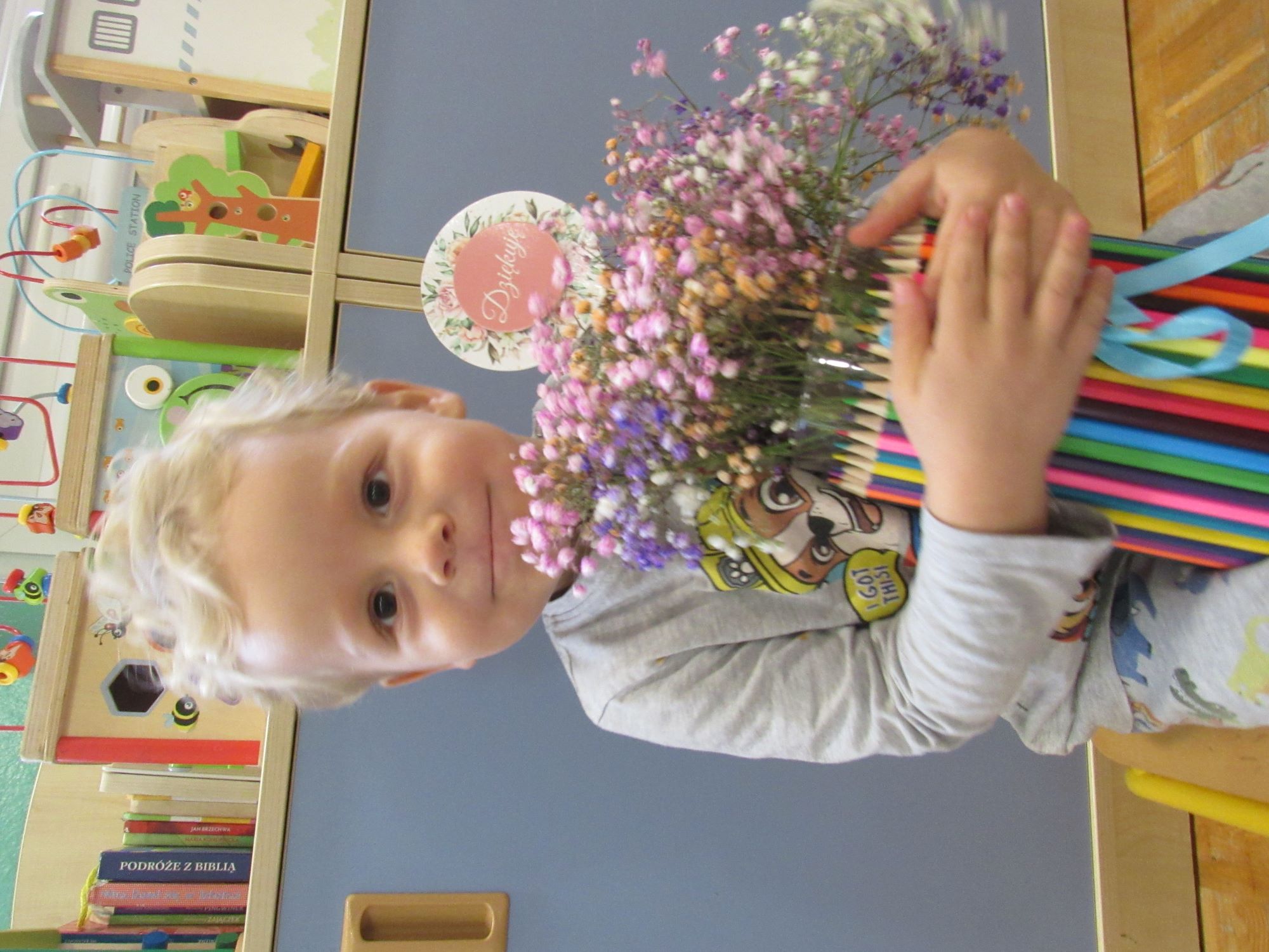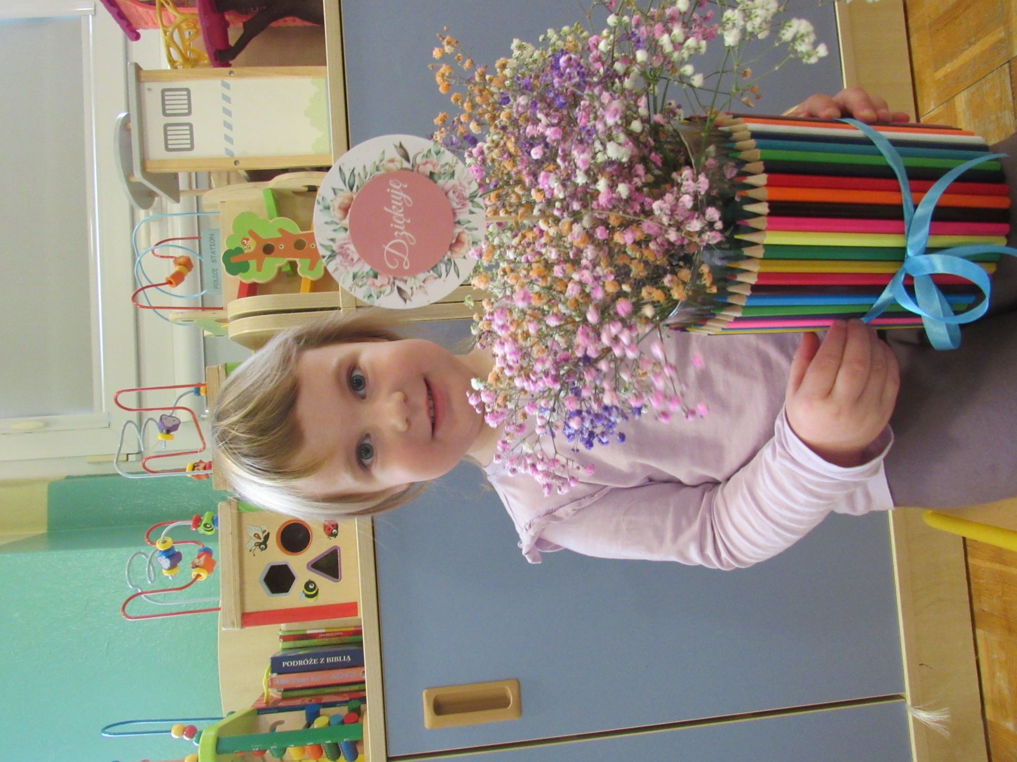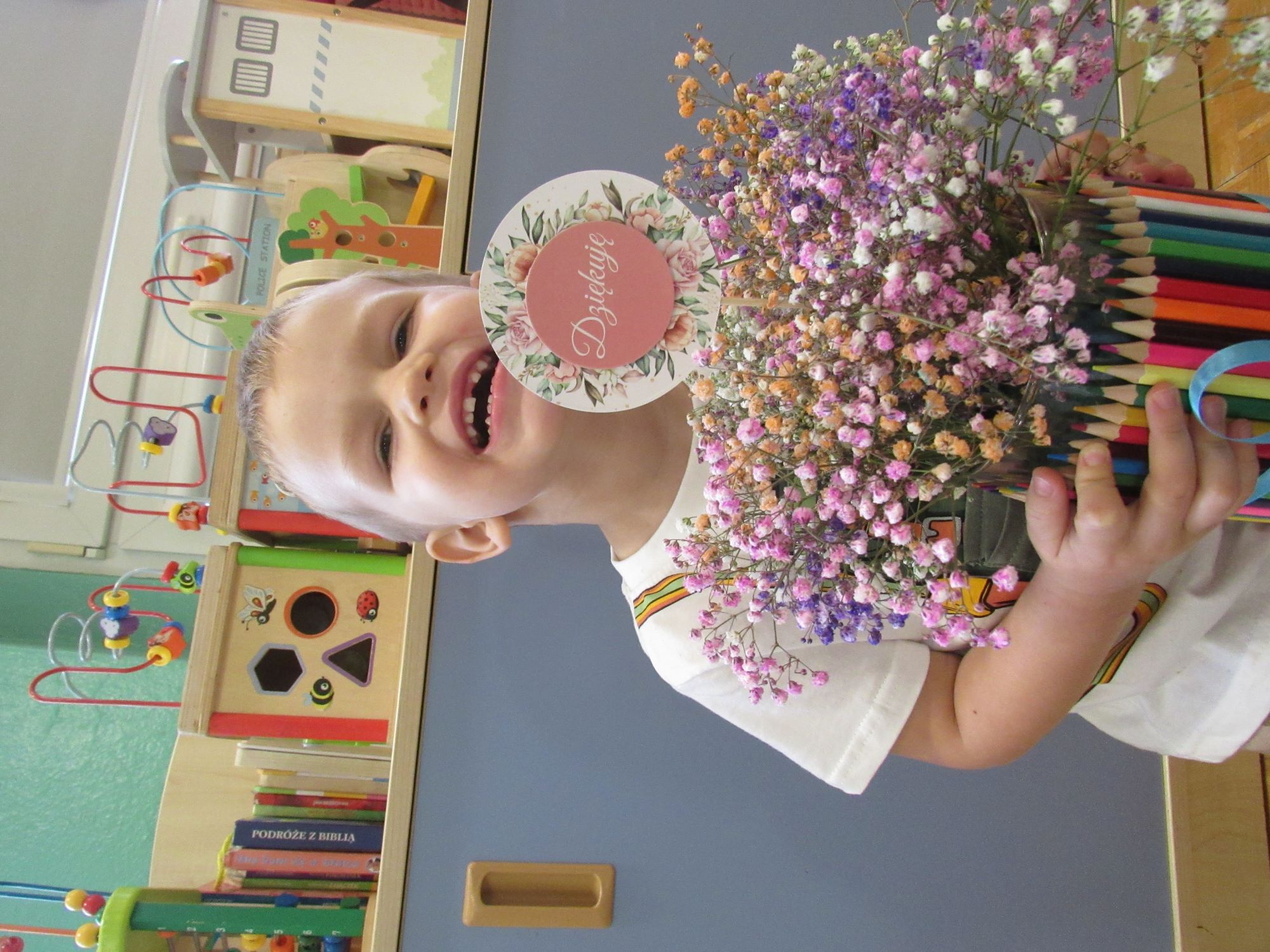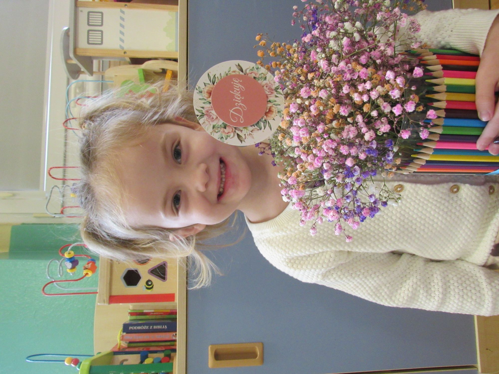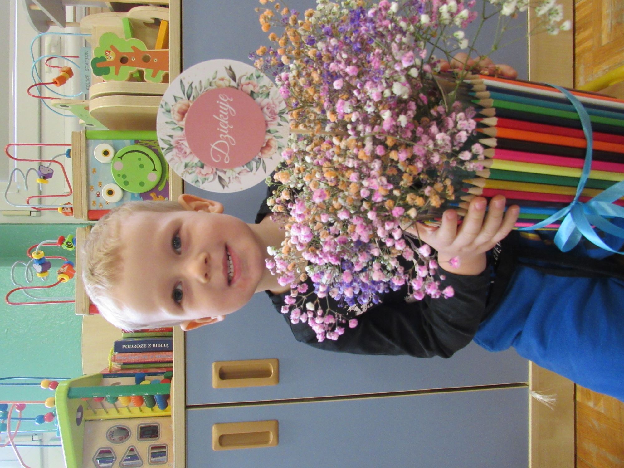 W Dniu Edukacji Narodowej dzieciaczki odwiedził gość o imieniu Leoś - uczeń IV klasy podstawowej. Leoś przeczytał bajeczkę pt. "Kicia Kocia - zawody", dzieciaczki z wielkim zainteresowaniem słuchały swoje gościa. Leoś opowiedział dlaczego warto pilnie się uczyć, bo uczenie to ciekawa przygoda, że każdego dnia dzieciaczki mogą odkrywać coś nowego. Na koniec pęknie podsumował, że opaci się uczyć, bo wiedza to ogromny skarb, którego nikt Ci nie zabierze. Dzieciaczki w tym dniu poznały znaczenia święta Edukacji Narodowej, dlaczego nauczyciele są tak ważni w życiu każdego dzieciaczka i z tej okazji przygotowały piękne laurki dla wszystkich pań oraz pracowników przedszkola.