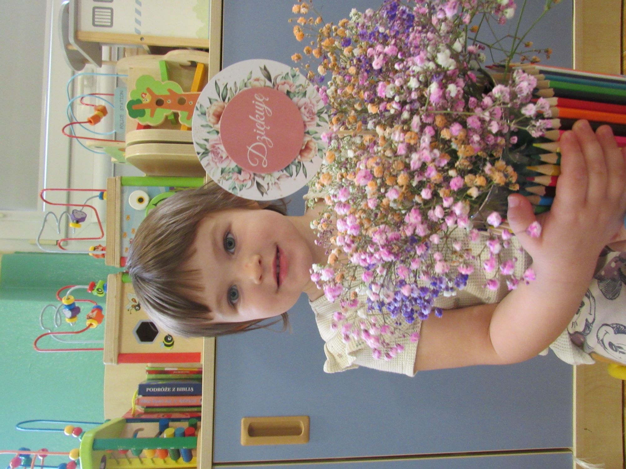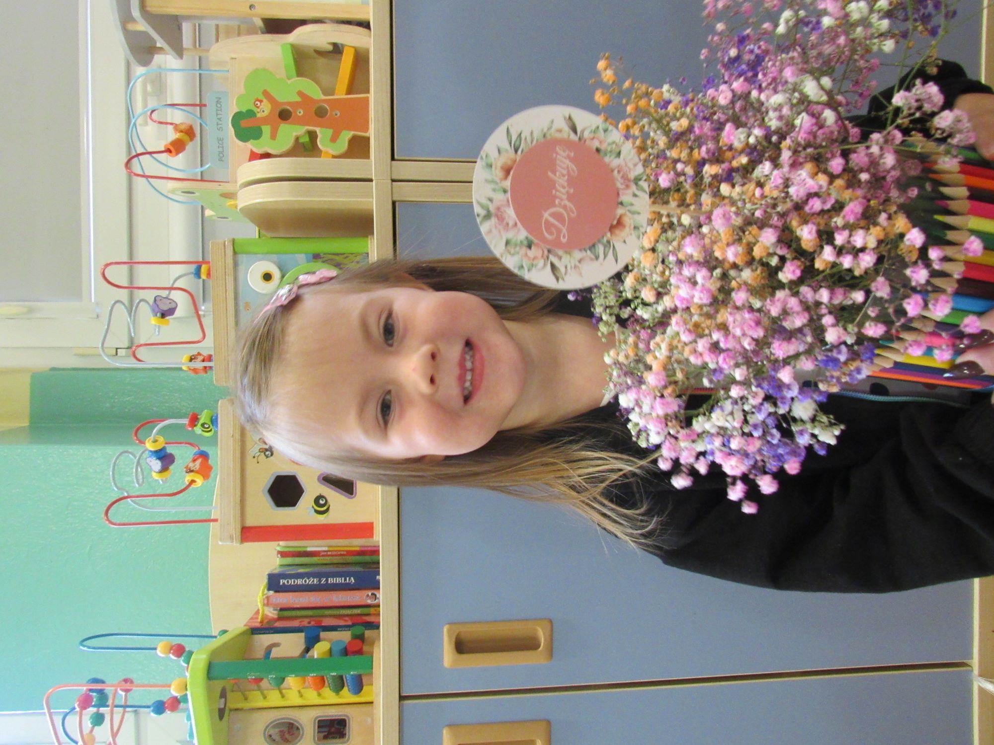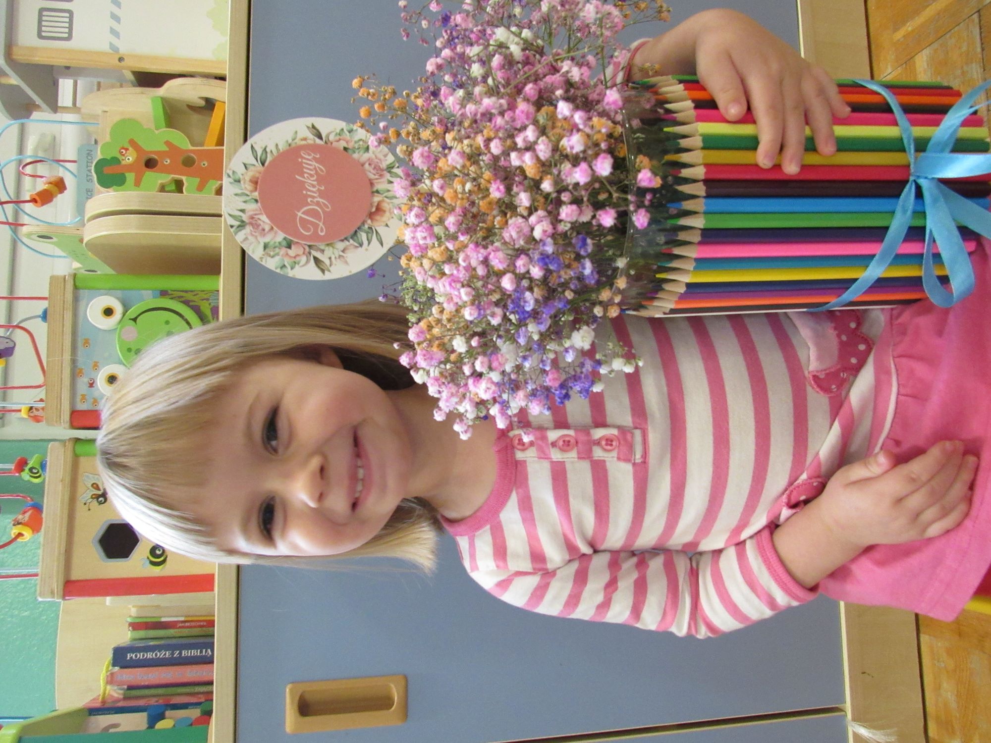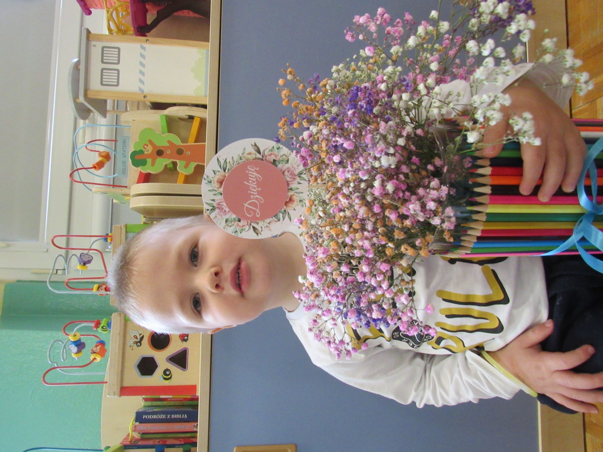 W Dniu Edukacji Narodowej dzieciaczki odwiedził gość o imieniu Leoś - uczeń IV klasy podstawowej. Leoś przeczytał bajeczkę pt. "Kicia Kocia - zawody", dzieciaczki z wielkim zainteresowaniem słuchały swoje gościa. Leoś opowiedział dlaczego warto pilnie się uczyć, bo uczenie to ciekawa przygoda, że każdego dnia dzieciaczki mogą odkrywać coś nowego. Na koniec pęknie podsumował, że opaci się uczyć, bo wiedza to ogromny skarb, którego nikt Ci nie zabierze. Dzieciaczki w tym dniu poznały znaczenia święta Edukacji Narodowej, dlaczego nauczyciele są tak ważni w życiu każdego dzieciaczka i z tej okazji przygotowały piękne laurki dla wszystkich pań oraz pracowników przedszkola.