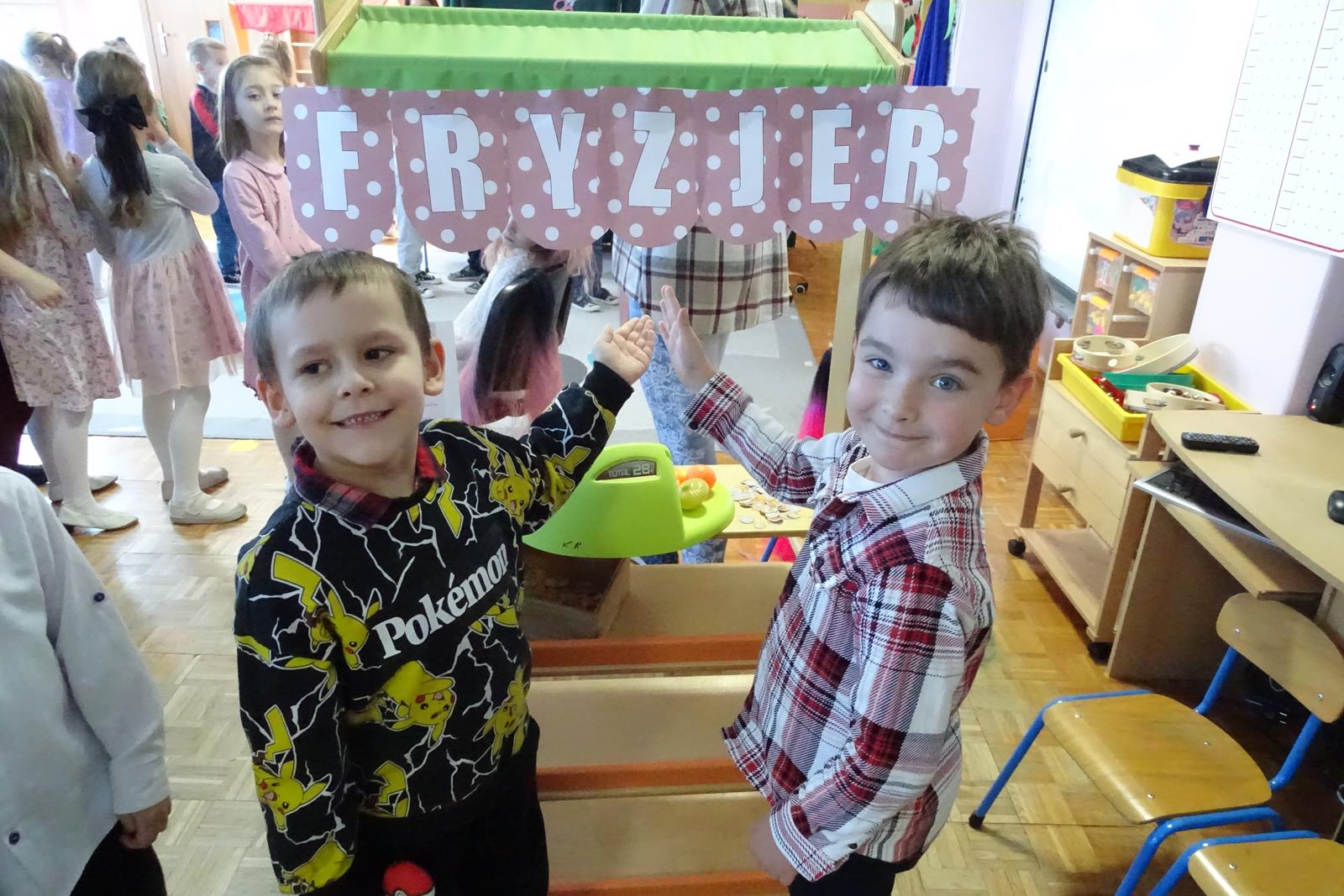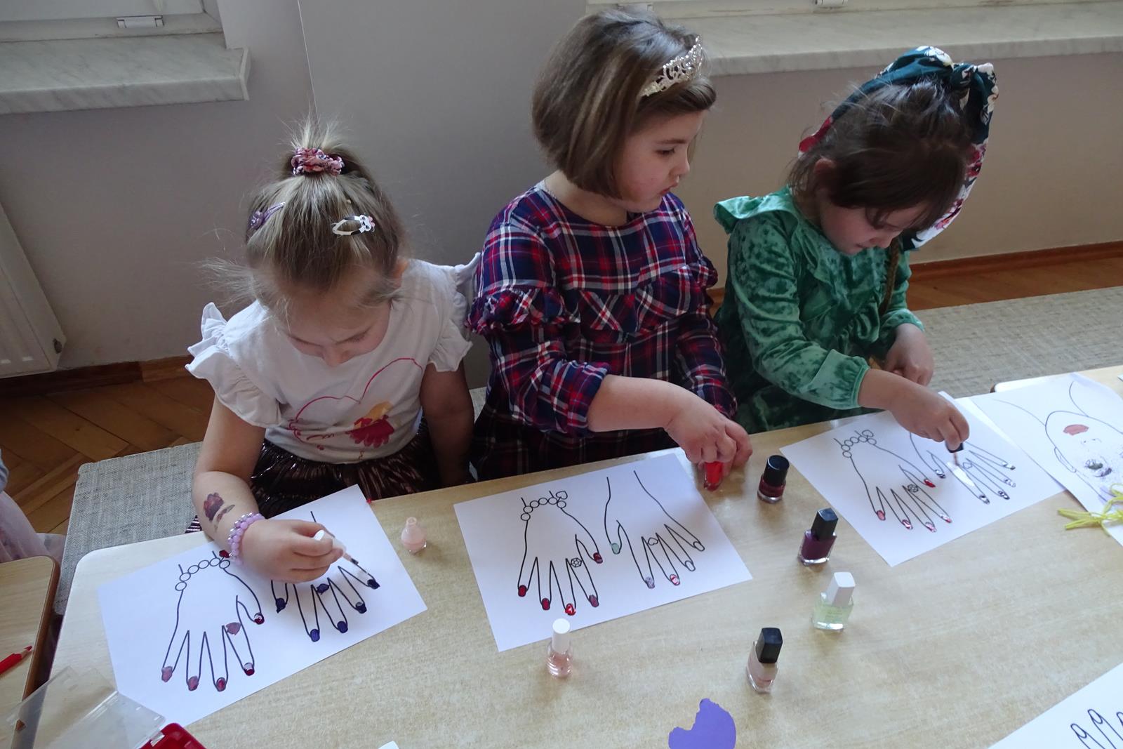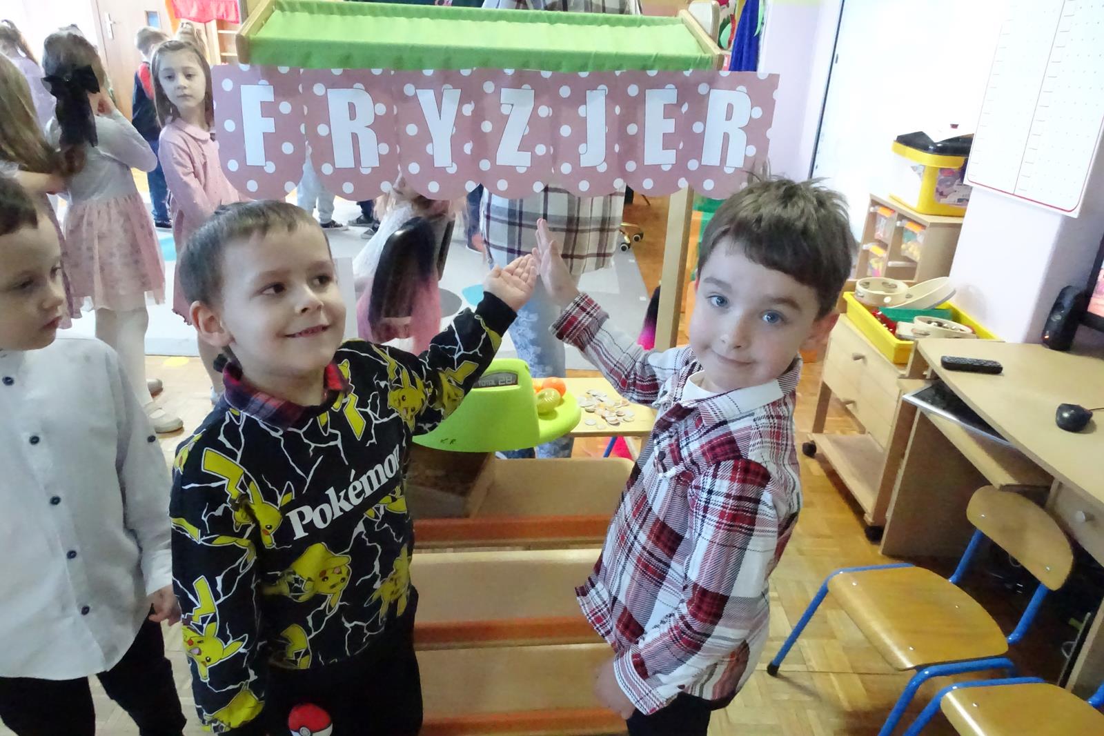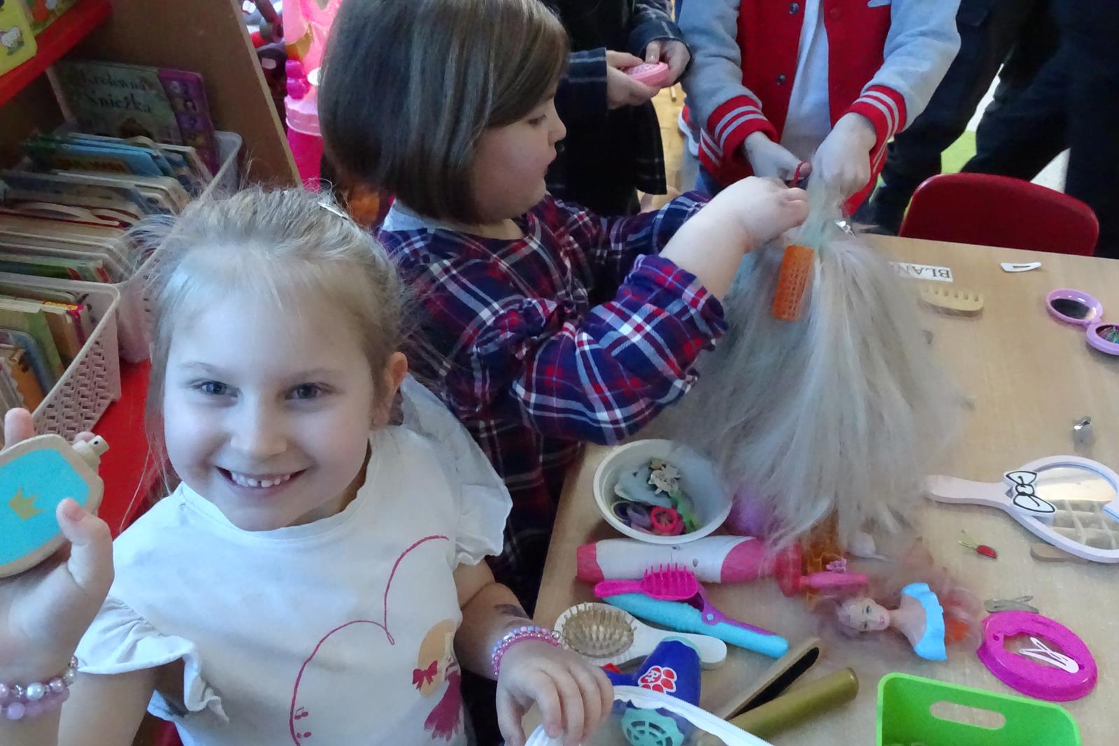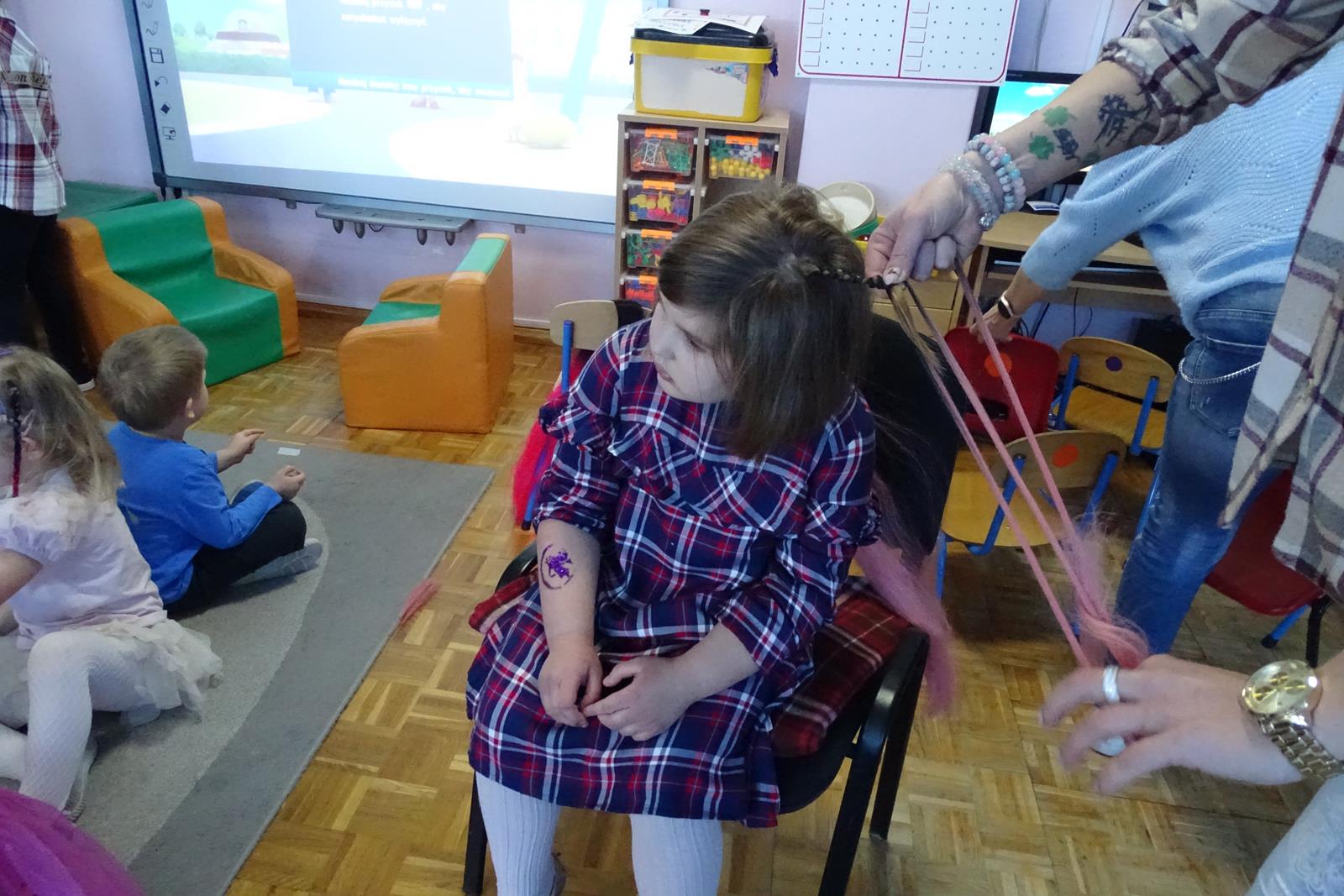 Dzień Kobiet w naszym przedszkolu okazał się niezwykle radosnym i pełnym atrakcji wydarzeniem, które na długo zapadnie w pamięci wszystkich dzieci. Już od samego rana dało się odczuć wyjątkową, ciepłą atmosferę, a dziewczynki mogły poczuć się docenione i wyróżnione. Na początek przygotowano dla nich niecodzienną niespodziankę – wizytę w przedszkolnym SPA. W otoczeniu spokojnej, relaksacyjnej muzyki małe kobietki mogły się wyciszyć i odpocząć, a chłopcy z dużym zaangażowaniem wcielili się w rolę masażystów, wykonując delikatne masaże stóp. Był to moment zarówno odprężenia, jak i świetnej zabawy, który wywołał mnóstwo uśmiechów i pozytywnych emocji.Kolejnym punktem programu była wizyta w „salonie fryzjerskim”, gdzie powstawały niezwykle pomysłowe i kolorowe fryzury. Dziewczynkom zaplatano warkocze, ozdabiano włosy brokatem oraz błyszczącymi dodatkami, dzięki czemu każda z nich mogła poczuć się jak mała księżniczka. Co ciekawe, także chłopcy chętnie wzięli udział w tej zabawie, decydując się na kolorowe stylizacje. Nie zabrakło również innych kreatywnych atrakcji. Dzieci miały możliwość wykonania brokatowych tatuaży oraz ozdabiania paznokci różnorodnymi kolorami i błyszczącymi elementami. Tego typu aktywności rozwijały wyobraźnię i zdolności manualne, a jednocześnie dostarczały mnóstwo radości i okazji do wspólnego spędzania czasu. Na zakończenie tego wyjątkowego dnia na wszystkich czekał słodki poczęstunek przygotowany przez nasze wspaniałe mamy, za co serdecznie dziękujemy.