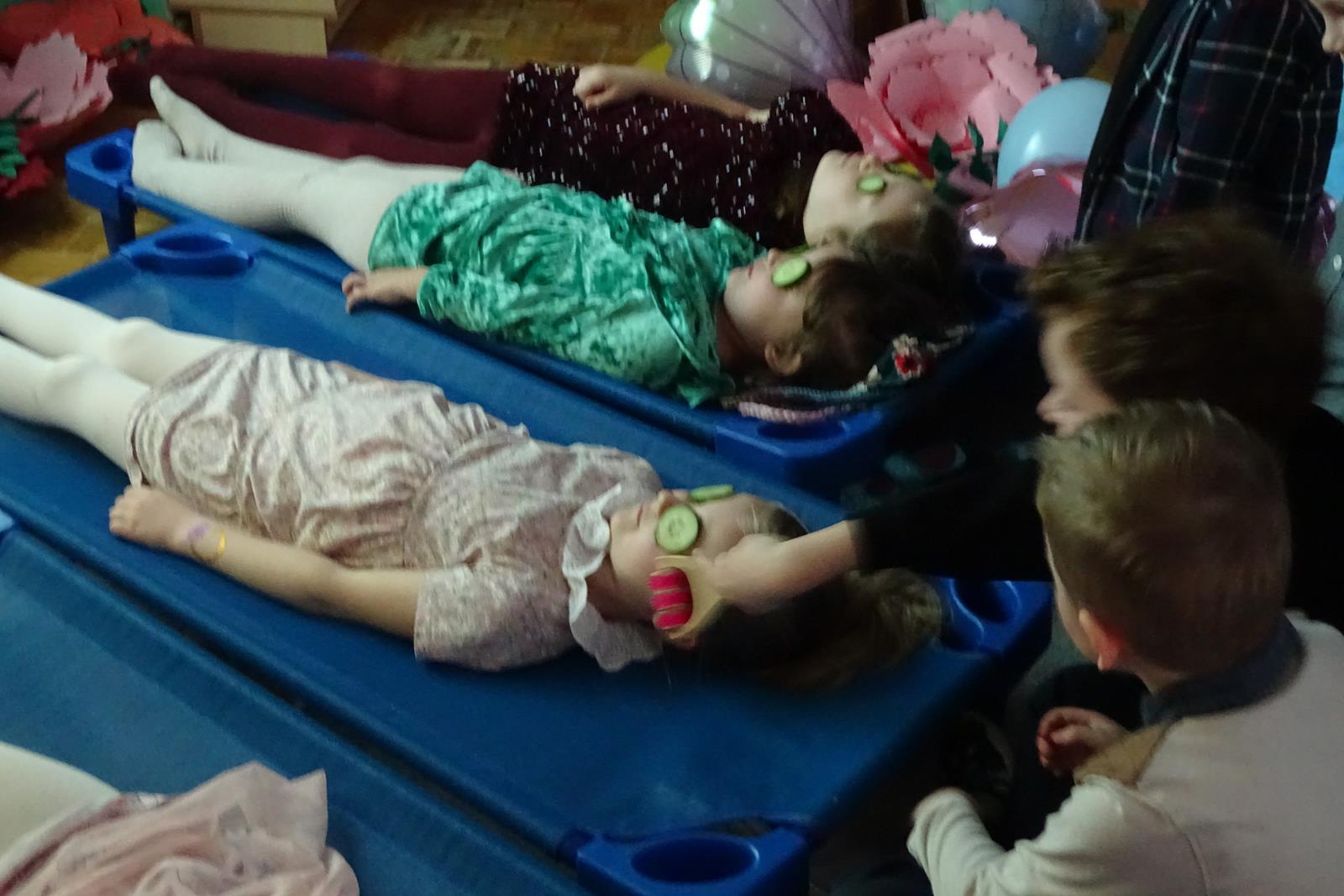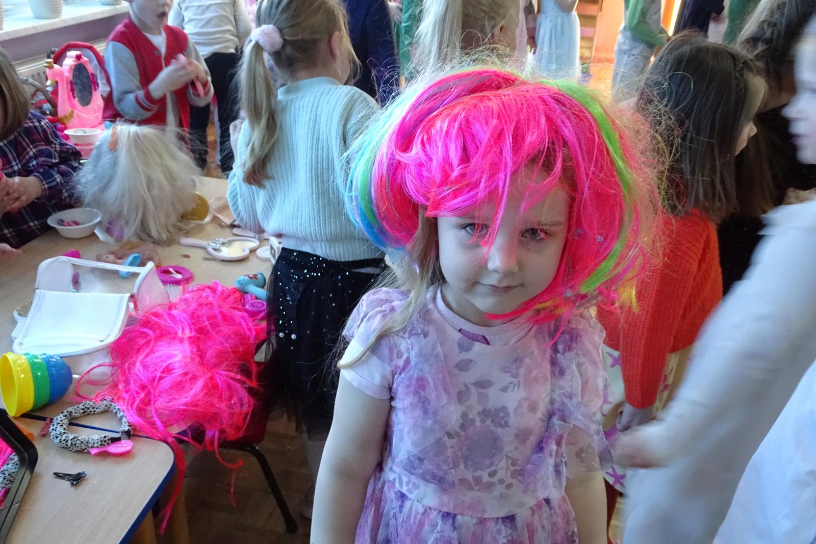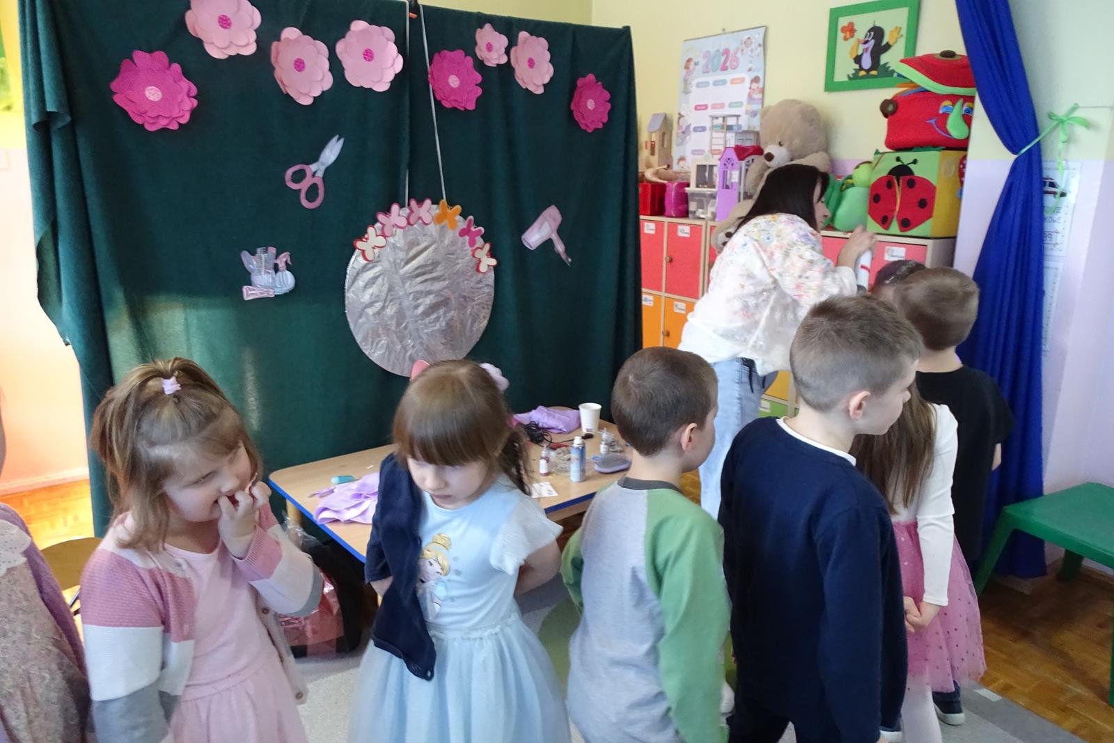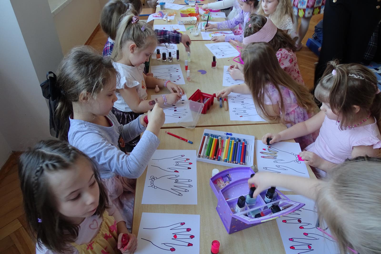 Dzień Kobiet w naszym przedszkolu okazał się niezwykle radosnym i pełnym atrakcji wydarzeniem, które na długo zapadnie w pamięci wszystkich dzieci. Już od samego rana dało się odczuć wyjątkową, ciepłą atmosferę, a dziewczynki mogły poczuć się docenione i wyróżnione. Na początek przygotowano dla nich niecodzienną niespodziankę – wizytę w przedszkolnym SPA. W otoczeniu spokojnej, relaksacyjnej muzyki małe kobietki mogły się wyciszyć i odpocząć, a chłopcy z dużym zaangażowaniem wcielili się w rolę masażystów, wykonując delikatne masaże stóp. Był to moment zarówno odprężenia, jak i świetnej zabawy, który wywołał mnóstwo uśmiechów i pozytywnych emocji.Kolejnym punktem programu była wizyta w „salonie fryzjerskim”, gdzie powstawały niezwykle pomysłowe i kolorowe fryzury. Dziewczynkom zaplatano warkocze, ozdabiano włosy brokatem oraz błyszczącymi dodatkami, dzięki czemu każda z nich mogła poczuć się jak mała księżniczka. Co ciekawe, także chłopcy chętnie wzięli udział w tej zabawie, decydując się na kolorowe stylizacje. Nie zabrakło również innych kreatywnych atrakcji. Dzieci miały możliwość wykonania brokatowych tatuaży oraz ozdabiania paznokci różnorodnymi kolorami i błyszczącymi elementami. Tego typu aktywności rozwijały wyobraźnię i zdolności manualne, a jednocześnie dostarczały mnóstwo radości i okazji do wspólnego spędzania czasu. Na zakończenie tego wyjątkowego dnia na wszystkich czekał słodki poczęstunek przygotowany przez nasze wspaniałe mamy, za co serdecznie dziękujemy.