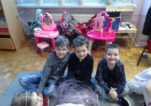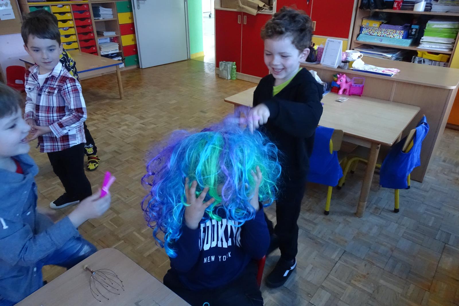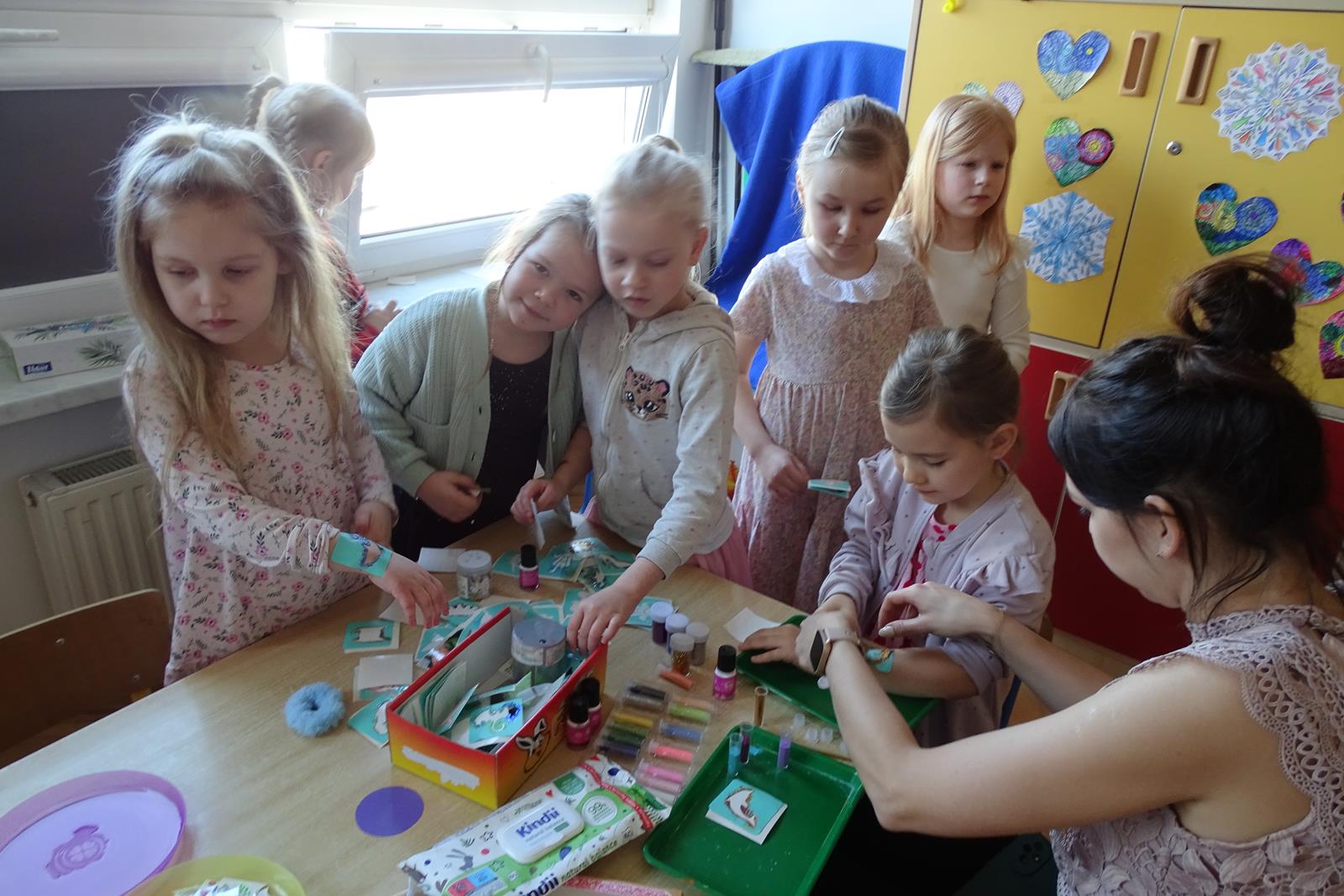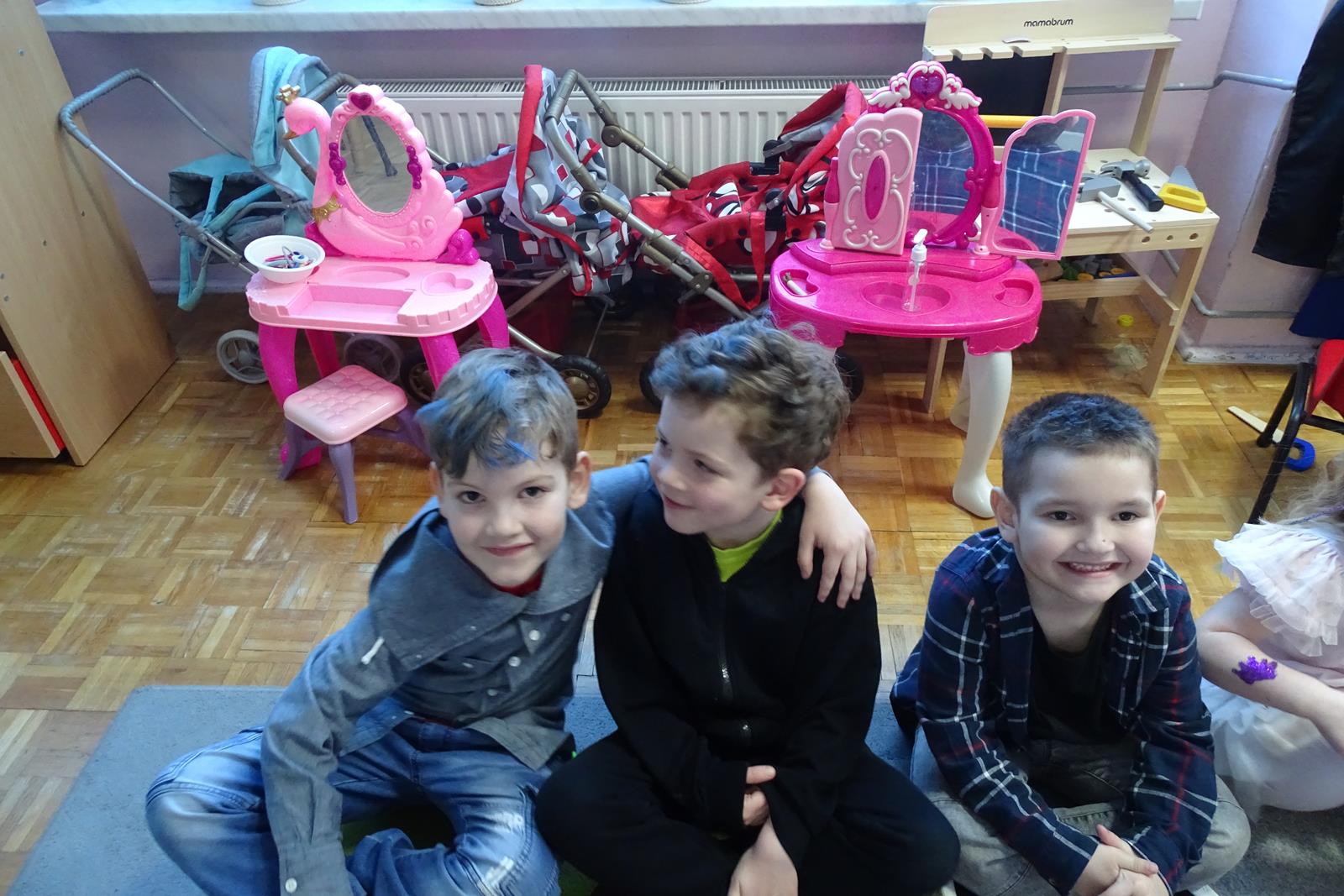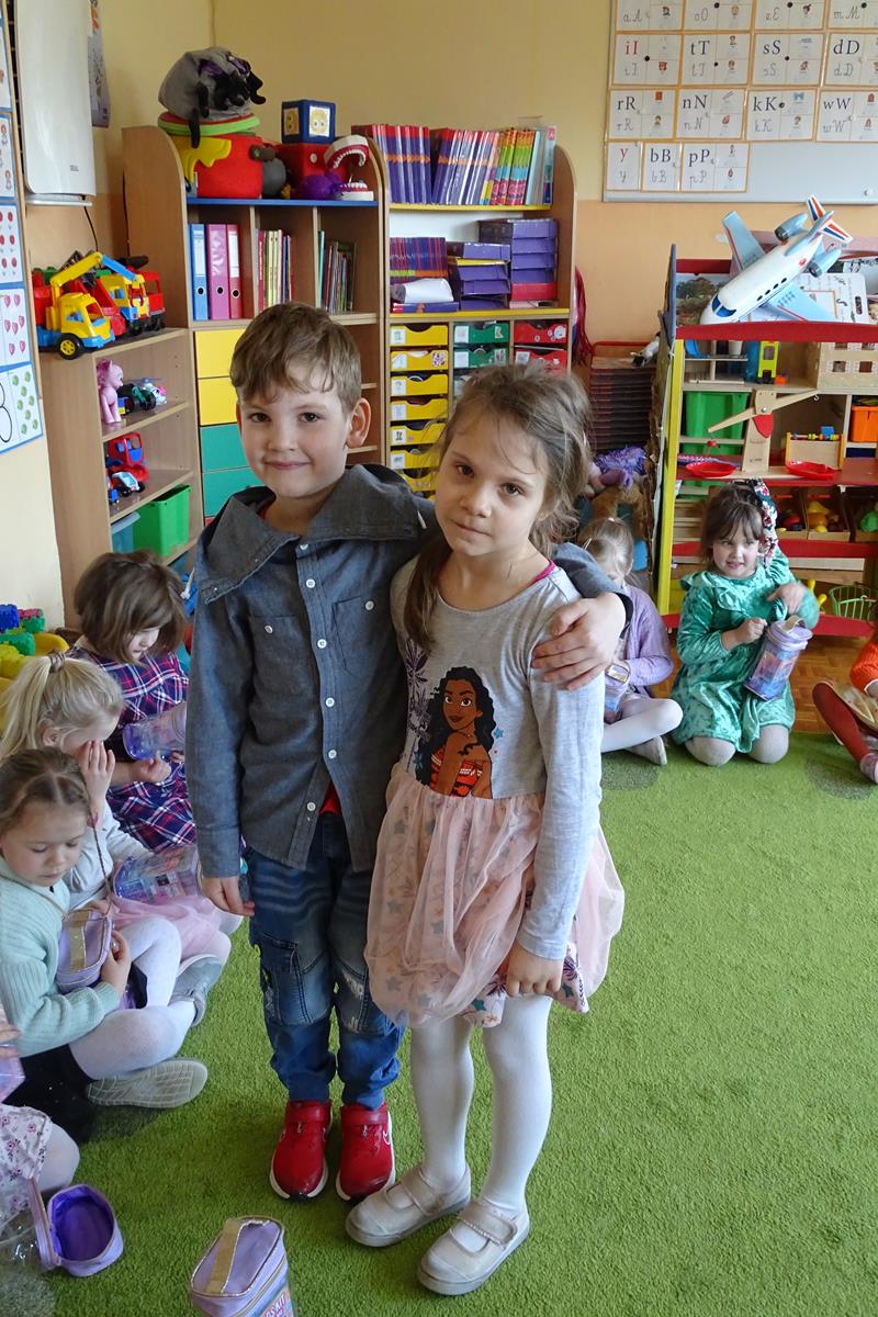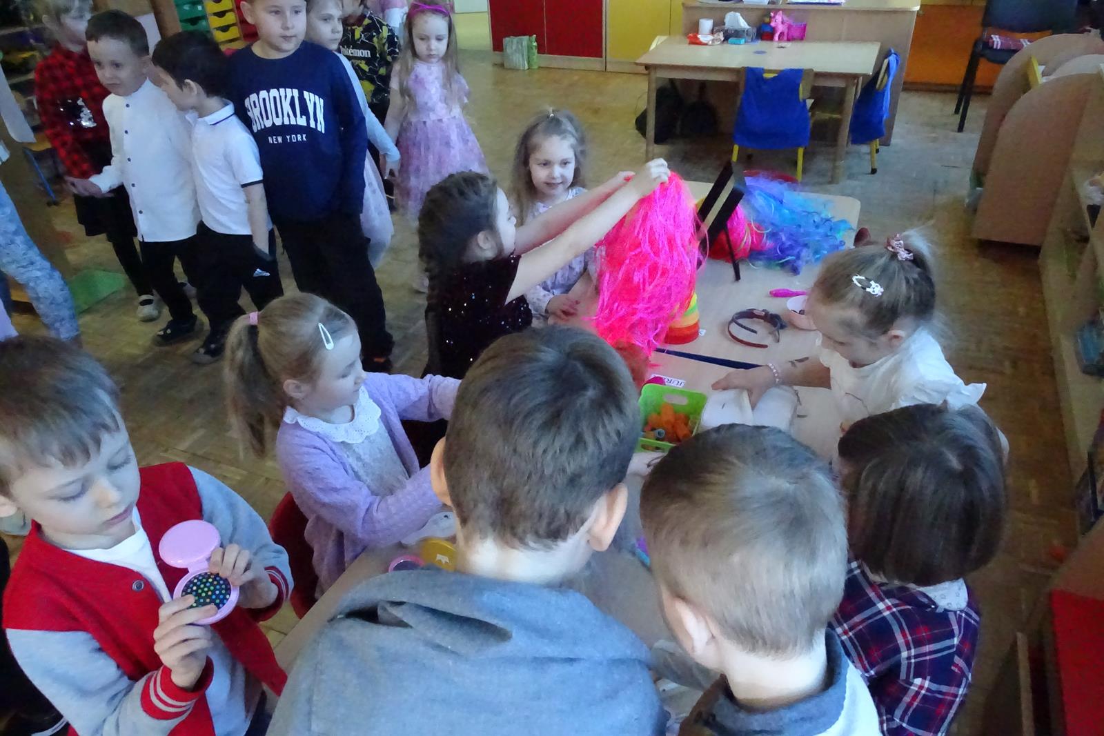 Dzień Kobiet w naszym przedszkolu okazał się niezwykle radosnym i pełnym atrakcji wydarzeniem, które na długo zapadnie w pamięci wszystkich dzieci. Już od samego rana dało się odczuć wyjątkową, ciepłą atmosferę, a dziewczynki mogły poczuć się docenione i wyróżnione. Na początek przygotowano dla nich niecodzienną niespodziankę – wizytę w przedszkolnym SPA. W otoczeniu spokojnej, relaksacyjnej muzyki małe kobietki mogły się wyciszyć i odpocząć, a chłopcy z dużym zaangażowaniem wcielili się w rolę masażystów, wykonując delikatne masaże stóp. Był to moment zarówno odprężenia, jak i świetnej zabawy, który wywołał mnóstwo uśmiechów i pozytywnych emocji.Kolejnym punktem programu była wizyta w „salonie fryzjerskim”, gdzie powstawały niezwykle pomysłowe i kolorowe fryzury. Dziewczynkom zaplatano warkocze, ozdabiano włosy brokatem oraz błyszczącymi dodatkami, dzięki czemu każda z nich mogła poczuć się jak mała księżniczka. Co ciekawe, także chłopcy chętnie wzięli udział w tej zabawie, decydując się na kolorowe stylizacje. Nie zabrakło również innych kreatywnych atrakcji. Dzieci miały możliwość wykonania brokatowych tatuaży oraz ozdabiania paznokci różnorodnymi kolorami i błyszczącymi elementami. Tego typu aktywności rozwijały wyobraźnię i zdolności manualne, a jednocześnie dostarczały mnóstwo radości i okazji do wspólnego spędzania czasu. Na zakończenie tego wyjątkowego dnia na wszystkich czekał słodki poczęstunek przygotowany przez nasze wspaniałe mamy, za co serdecznie dziękujemy.