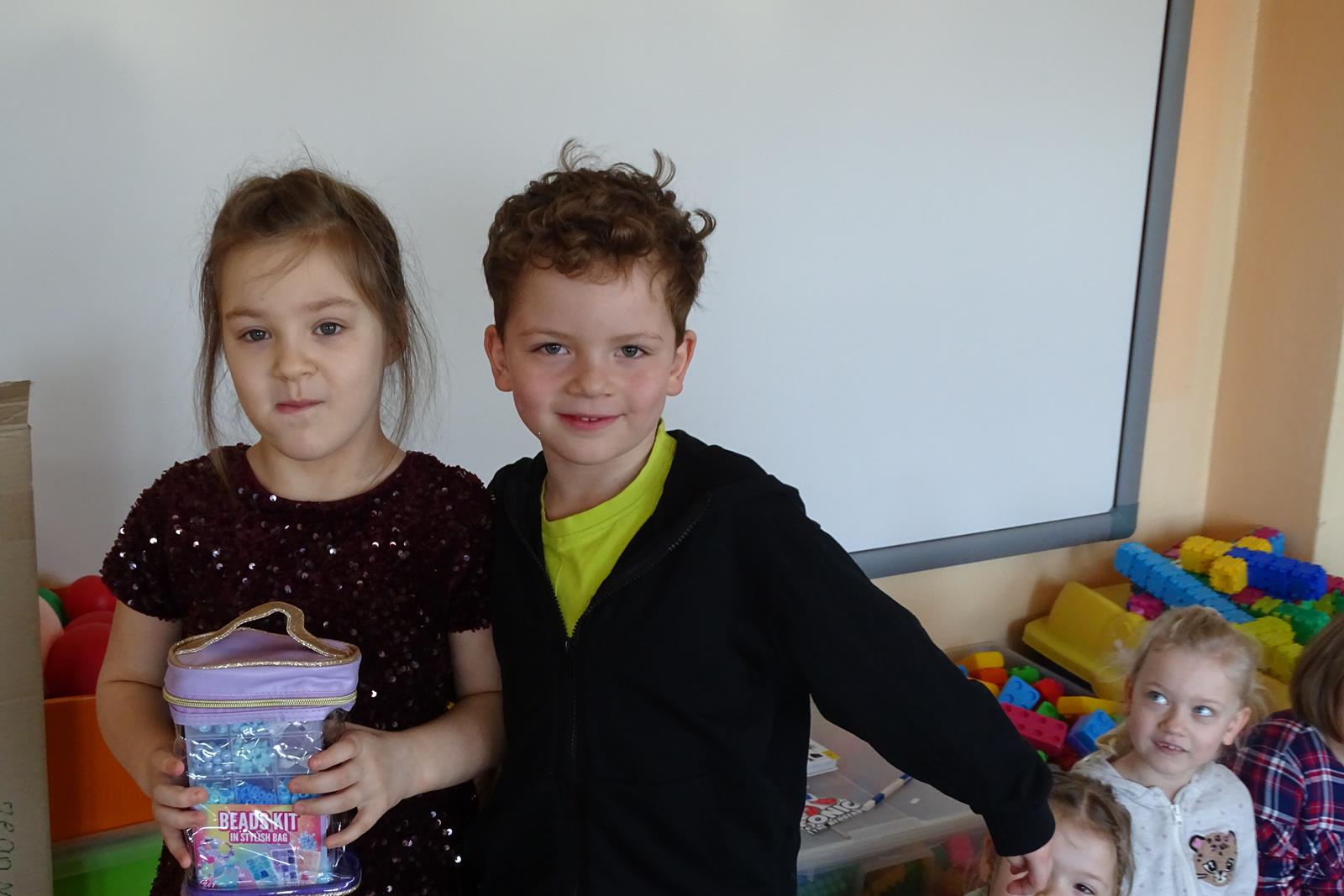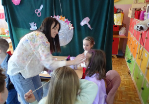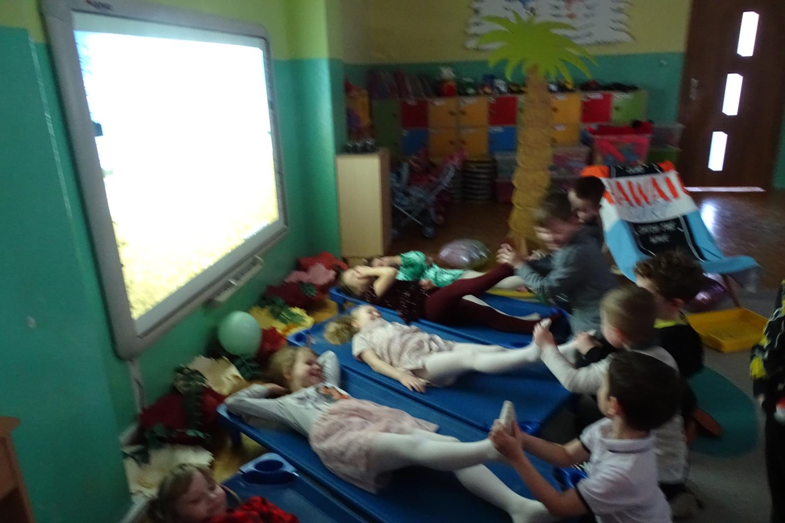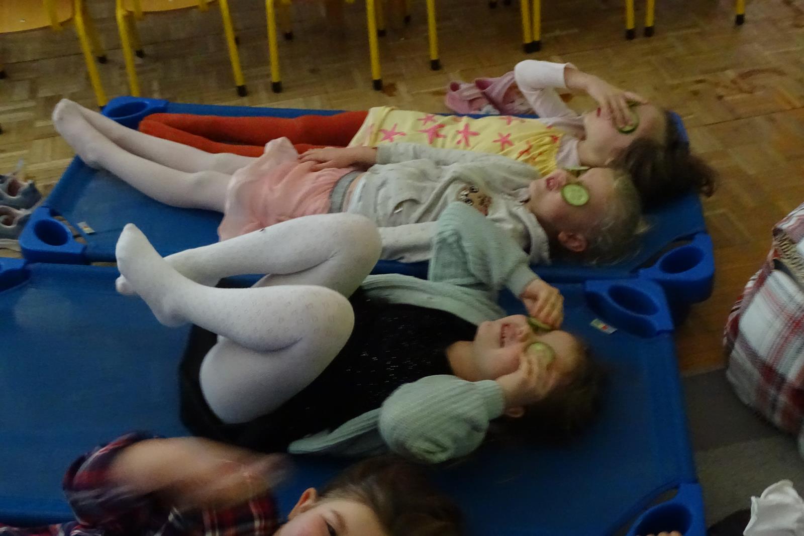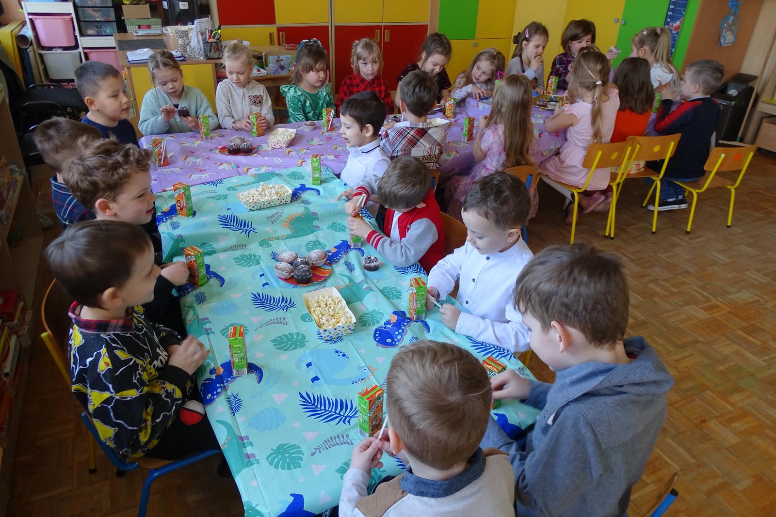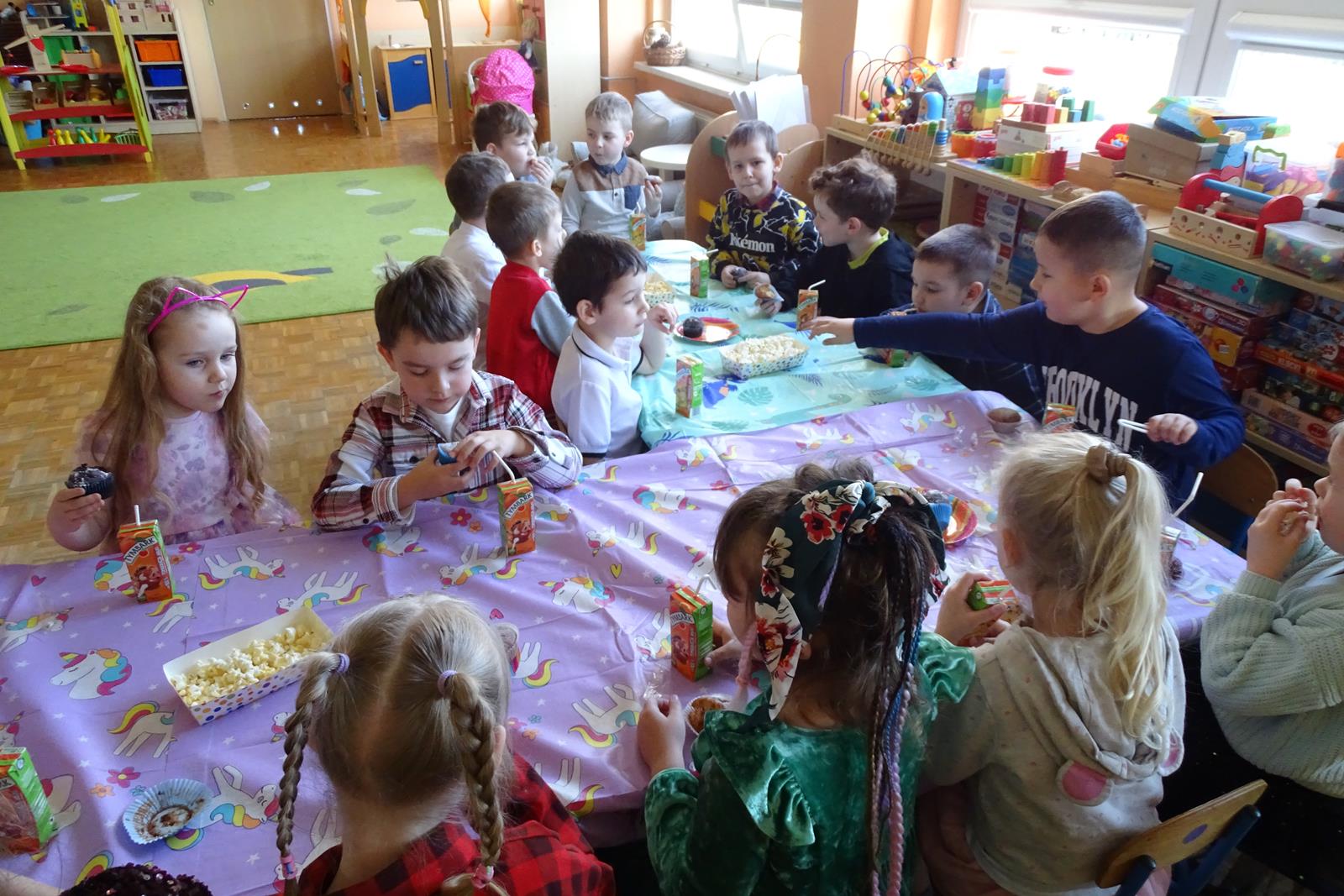 Dzień Kobiet w naszym przedszkolu okazał się niezwykle radosnym i pełnym atrakcji wydarzeniem, które na długo zapadnie w pamięci wszystkich dzieci. Już od samego rana dało się odczuć wyjątkową, ciepłą atmosferę, a dziewczynki mogły poczuć się docenione i wyróżnione. Na początek przygotowano dla nich niecodzienną niespodziankę – wizytę w przedszkolnym SPA. W otoczeniu spokojnej, relaksacyjnej muzyki małe kobietki mogły się wyciszyć i odpocząć, a chłopcy z dużym zaangażowaniem wcielili się w rolę masażystów, wykonując delikatne masaże stóp. Był to moment zarówno odprężenia, jak i świetnej zabawy, który wywołał mnóstwo uśmiechów i pozytywnych emocji.Kolejnym punktem programu była wizyta w „salonie fryzjerskim”, gdzie powstawały niezwykle pomysłowe i kolorowe fryzury. Dziewczynkom zaplatano warkocze, ozdabiano włosy brokatem oraz błyszczącymi dodatkami, dzięki czemu każda z nich mogła poczuć się jak mała księżniczka. Co ciekawe, także chłopcy chętnie wzięli udział w tej zabawie, decydując się na kolorowe stylizacje. Nie zabrakło również innych kreatywnych atrakcji. Dzieci miały możliwość wykonania brokatowych tatuaży oraz ozdabiania paznokci różnorodnymi kolorami i błyszczącymi elementami. Tego typu aktywności rozwijały wyobraźnię i zdolności manualne, a jednocześnie dostarczały mnóstwo radości i okazji do wspólnego spędzania czasu. Na zakończenie tego wyjątkowego dnia na wszystkich czekał słodki poczęstunek przygotowany przez nasze wspaniałe mamy, za co serdecznie dziękujemy.