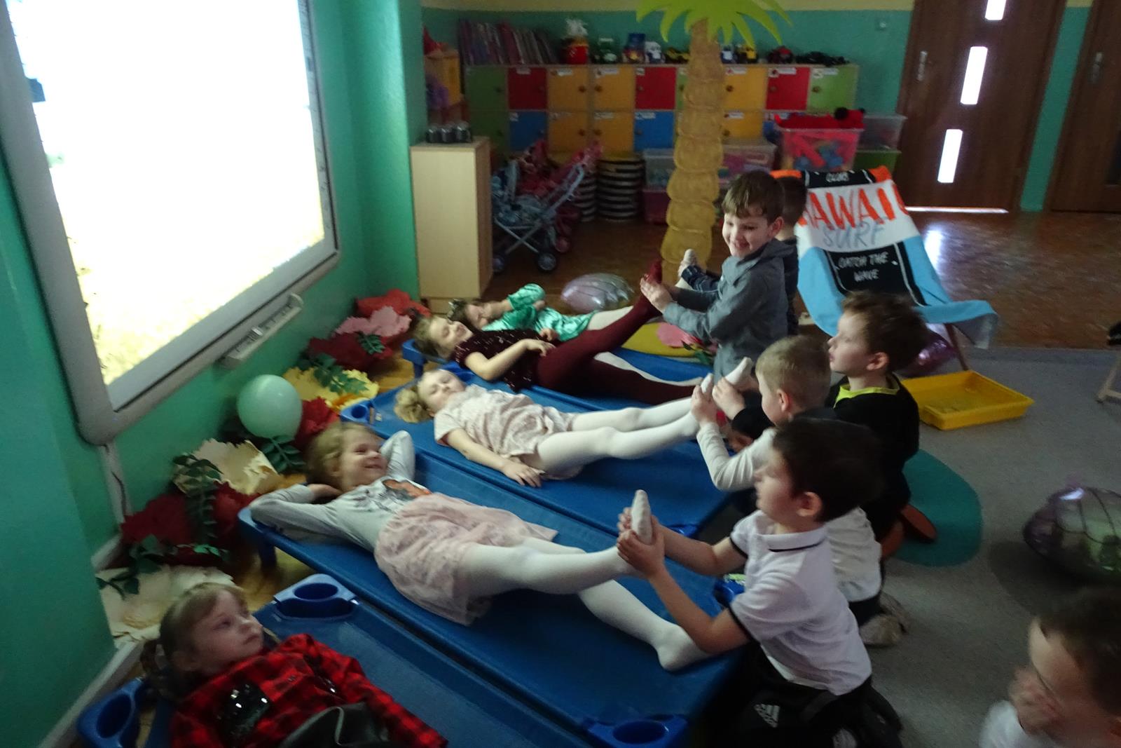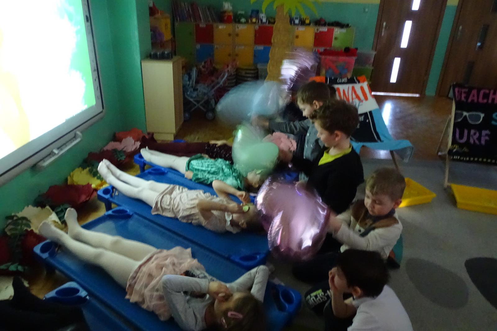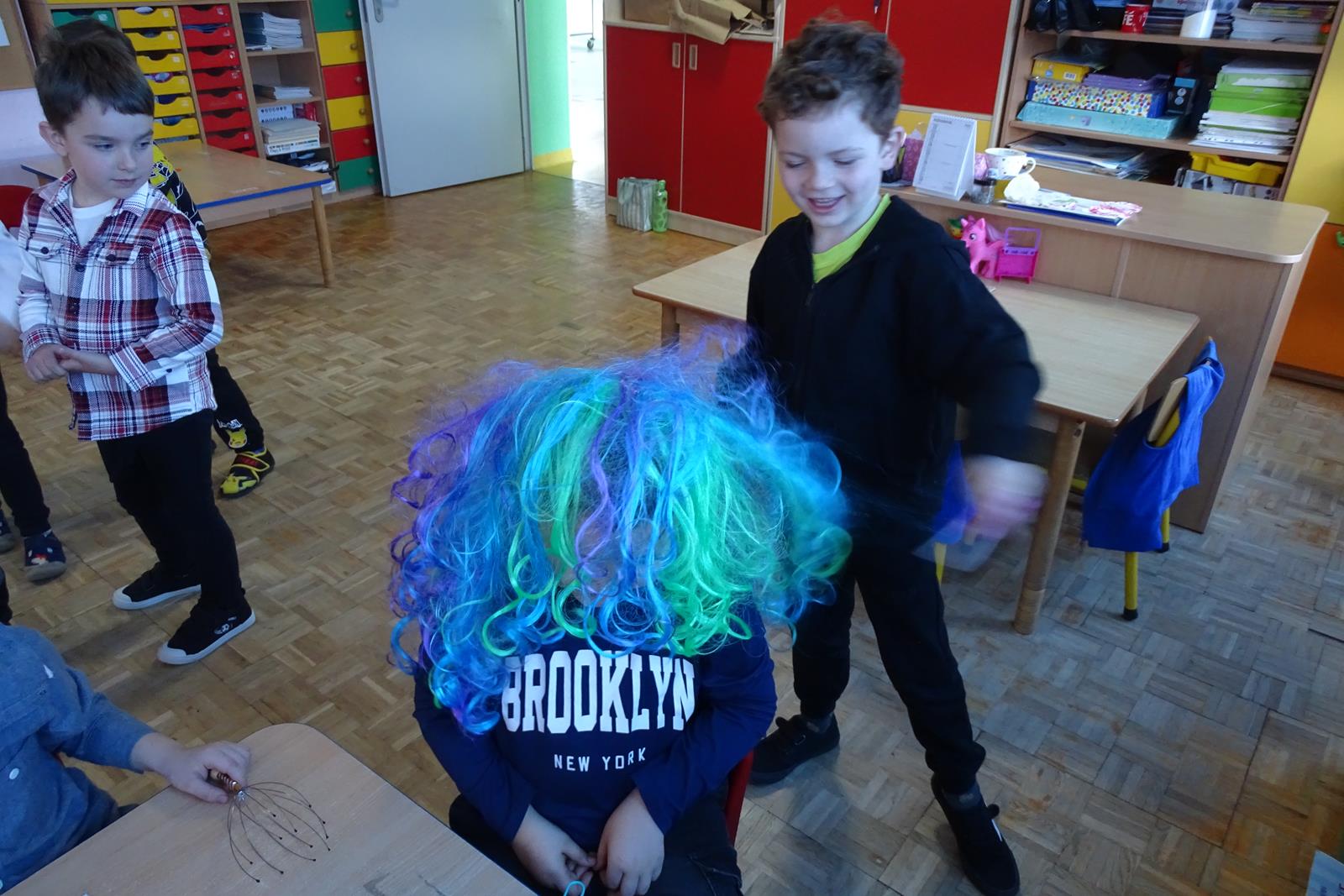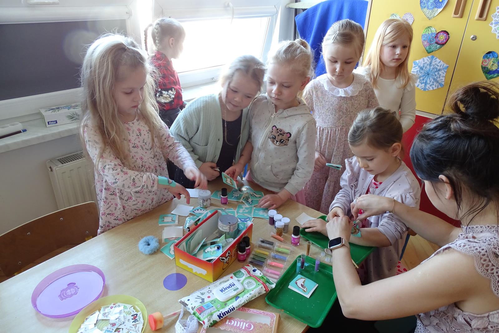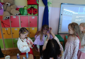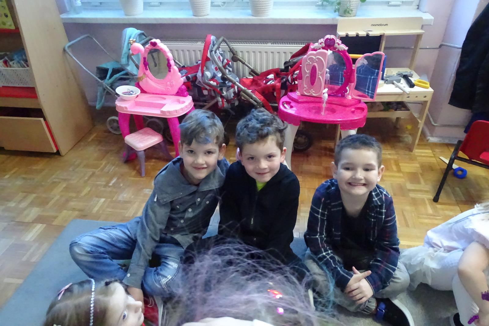 Dzień Kobiet w naszym przedszkolu okazał się niezwykle radosnym i pełnym atrakcji wydarzeniem, które na długo zapadnie w pamięci wszystkich dzieci. Już od samego rana dało się odczuć wyjątkową, ciepłą atmosferę, a dziewczynki mogły poczuć się docenione i wyróżnione. Na początek przygotowano dla nich niecodzienną niespodziankę – wizytę w przedszkolnym SPA. W otoczeniu spokojnej, relaksacyjnej muzyki małe kobietki mogły się wyciszyć i odpocząć, a chłopcy z dużym zaangażowaniem wcielili się w rolę masażystów, wykonując delikatne masaże stóp. Był to moment zarówno odprężenia, jak i świetnej zabawy, który wywołał mnóstwo uśmiechów i pozytywnych emocji.Kolejnym punktem programu była wizyta w „salonie fryzjerskim”, gdzie powstawały niezwykle pomysłowe i kolorowe fryzury. Dziewczynkom zaplatano warkocze, ozdabiano włosy brokatem oraz błyszczącymi dodatkami, dzięki czemu każda z nich mogła poczuć się jak mała księżniczka. Co ciekawe, także chłopcy chętnie wzięli udział w tej zabawie, decydując się na kolorowe stylizacje. Nie zabrakło również innych kreatywnych atrakcji. Dzieci miały możliwość wykonania brokatowych tatuaży oraz ozdabiania paznokci różnorodnymi kolorami i błyszczącymi elementami. Tego typu aktywności rozwijały wyobraźnię i zdolności manualne, a jednocześnie dostarczały mnóstwo radości i okazji do wspólnego spędzania czasu. Na zakończenie tego wyjątkowego dnia na wszystkich czekał słodki poczęstunek przygotowany przez nasze wspaniałe mamy, za co serdecznie dziękujemy.