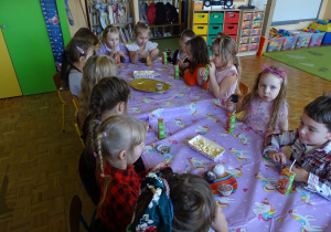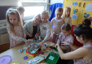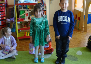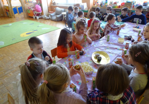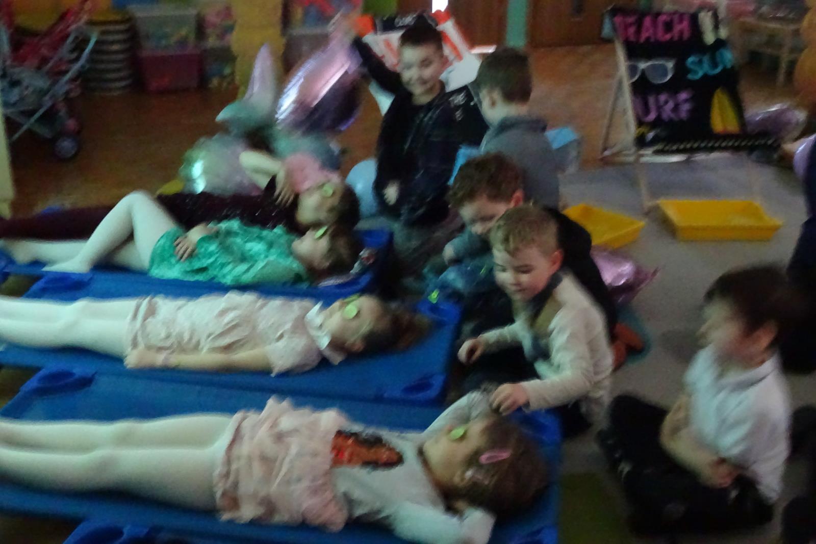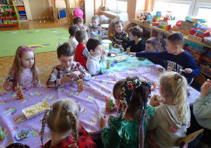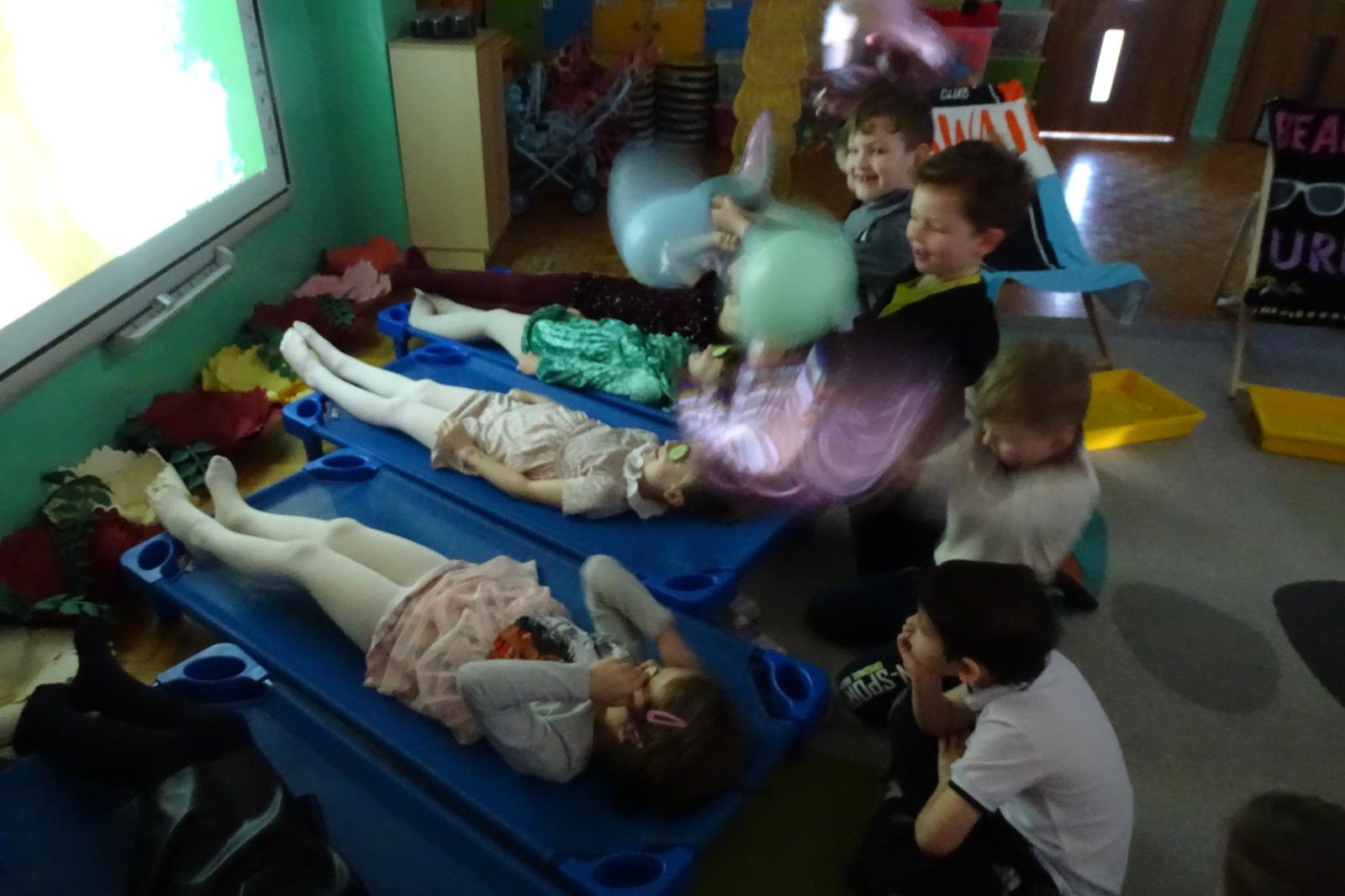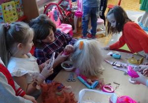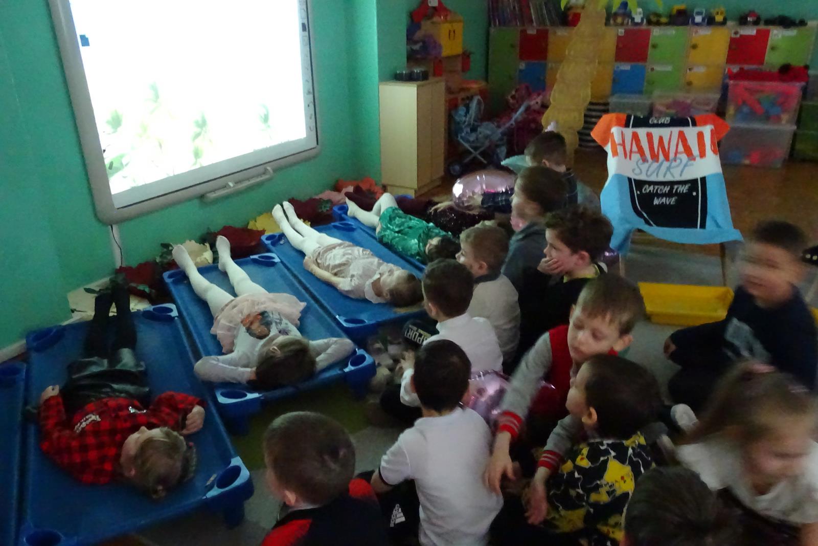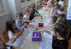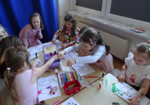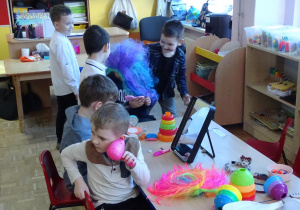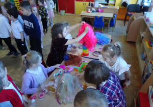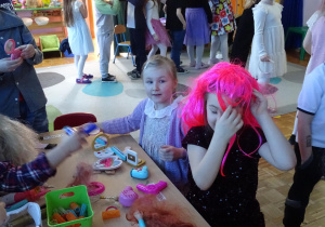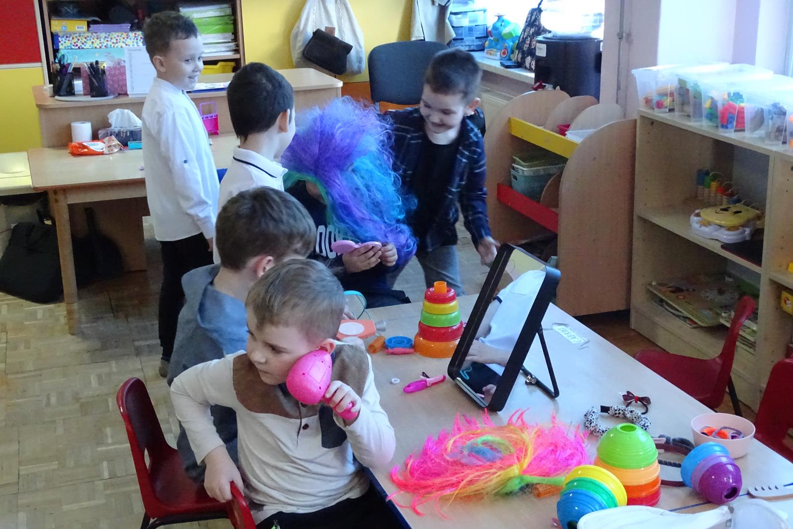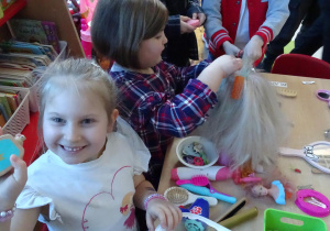Dzień Kobiet w naszym przedszkolu okazał się niezwykle radosnym i pełnym atrakcji wydarzeniem, które na długo zapadnie w pamięci wszystkich dzieci. Już od samego rana dało się odczuć wyjątkową, ciepłą atmosferę, a dziewczynki mogły poczuć się docenione i wyróżnione. Na początek przygotowano dla nich niecodzienną niespodziankę – wizytę w przedszkolnym SPA. W otoczeniu spokojnej, relaksacyjnej muzyki małe kobietki mogły się wyciszyć i odpocząć, a chłopcy z dużym zaangażowaniem wcielili się w rolę masażystów, wykonując delikatne masaże stóp. Był to moment zarówno odprężenia, jak i świetnej zabawy, który wywołał mnóstwo uśmiechów i pozytywnych emocji.Kolejnym punktem programu była wizyta w „salonie fryzjerskim”, gdzie powstawały niezwykle pomysłowe i kolorowe fryzury. Dziewczynkom zaplatano warkocze, ozdabiano włosy brokatem oraz błyszczącymi dodatkami, dzięki czemu każda z nich mogła poczuć się jak mała księżniczka. Co ciekawe, także chłopcy chętnie wzięli udział w tej zabawie, decydując się na kolorowe stylizacje. Nie zabrakło również innych kreatywnych atrakcji. Dzieci miały możliwość wykonania brokatowych tatuaży oraz ozdabiania paznokci różnorodnymi kolorami i błyszczącymi elementami. Tego typu aktywności rozwijały wyobraźnię i zdolności manualne, a jednocześnie dostarczały mnóstwo radości i okazji do wspólnego spędzania czasu. Na zakończenie tego wyjątkowego dnia na wszystkich czekał słodki poczęstunek przygotowany przez nasze wspaniałe mamy, za co serdecznie dziękujemy.