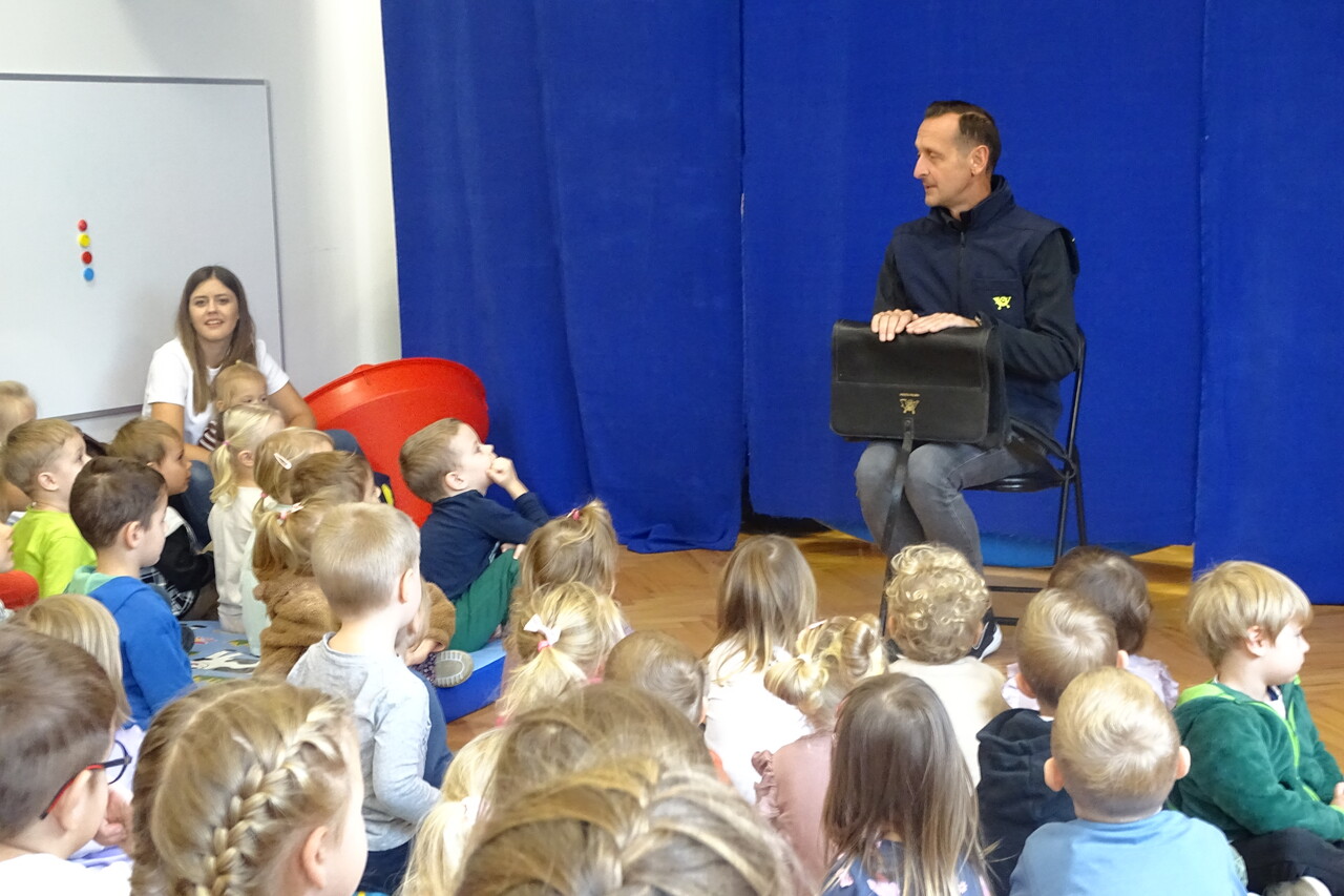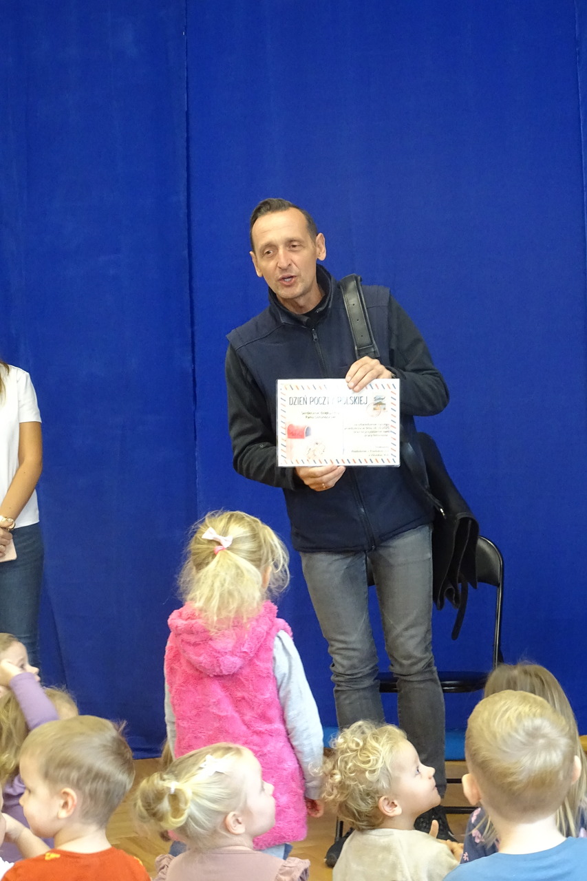 18 października przypada Dzień Poczty Polskiej. Z tej okazji zaprosiliśmy do naszego przedszkola listonosza pana Jacka Kratę. Pan Jacek opowiedział dzieciom o swojej pracy i pracy innych pracowników poczty. Wszystkim listonoszom i pracownikom poczty składamy wyrazy uznania za codzienny wysiłek i życzymy samych słonecznych dni. Dziękujemy panu Jackowi za odwiedziny.