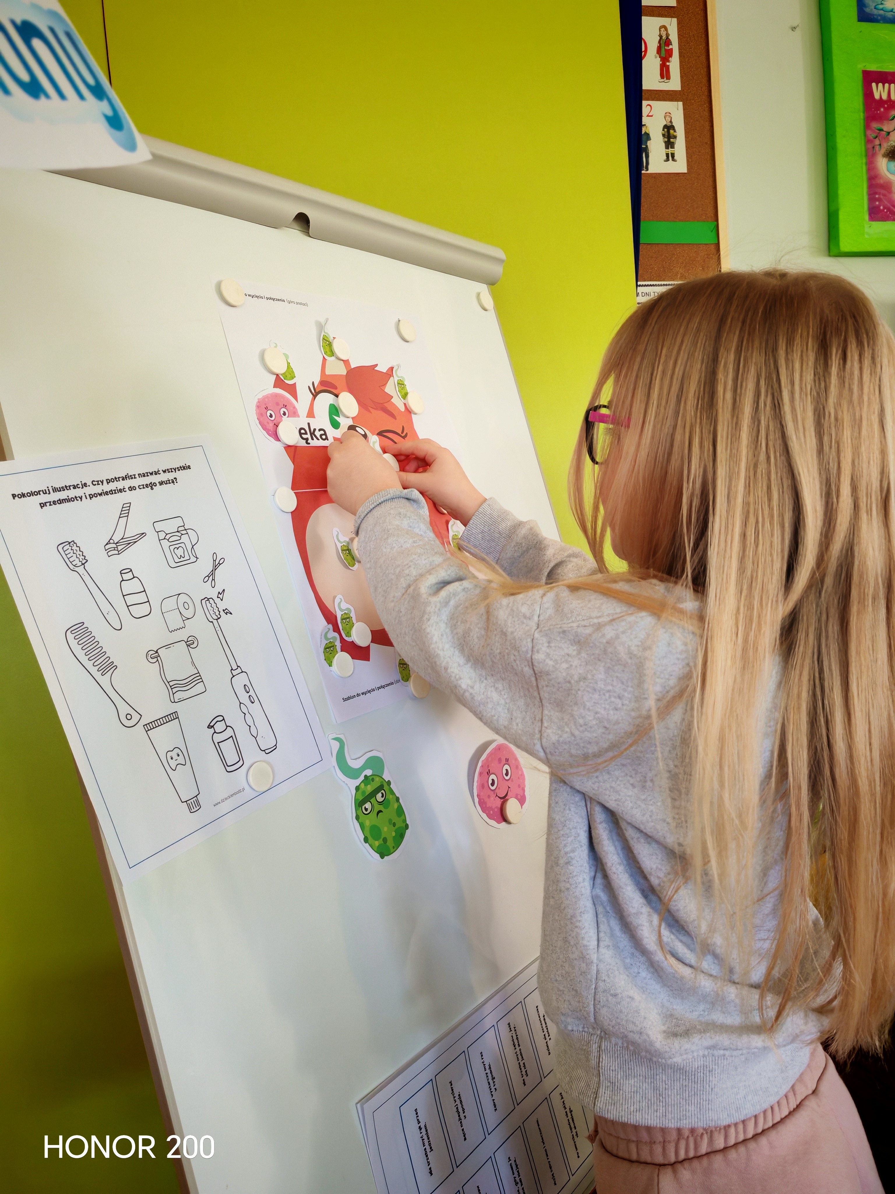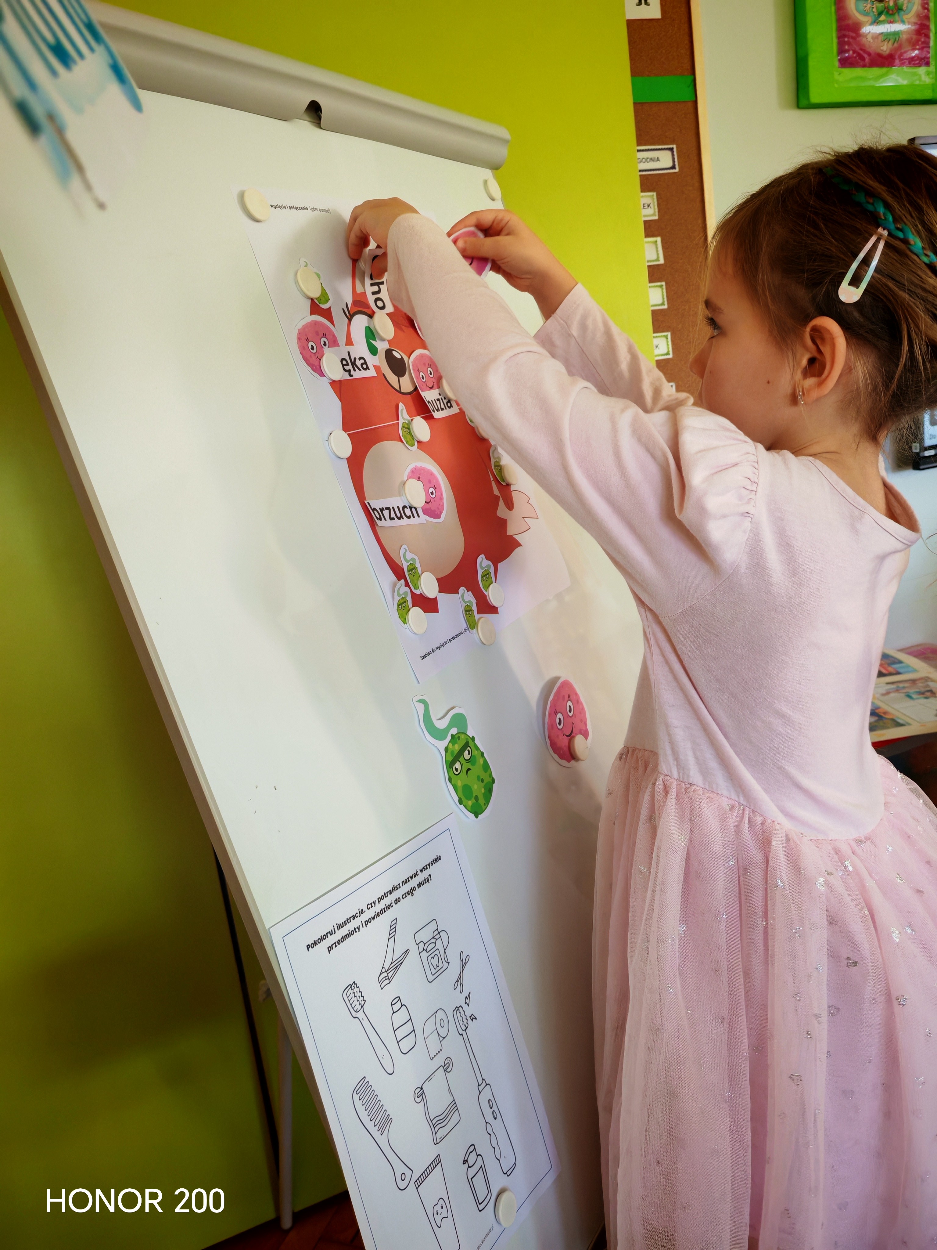 Towarzyszyła nam Lisica Rudka, dzięki której przedszkolaki nauczyły się, co jest nam potrzebne do kąpieli i jak się dokładnie umyć.