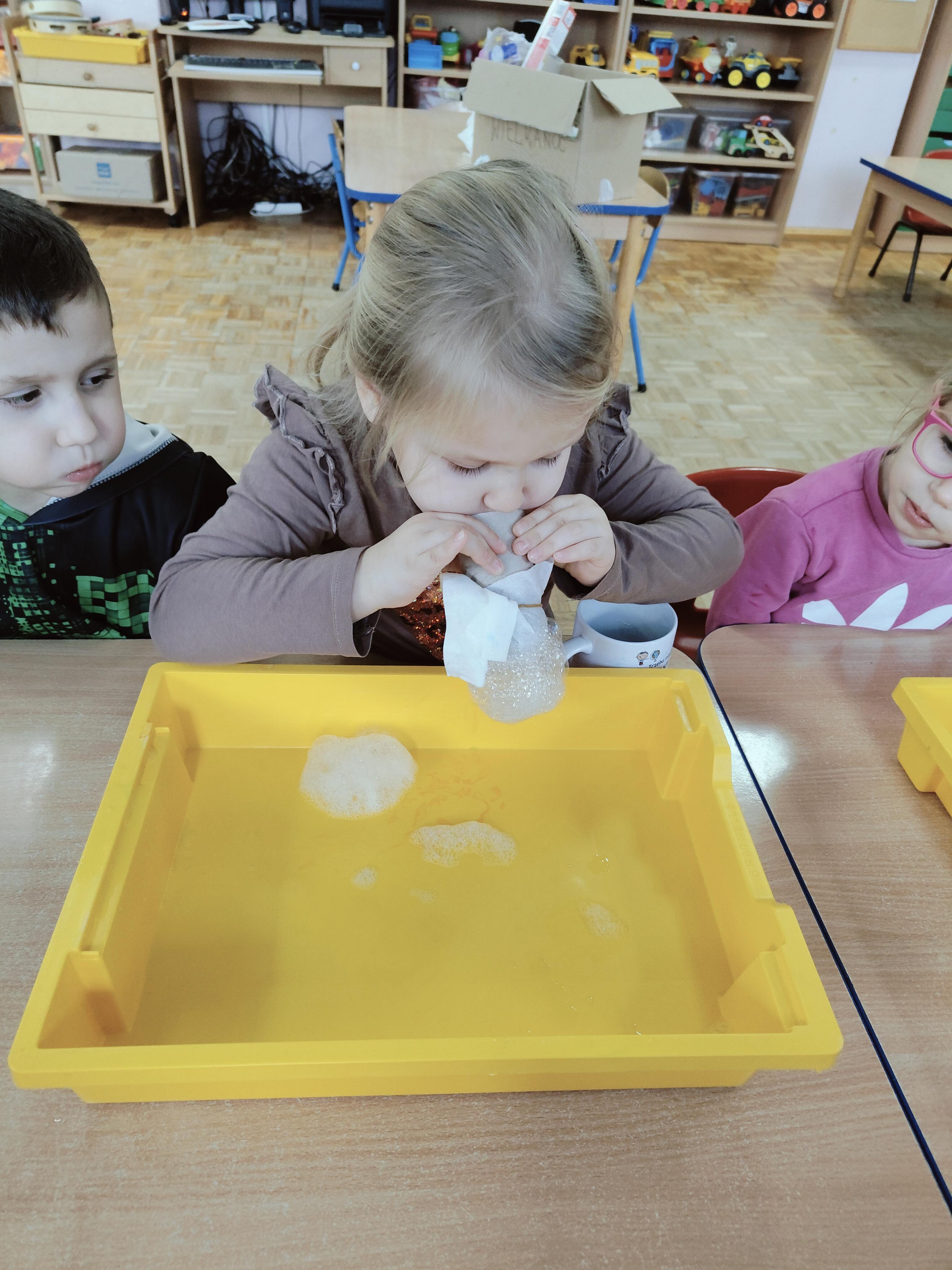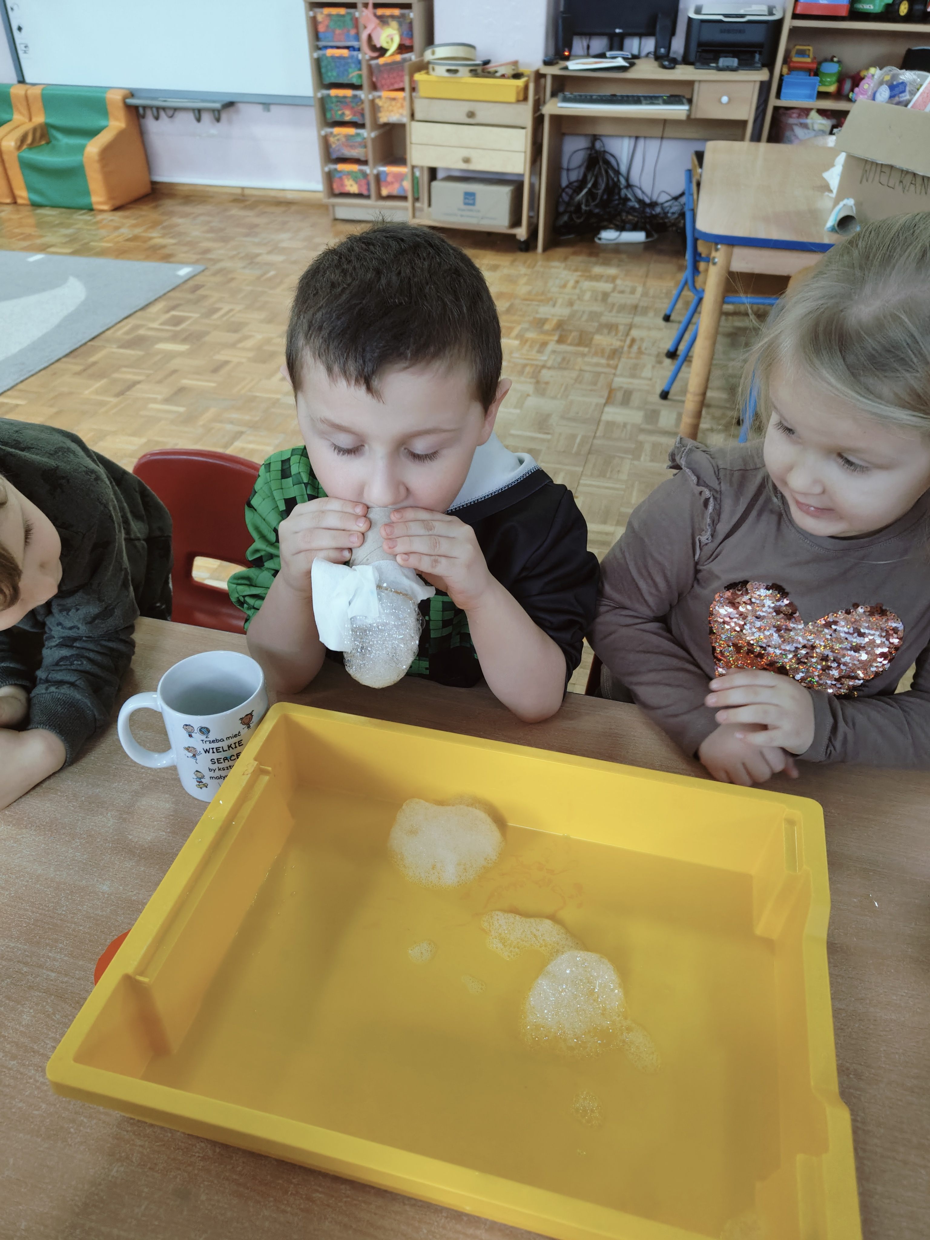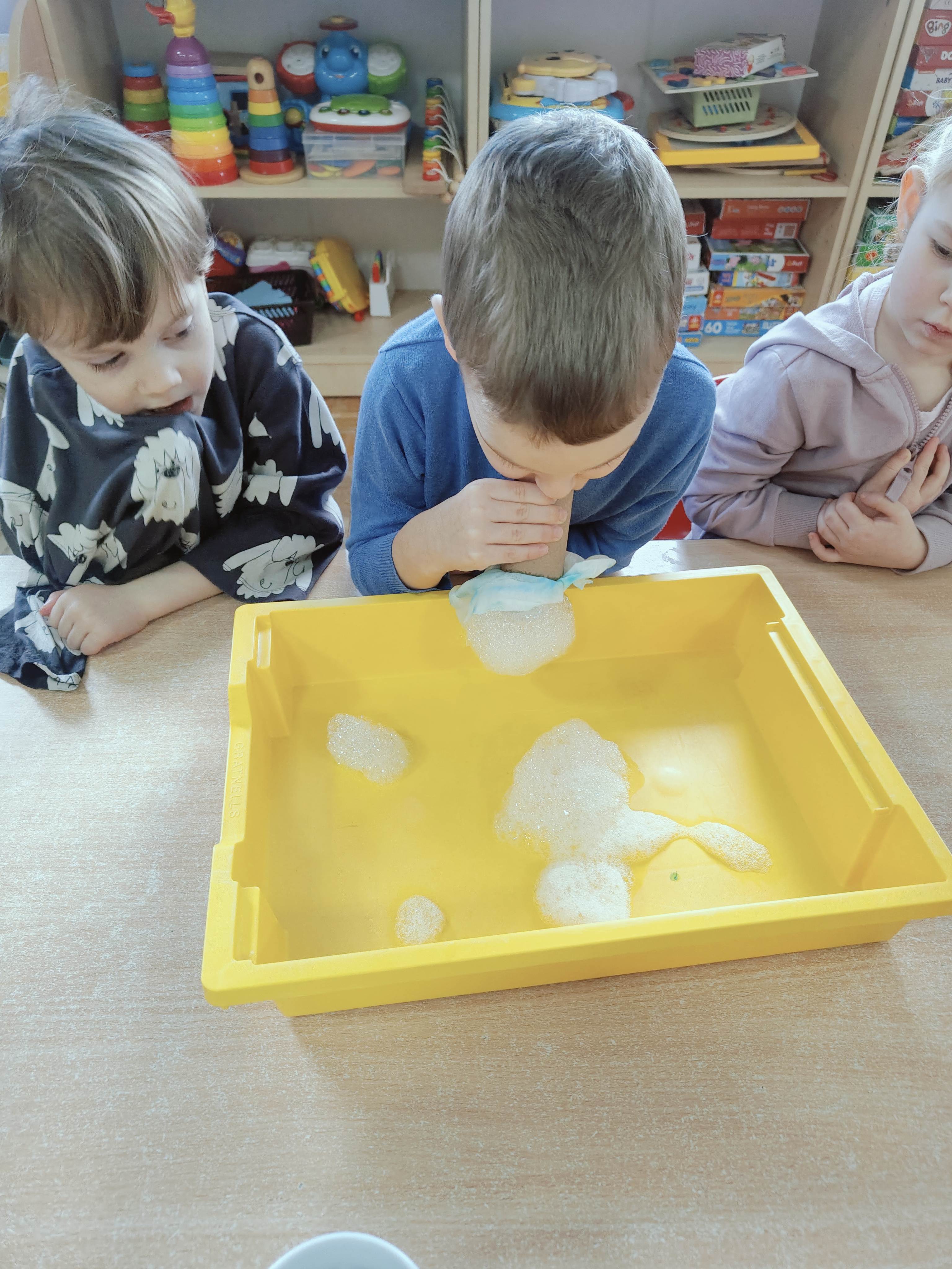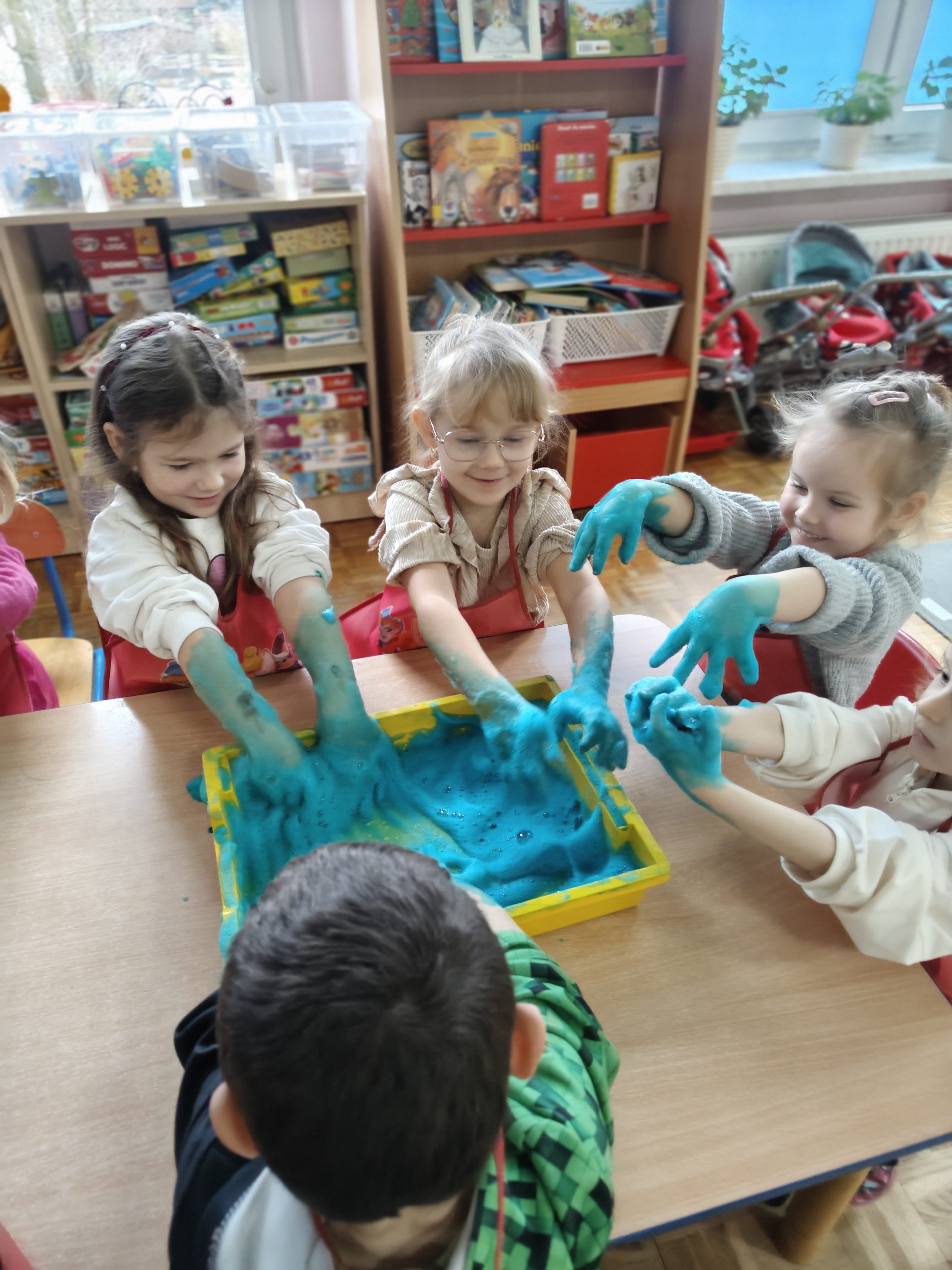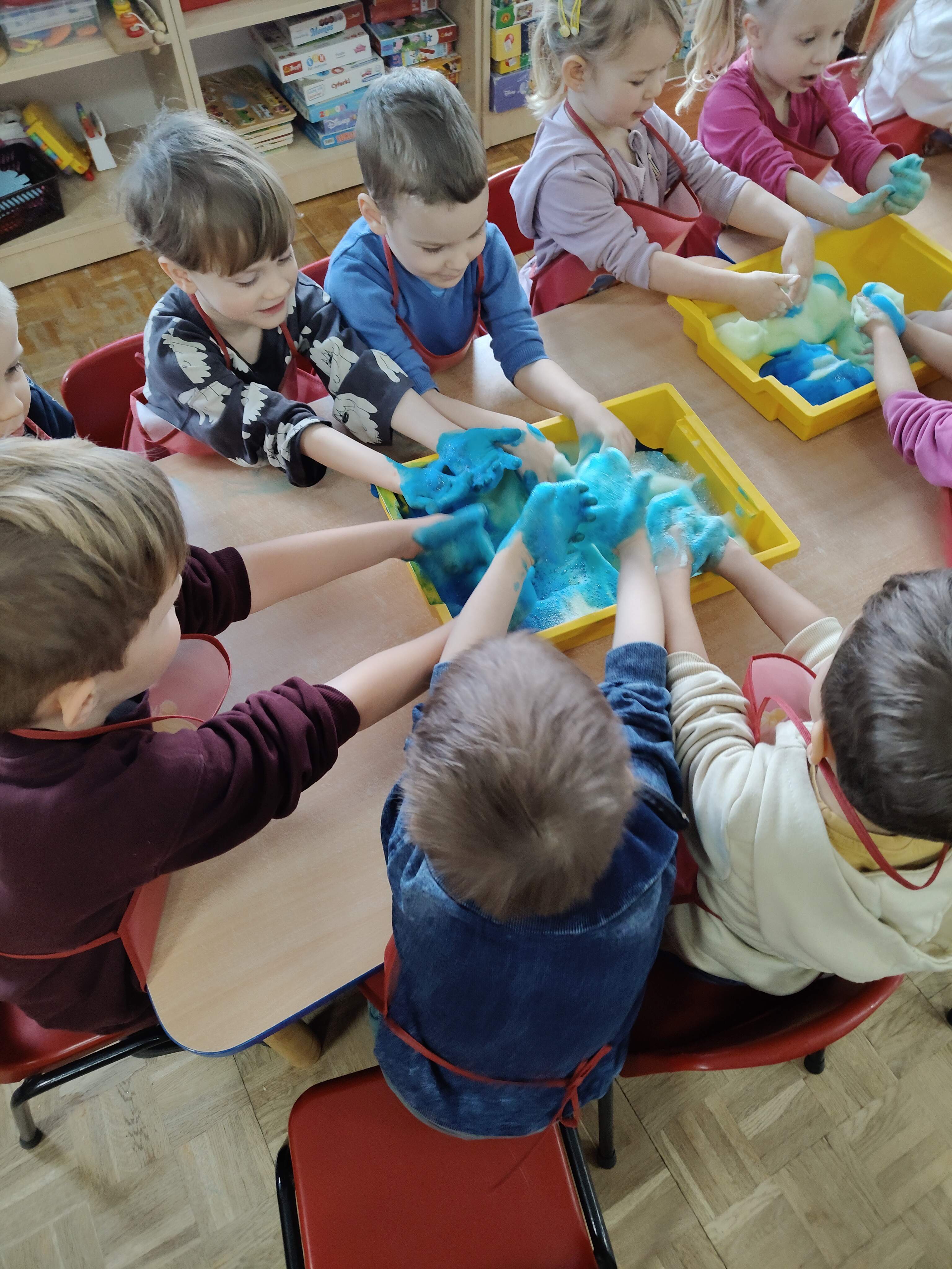 To był dzień pełen radości, śmiechu i kreatywnej zabawy. Poznaiśmy Rudkę- prawdziwego czyściocha, który doskonale wie jak się kąpać, aby zmyć z siebie cały brud. Wykonaliśmy również czyściochową fotoramkę,w której nasze czyściochowe przedszkolaki mogły zrobić sobie pamiątkowe zdjęcia. Przy piosence " Hop do kąpieli" uczyliśmy się nazw części ciała oraz jak prawidłowo je myć. Nie zabrakło też eksperymentów- dzieci z ogromnym zaangażowaniem tworzyły pianą, dmuchając w rolki. Na zakończenie powstała kolorowa piana, która pobudziła dziecięcą wyobraźnię i pozwoliła stworzyć prawdziwe piankowe dzieła sztuki.