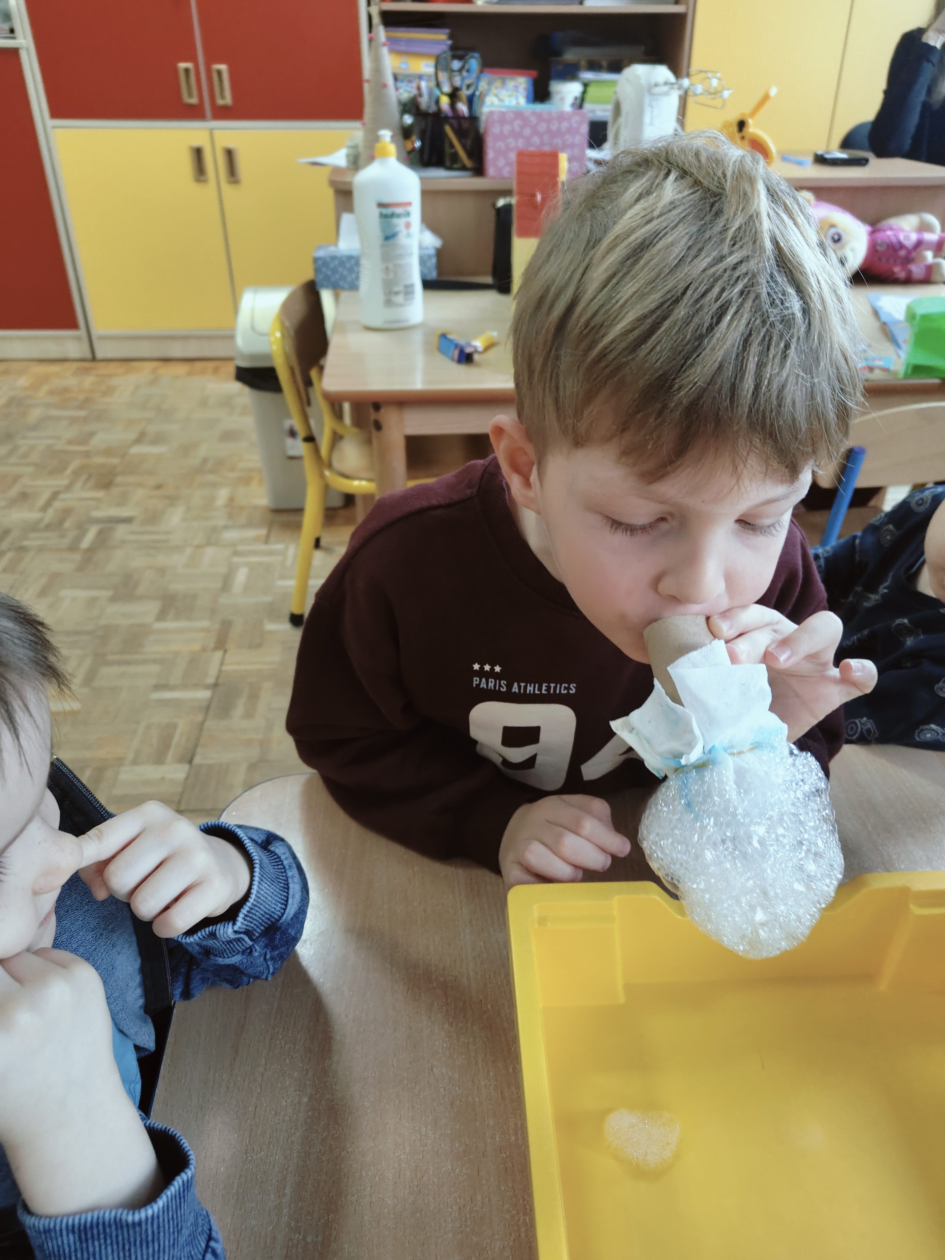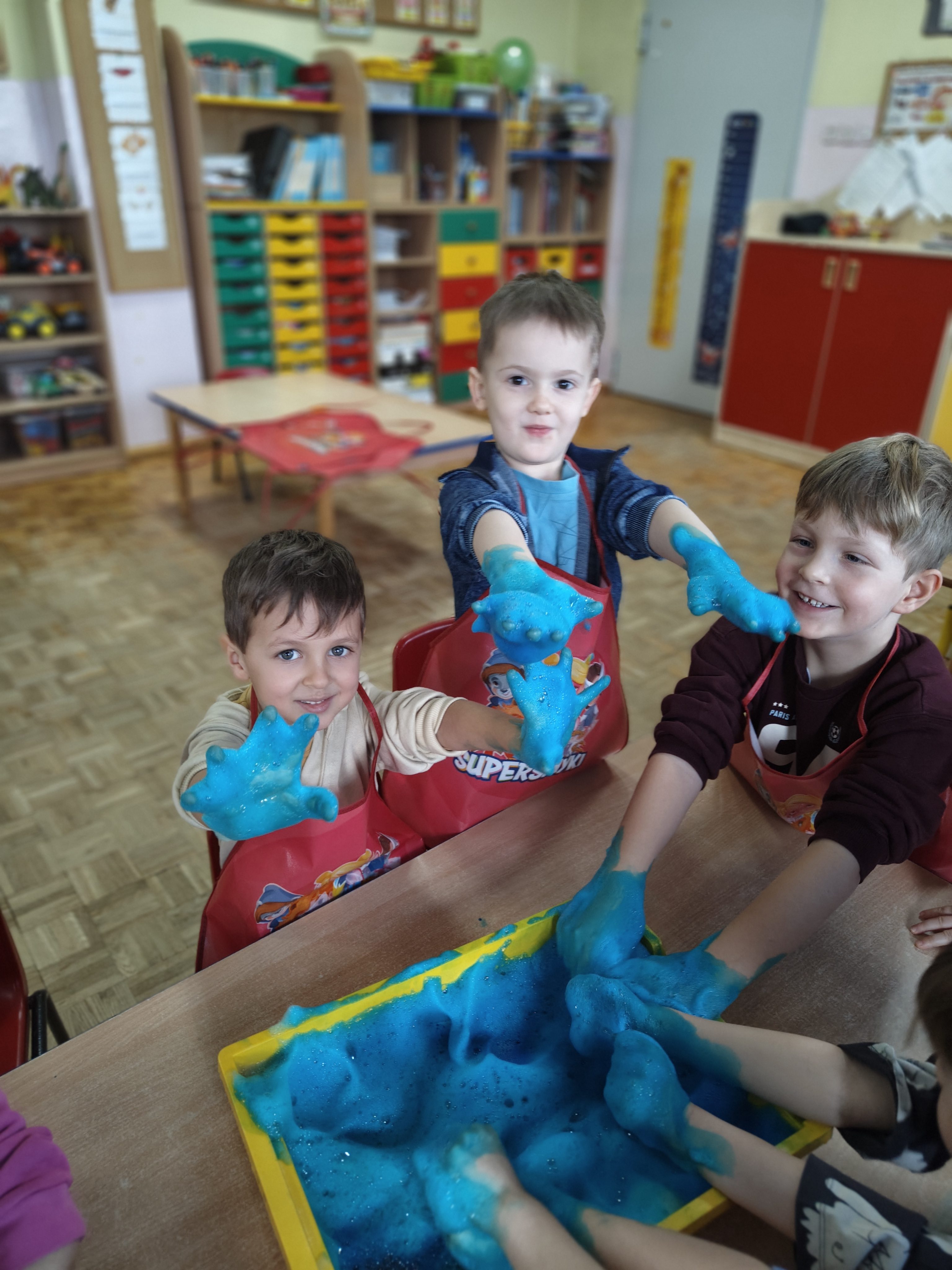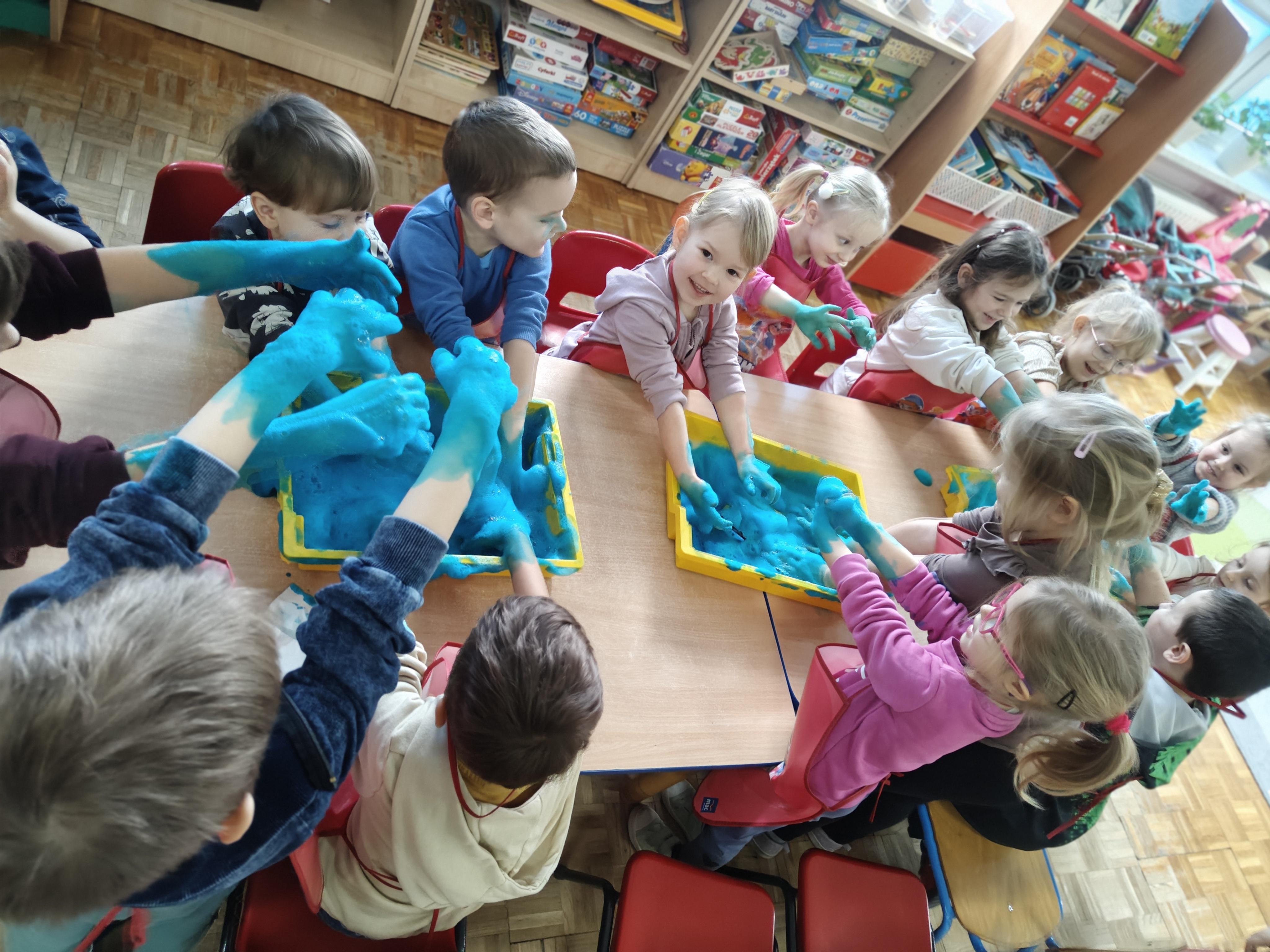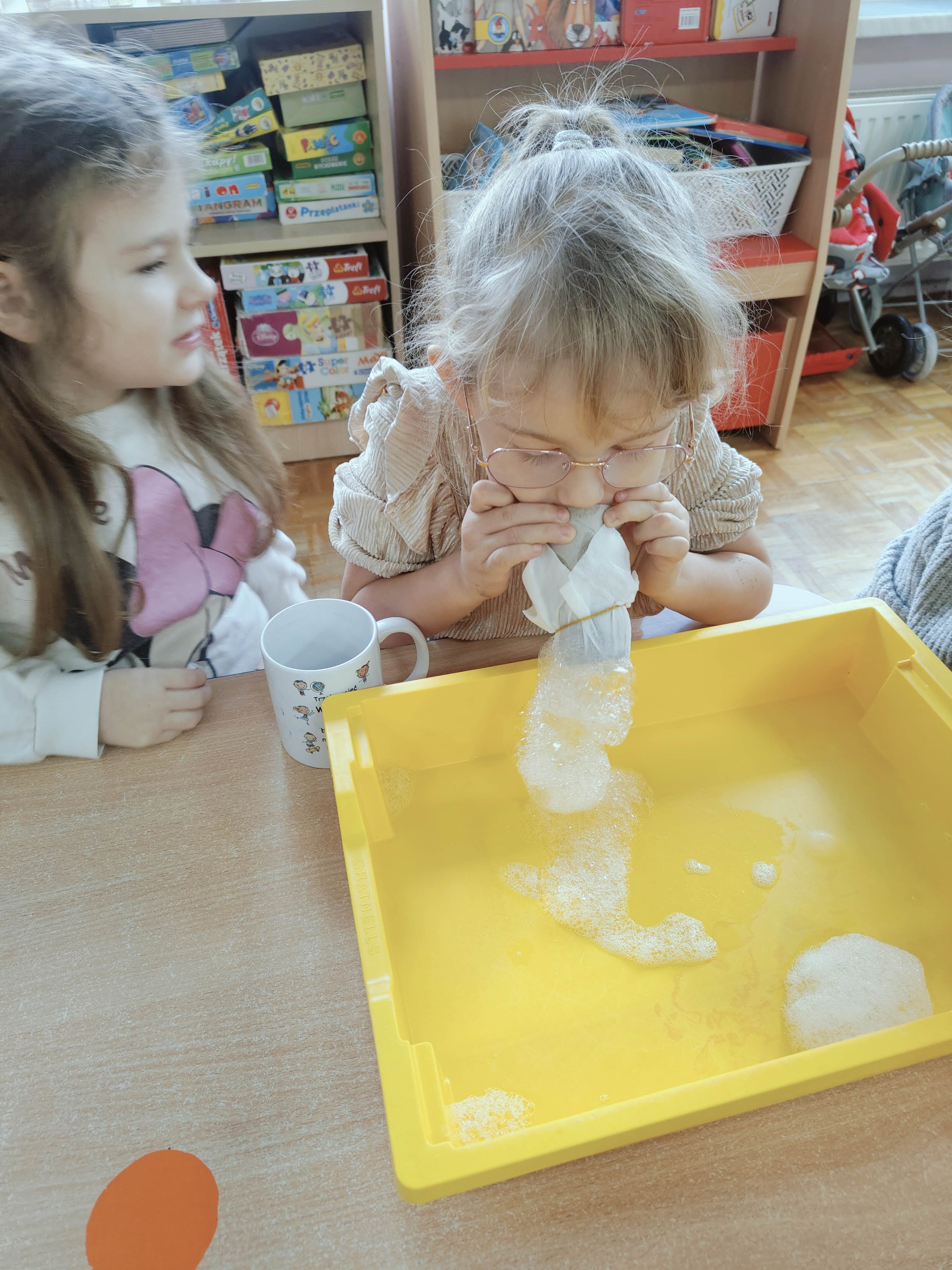 To był dzień pełen radości, śmiechu i kreatywnej zabawy. Poznaiśmy Rudkę- prawdziwego czyściocha, który doskonale wie jak się kąpać, aby zmyć z siebie cały brud. Wykonaliśmy również czyściochową fotoramkę,w której nasze czyściochowe przedszkolaki mogły zrobić sobie pamiątkowe zdjęcia. Przy piosence " Hop do kąpieli" uczyliśmy się nazw części ciała oraz jak prawidłowo je myć. Nie zabrakło też eksperymentów- dzieci z ogromnym zaangażowaniem tworzyły pianą, dmuchając w rolki. Na zakończenie powstała kolorowa piana, która pobudziła dziecięcą wyobraźnię i pozwoliła stworzyć prawdziwe piankowe dzieła sztuki.