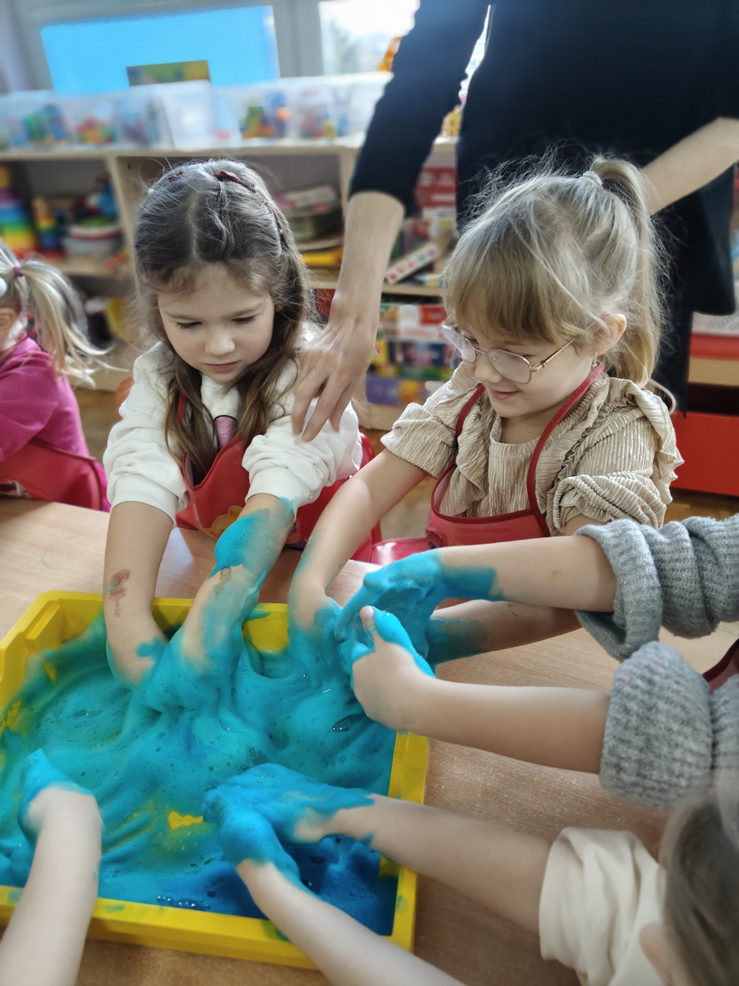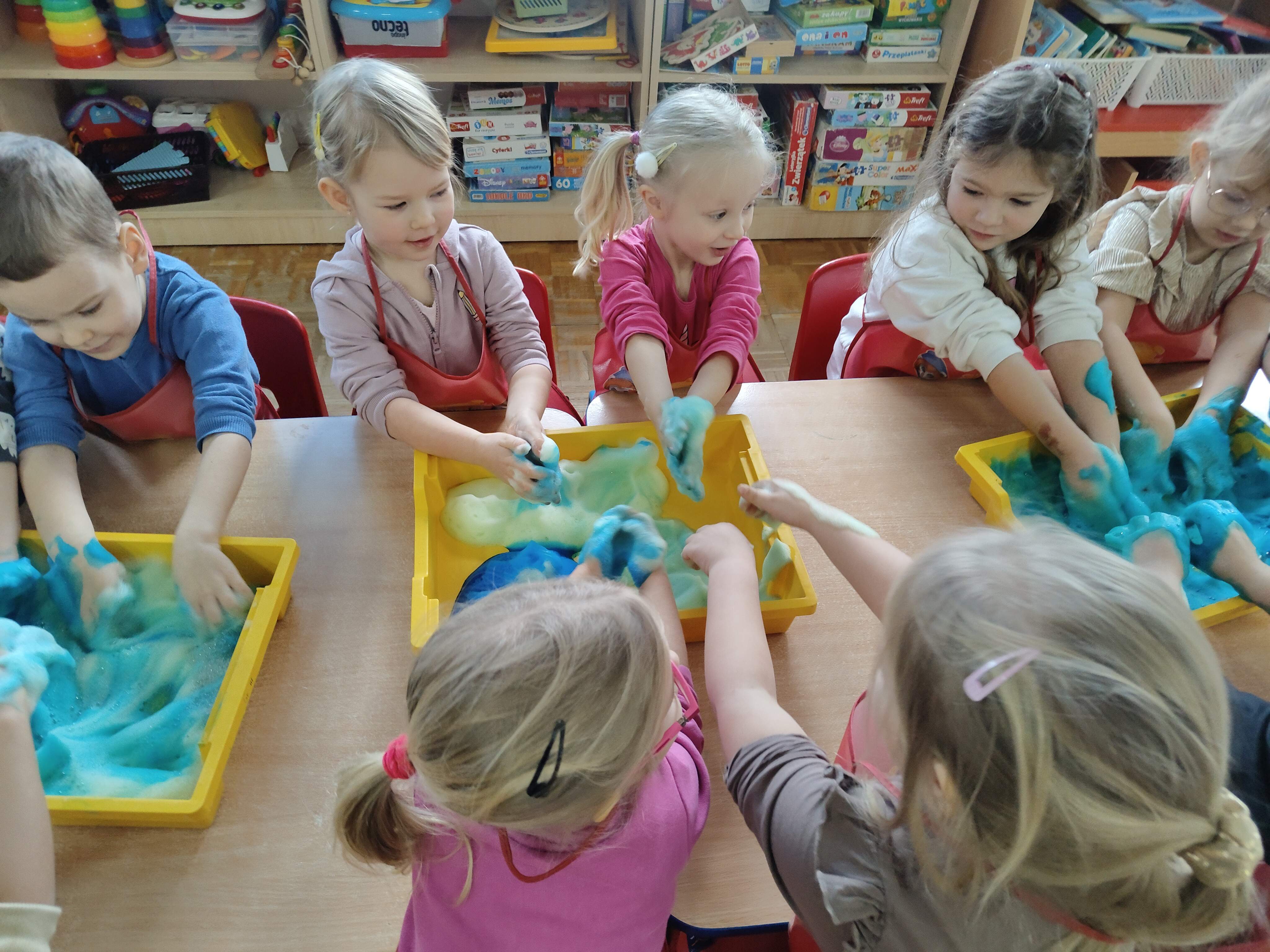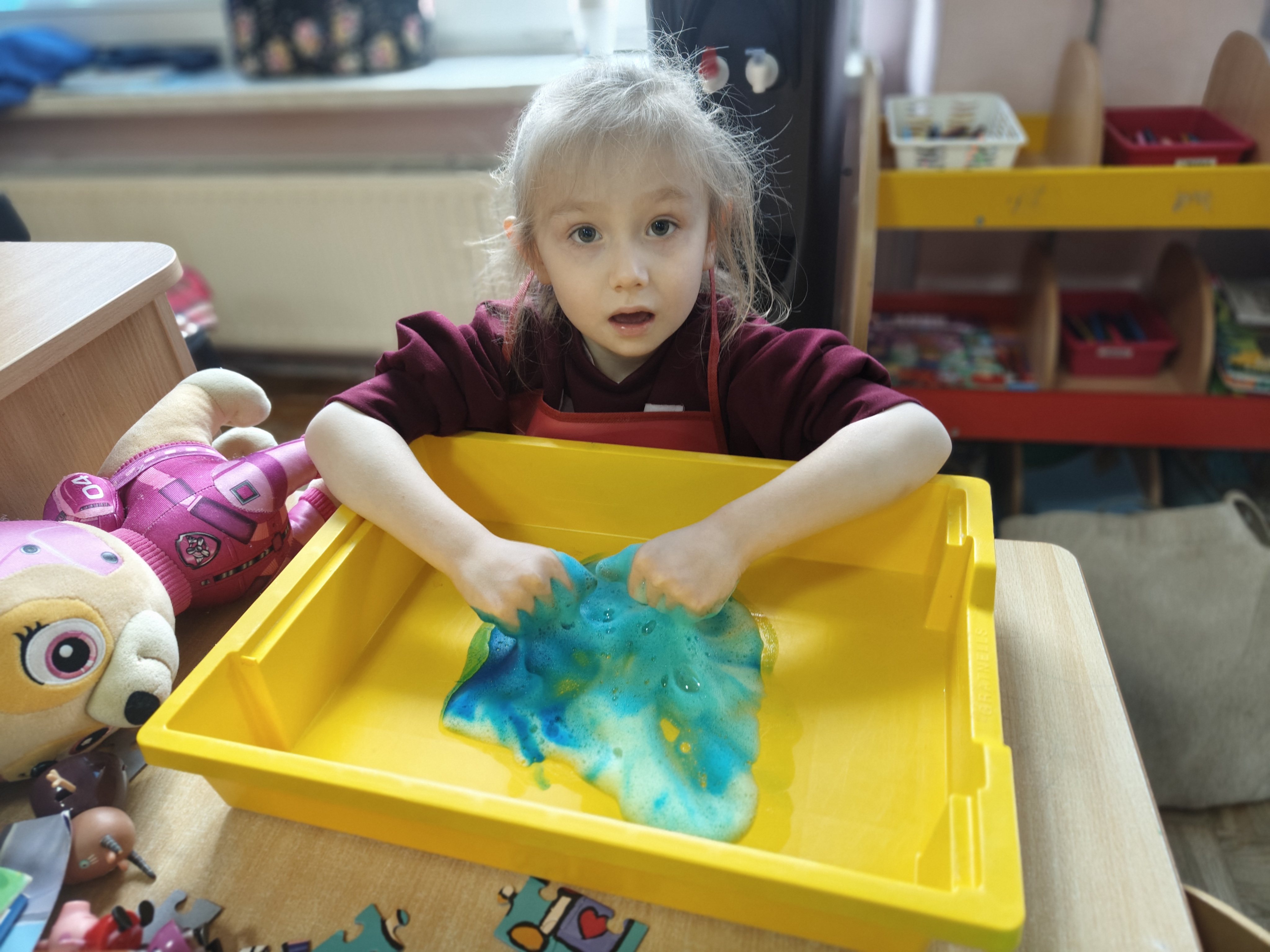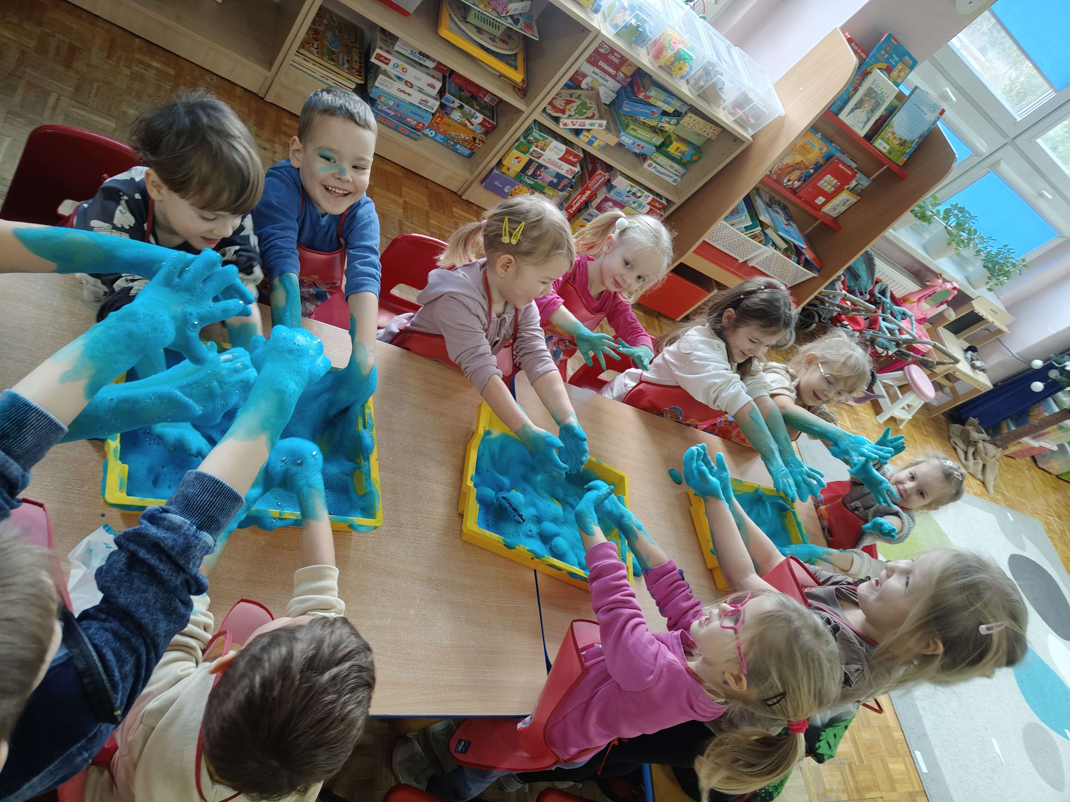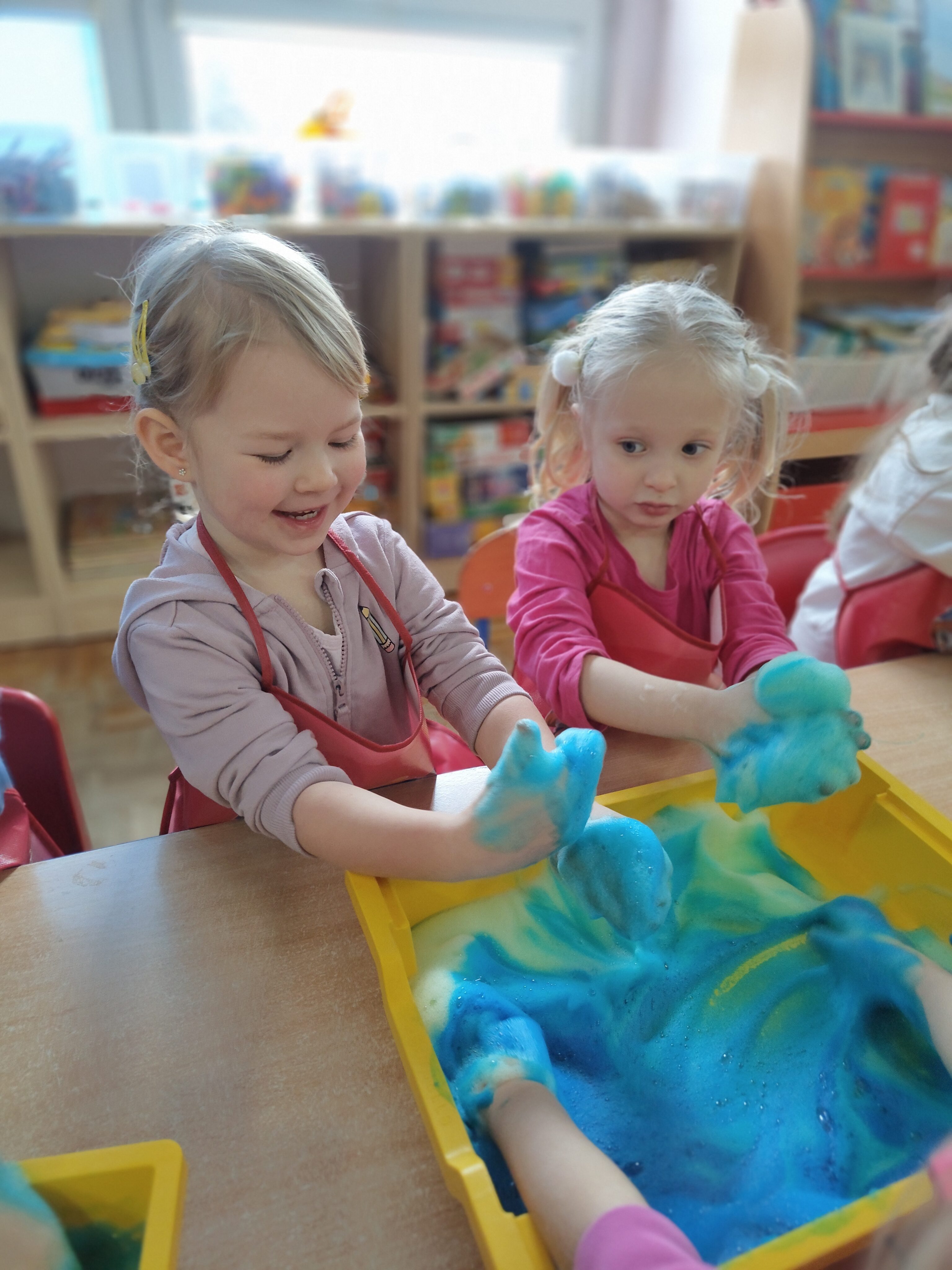 To był dzień pełen radości, śmiechu i kreatywnej zabawy. Poznaiśmy Rudkę- prawdziwego czyściocha, który doskonale wie jak się kąpać, aby zmyć z siebie cały brud. Wykonaliśmy również czyściochową fotoramkę,w której nasze czyściochowe przedszkolaki mogły zrobić sobie pamiątkowe zdjęcia. Przy piosence " Hop do kąpieli" uczyliśmy się nazw części ciała oraz jak prawidłowo je myć. Nie zabrakło też eksperymentów- dzieci z ogromnym zaangażowaniem tworzyły pianą, dmuchając w rolki. Na zakończenie powstała kolorowa piana, która pobudziła dziecięcą wyobraźnię i pozwoliła stworzyć prawdziwe piankowe dzieła sztuki.