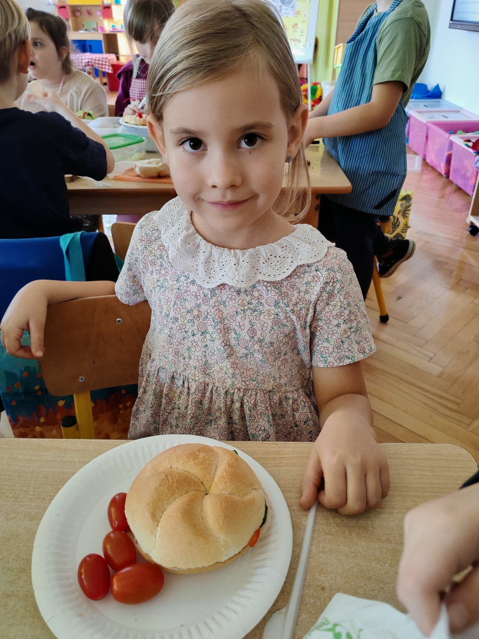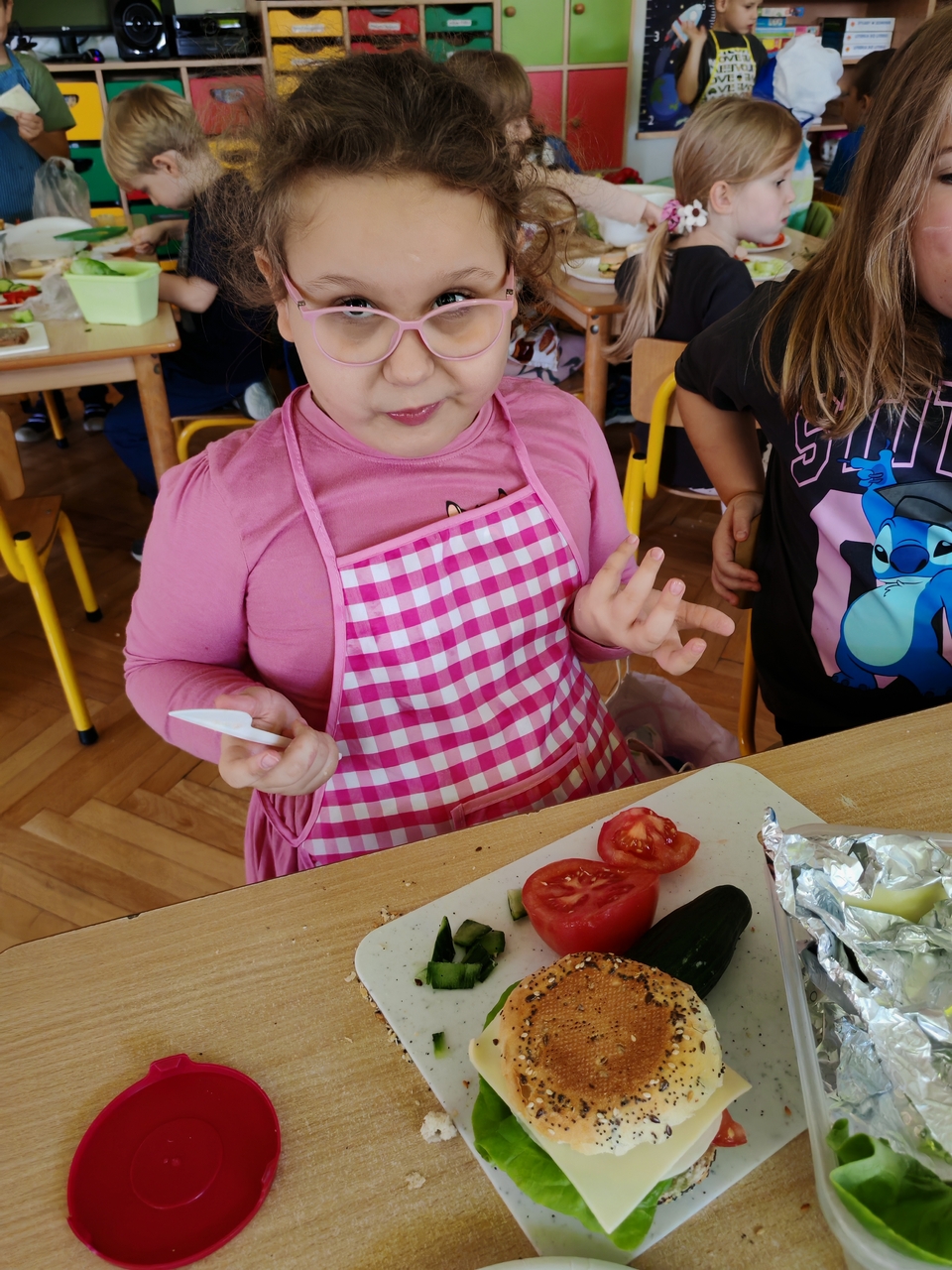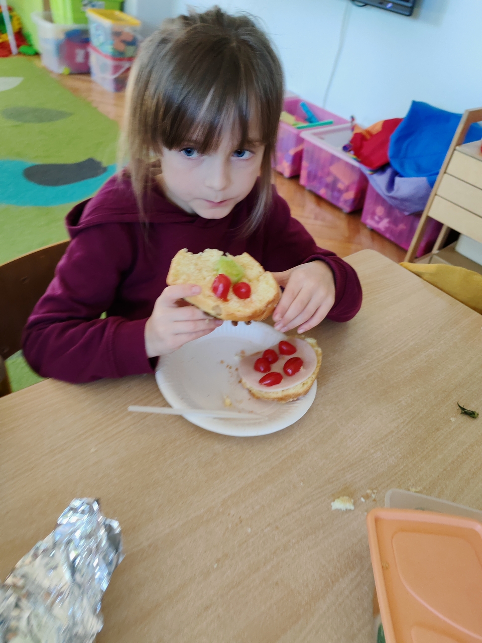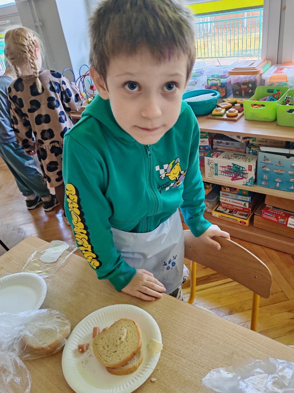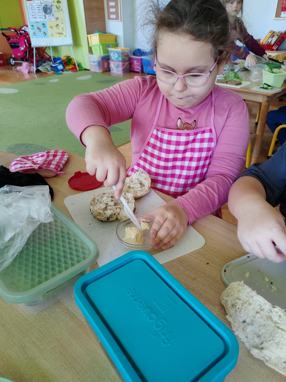 Dzisiaj obchodziliśmy Dzień Zdrowego Jedzenia. Na początku rozmawialiśmy o tym jak ważne są owoce i warzywa, zdrowe odżywianie i czego najlepiej unikać w swojej diecie. Było dużo owocowo- warzywnych zabaw min z ulubioną przez dzieci chustą animacyjną. Na zakończenie dzieci przygotowały z ogromnym zaangażowaniem pyszne kanapeczki ze swoich ulubionych produktów, które później z apetytem zjadły.