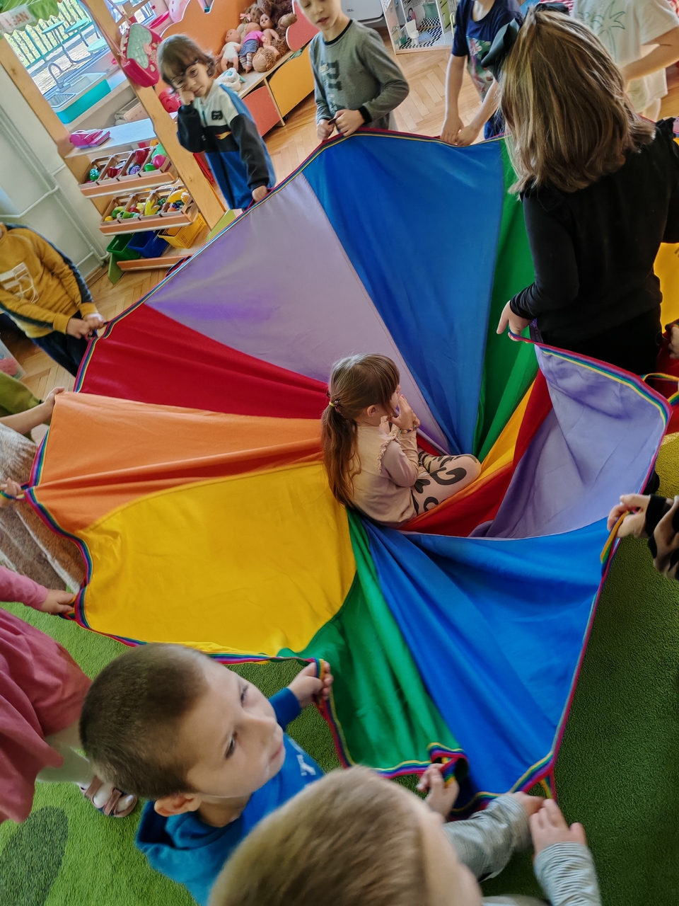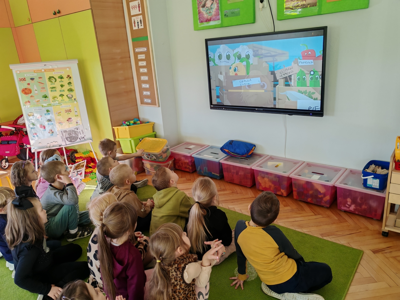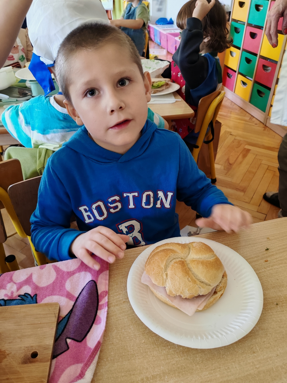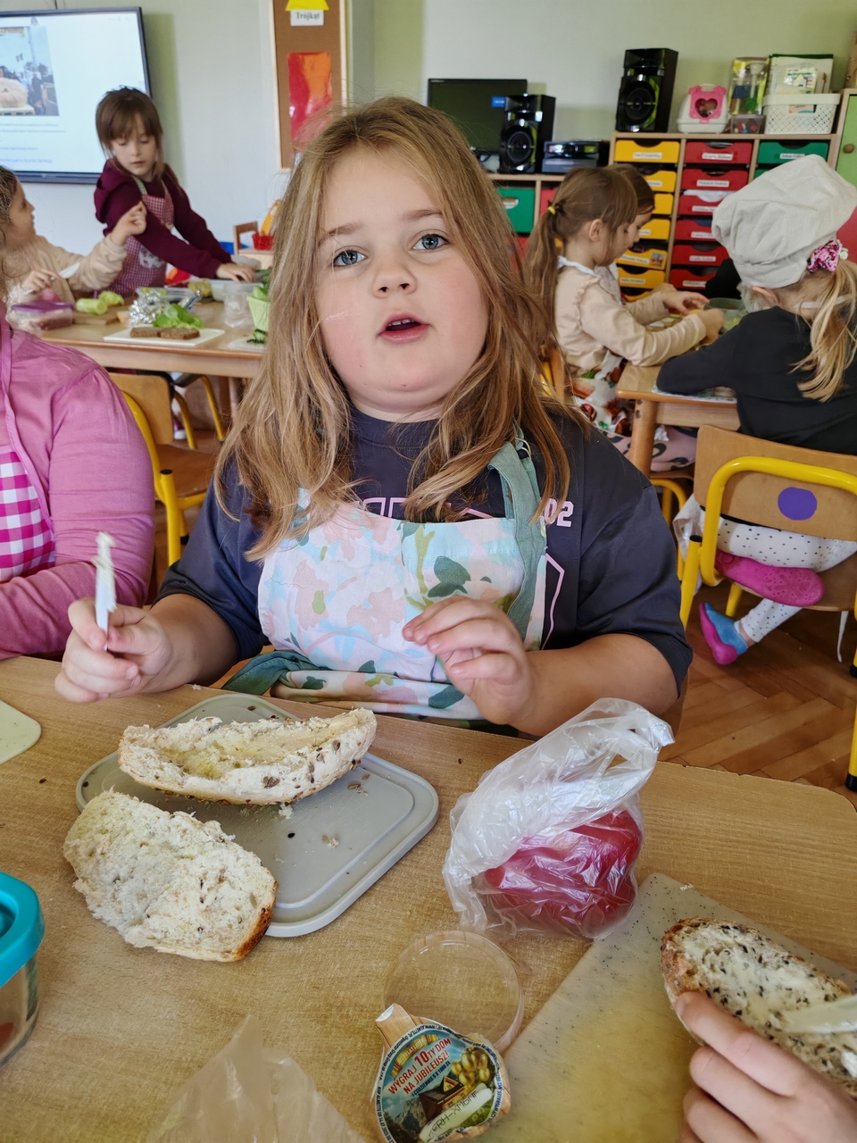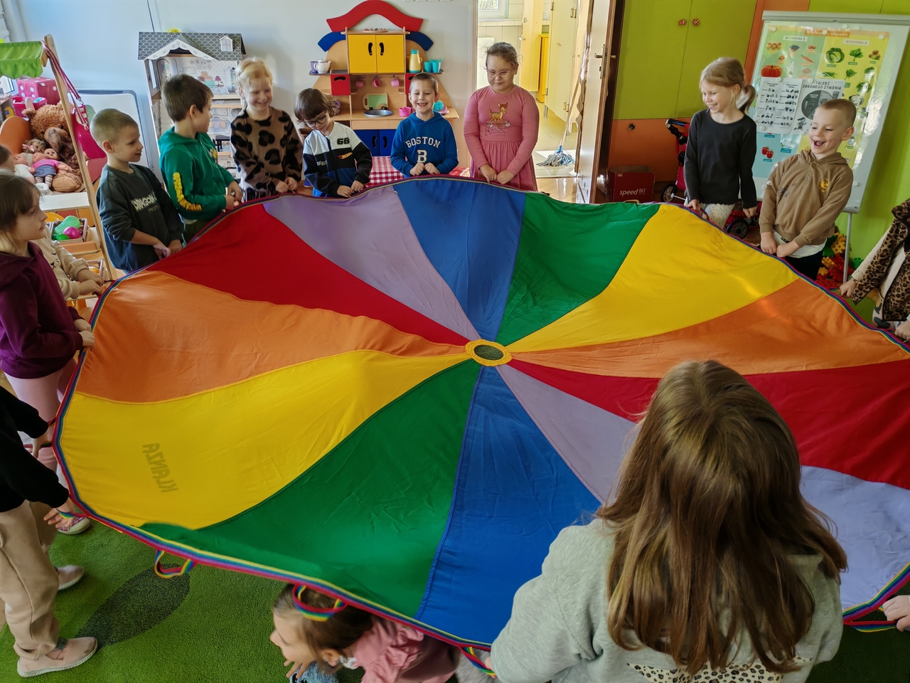 Dzisiaj obchodziliśmy Dzień Zdrowego Jedzenia. Na początku rozmawialiśmy o tym jak ważne są owoce i warzywa, zdrowe odżywianie i czego najlepiej unikać w swojej diecie. Było dużo owocowo- warzywnych zabaw min z ulubioną przez dzieci chustą animacyjną. Na zakończenie dzieci przygotowały z ogromnym zaangażowaniem pyszne kanapeczki ze swoich ulubionych produktów, które później z apetytem zjadły.
