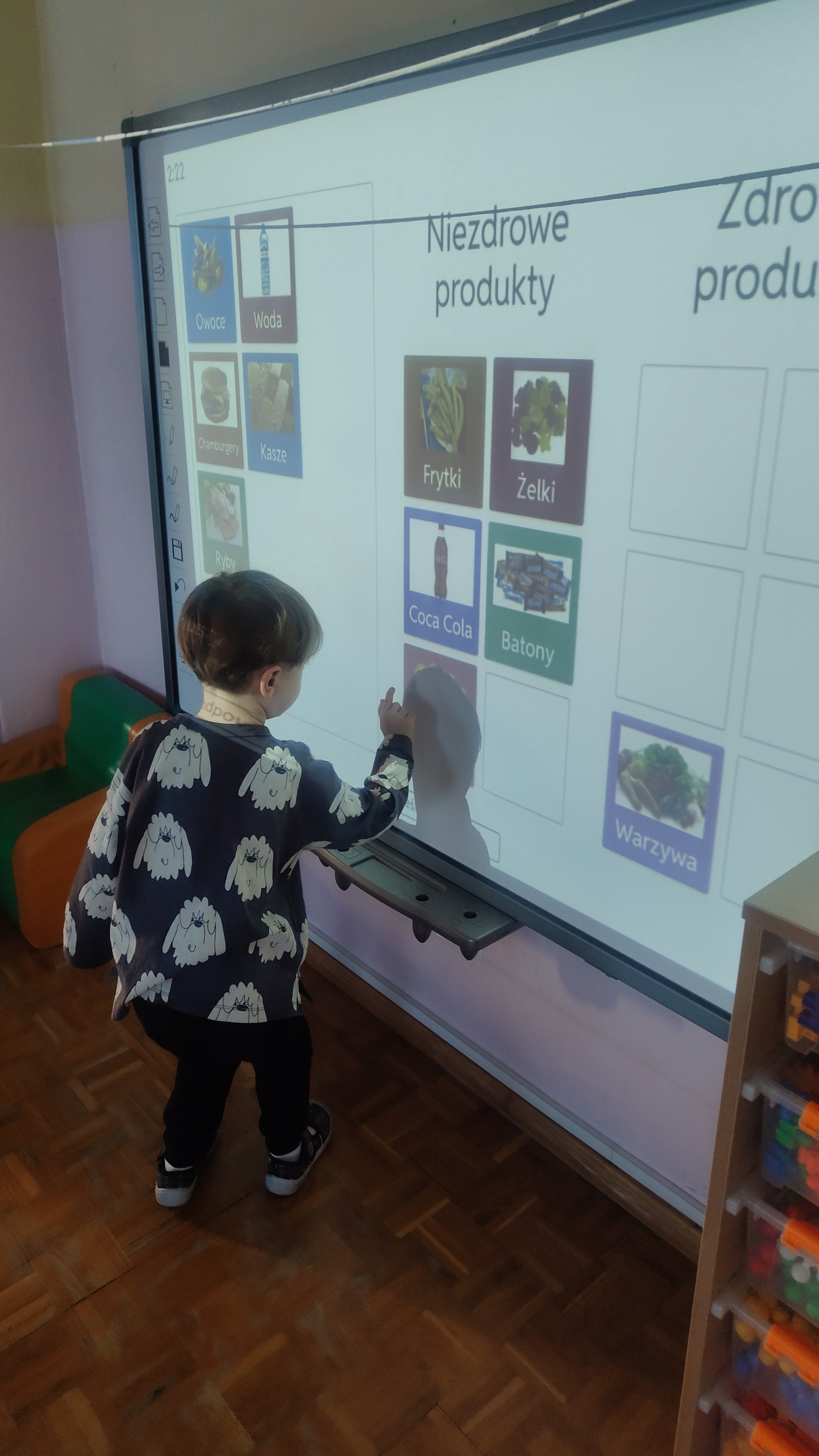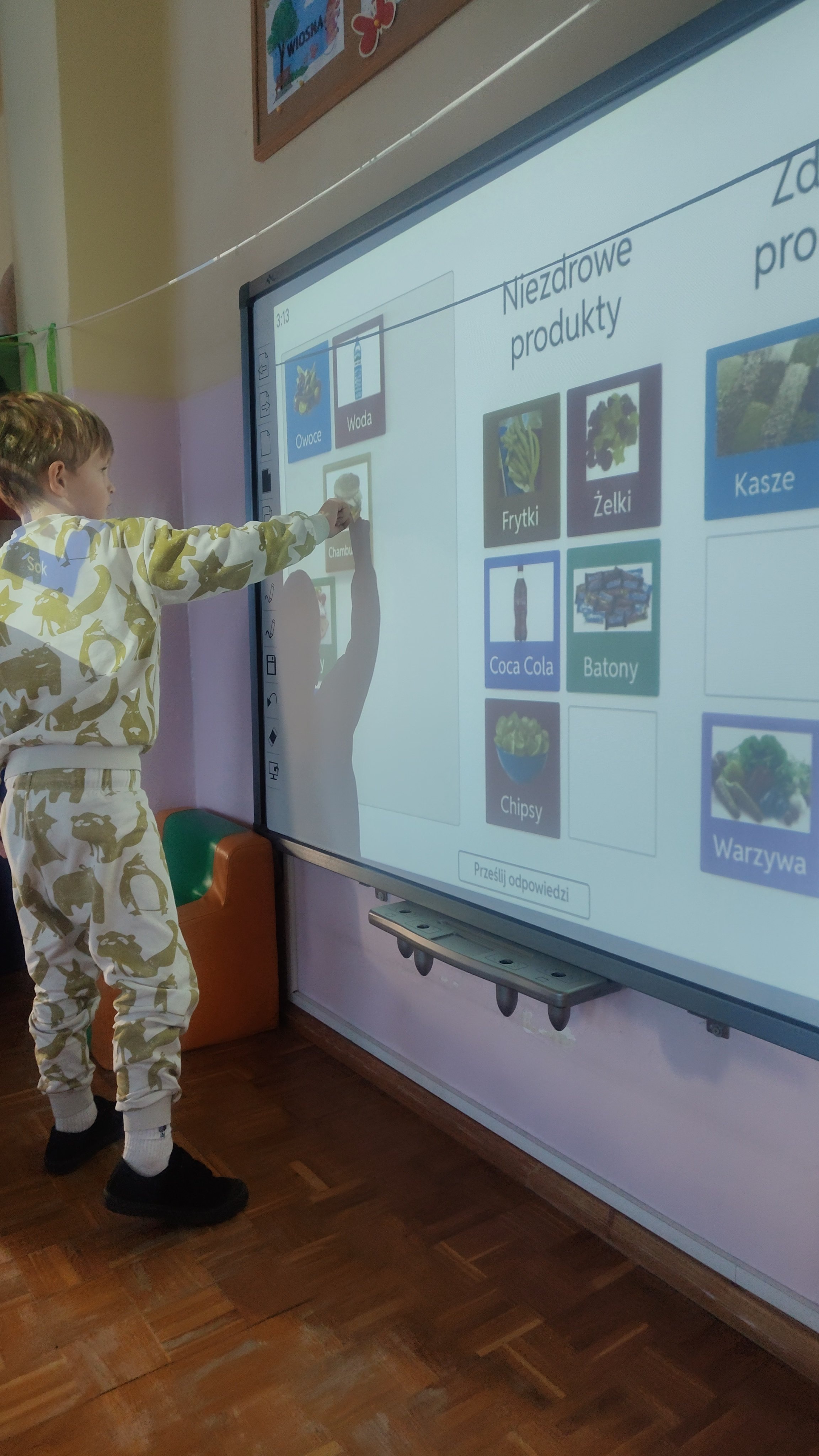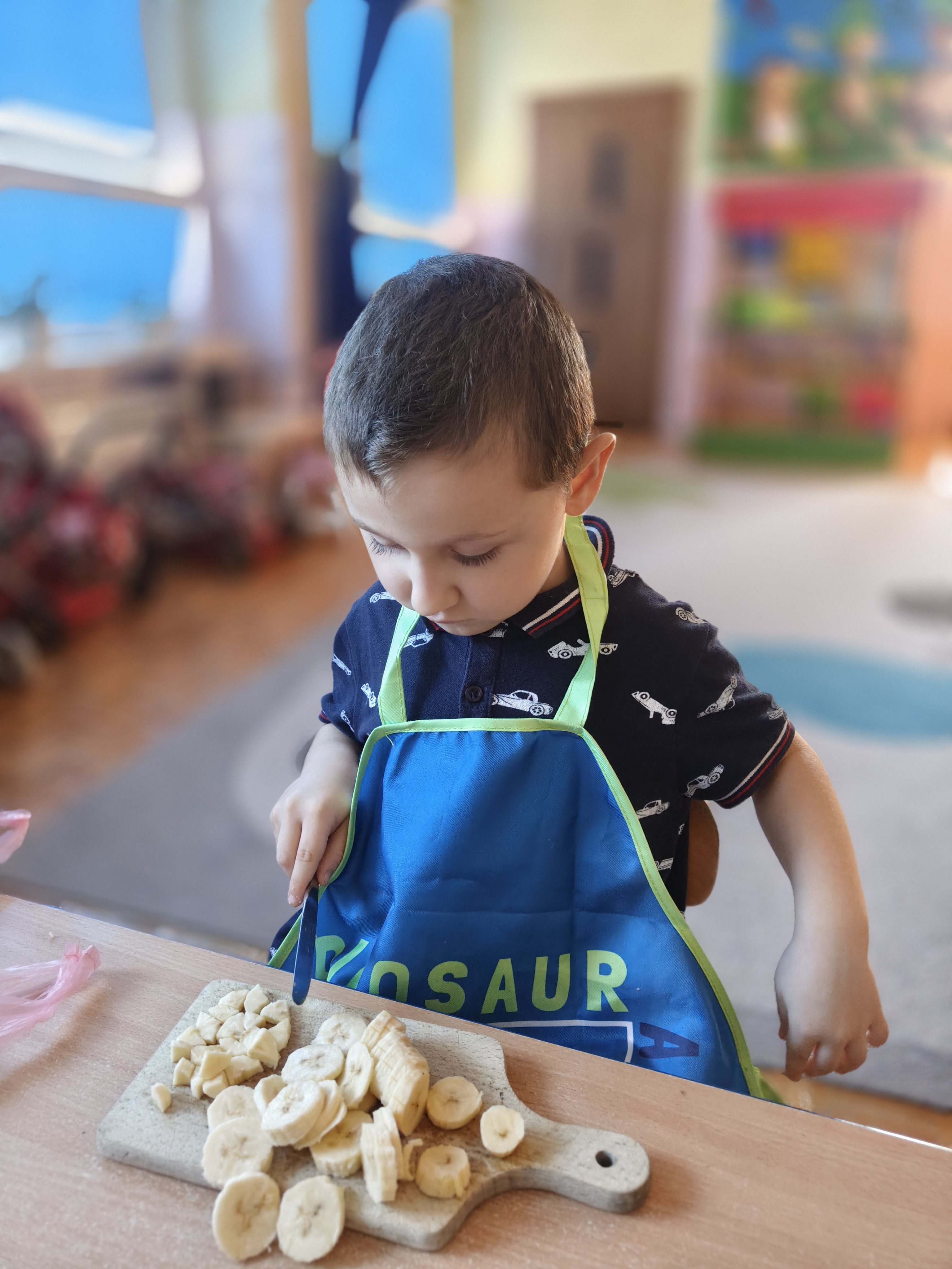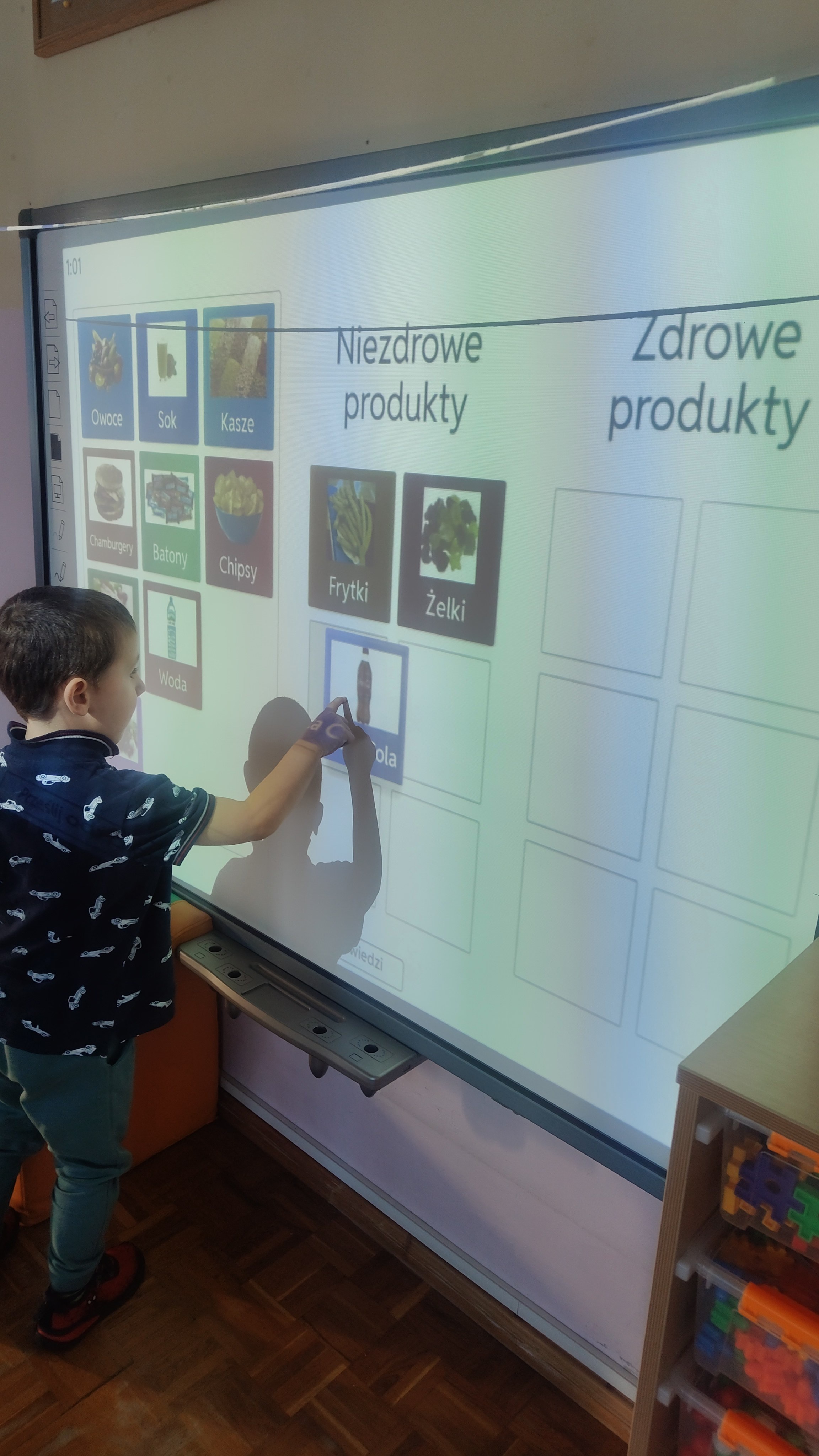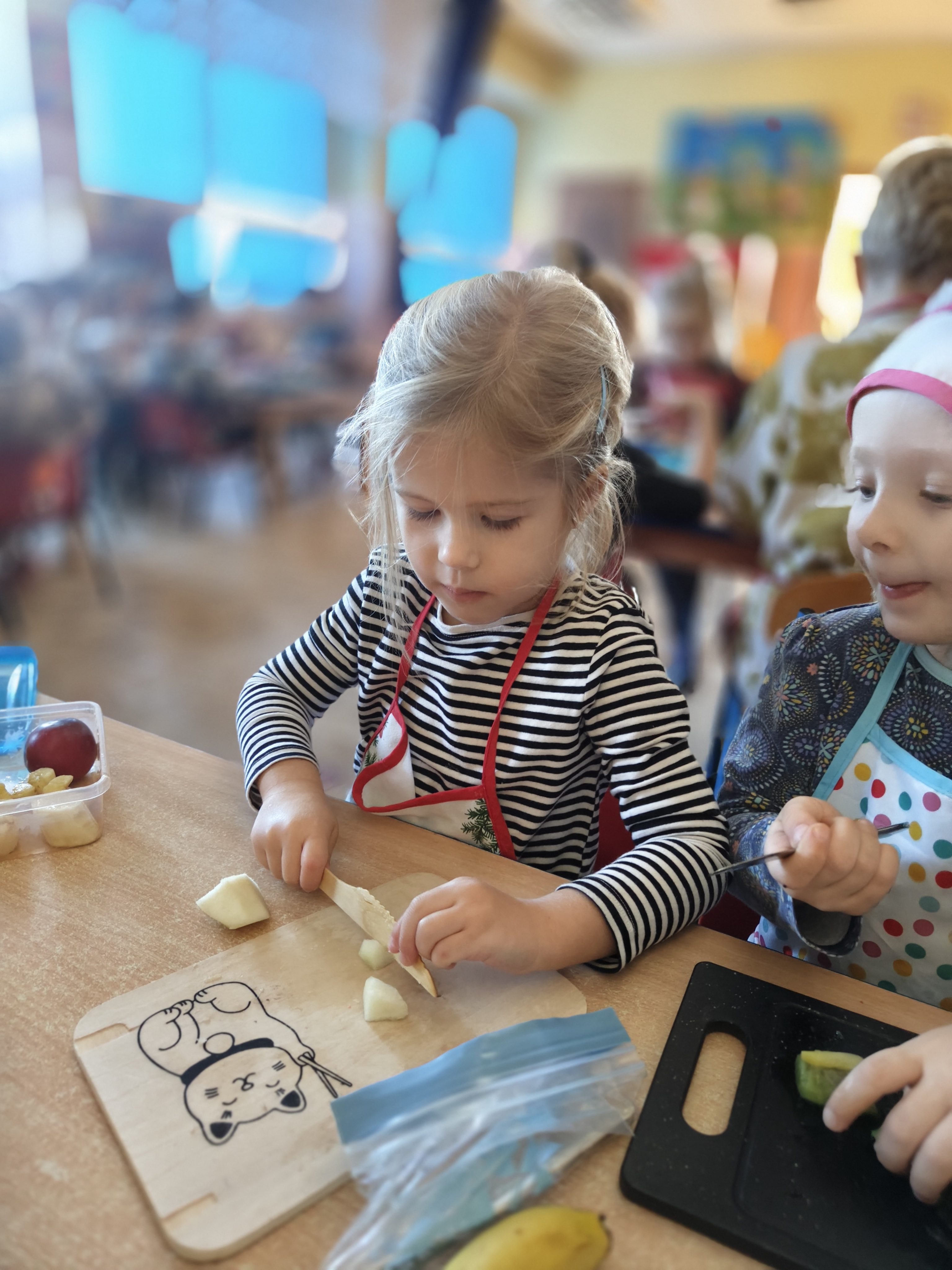 Dzisiejszy dzień upłynął nam pod znakiem zdrowia i dobrego humoru! Na początek dzieci bawiły się w owocowe memory, a potem próbowały rozpoznać produkty po dotyku- było przy tym mnóstwo śmiechu! Następnie wspólnie dzieliliśmy jedzenie na zdrowe i niezdrowe, ucząc się co warto jeść, by ieć dużo energii.Na zakończenie dzieci z wielkim zaangażowaniem kroiły kolorową sałatkę- przygotowanie jej sprawiło im wiele radości, a najwiekszą nagrodą było... jej wspólne zjedzenie!