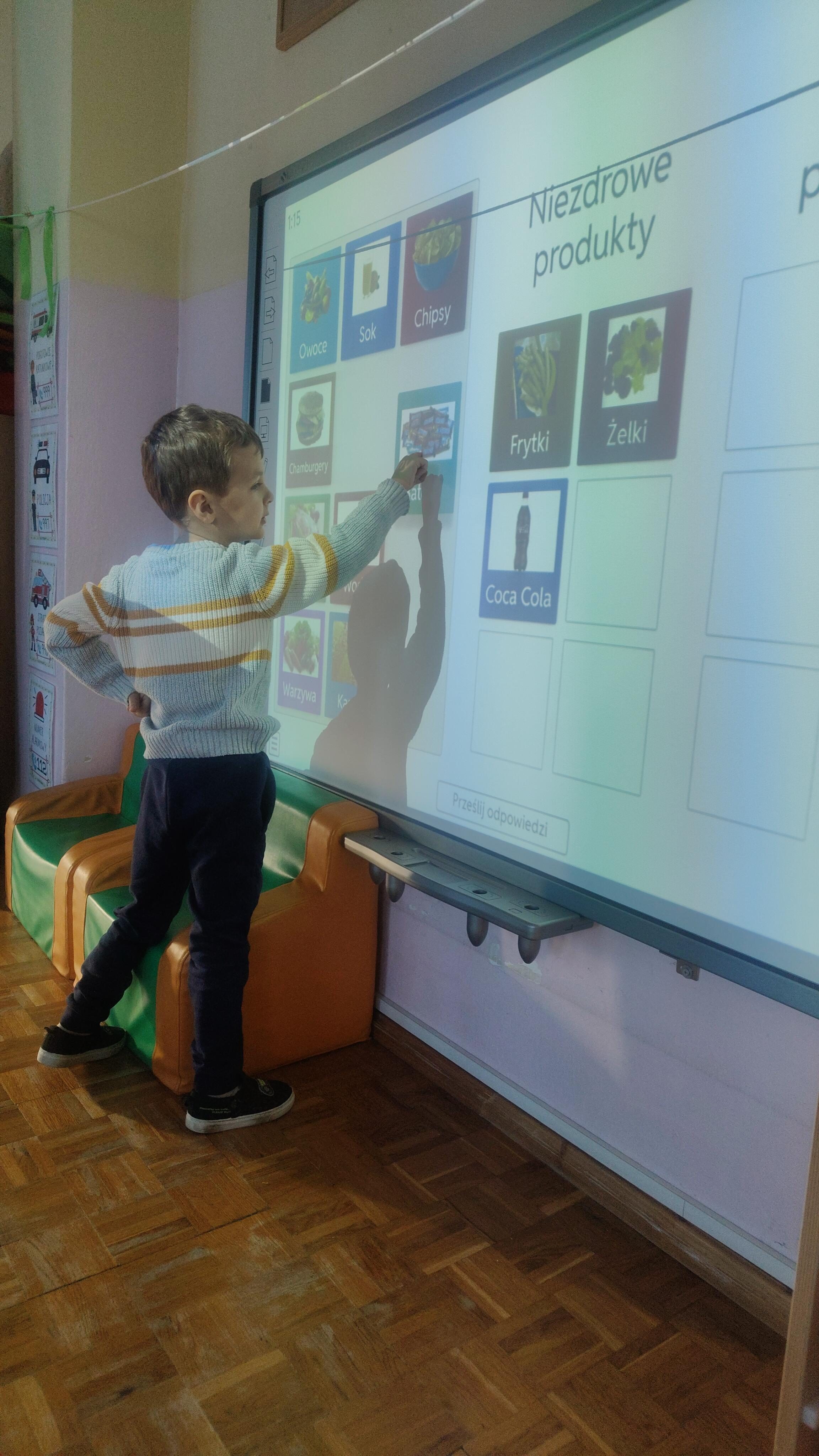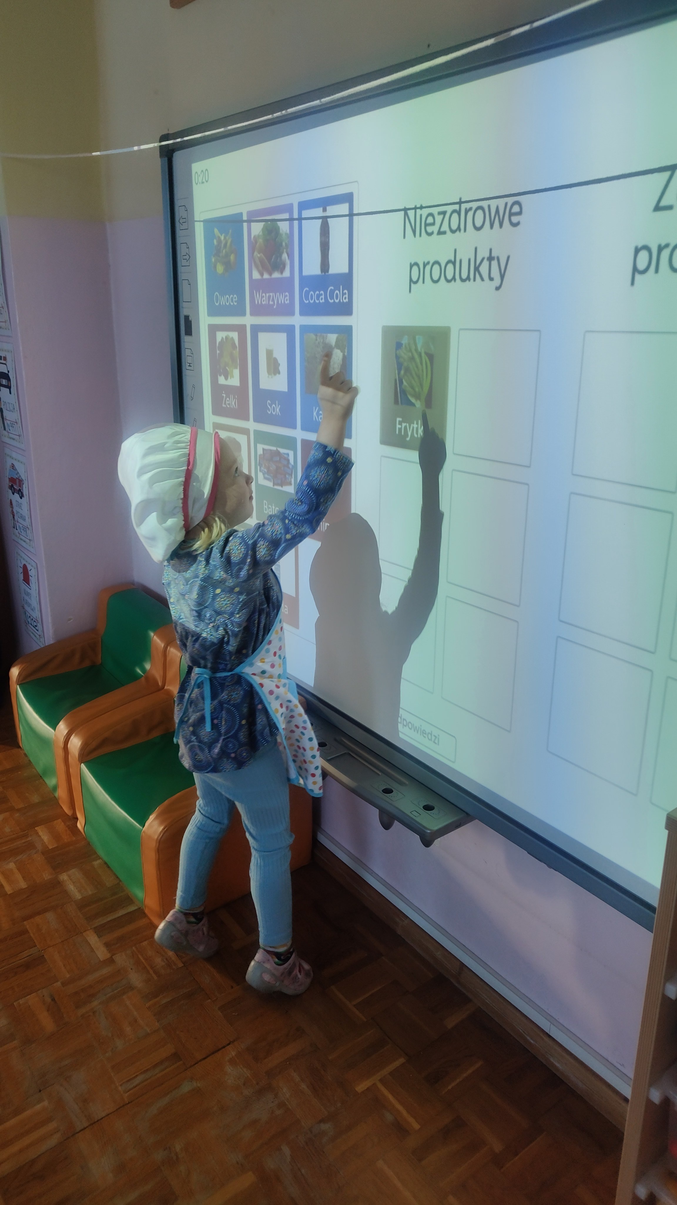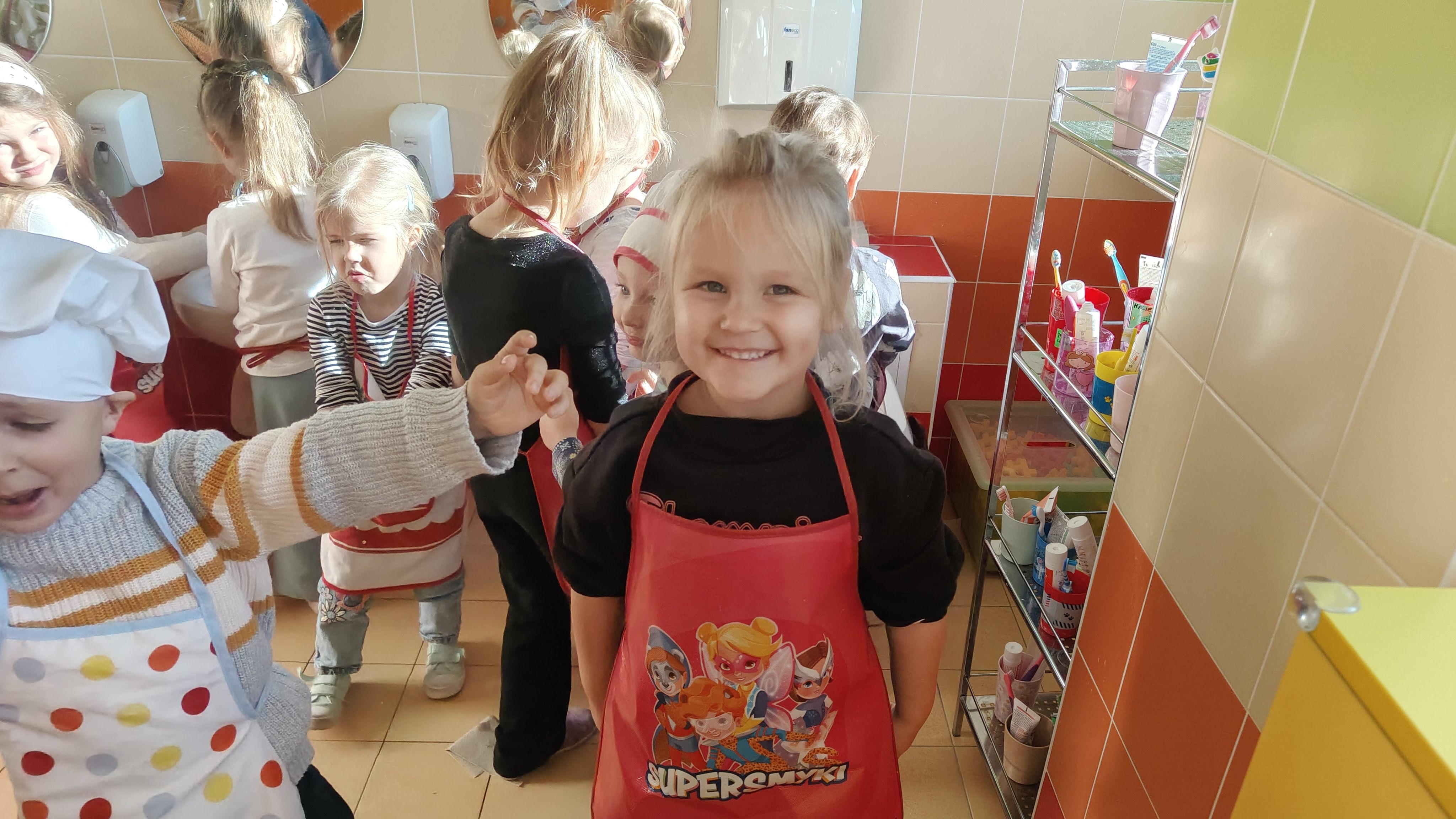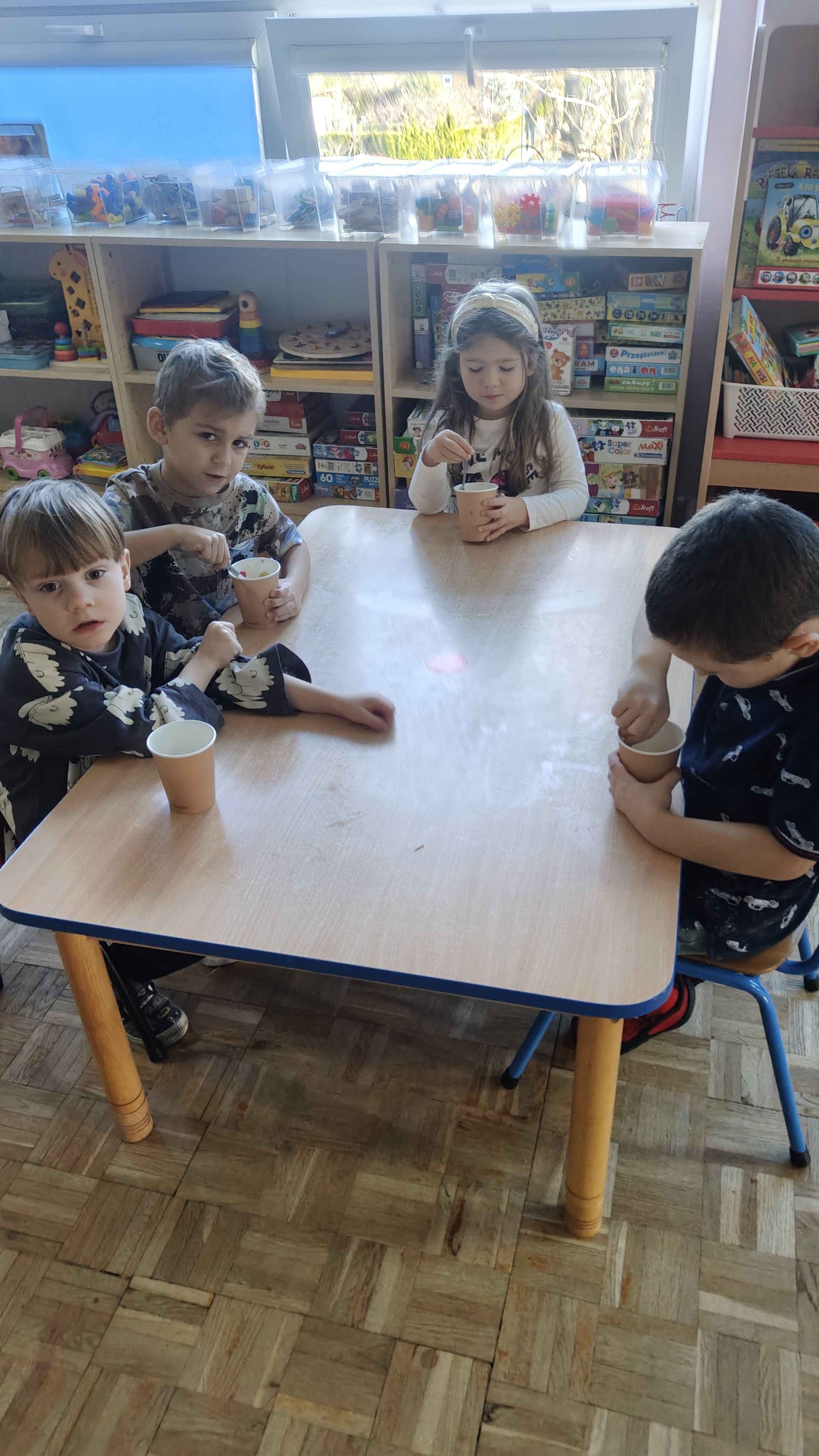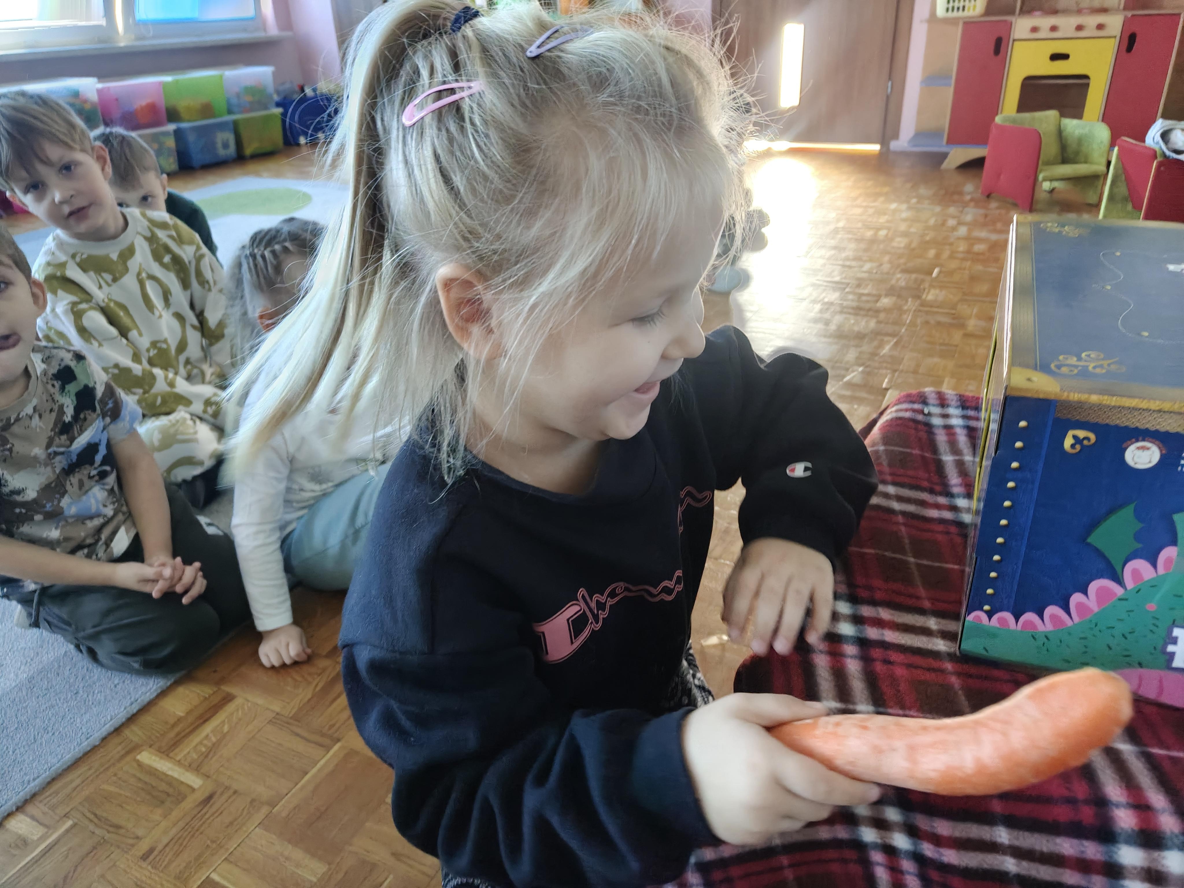 Dzisiejszy dzień upłynął nam pod znakiem zdrowia i dobrego humoru! Na początek dzieci bawiły się w owocowe memory, a potem próbowały rozpoznać produkty po dotyku- było przy tym mnóstwo śmiechu! Następnie wspólnie dzieliliśmy jedzenie na zdrowe i niezdrowe, ucząc się co warto jeść, by ieć dużo energii.Na zakończenie dzieci z wielkim zaangażowaniem kroiły kolorową sałatkę- przygotowanie jej sprawiło im wiele radości, a najwiekszą nagrodą było... jej wspólne zjedzenie!