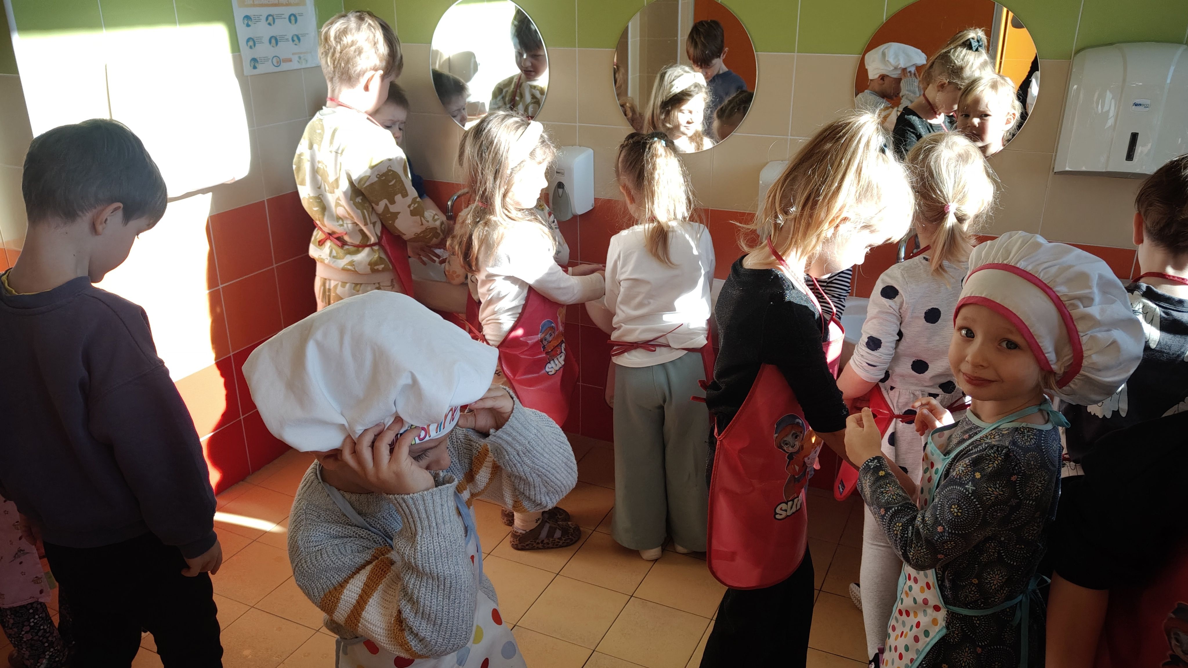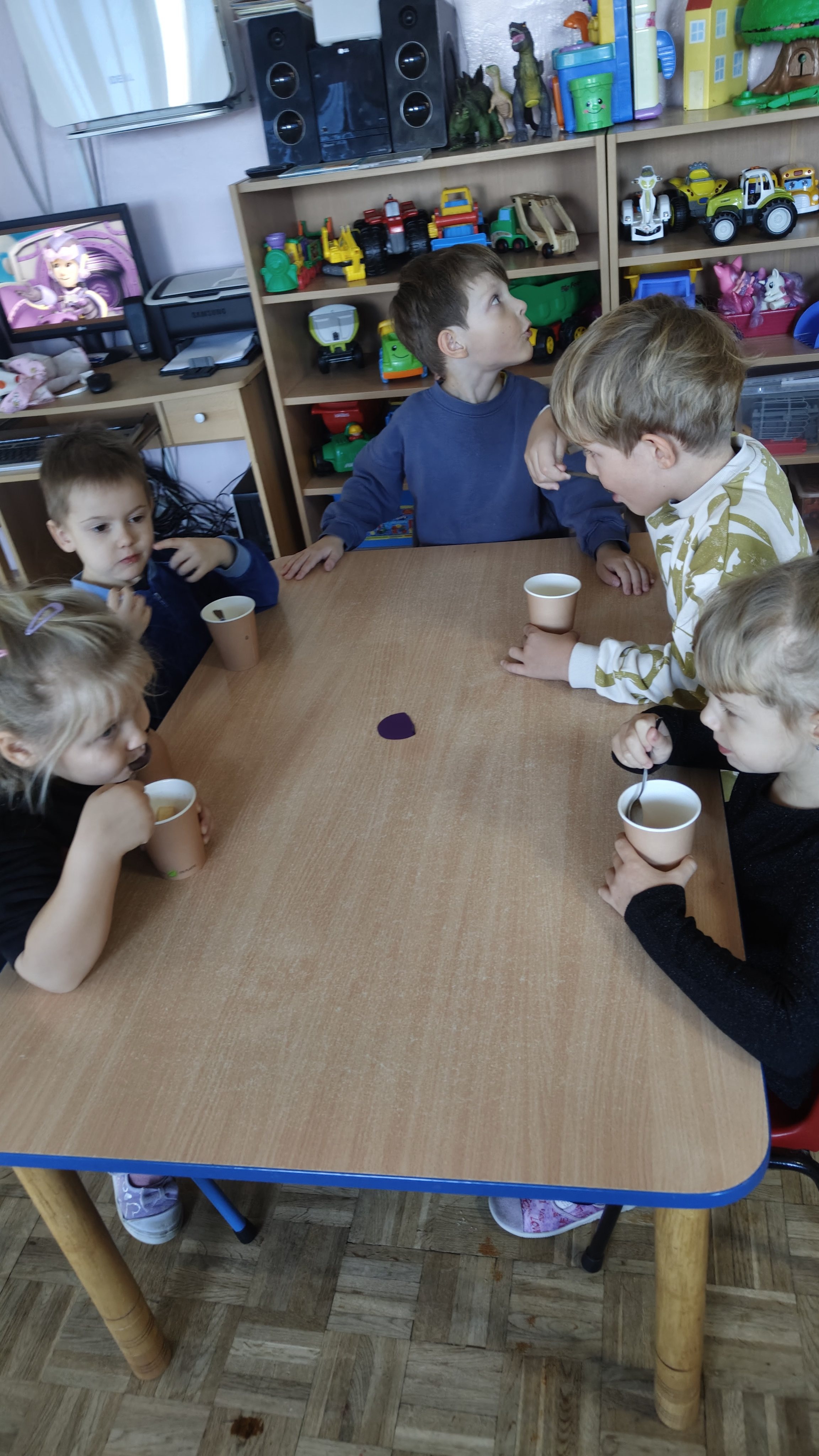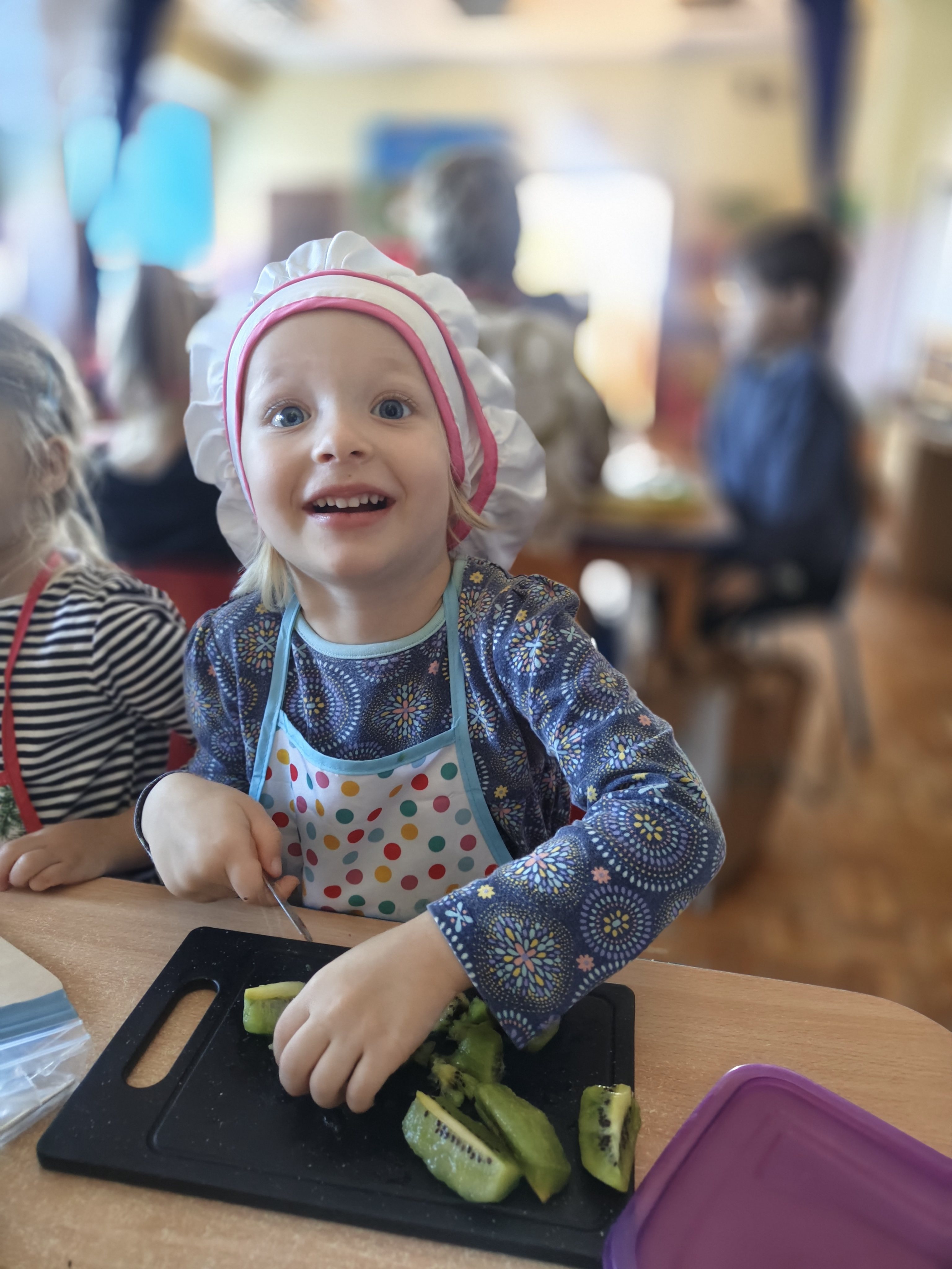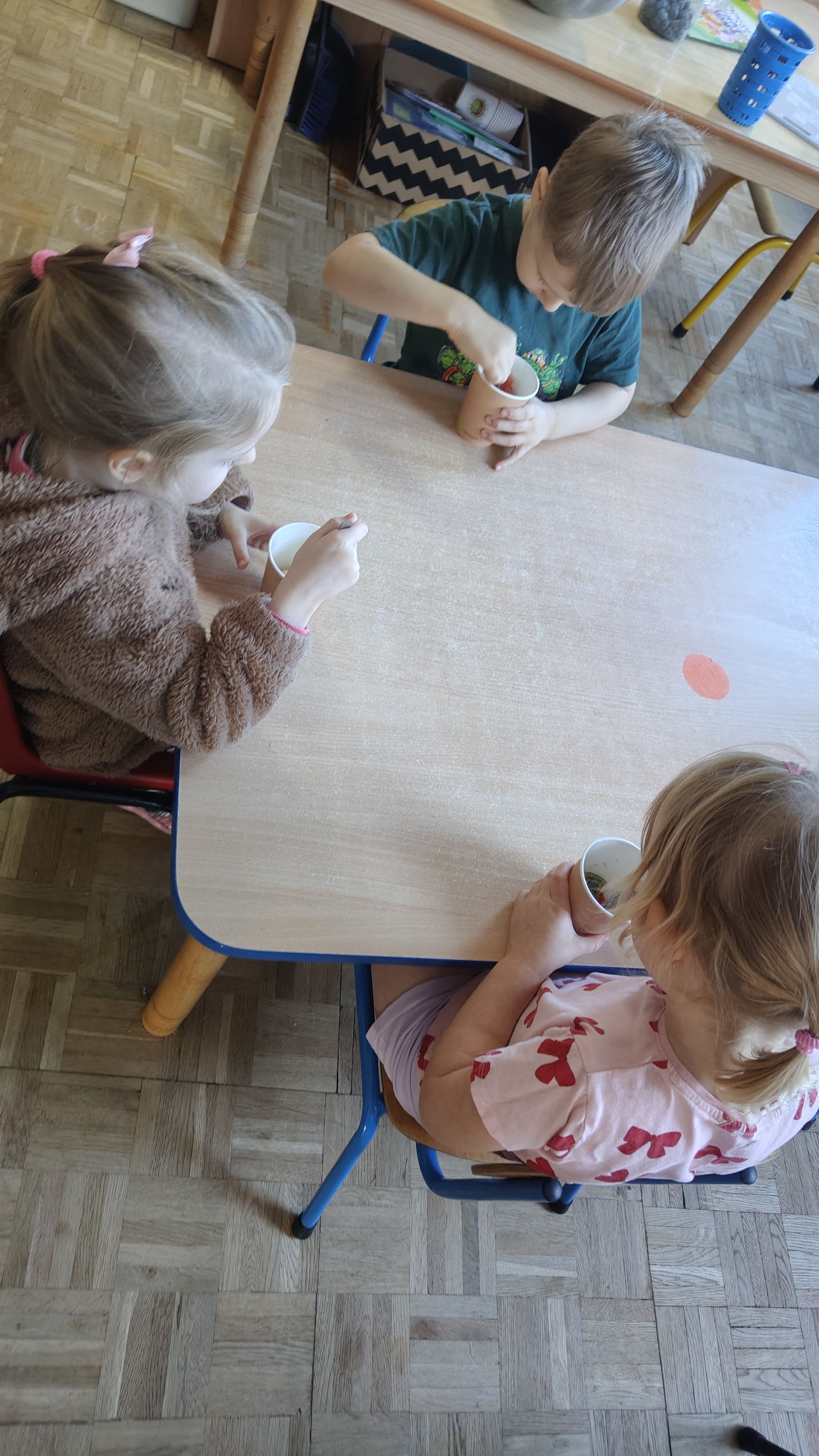 Dzisiejszy dzień upłynął nam pod znakiem zdrowia i dobrego humoru! Na początek dzieci bawiły się w owocowe memory, a potem próbowały rozpoznać produkty po dotyku- było przy tym mnóstwo śmiechu! Następnie wspólnie dzieliliśmy jedzenie na zdrowe i niezdrowe, ucząc się co warto jeść, by ieć dużo energii.Na zakończenie dzieci z wielkim zaangażowaniem kroiły kolorową sałatkę- przygotowanie jej sprawiło im wiele radości, a najwiekszą nagrodą było... jej wspólne zjedzenie!
