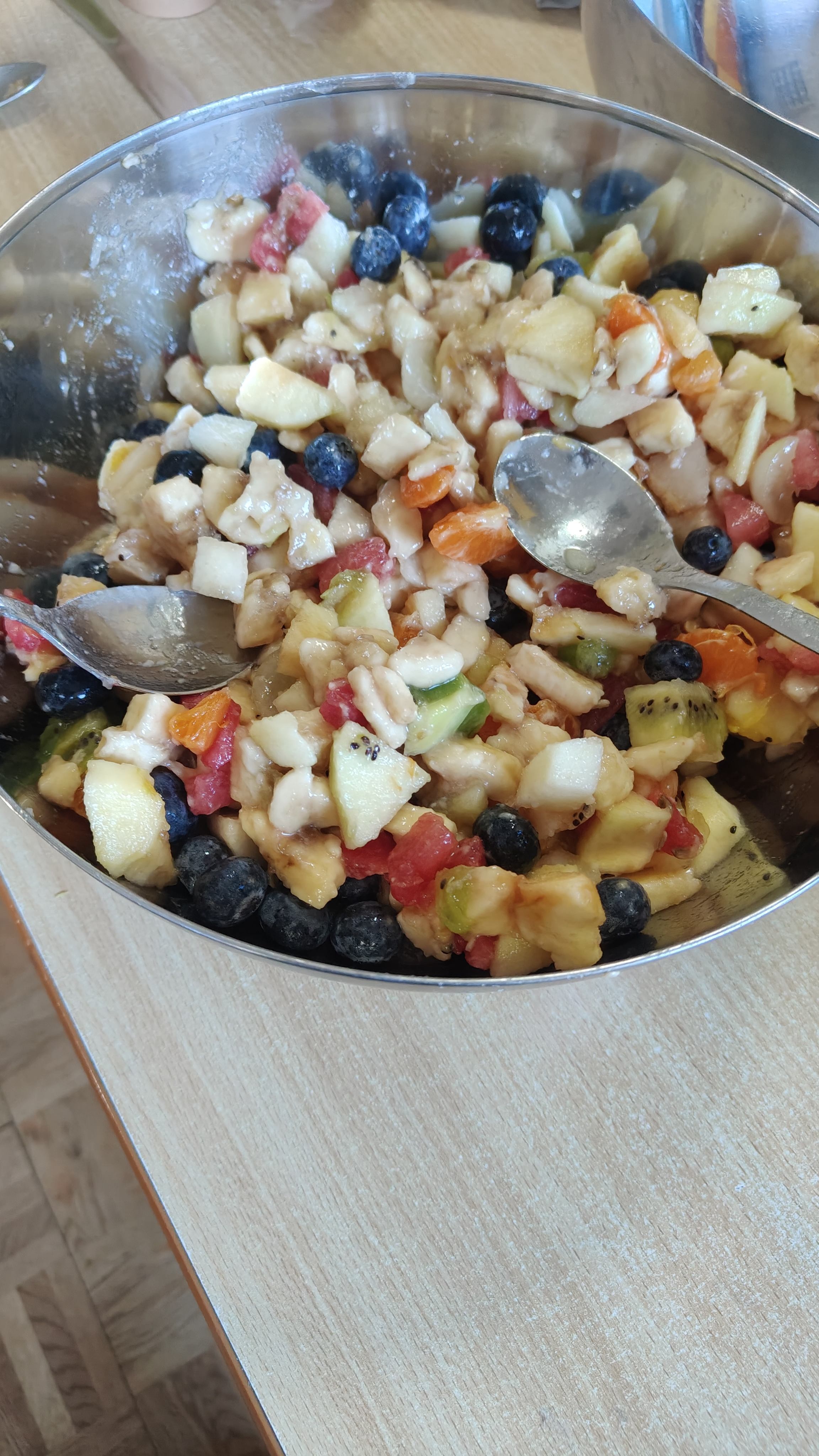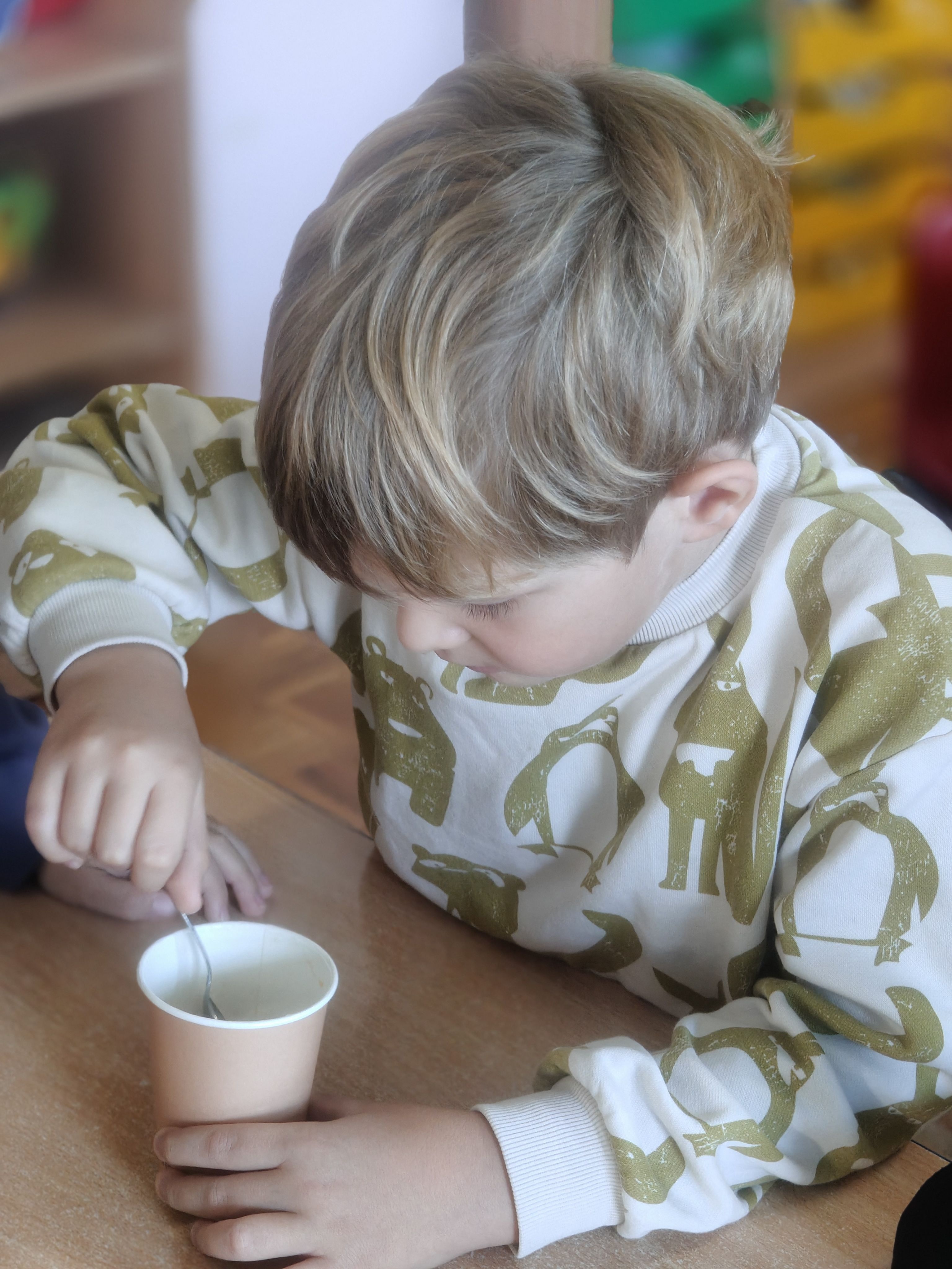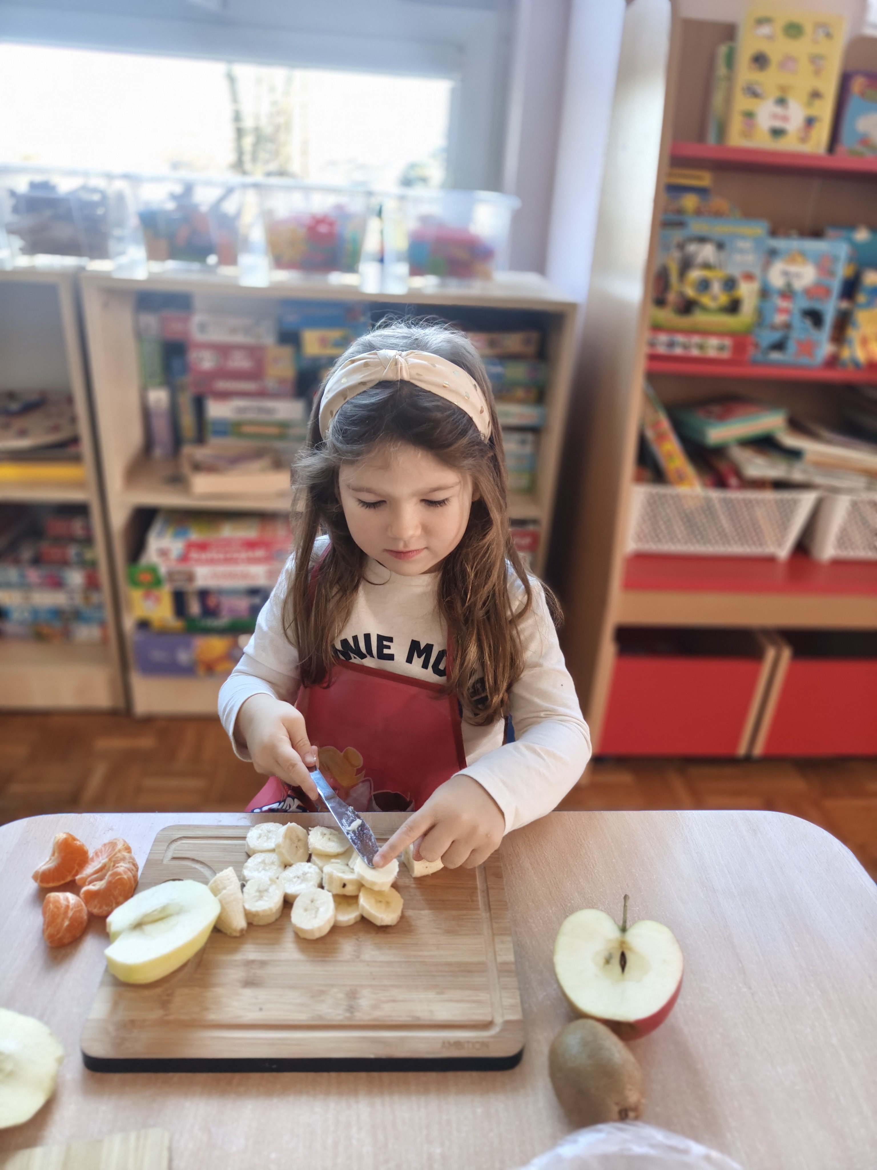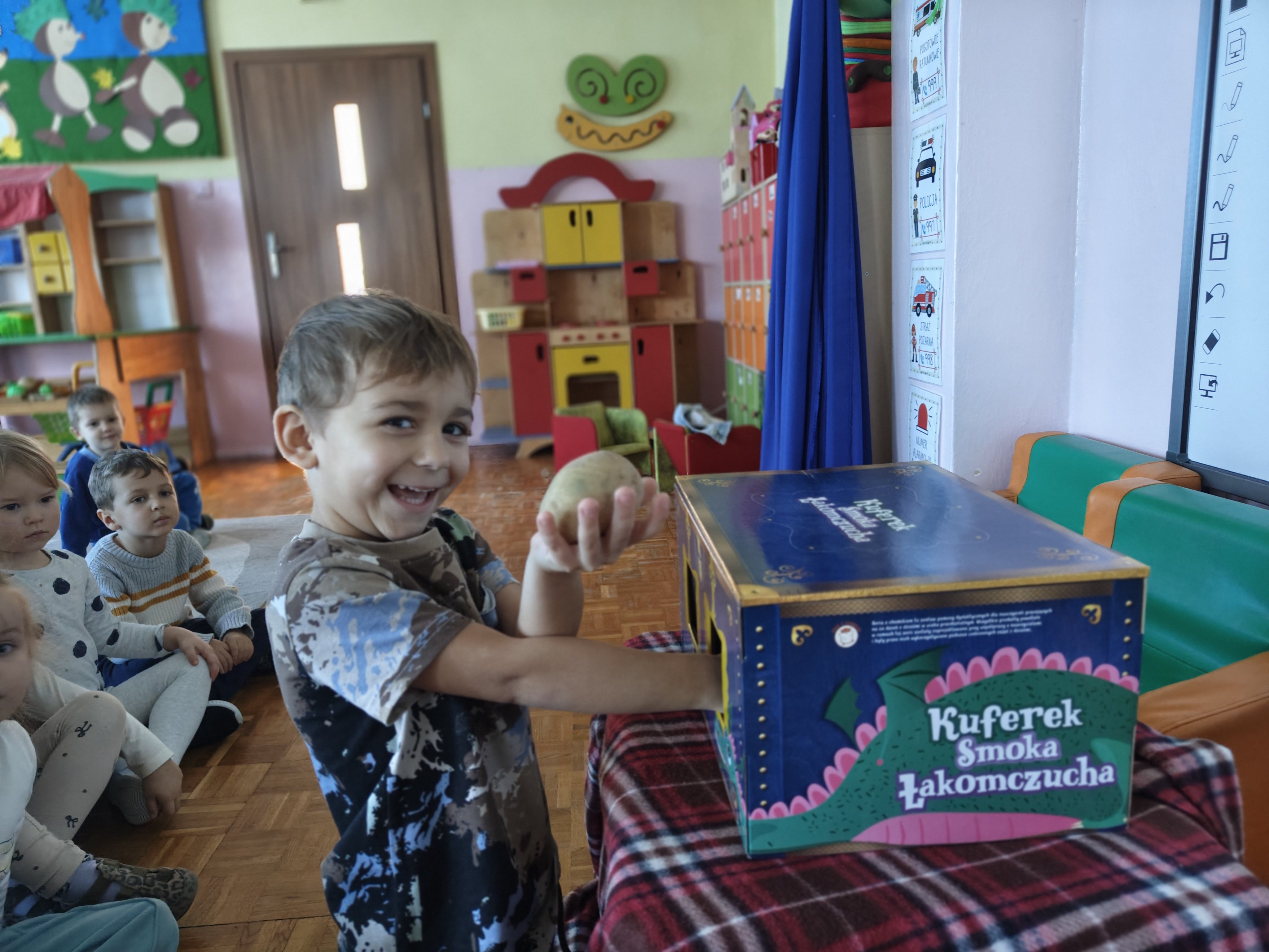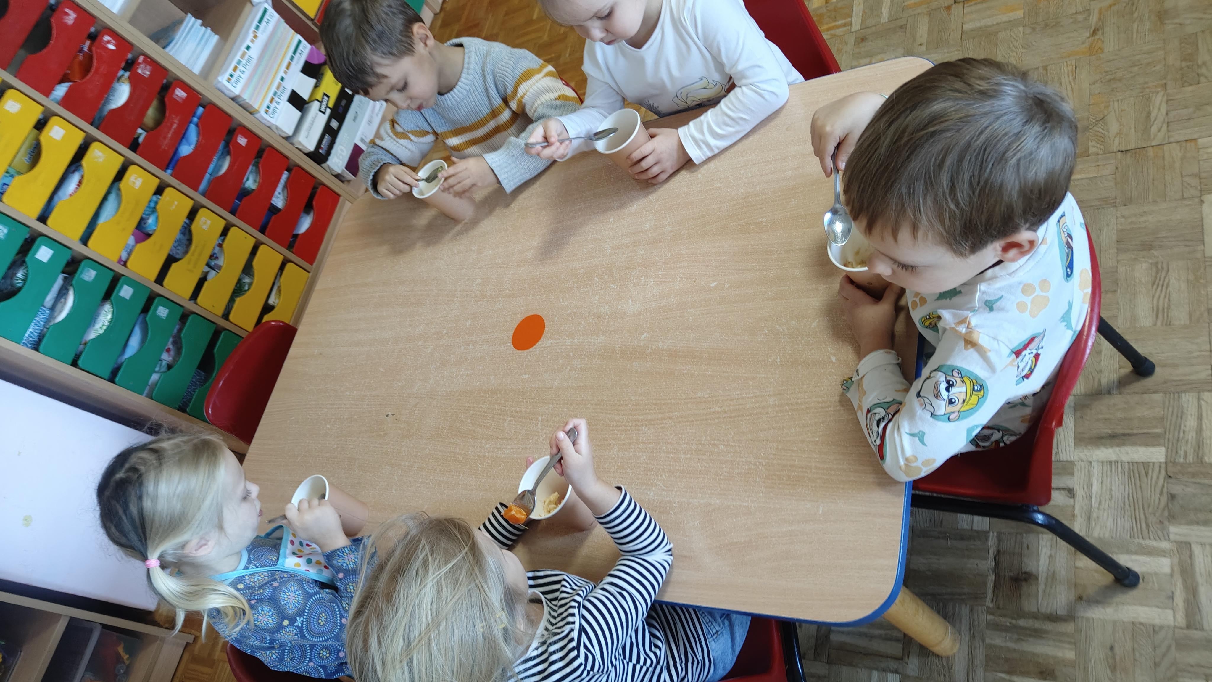 Dzisiejszy dzień upłynął nam pod znakiem zdrowia i dobrego humoru! Na początek dzieci bawiły się w owocowe memory, a potem próbowały rozpoznać produkty po dotyku- było przy tym mnóstwo śmiechu! Następnie wspólnie dzieliliśmy jedzenie na zdrowe i niezdrowe, ucząc się co warto jeść, by ieć dużo energii.Na zakończenie dzieci z wielkim zaangażowaniem kroiły kolorową sałatkę- przygotowanie jej sprawiło im wiele radości, a najwiekszą nagrodą było... jej wspólne zjedzenie!