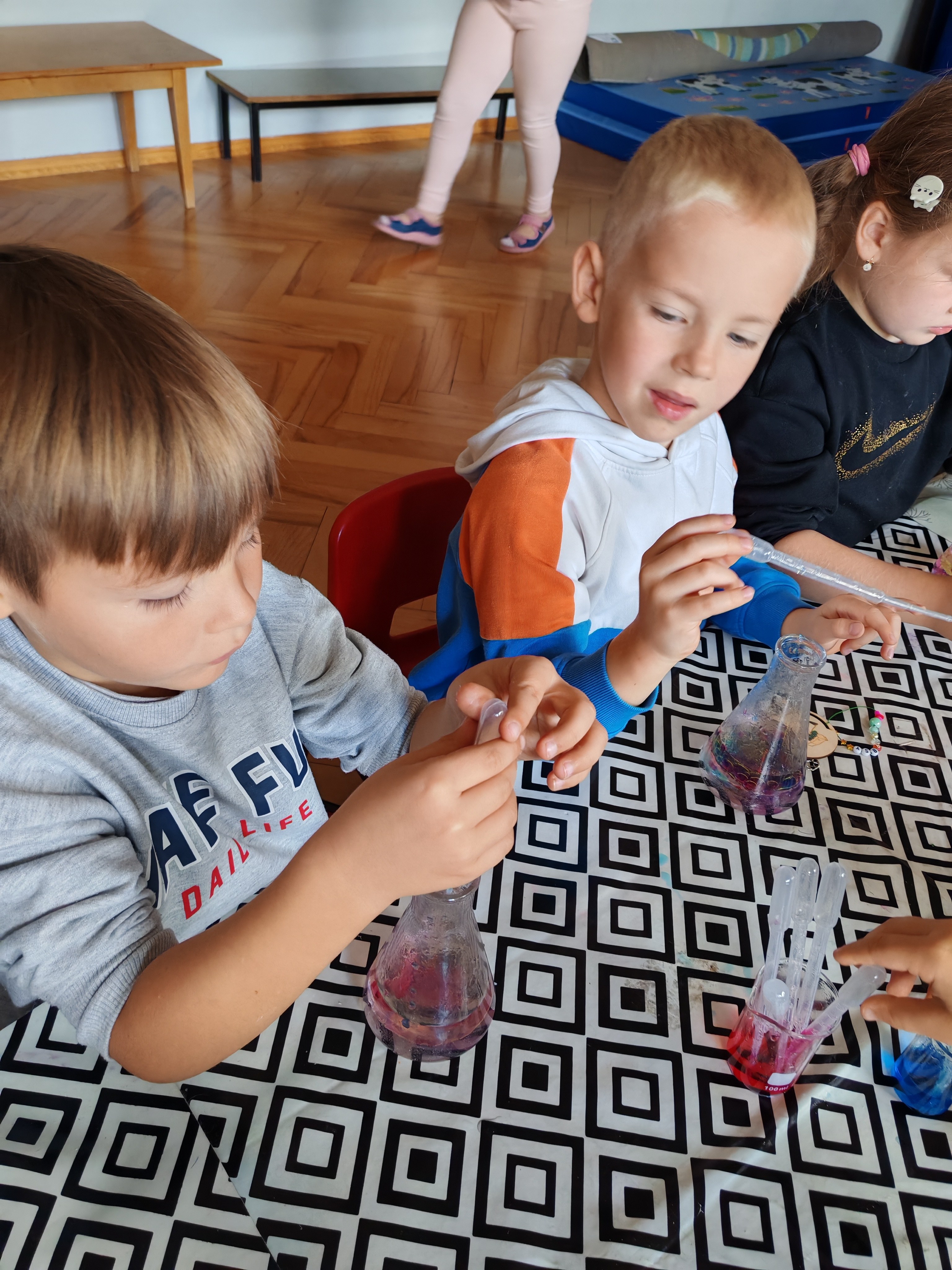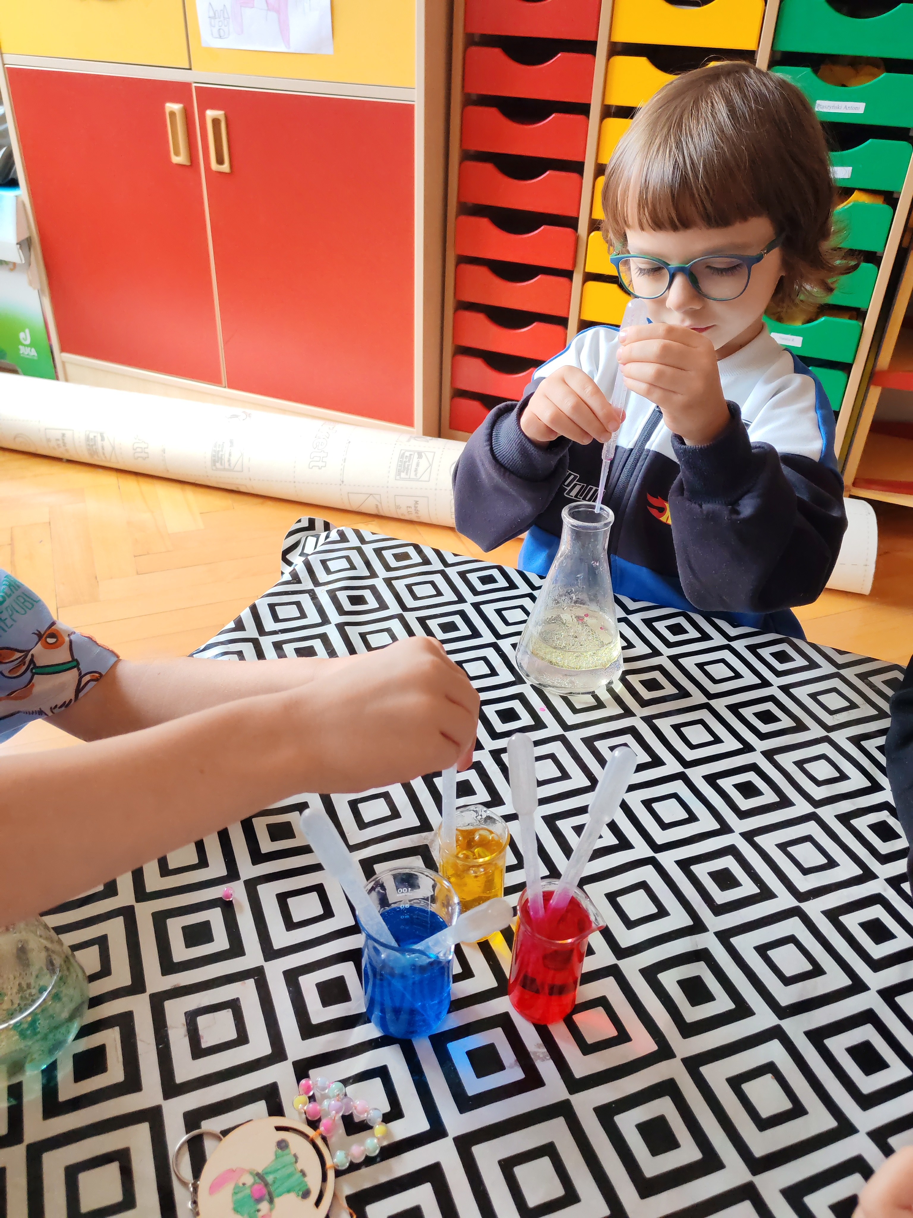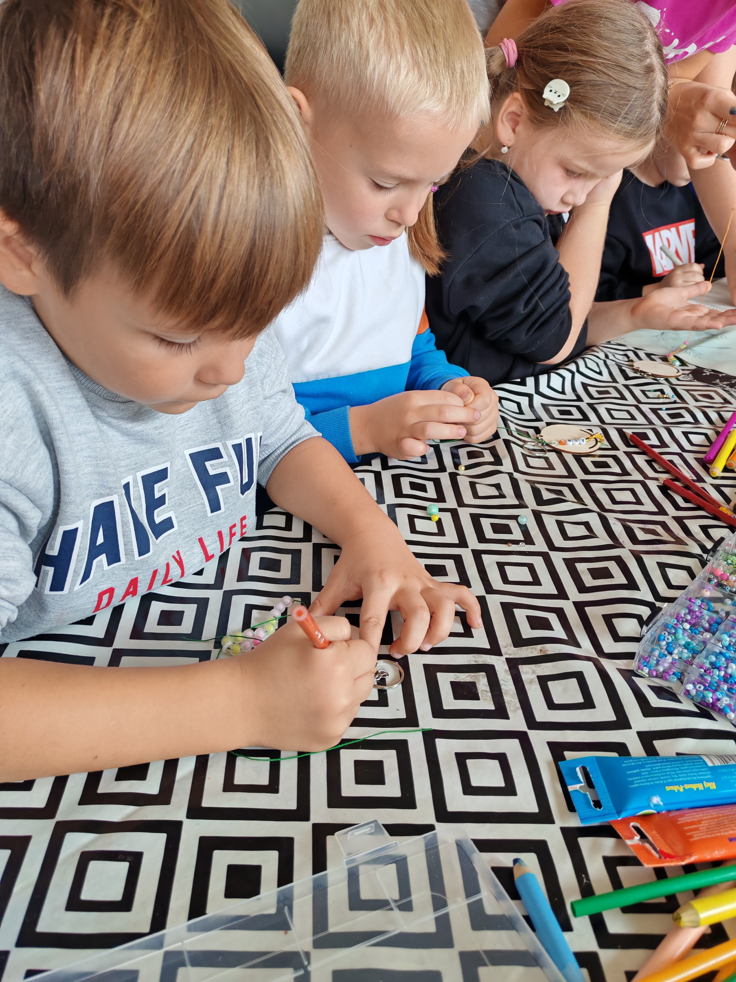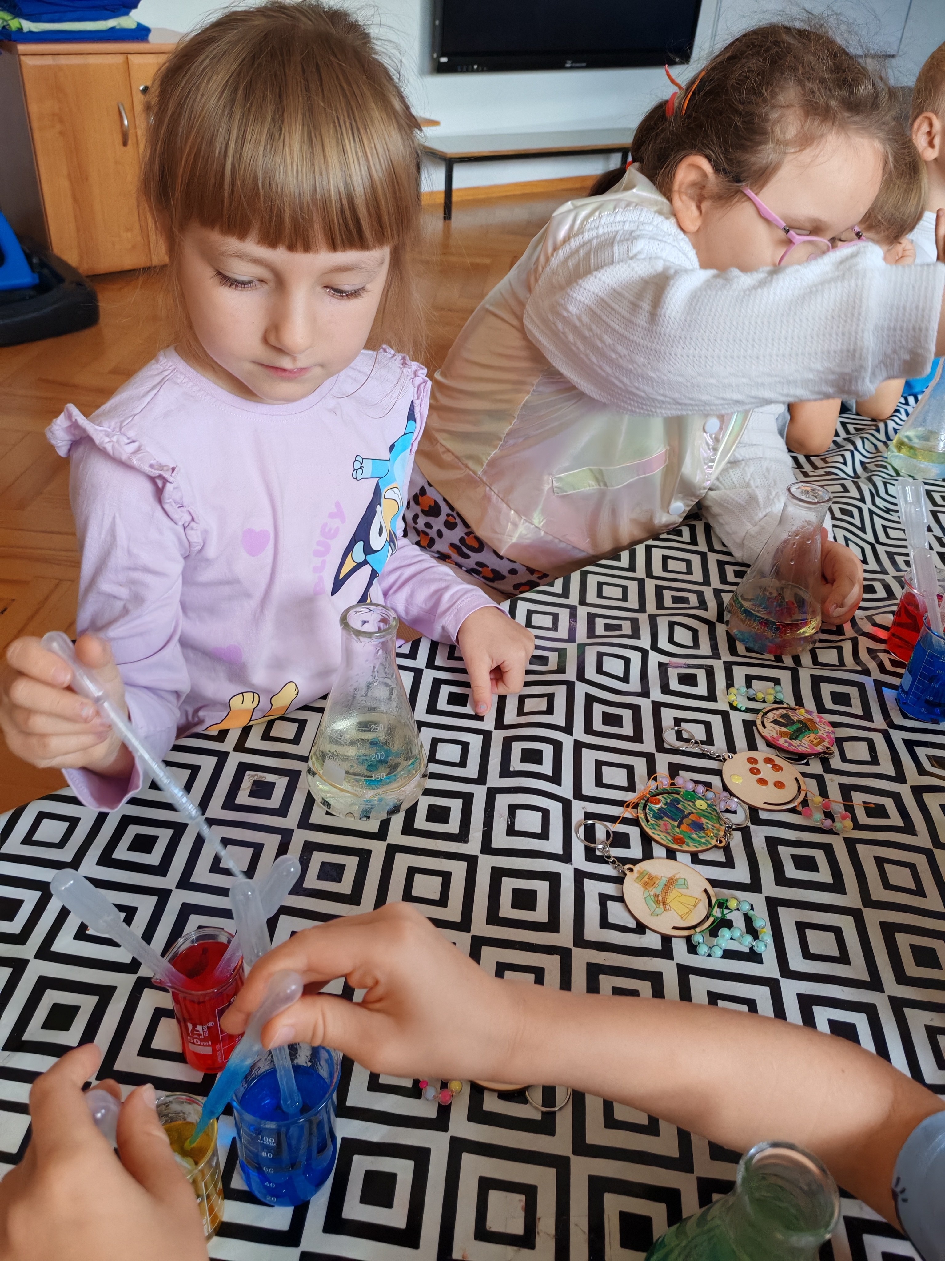 Z okazji Dnia Chłopaka odbyły się zajęcia z Atomem. Dzieci wykonały breloczki z ulubionymi postaciami: malowały, nawlekały koraliki. Następnie ulubione przez dzieci eksperymentowanie, mieszanie płynów, kolorów. Dużo dobrej zabawy.