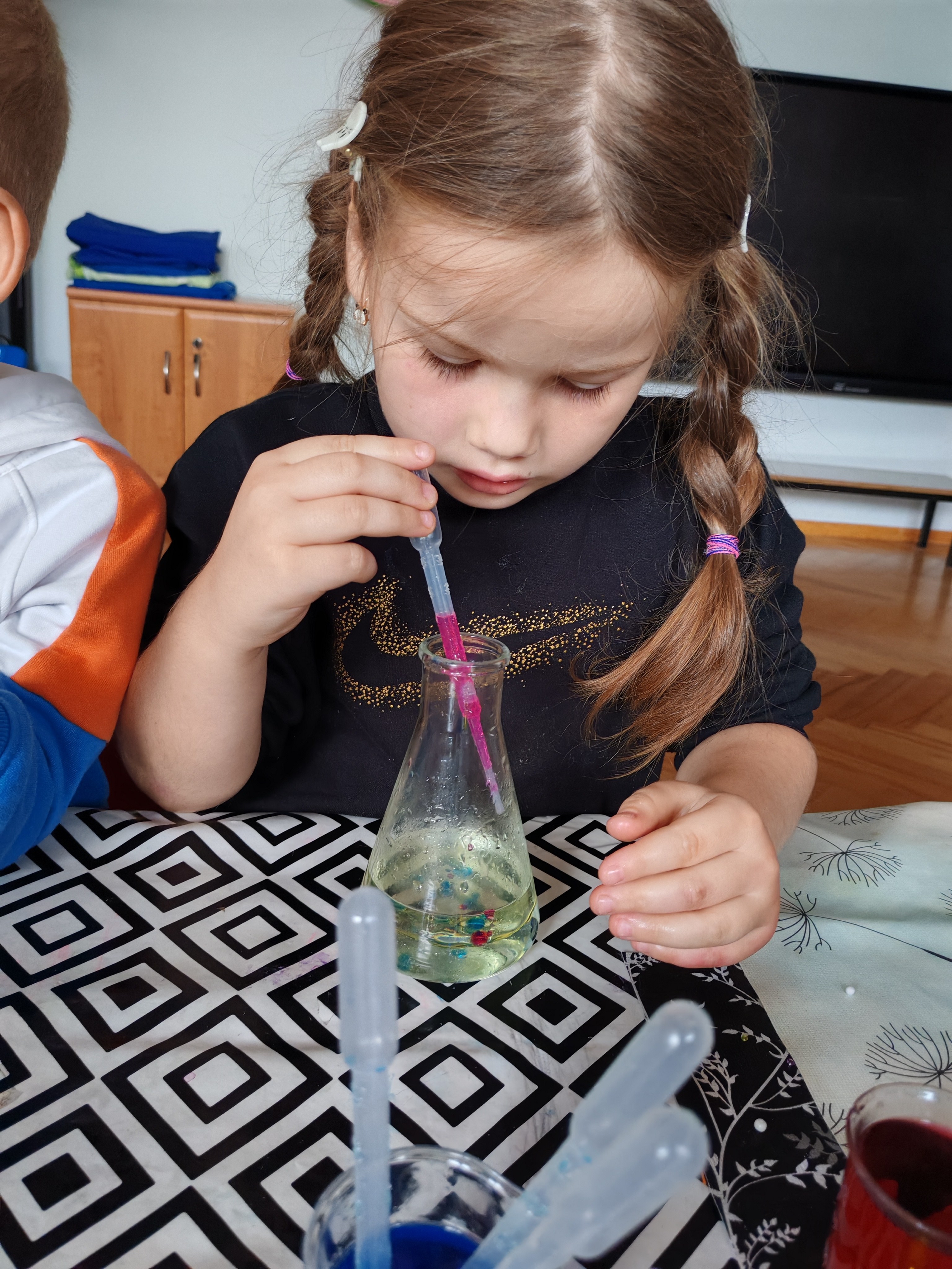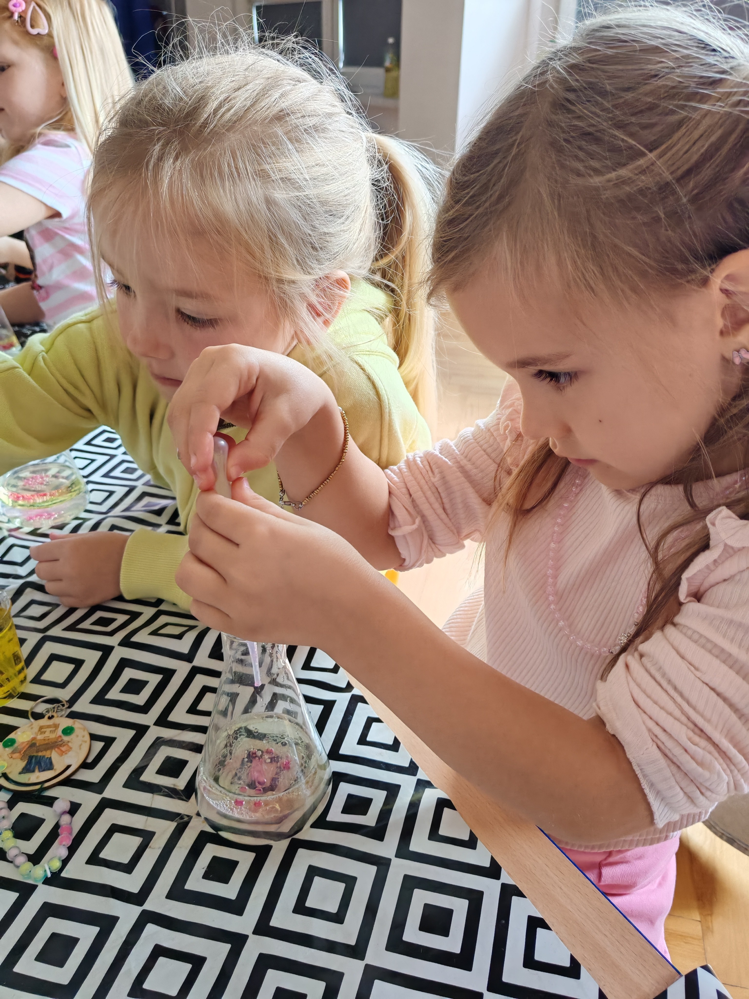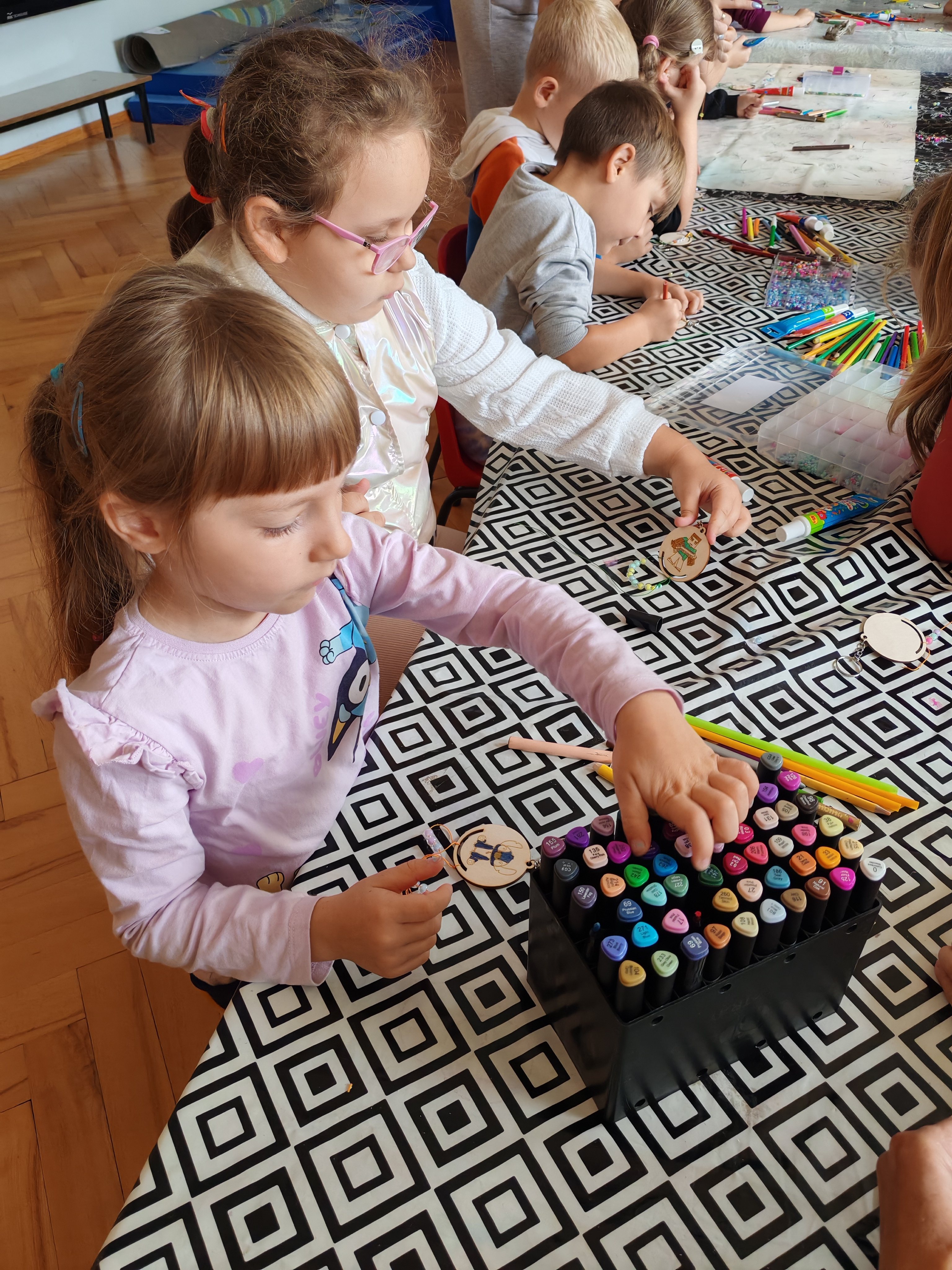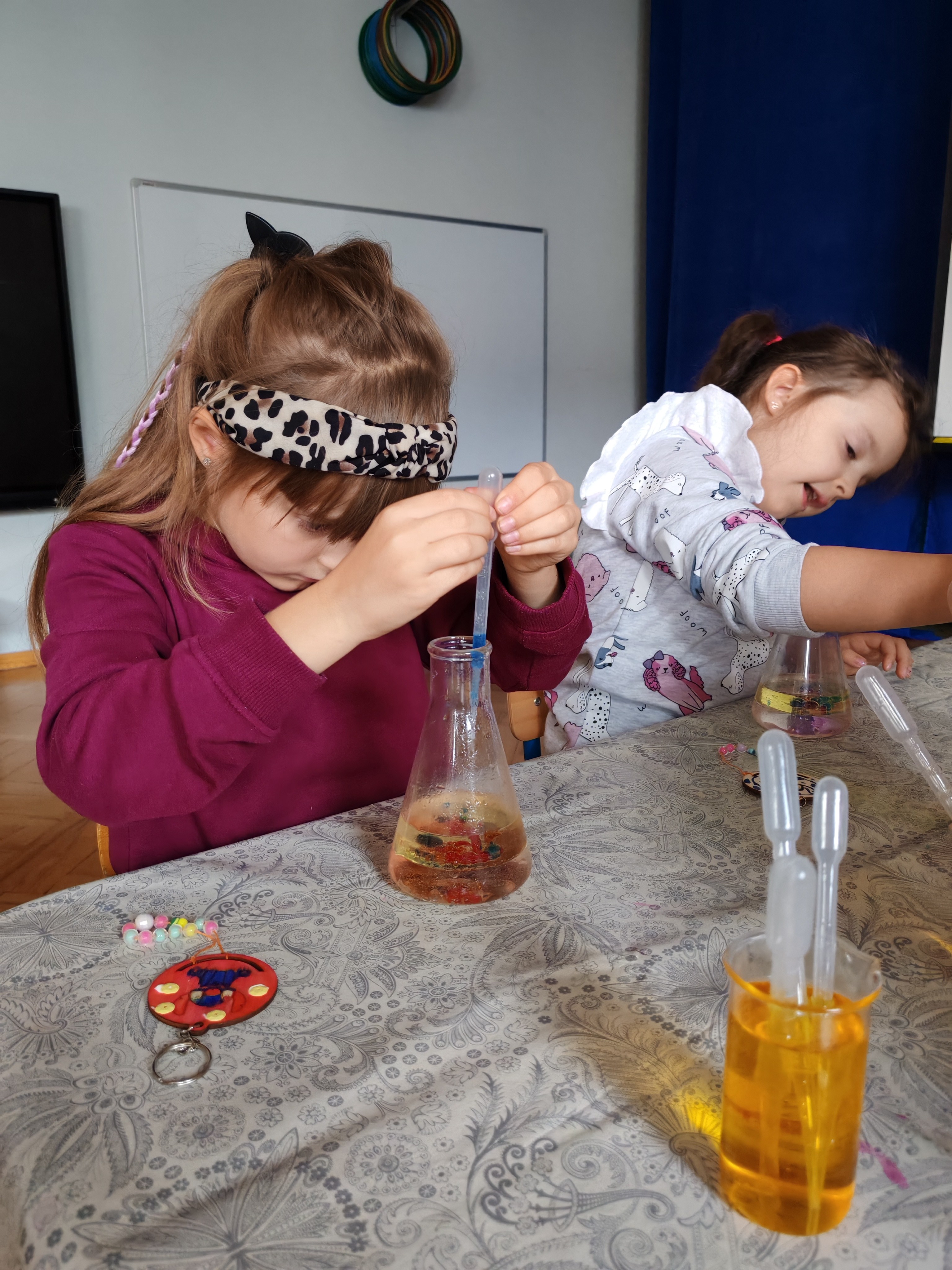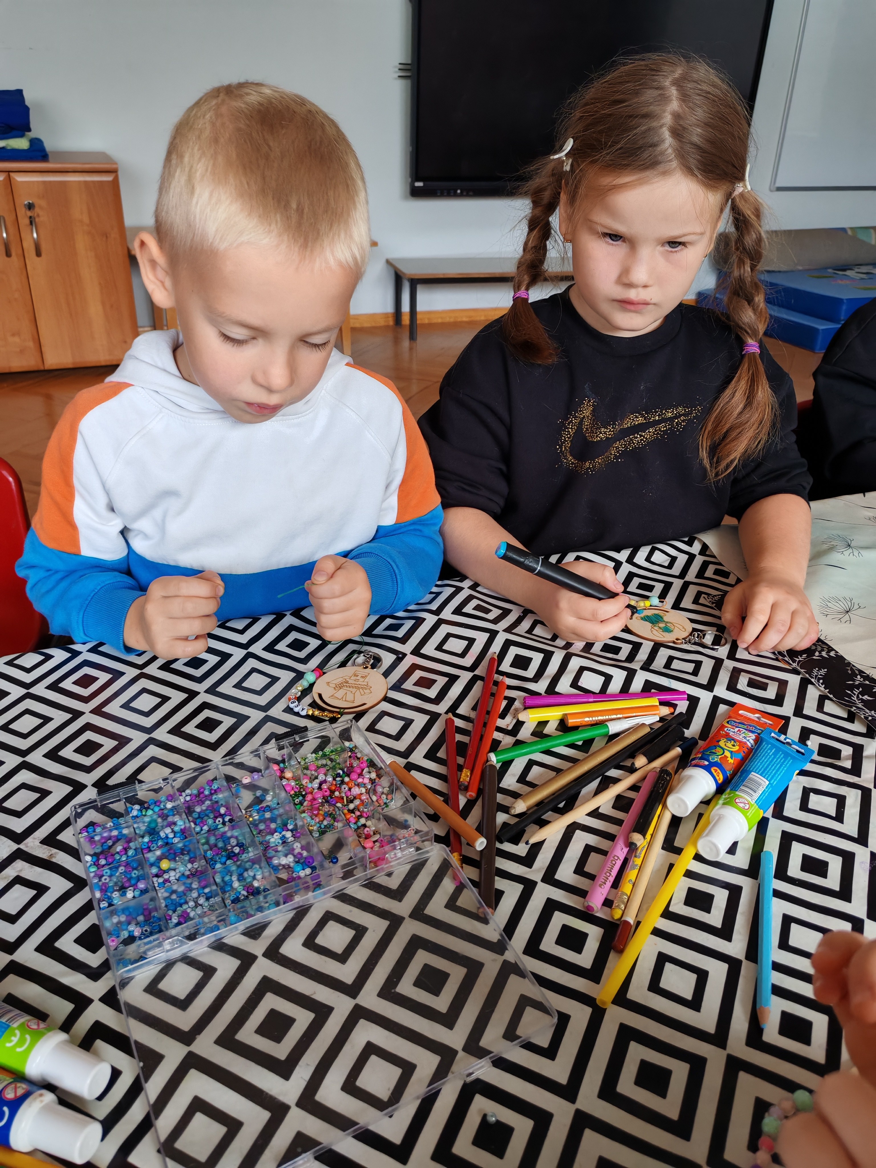 Z okazji Dnia Chłopaka odbyły się zajęcia z Atomem. Dzieci wykonały breloczki z ulubionymi postaciami: malowały, nawlekały koraliki. Następnie ulubione przez dzieci eksperymentowanie, mieszanie płynów, kolorów. Dużo dobrej zabawy.