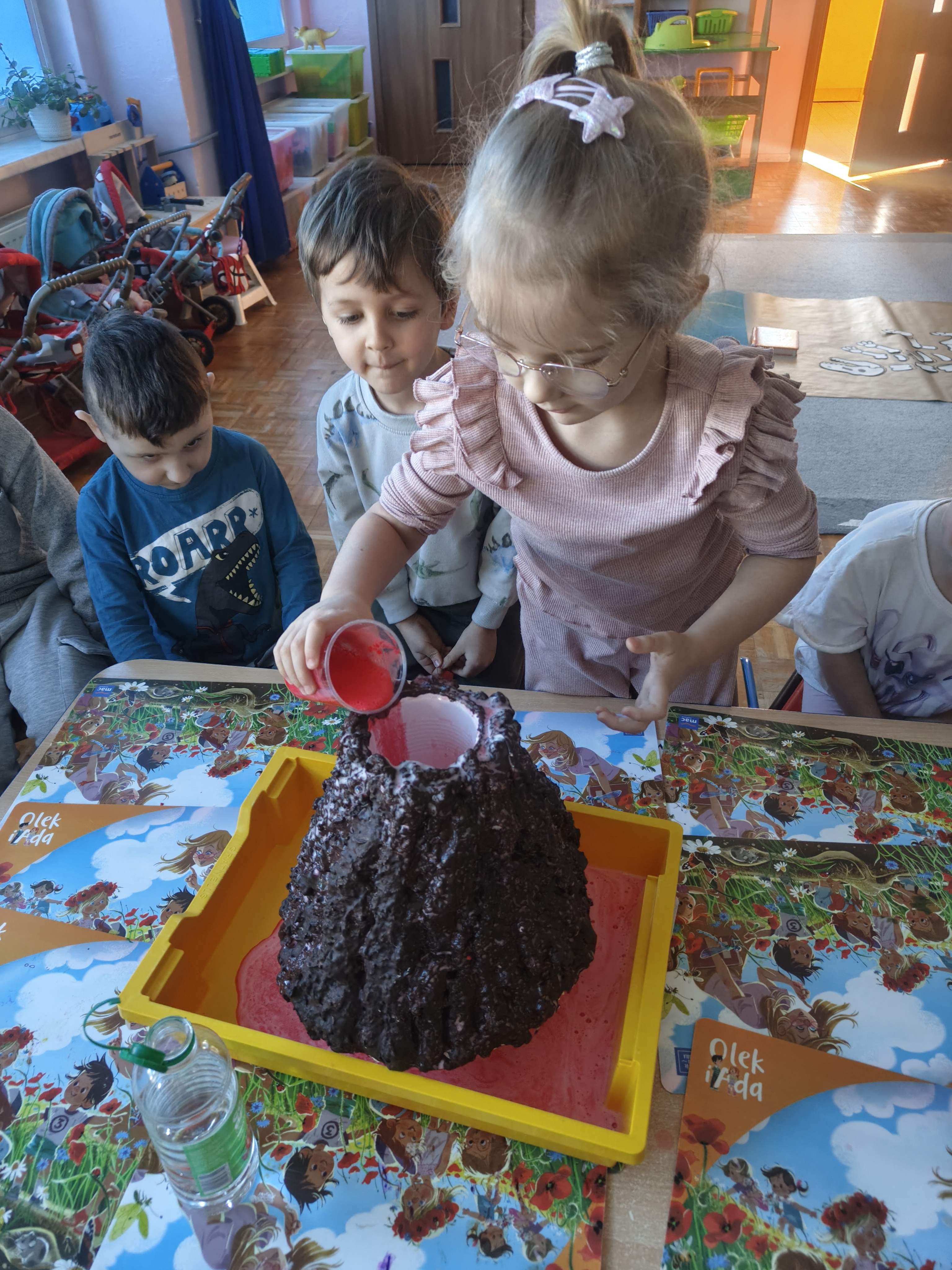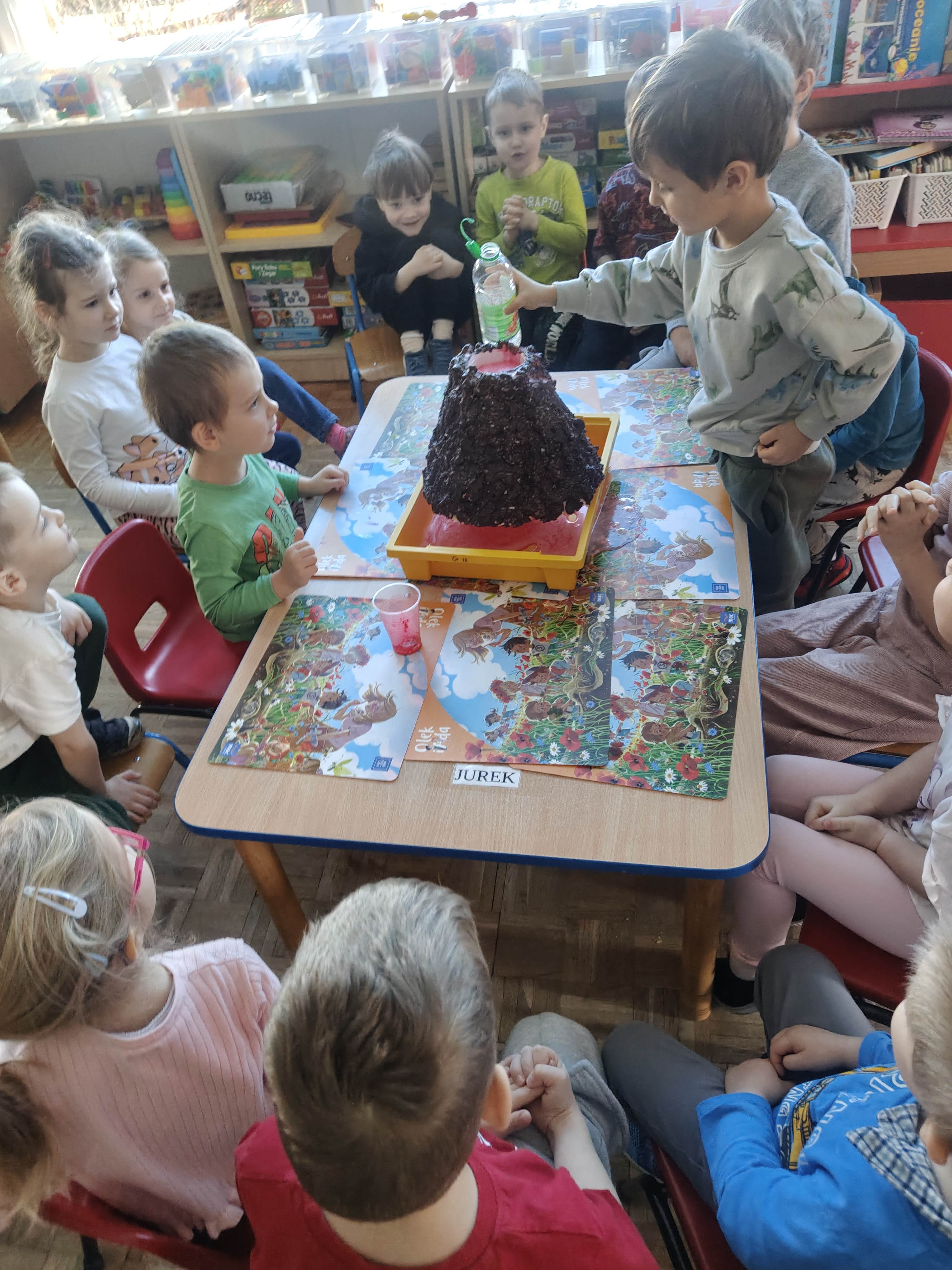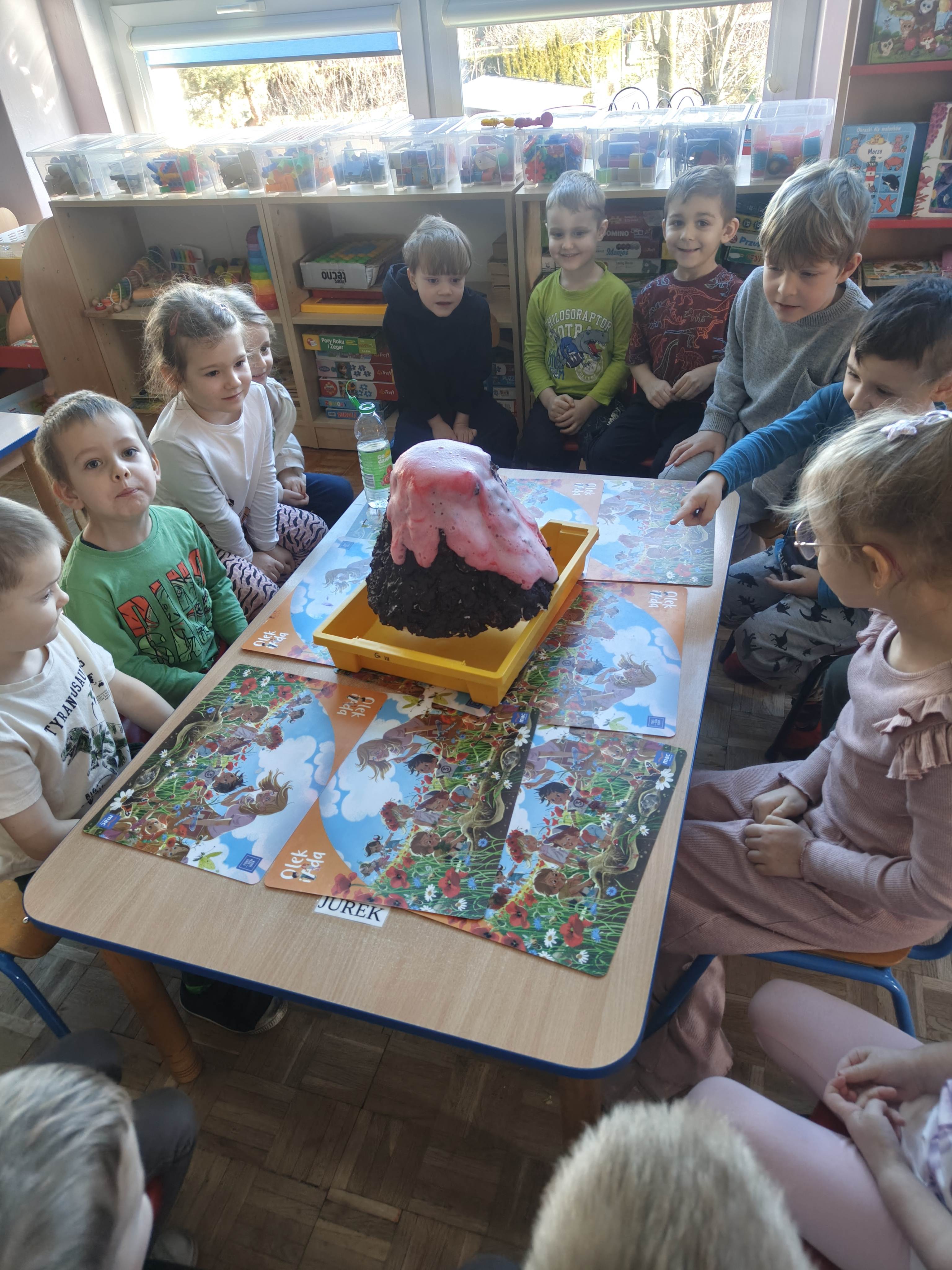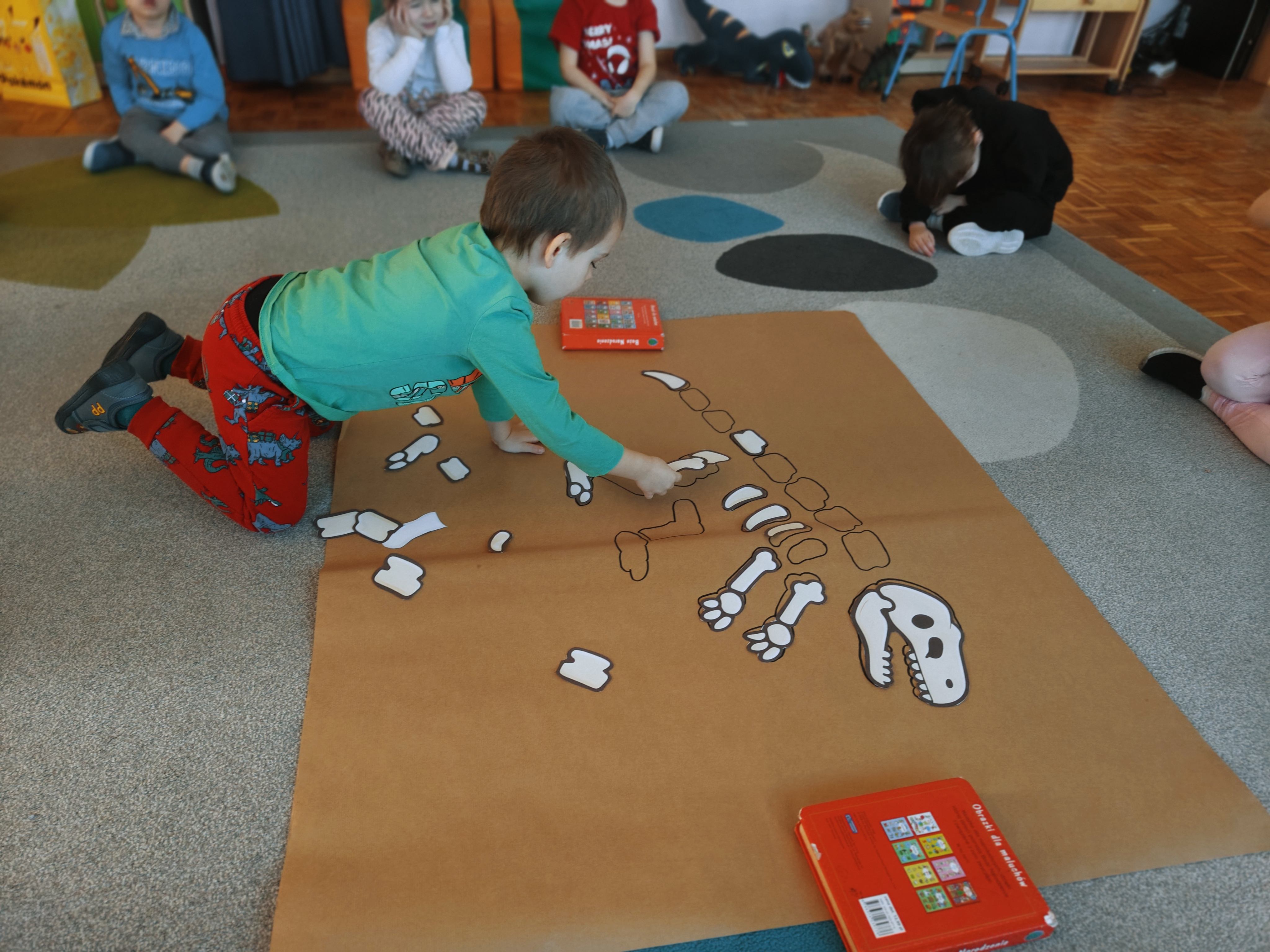 Pszczółki przeniosły się do prehistorycznego świata dinozaurów! Podczas zajęć mali odkrywcy budowali szkielety dinozaurów, poznając przy tym części ich ciała . Każdy mógł poczuć się jak prawdziwy paleontolog, składając kości w całość i odkrywając, jak wyglądały te niezwykłe stworzenia miliony lat temu. Rozmawialiśmy również o różnych gatunkach dinozaurów – takich jak Tyranozaur, Triceratops czy Brachiozaur – i uczyliśmy się ich nazw. Największą atrakcją dnia był oczywiście wybuch wulkanu! To widowiskowe doświadczenie wzbudziło ogromne emocje i zachwyt wśród dzieci. To był dzień pełen nauki, zabawy i niezapomnianych wrażeń!