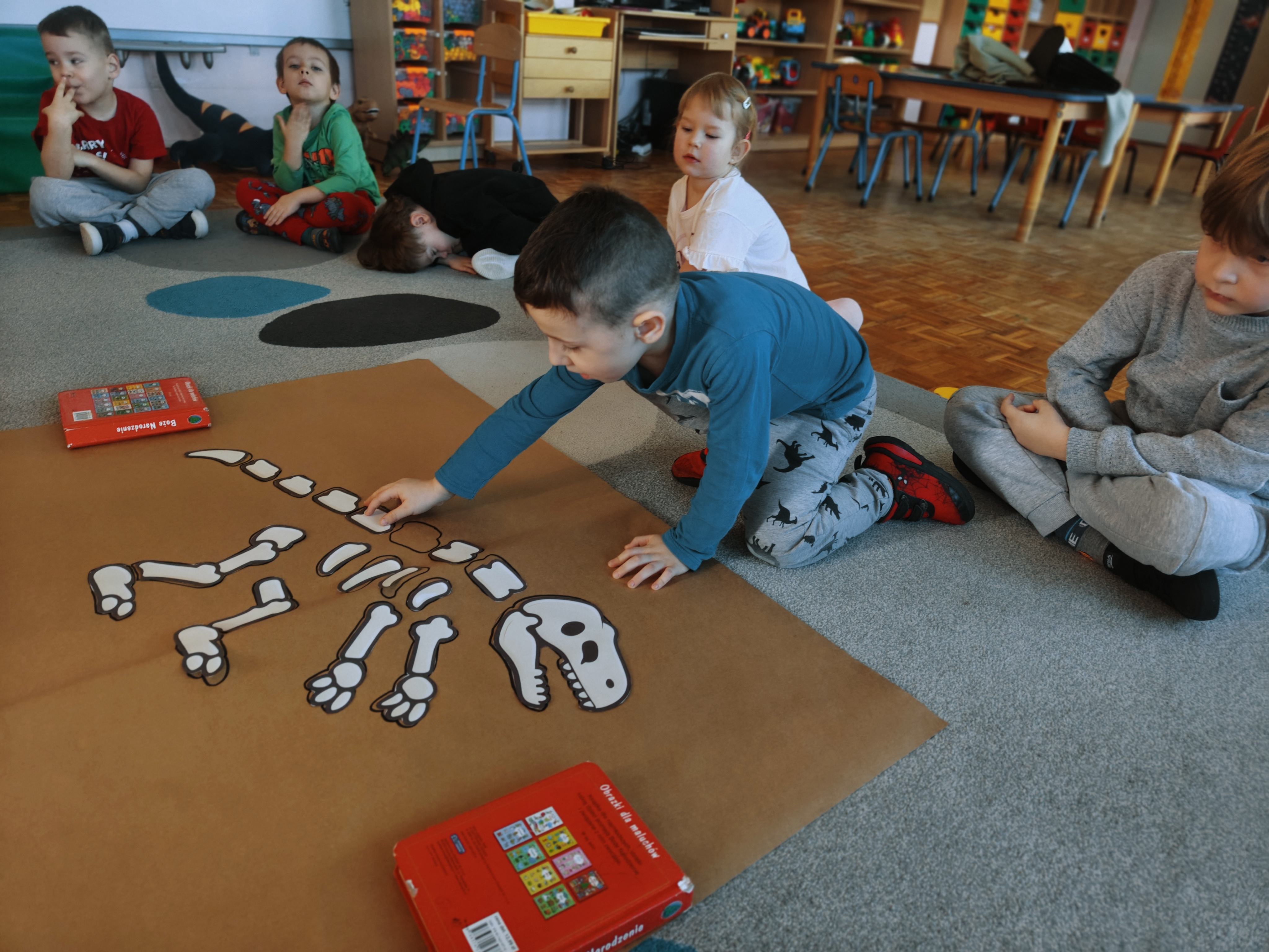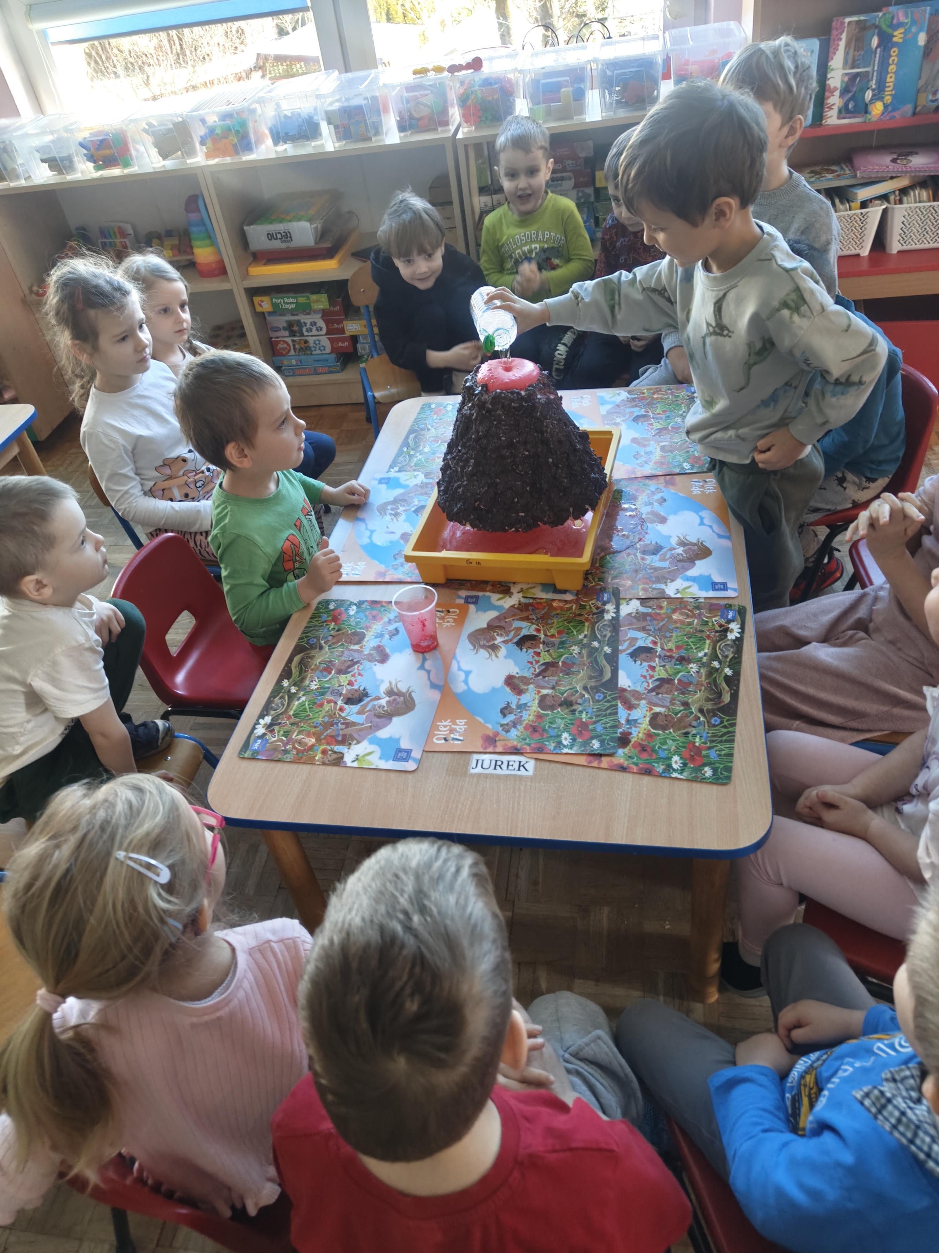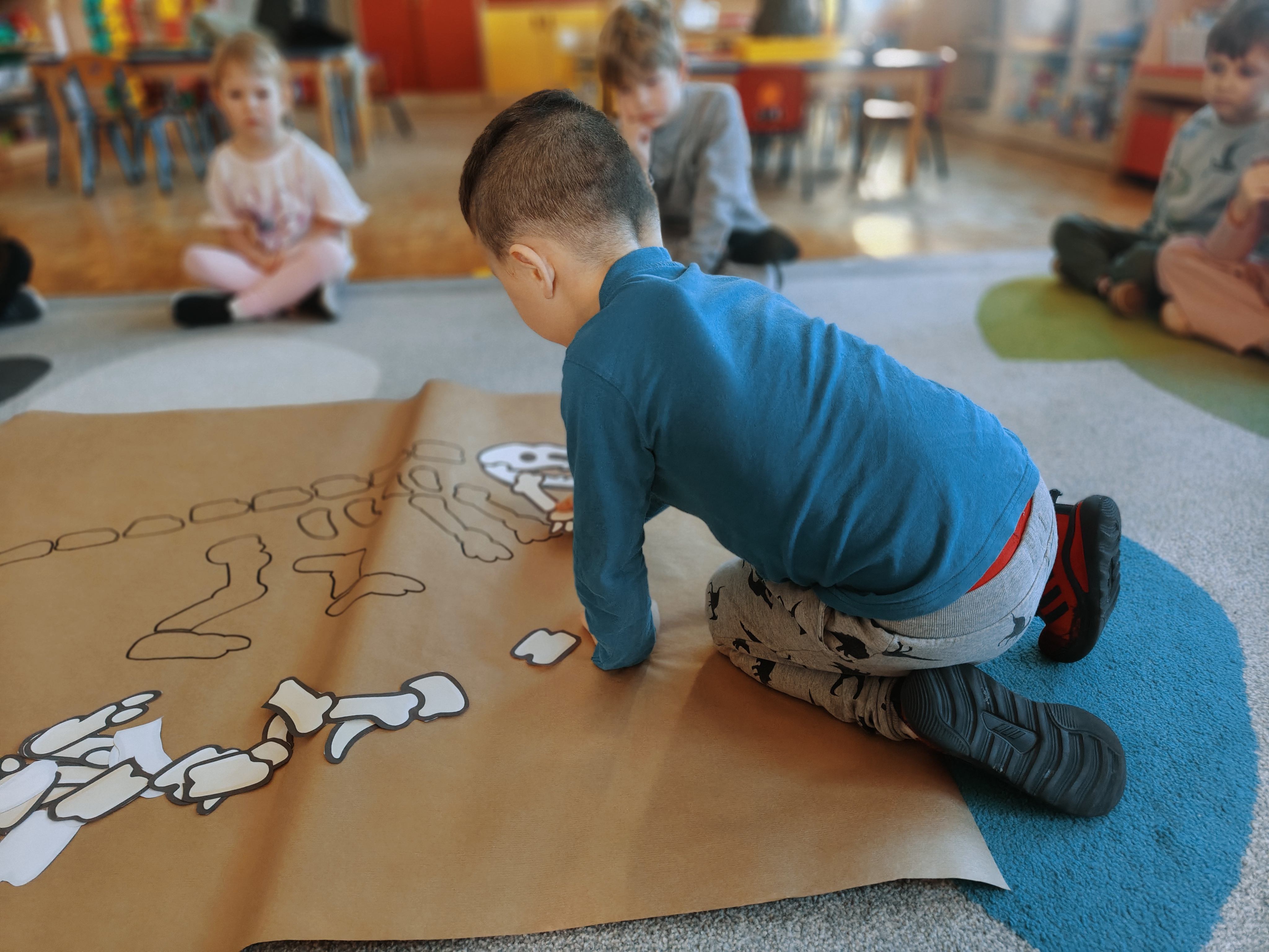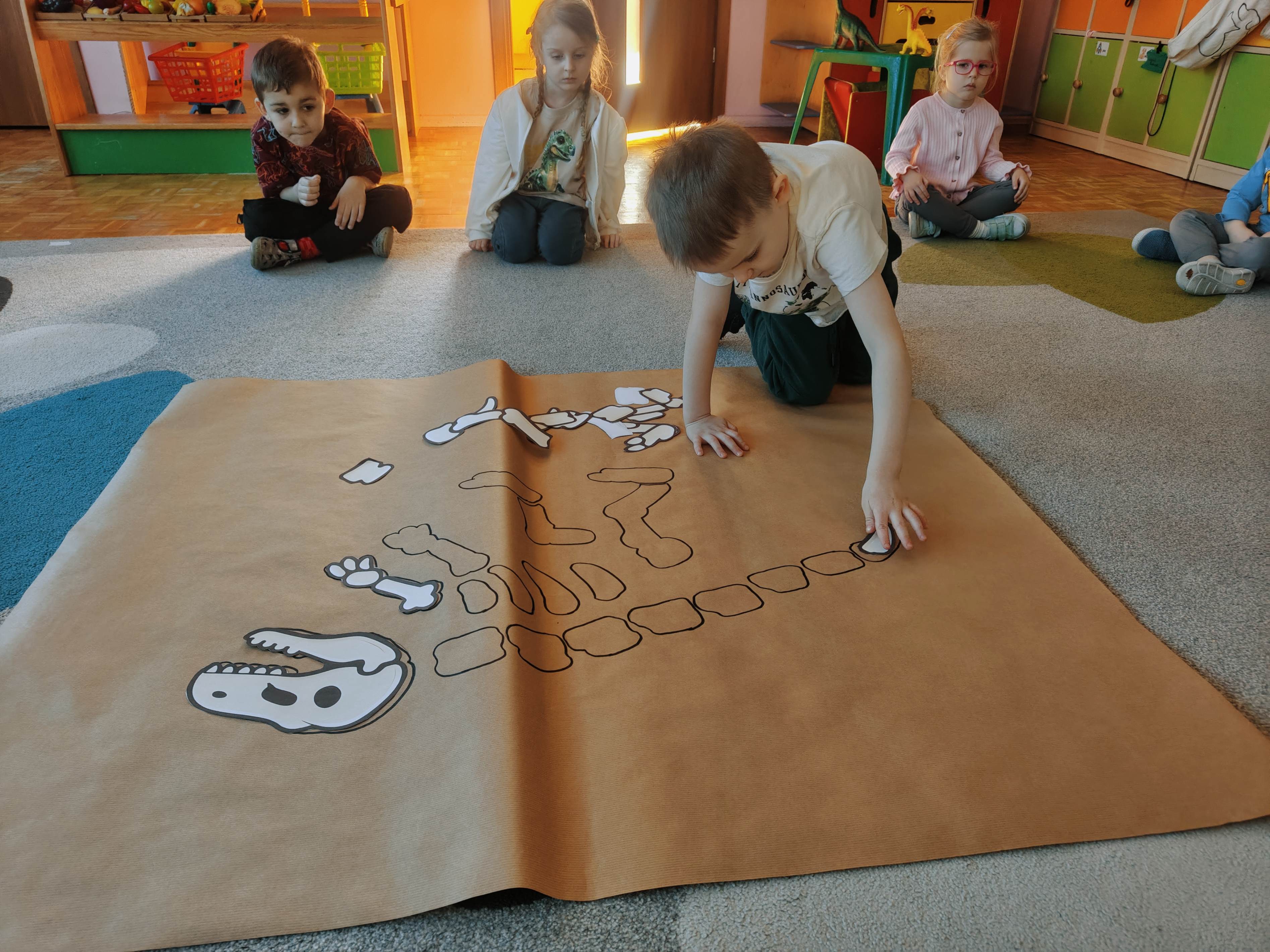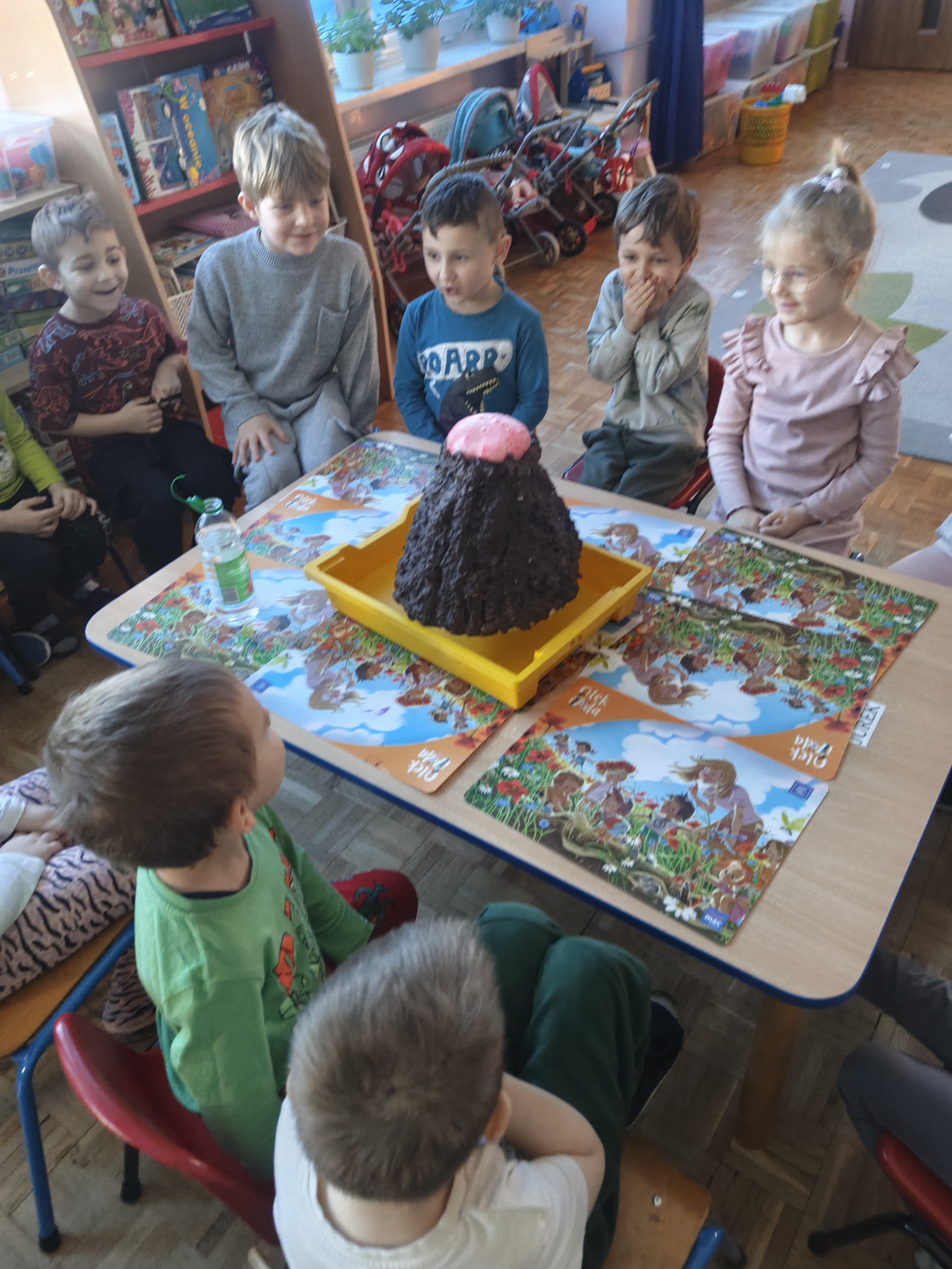 Pszczółki przeniosły się do prehistorycznego świata dinozaurów! Podczas zajęć mali odkrywcy budowali szkielety dinozaurów, poznając przy tym części ich ciała . Każdy mógł poczuć się jak prawdziwy paleontolog, składając kości w całość i odkrywając, jak wyglądały te niezwykłe stworzenia miliony lat temu. Rozmawialiśmy również o różnych gatunkach dinozaurów – takich jak Tyranozaur, Triceratops czy Brachiozaur – i uczyliśmy się ich nazw. Największą atrakcją dnia był oczywiście wybuch wulkanu! To widowiskowe doświadczenie wzbudziło ogromne emocje i zachwyt wśród dzieci. To był dzień pełen nauki, zabawy i niezapomnianych wrażeń!