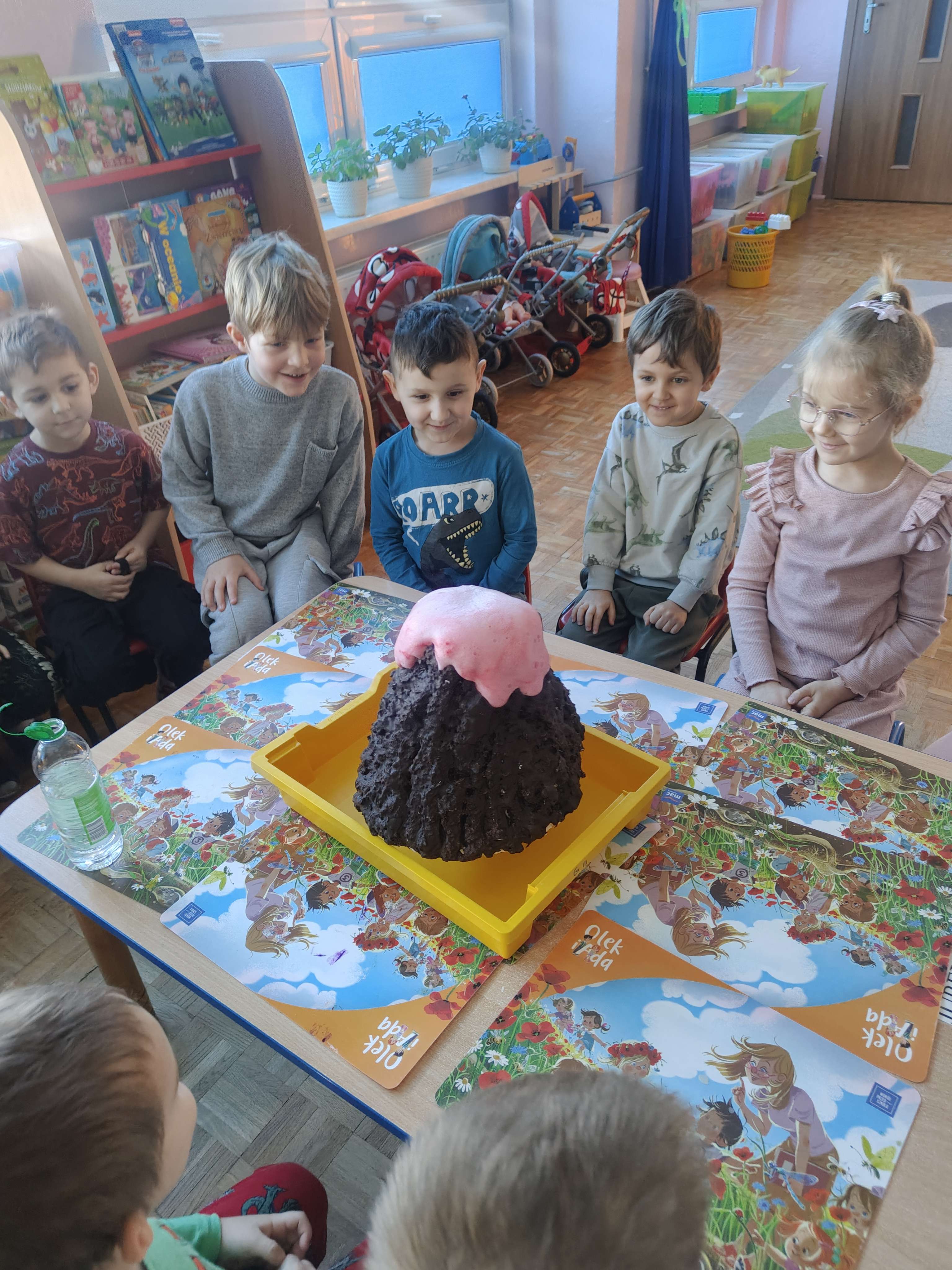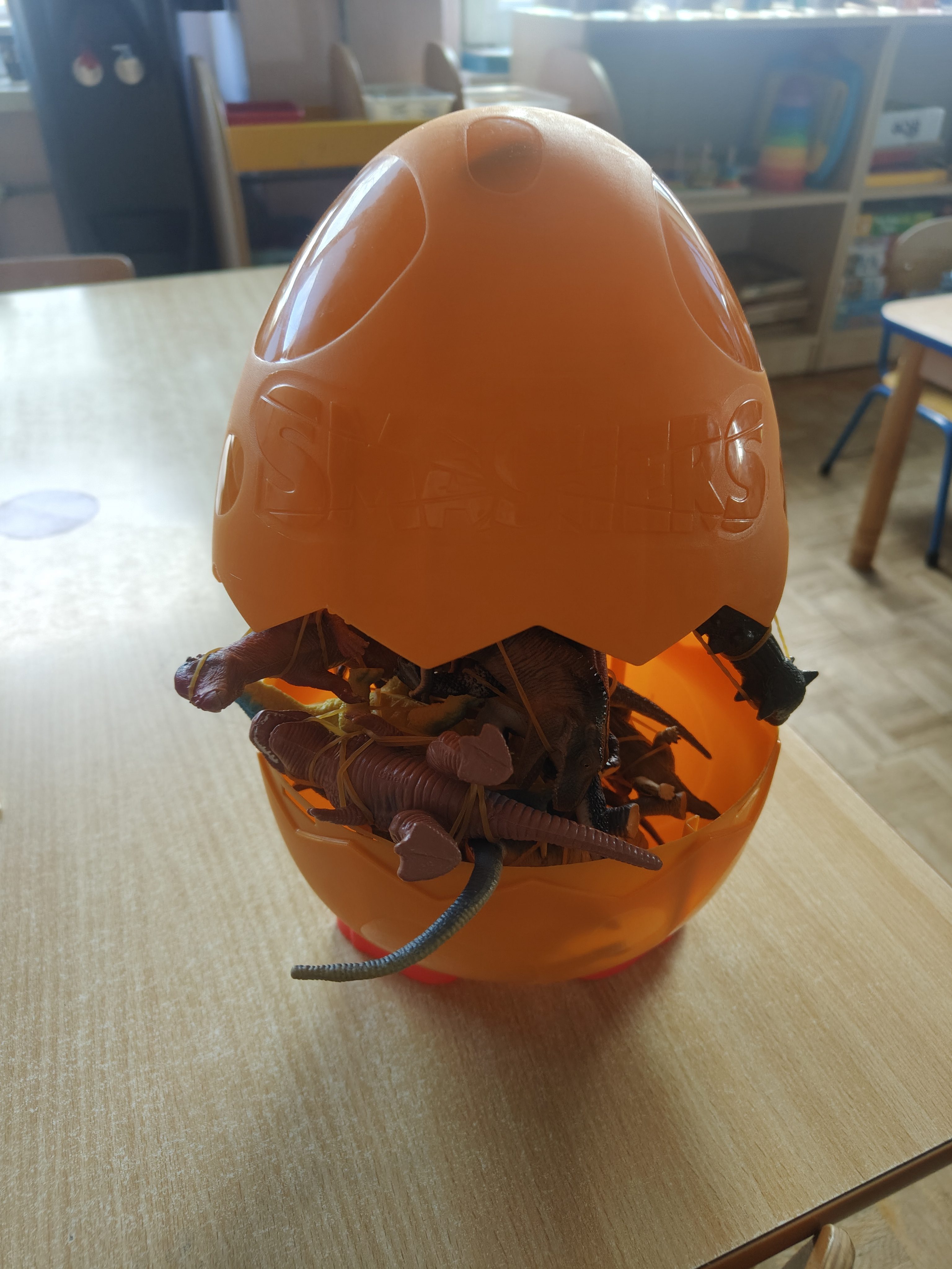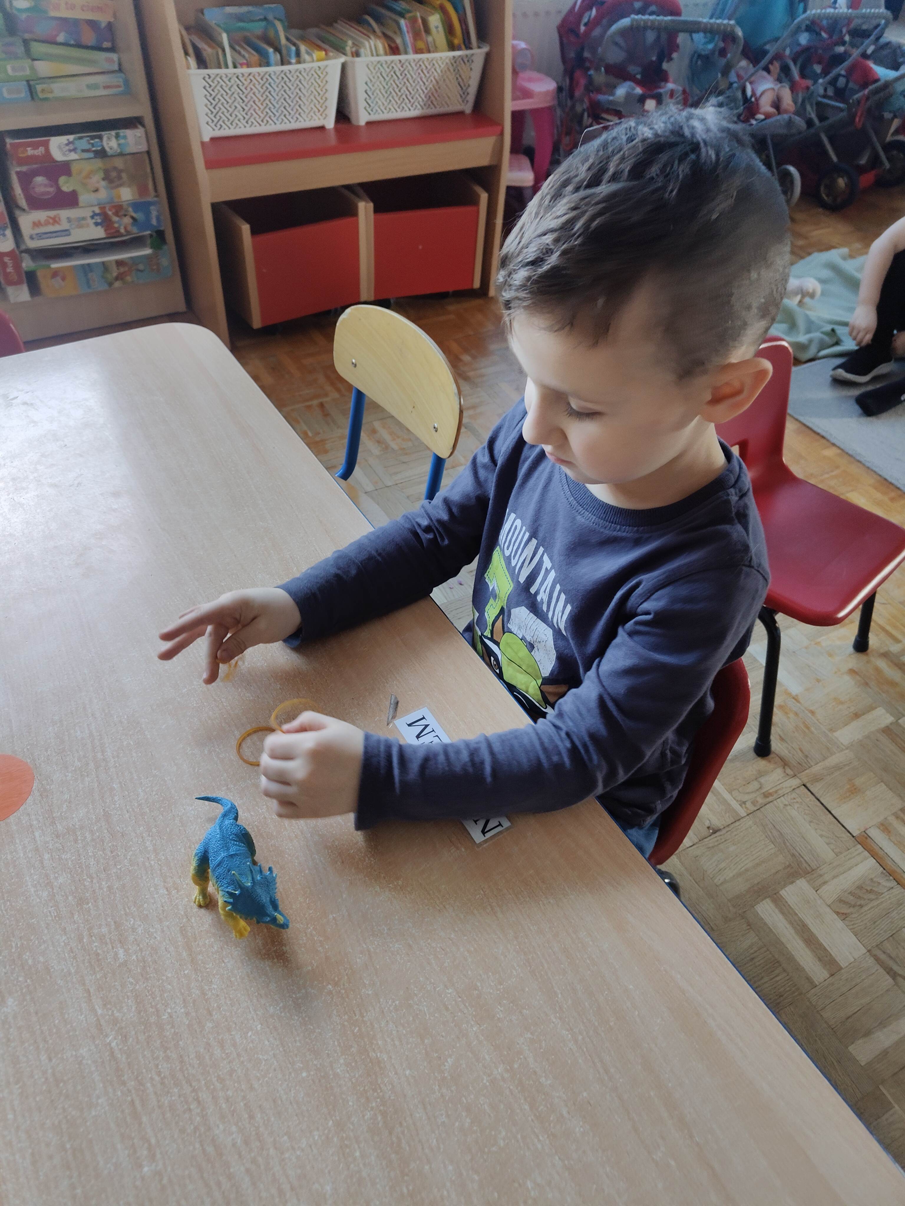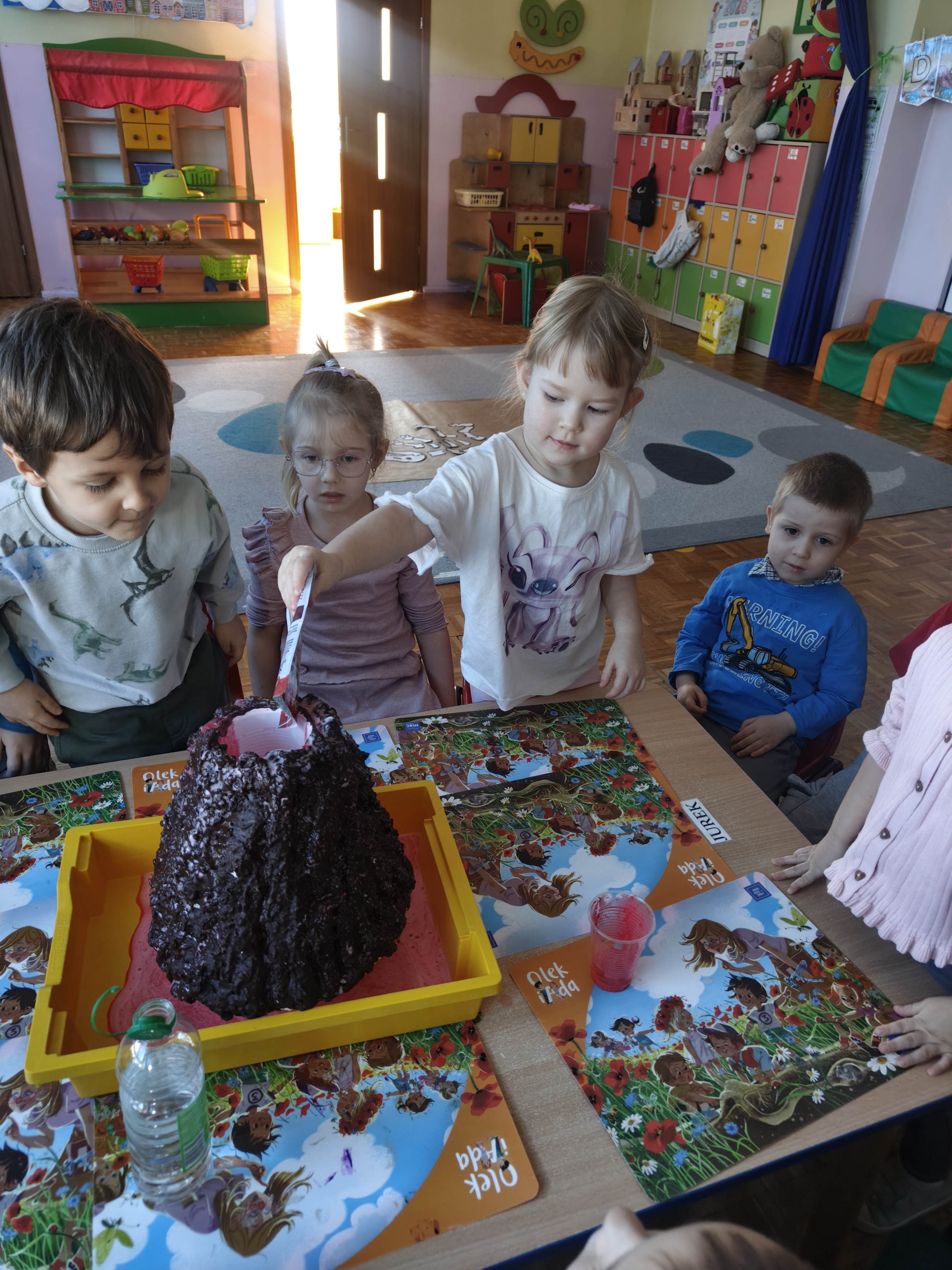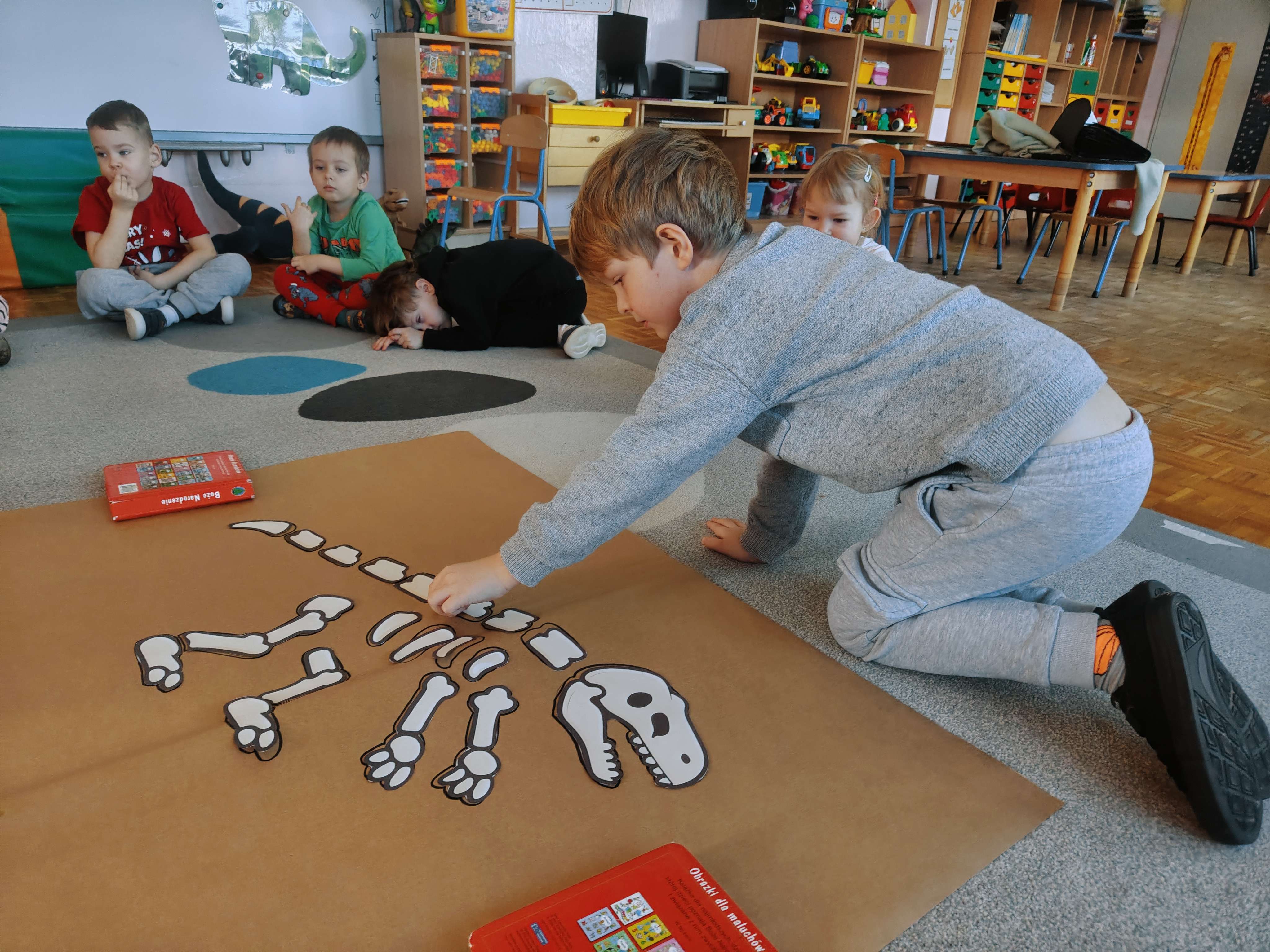 Pszczółki przeniosły się do prehistorycznego świata dinozaurów! Podczas zajęć mali odkrywcy budowali szkielety dinozaurów, poznając przy tym części ich ciała . Każdy mógł poczuć się jak prawdziwy paleontolog, składając kości w całość i odkrywając, jak wyglądały te niezwykłe stworzenia miliony lat temu. Rozmawialiśmy również o różnych gatunkach dinozaurów – takich jak Tyranozaur, Triceratops czy Brachiozaur – i uczyliśmy się ich nazw. Największą atrakcją dnia był oczywiście wybuch wulkanu! To widowiskowe doświadczenie wzbudziło ogromne emocje i zachwyt wśród dzieci. To był dzień pełen nauki, zabawy i niezapomnianych wrażeń!