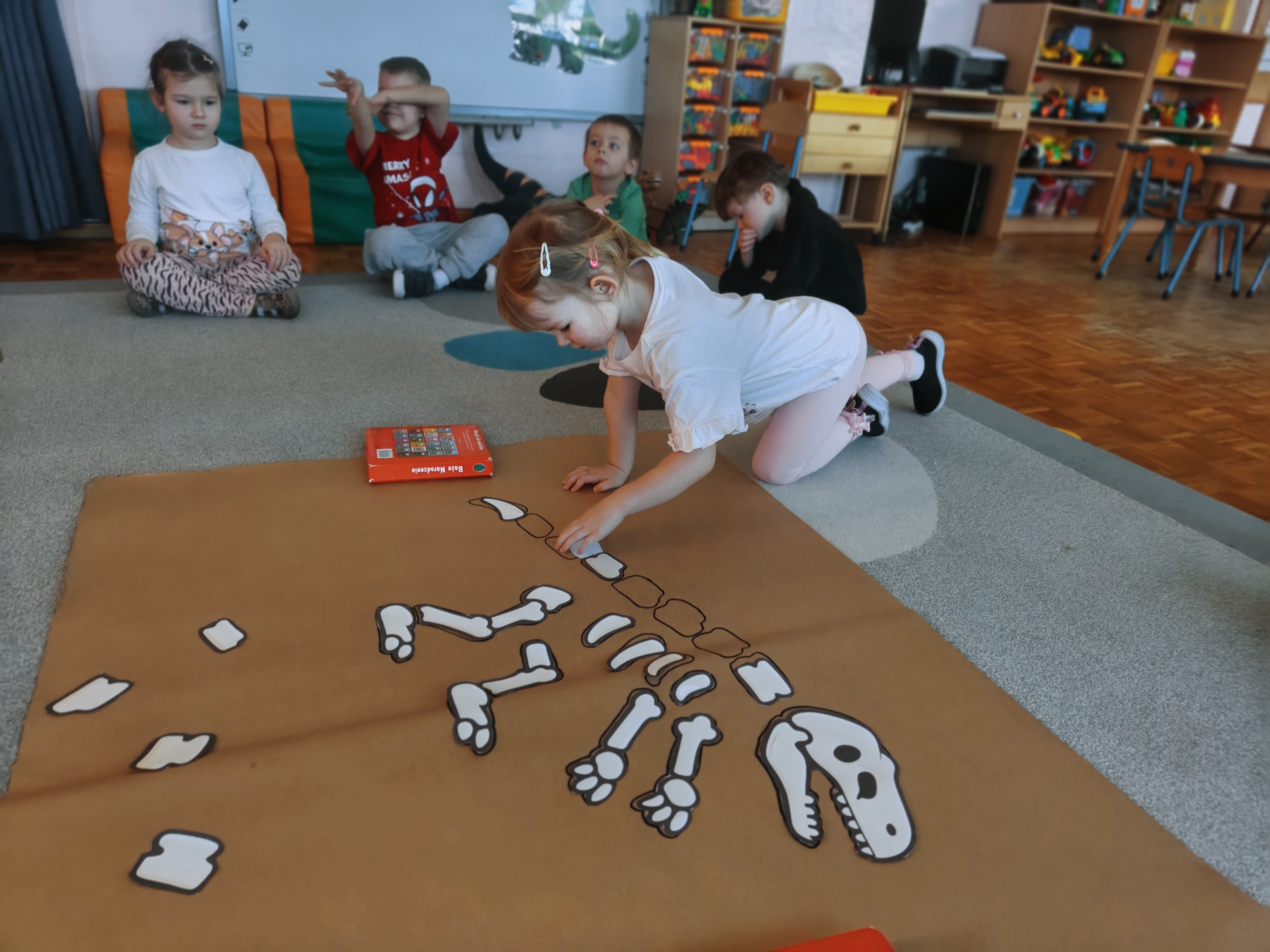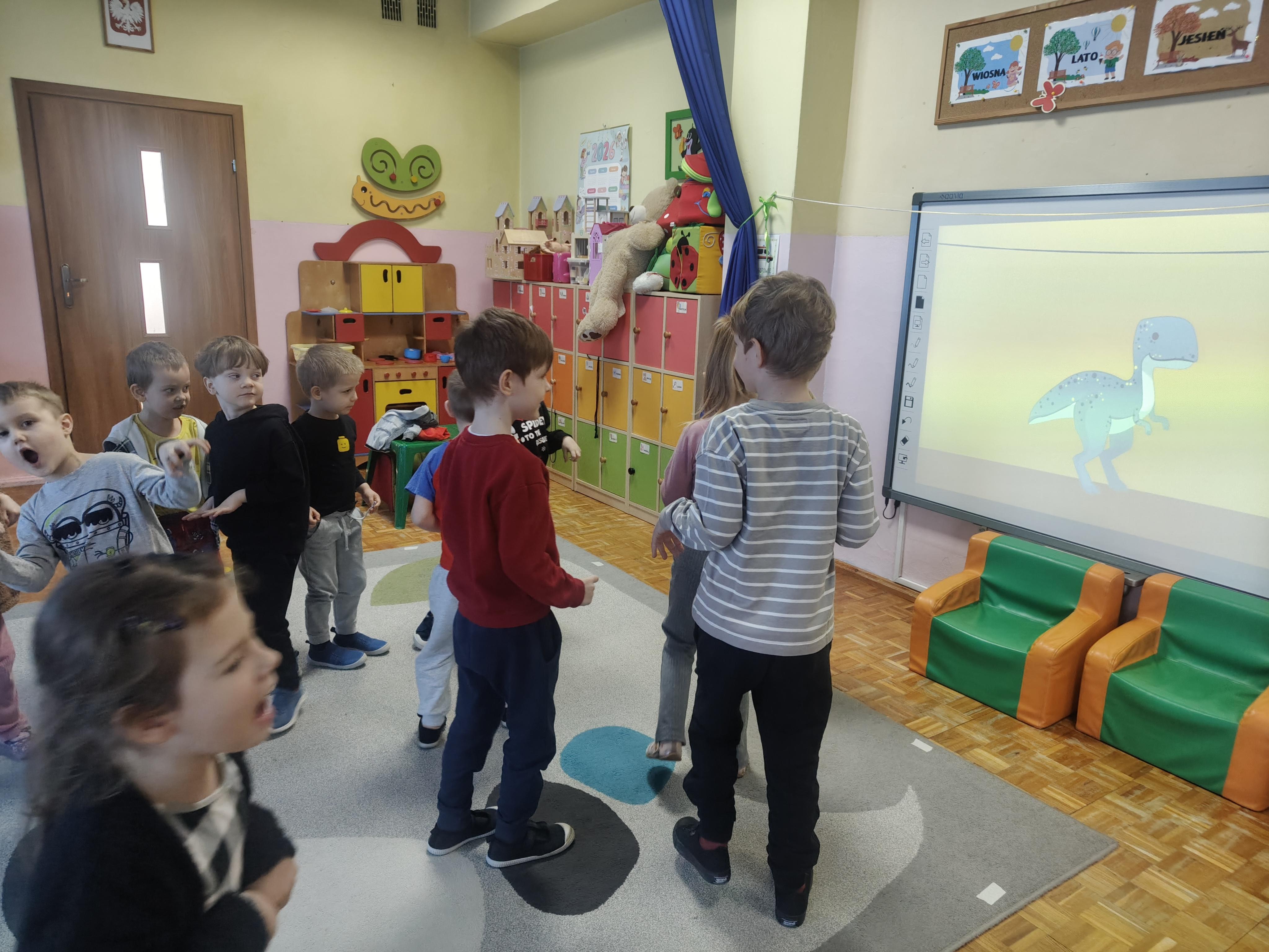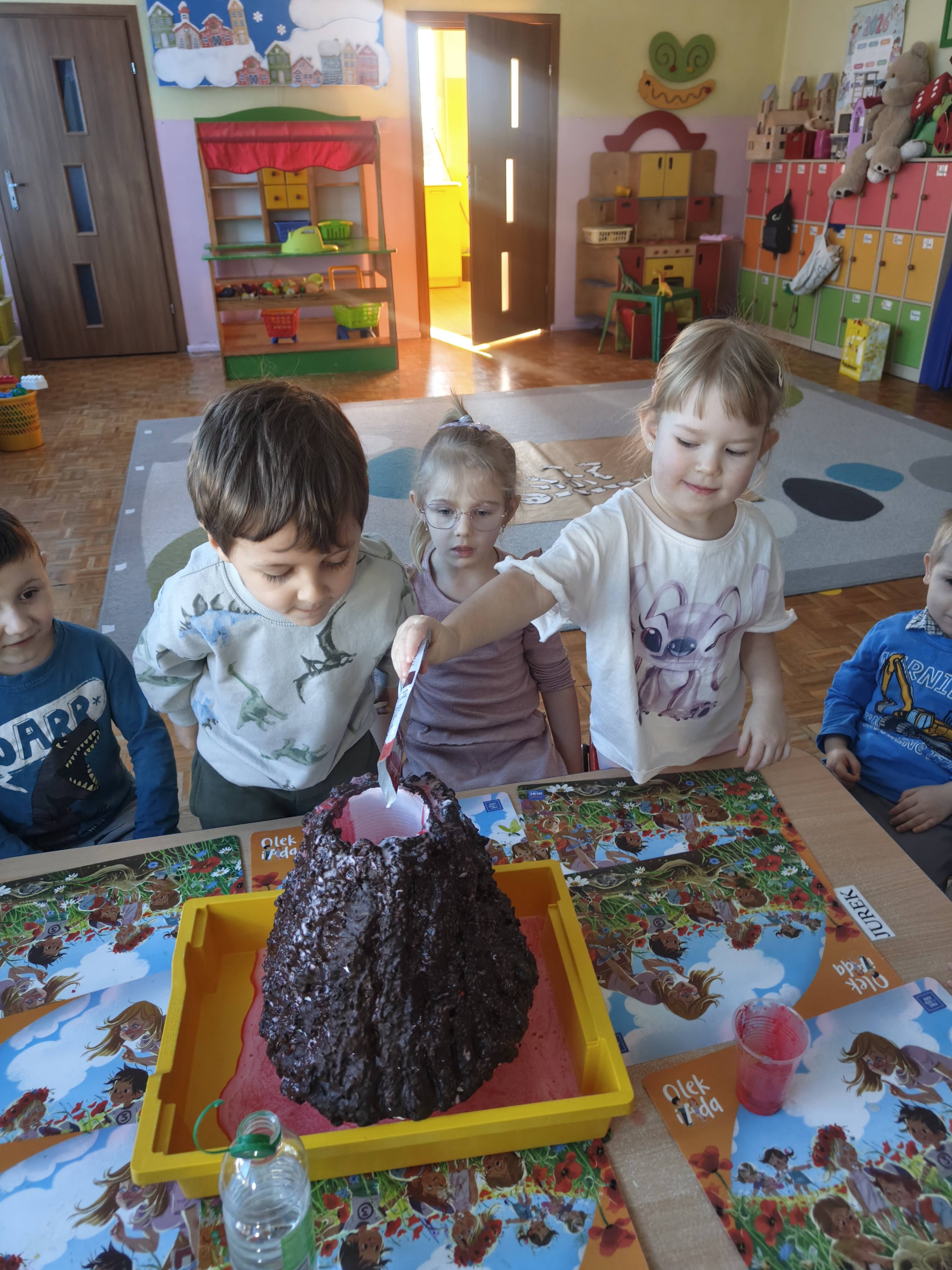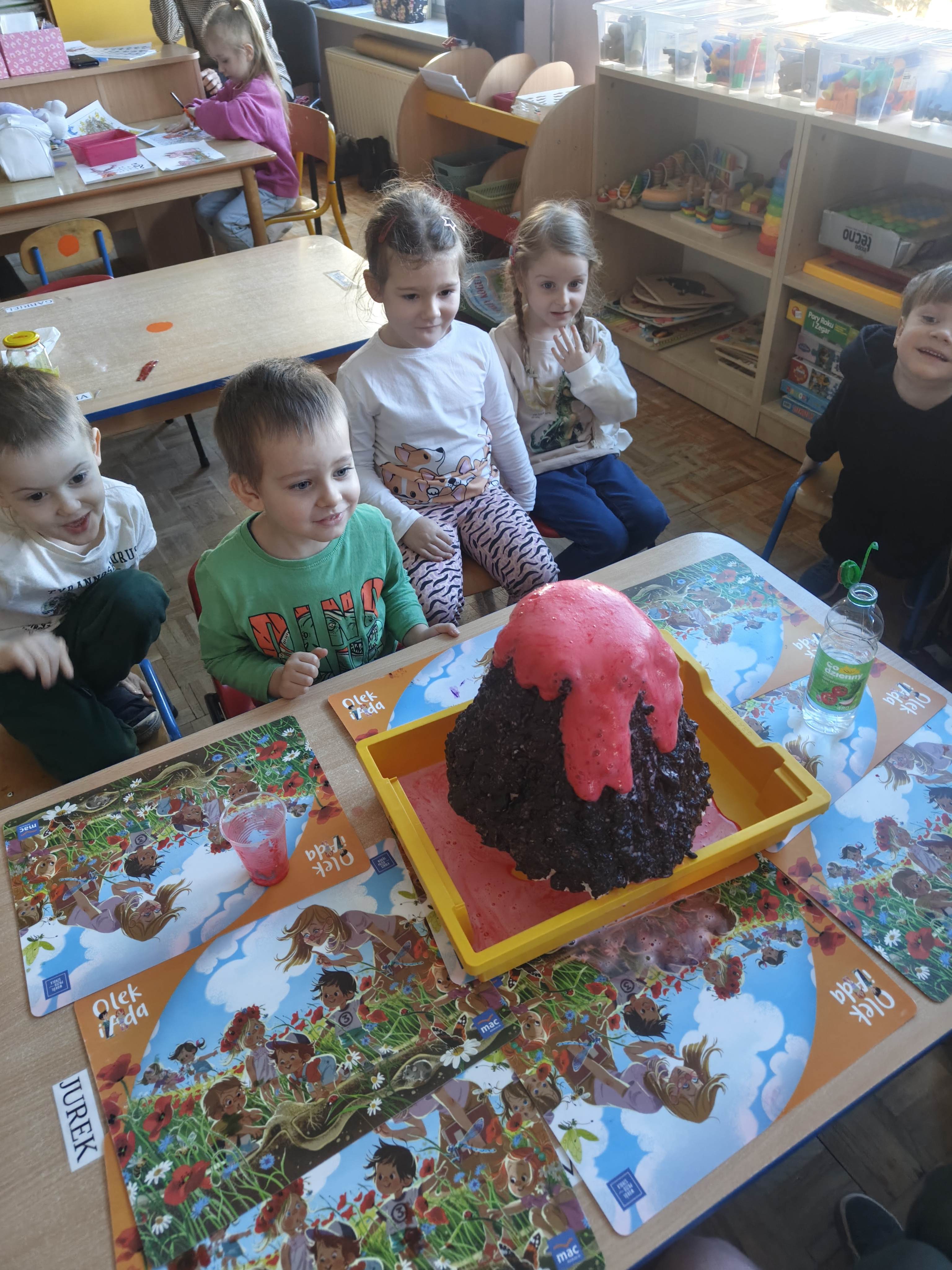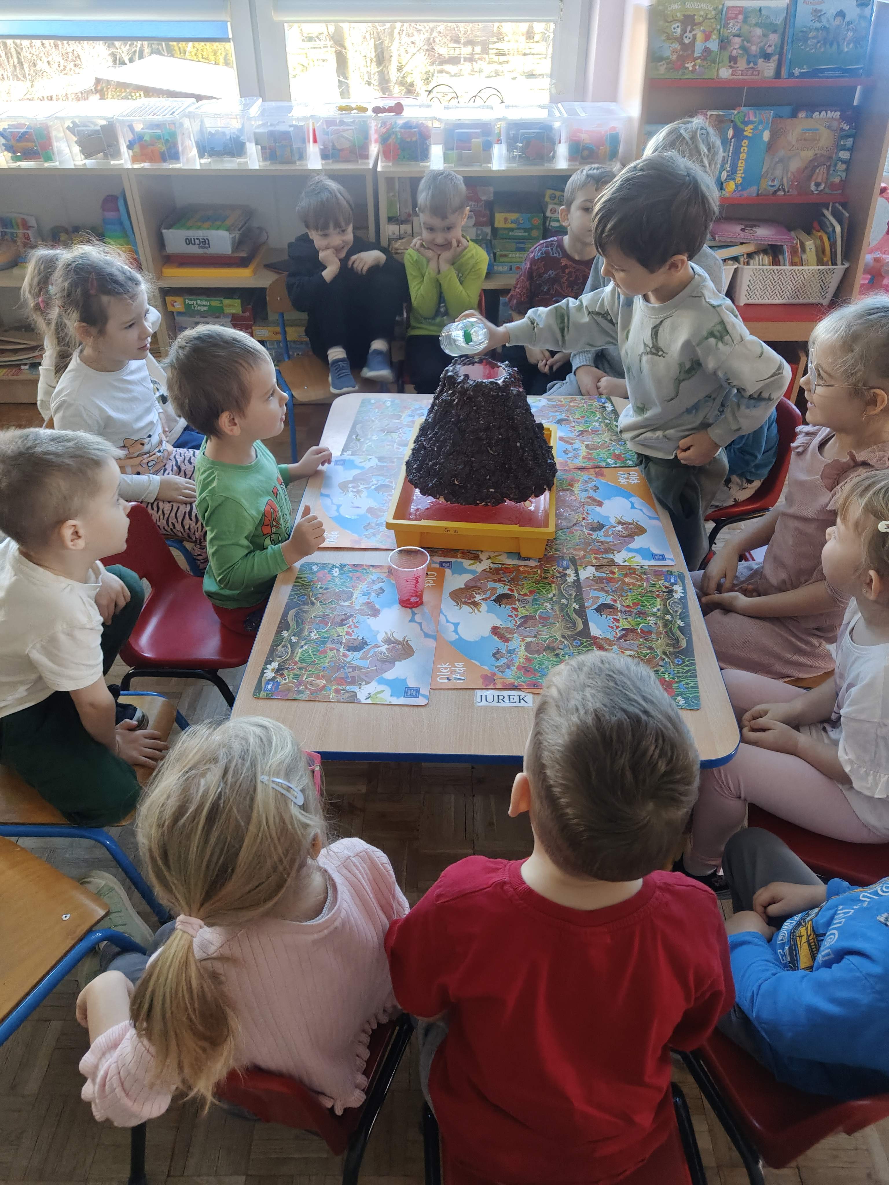 Pszczółki przeniosły się do prehistorycznego świata dinozaurów! Podczas zajęć mali odkrywcy budowali szkielety dinozaurów, poznając przy tym części ich ciała . Każdy mógł poczuć się jak prawdziwy paleontolog, składając kości w całość i odkrywając, jak wyglądały te niezwykłe stworzenia miliony lat temu. Rozmawialiśmy również o różnych gatunkach dinozaurów – takich jak Tyranozaur, Triceratops czy Brachiozaur – i uczyliśmy się ich nazw. Największą atrakcją dnia był oczywiście wybuch wulkanu! To widowiskowe doświadczenie wzbudziło ogromne emocje i zachwyt wśród dzieci. To był dzień pełen nauki, zabawy i niezapomnianych wrażeń!