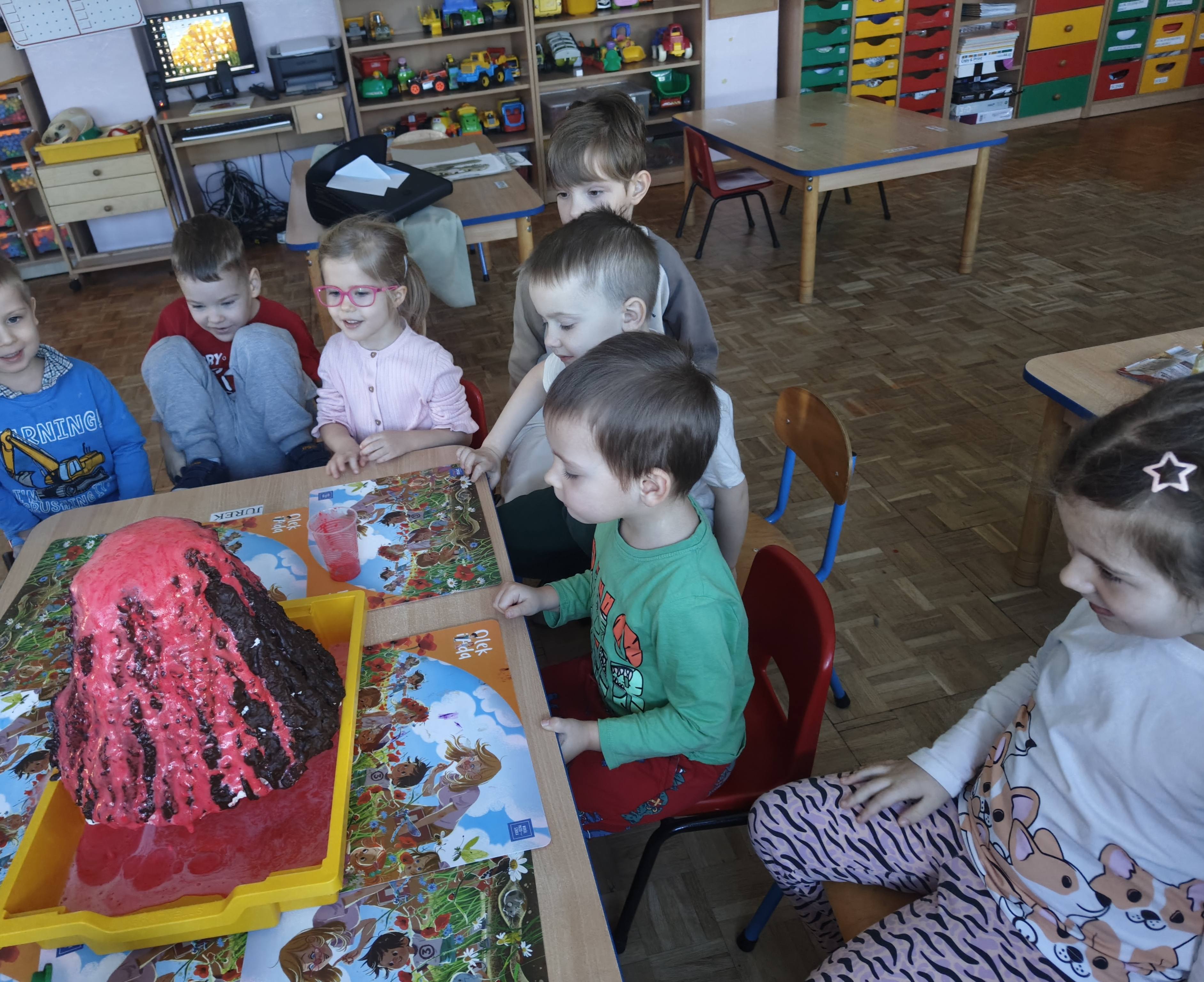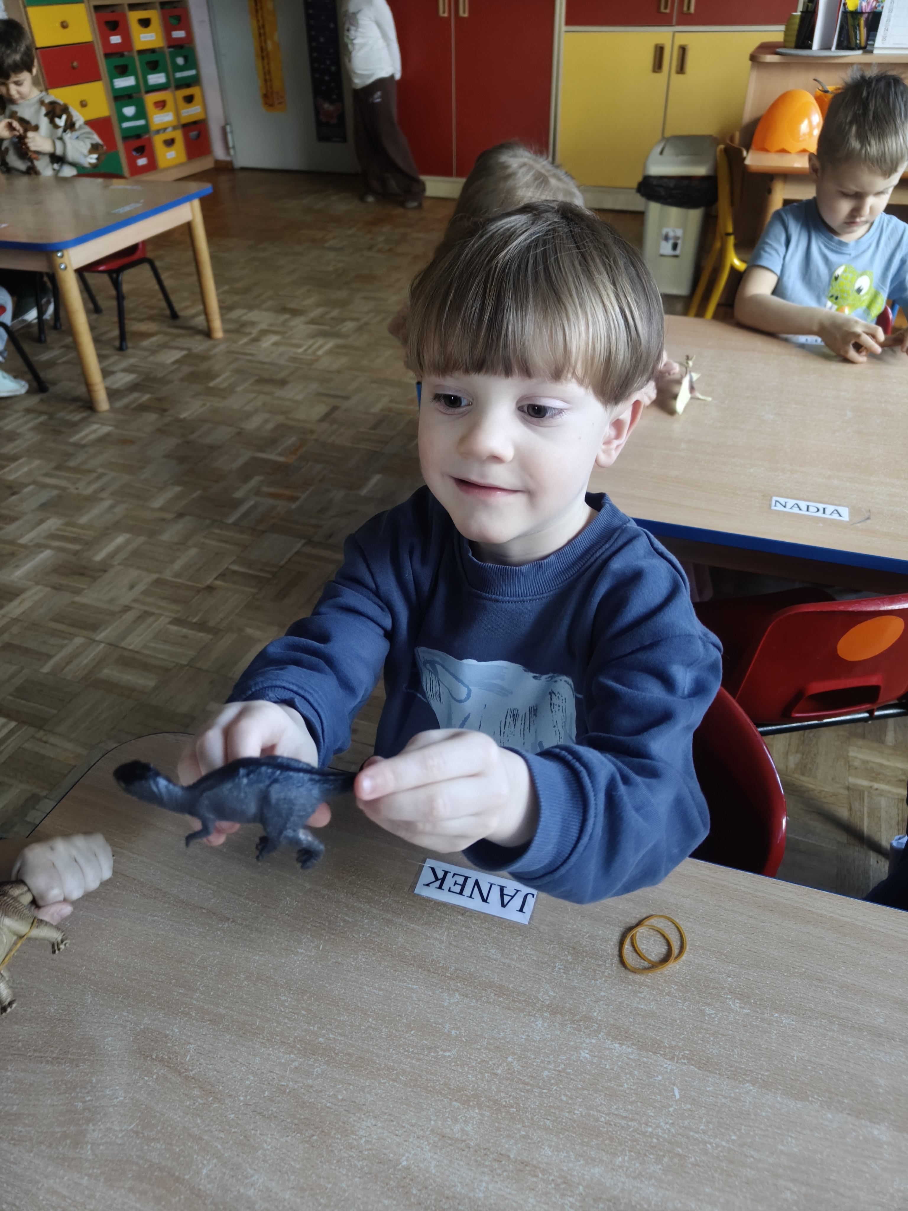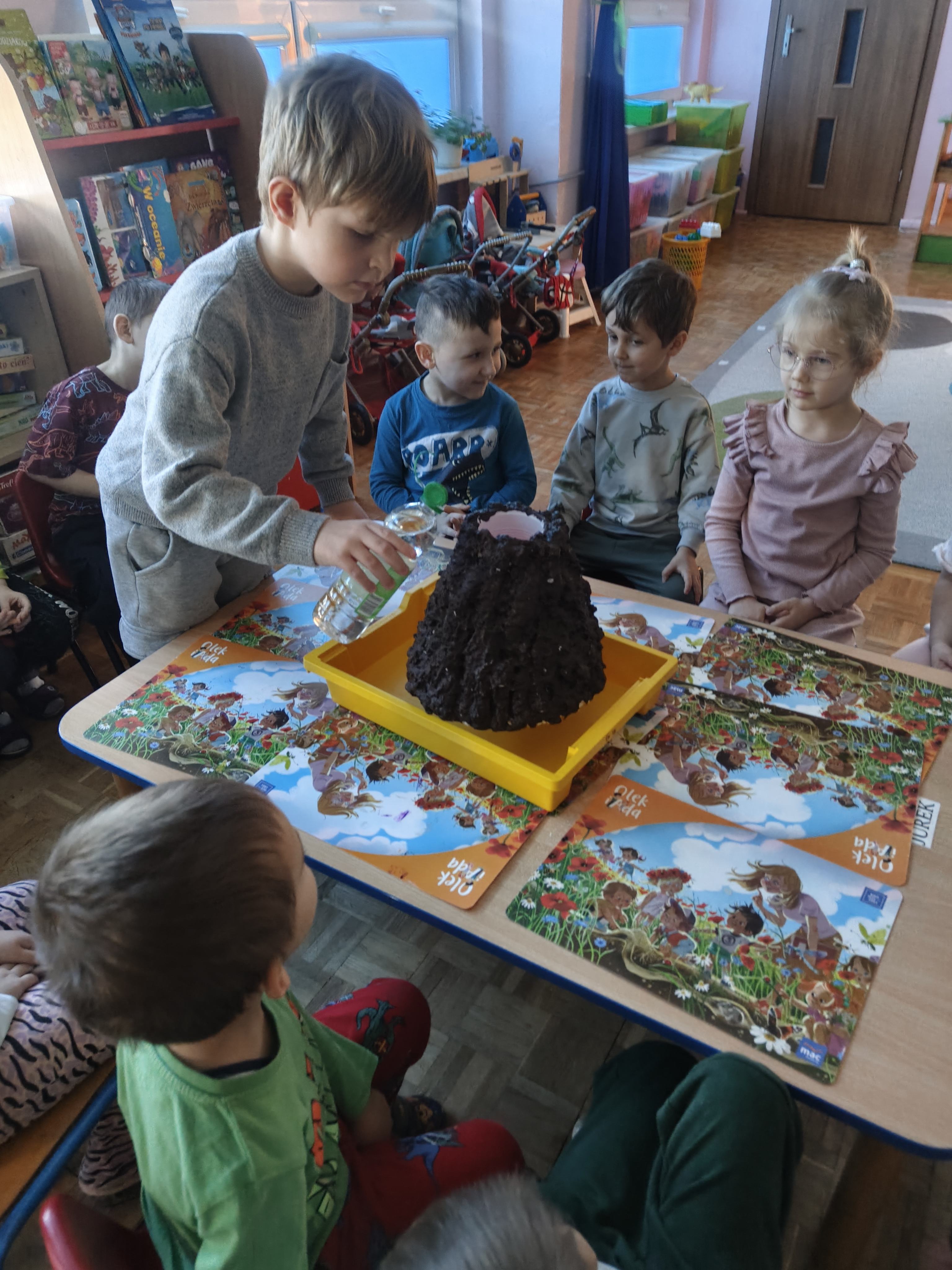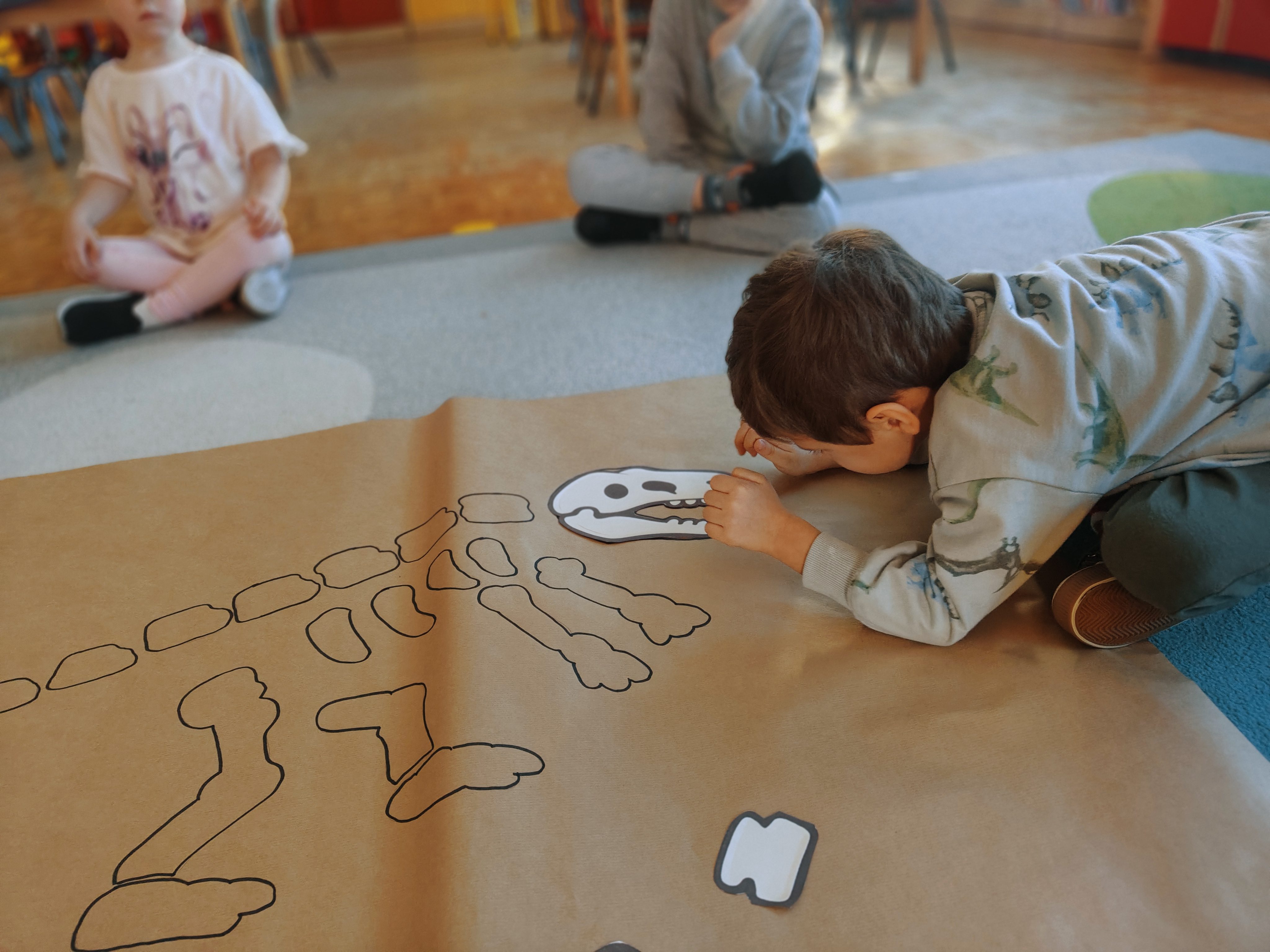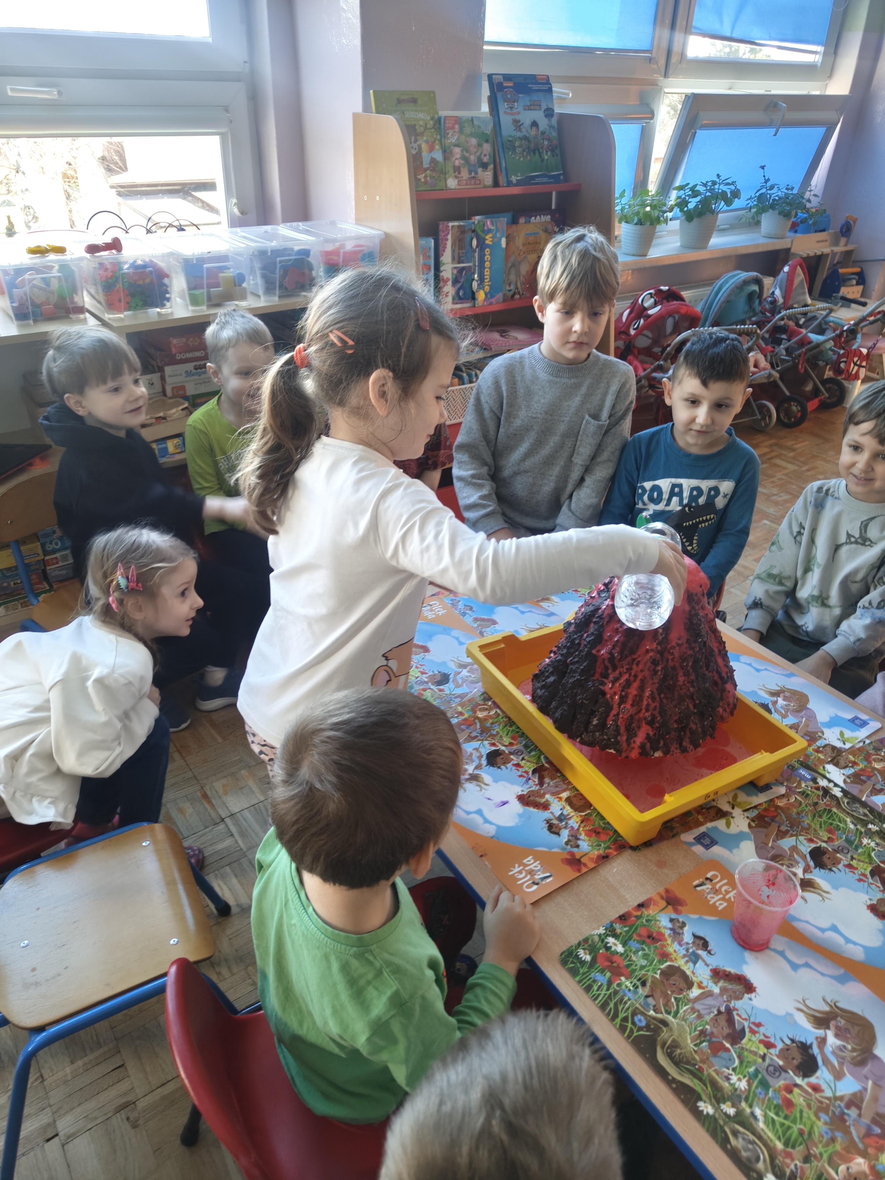 Pszczółki przeniosły się do prehistorycznego świata dinozaurów! Podczas zajęć mali odkrywcy budowali szkielety dinozaurów, poznając przy tym części ich ciała . Każdy mógł poczuć się jak prawdziwy paleontolog, składając kości w całość i odkrywając, jak wyglądały te niezwykłe stworzenia miliony lat temu. Rozmawialiśmy również o różnych gatunkach dinozaurów – takich jak Tyranozaur, Triceratops czy Brachiozaur – i uczyliśmy się ich nazw. Największą atrakcją dnia był oczywiście wybuch wulkanu! To widowiskowe doświadczenie wzbudziło ogromne emocje i zachwyt wśród dzieci. To był dzień pełen nauki, zabawy i niezapomnianych wrażeń!