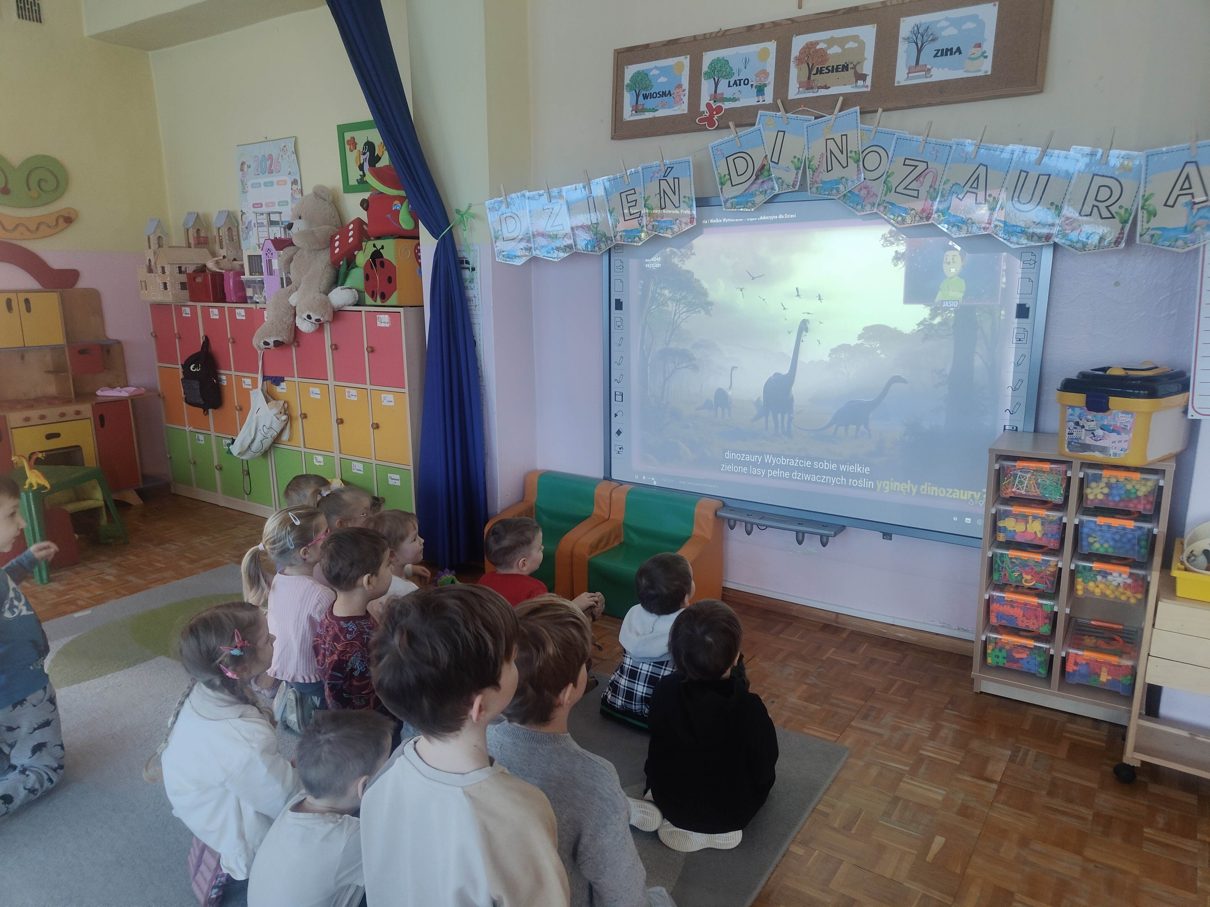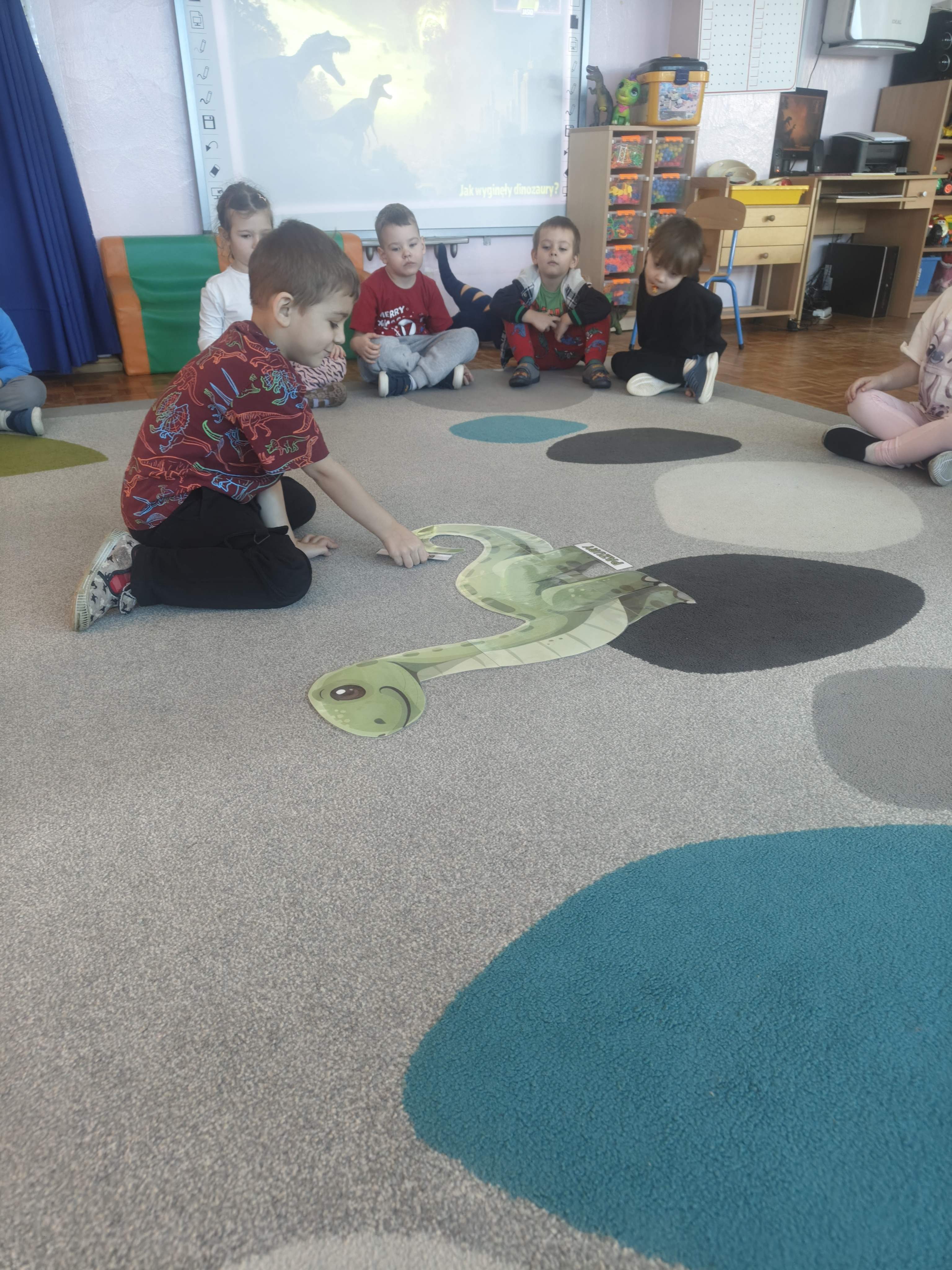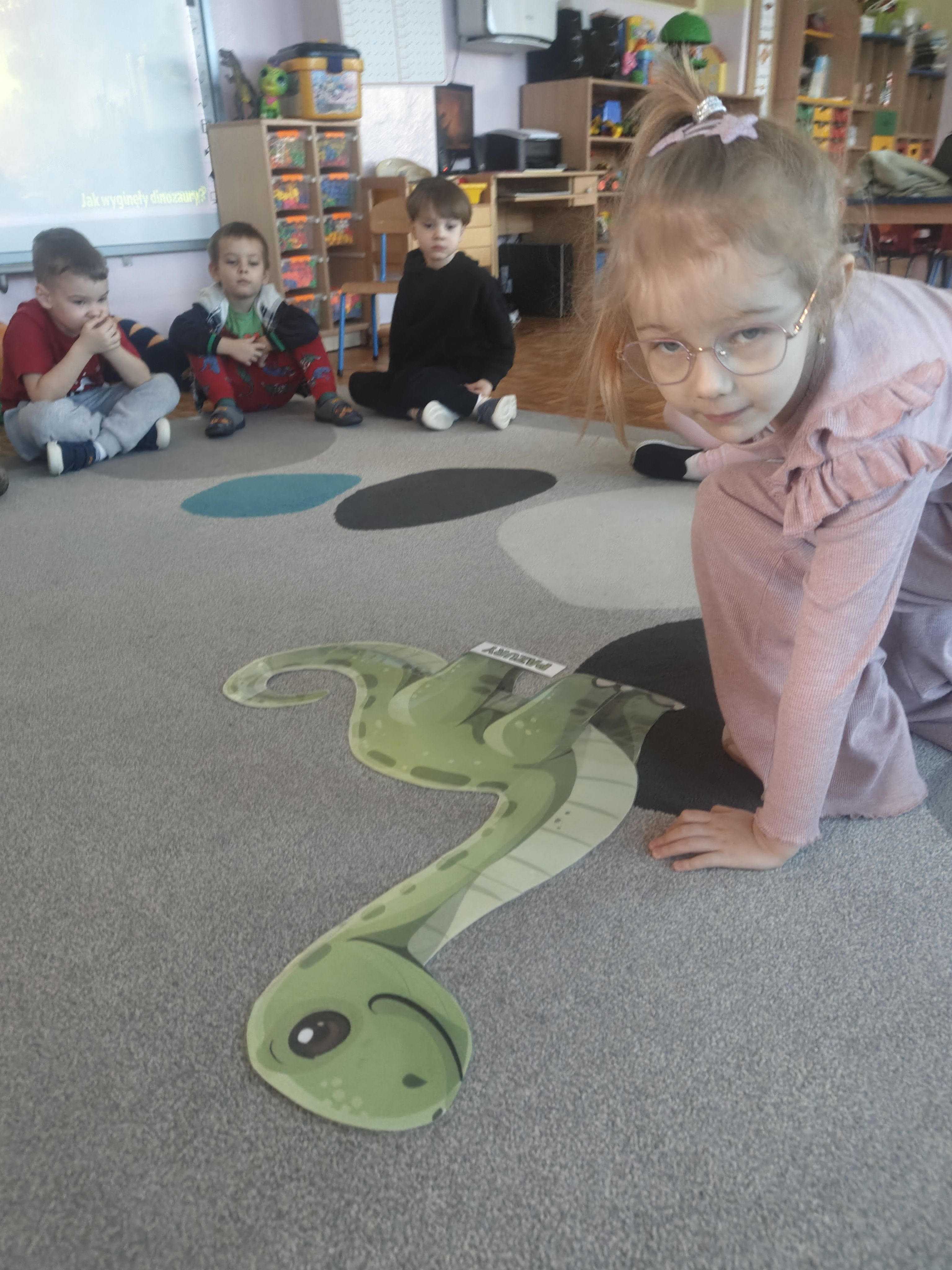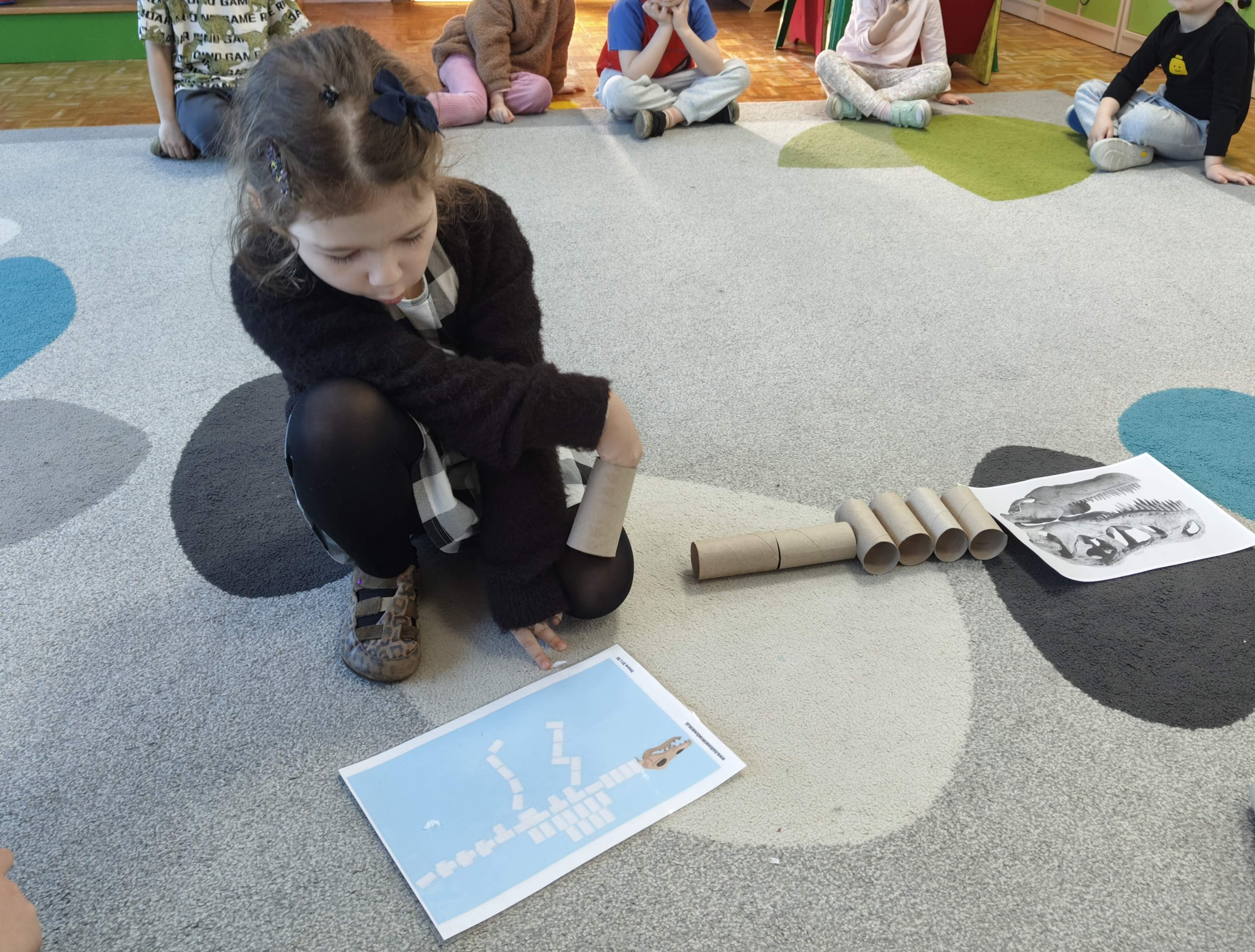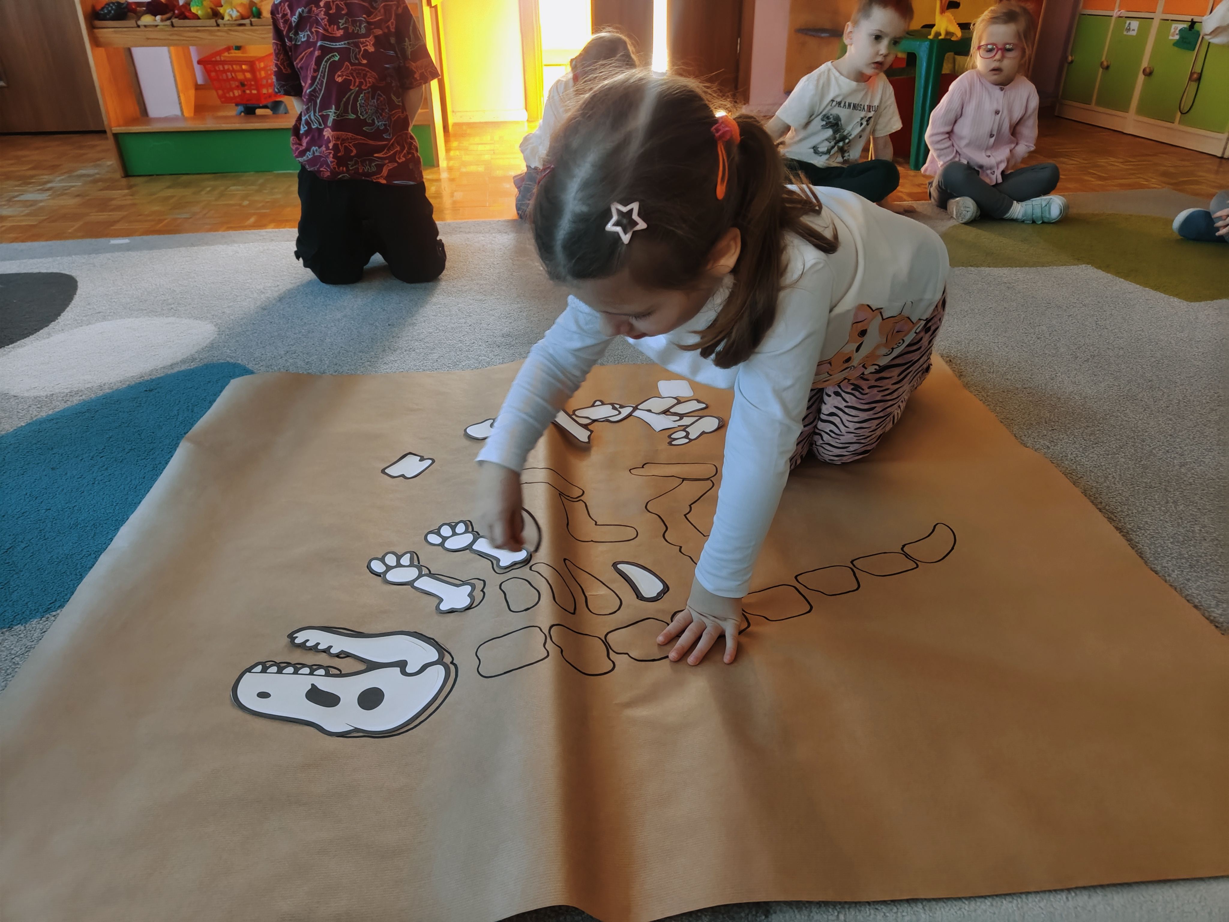 Pszczółki przeniosły się do prehistorycznego świata dinozaurów! Podczas zajęć mali odkrywcy budowali szkielety dinozaurów, poznając przy tym części ich ciała . Każdy mógł poczuć się jak prawdziwy paleontolog, składając kości w całość i odkrywając, jak wyglądały te niezwykłe stworzenia miliony lat temu. Rozmawialiśmy również o różnych gatunkach dinozaurów – takich jak Tyranozaur, Triceratops czy Brachiozaur – i uczyliśmy się ich nazw. Największą atrakcją dnia był oczywiście wybuch wulkanu! To widowiskowe doświadczenie wzbudziło ogromne emocje i zachwyt wśród dzieci. To był dzień pełen nauki, zabawy i niezapomnianych wrażeń!