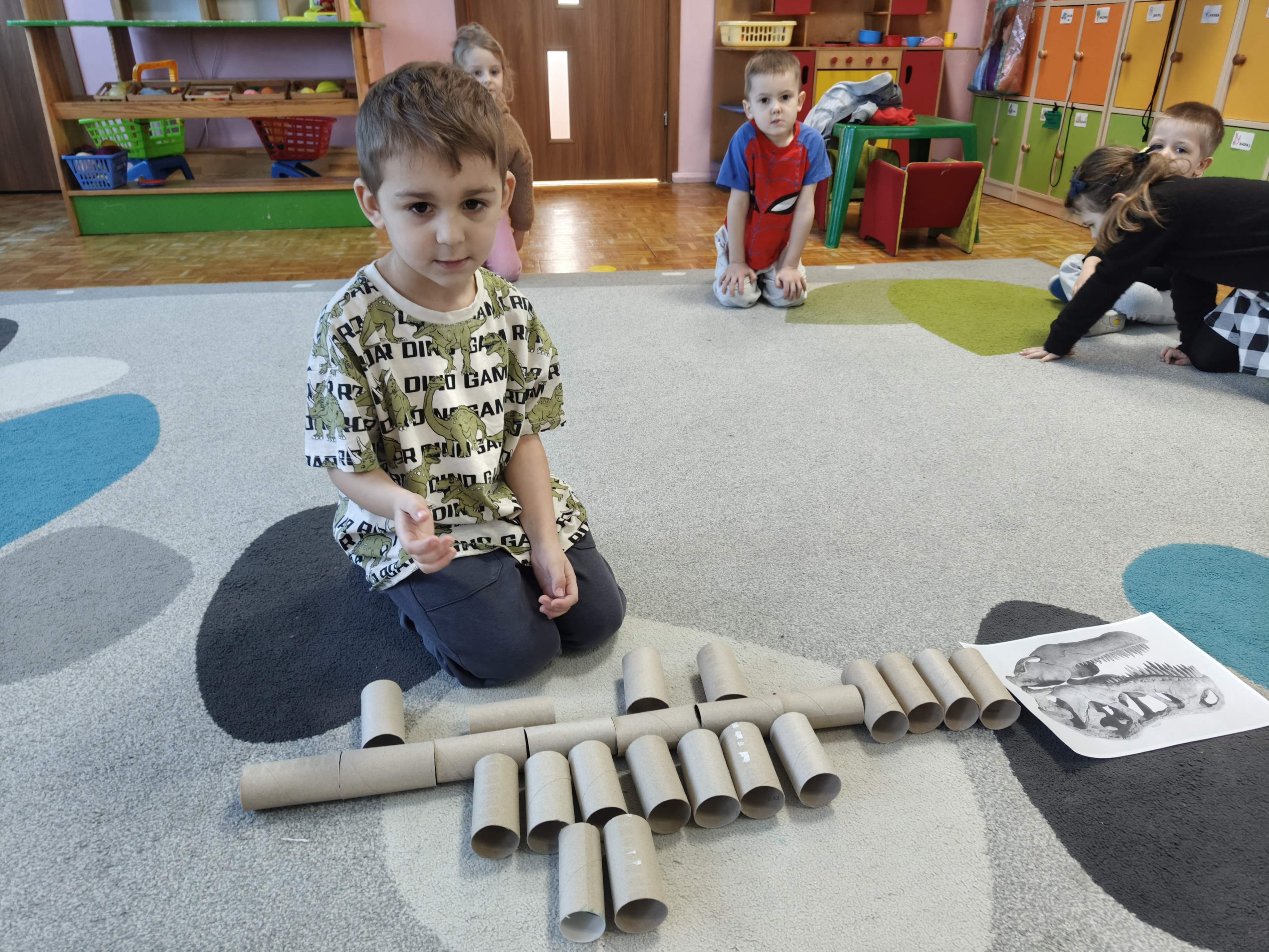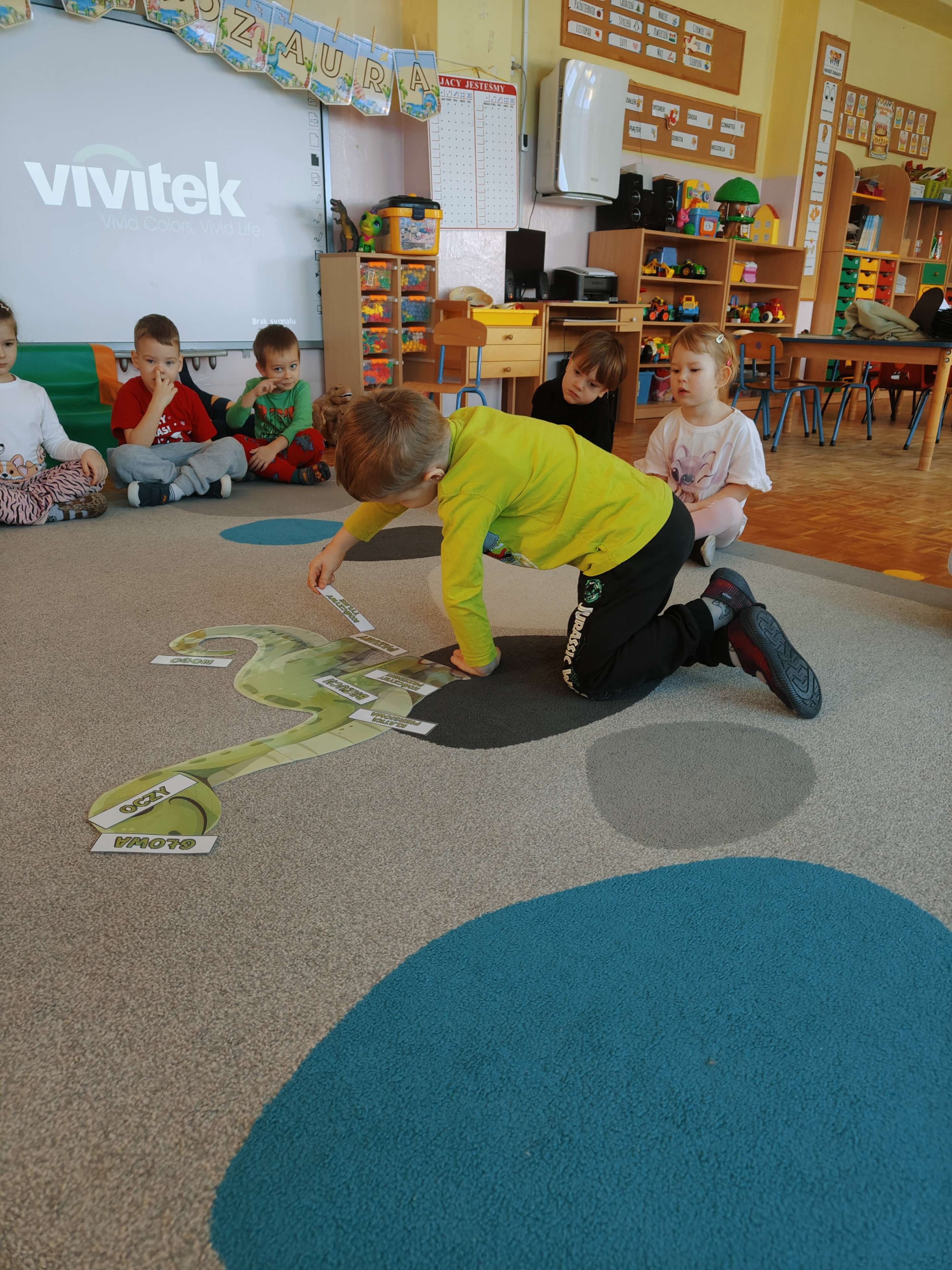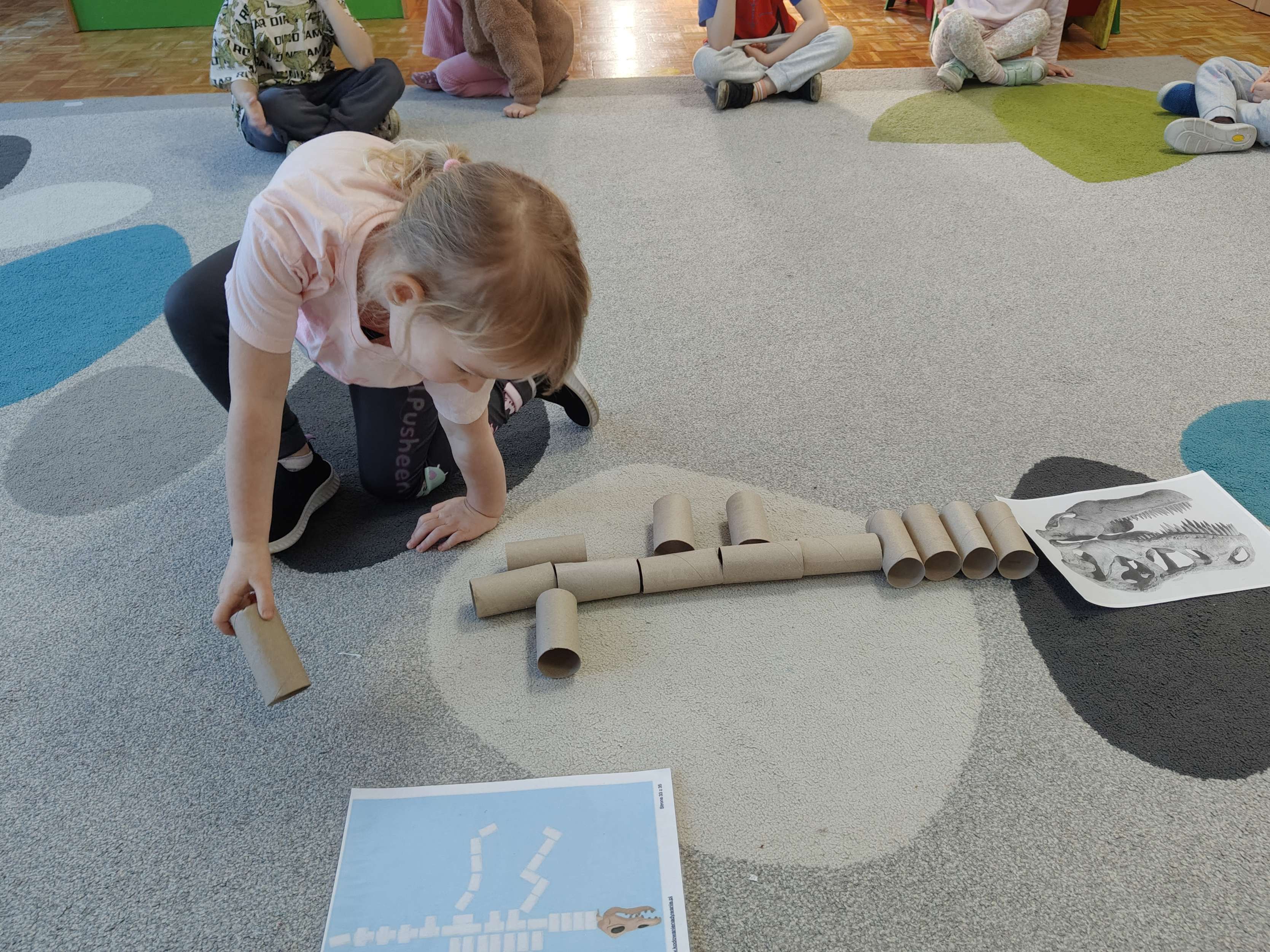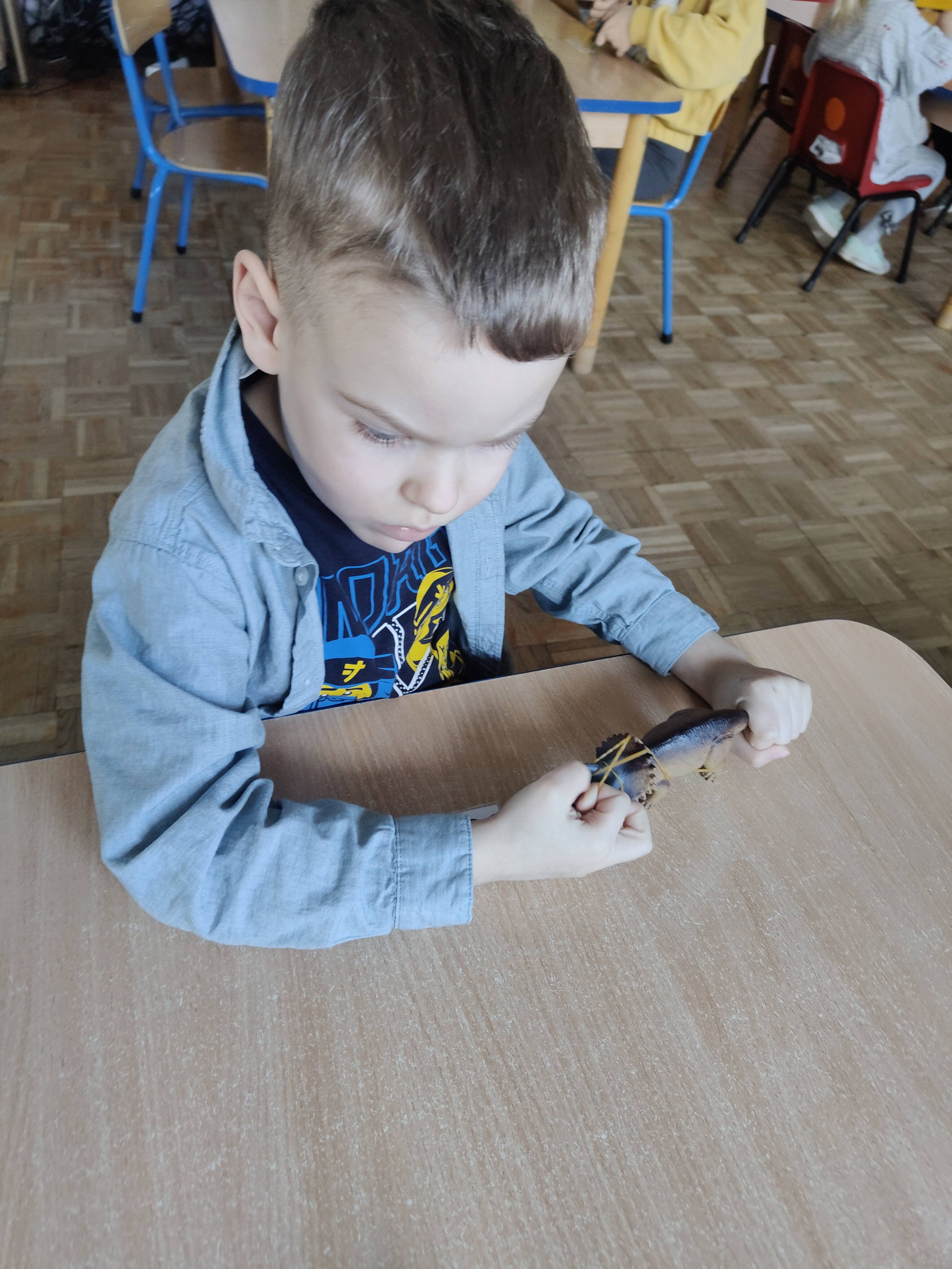 Pszczółki przeniosły się do prehistorycznego świata dinozaurów! Podczas zajęć mali odkrywcy budowali szkielety dinozaurów, poznając przy tym części ich ciała . Każdy mógł poczuć się jak prawdziwy paleontolog, składając kości w całość i odkrywając, jak wyglądały te niezwykłe stworzenia miliony lat temu. Rozmawialiśmy również o różnych gatunkach dinozaurów – takich jak Tyranozaur, Triceratops czy Brachiozaur – i uczyliśmy się ich nazw. Największą atrakcją dnia był oczywiście wybuch wulkanu! To widowiskowe doświadczenie wzbudziło ogromne emocje i zachwyt wśród dzieci. To był dzień pełen nauki, zabawy i niezapomnianych wrażeń!