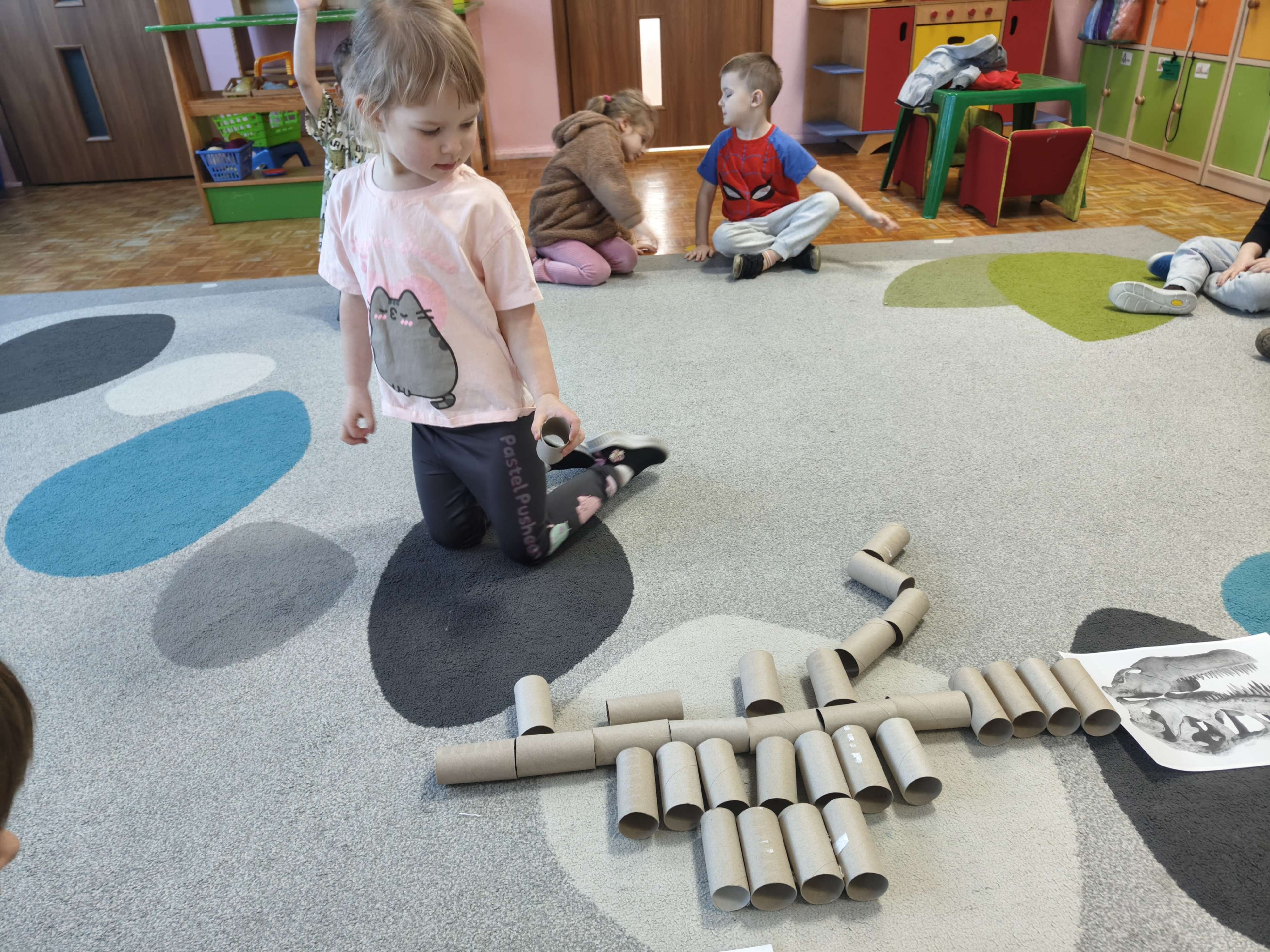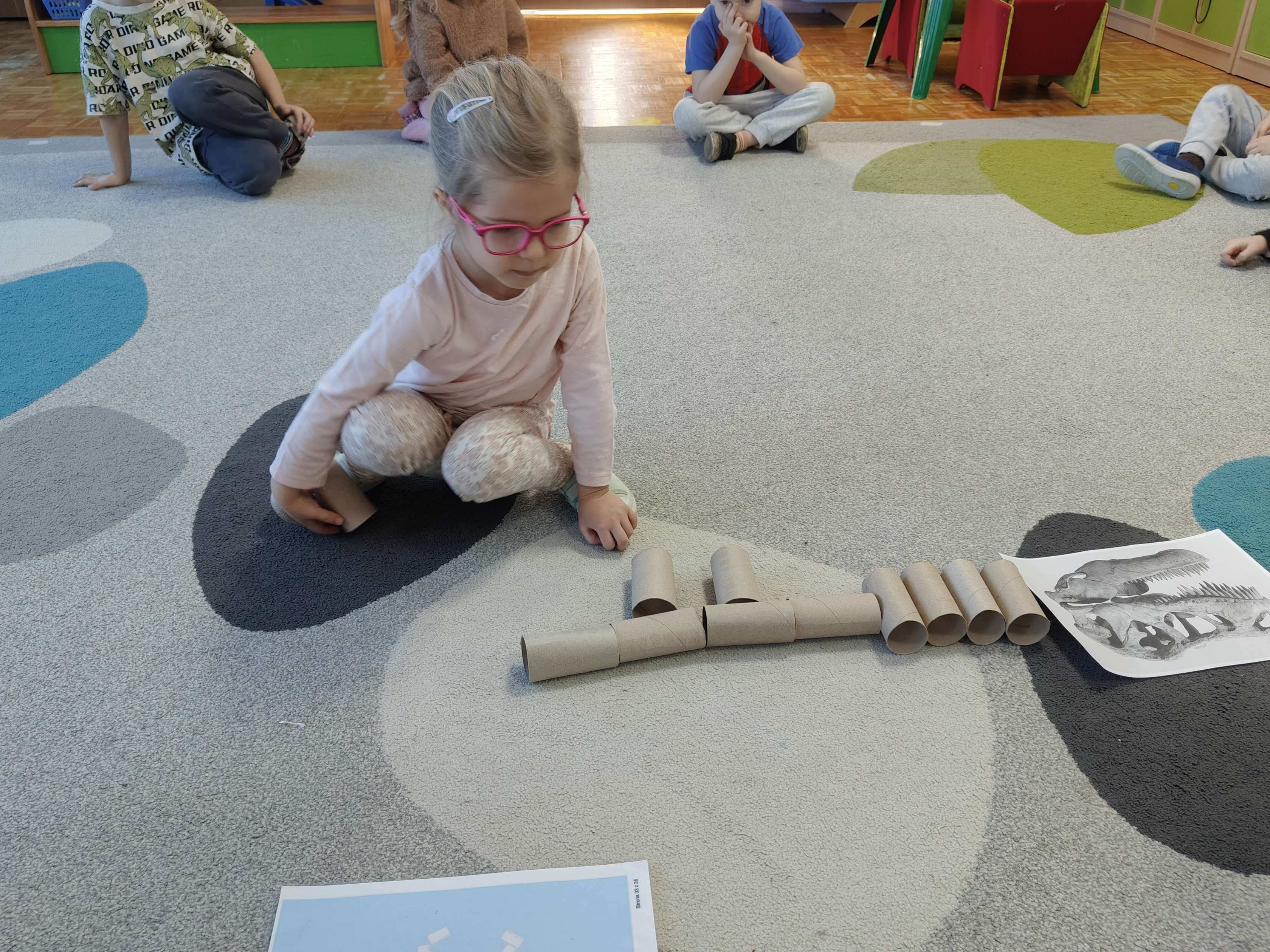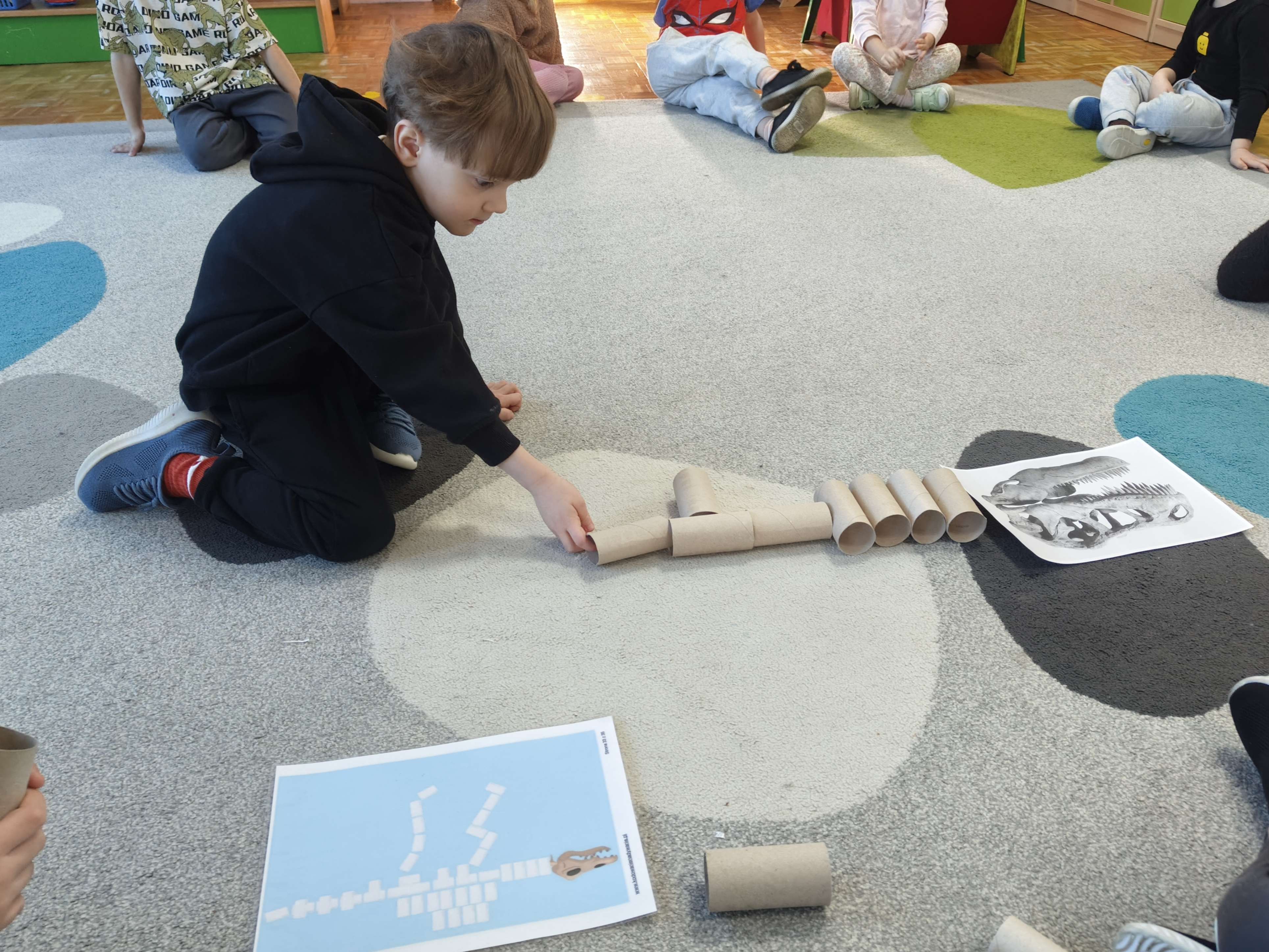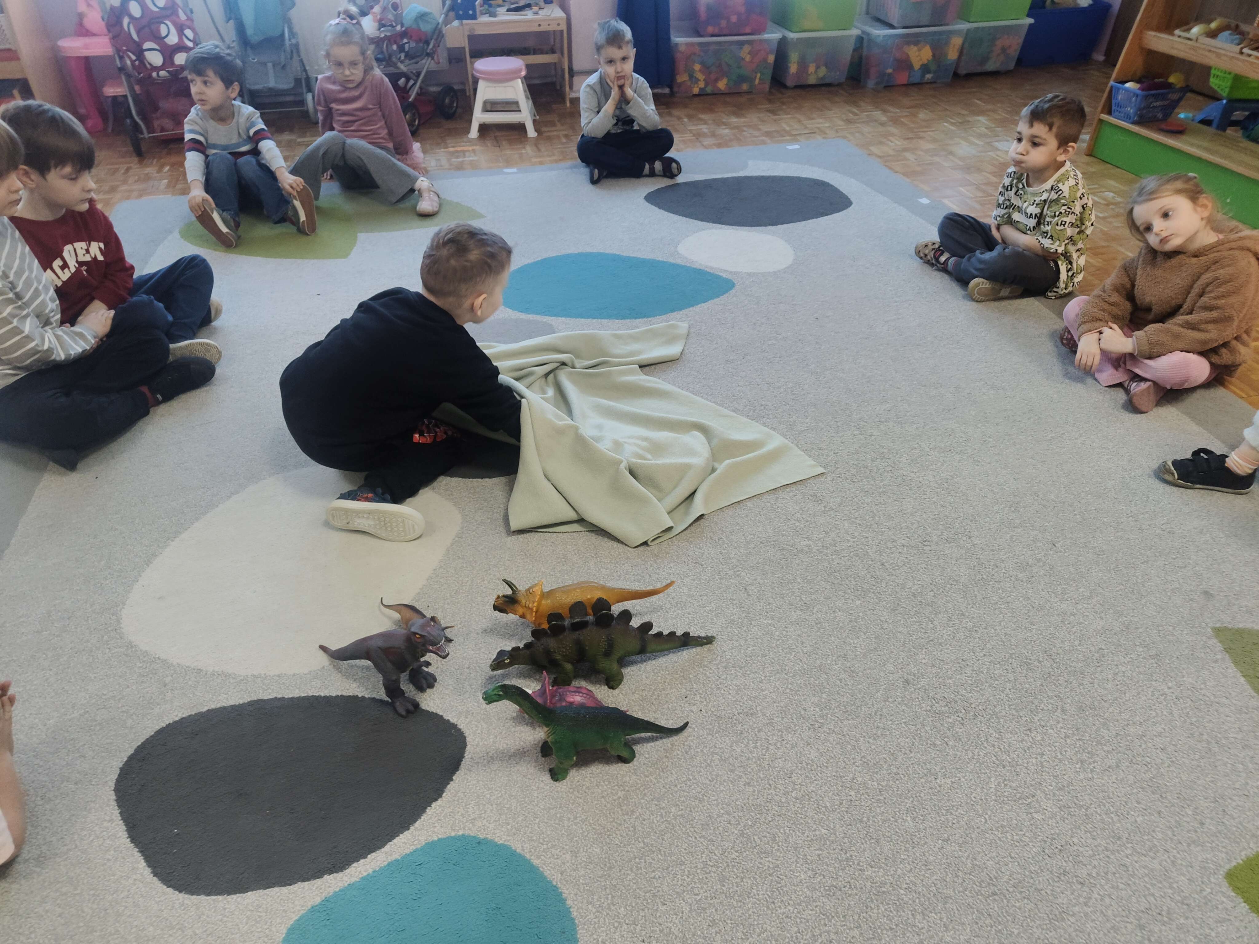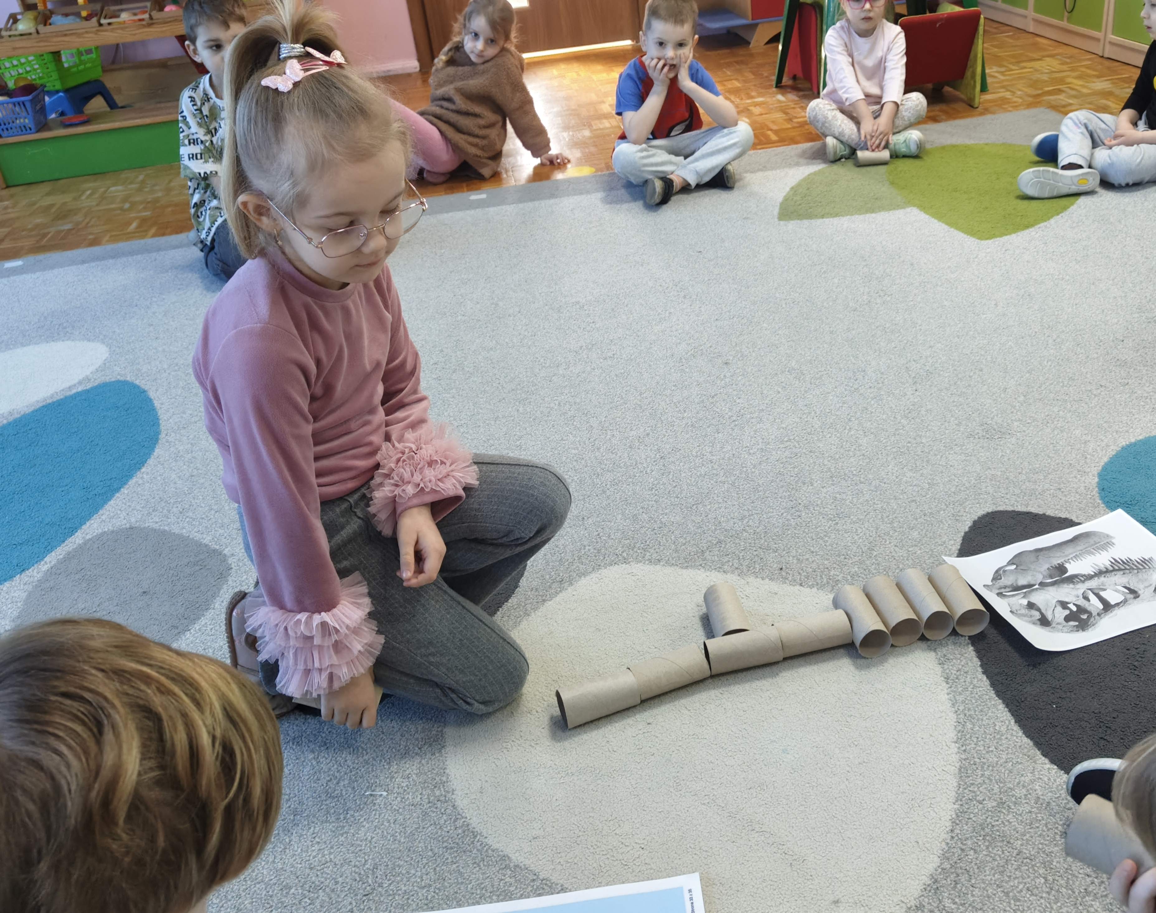 Pszczółki przeniosły się do prehistorycznego świata dinozaurów! Podczas zajęć mali odkrywcy budowali szkielety dinozaurów, poznając przy tym części ich ciała . Każdy mógł poczuć się jak prawdziwy paleontolog, składając kości w całość i odkrywając, jak wyglądały te niezwykłe stworzenia miliony lat temu. Rozmawialiśmy również o różnych gatunkach dinozaurów – takich jak Tyranozaur, Triceratops czy Brachiozaur – i uczyliśmy się ich nazw. Największą atrakcją dnia był oczywiście wybuch wulkanu! To widowiskowe doświadczenie wzbudziło ogromne emocje i zachwyt wśród dzieci. To był dzień pełen nauki, zabawy i niezapomnianych wrażeń!