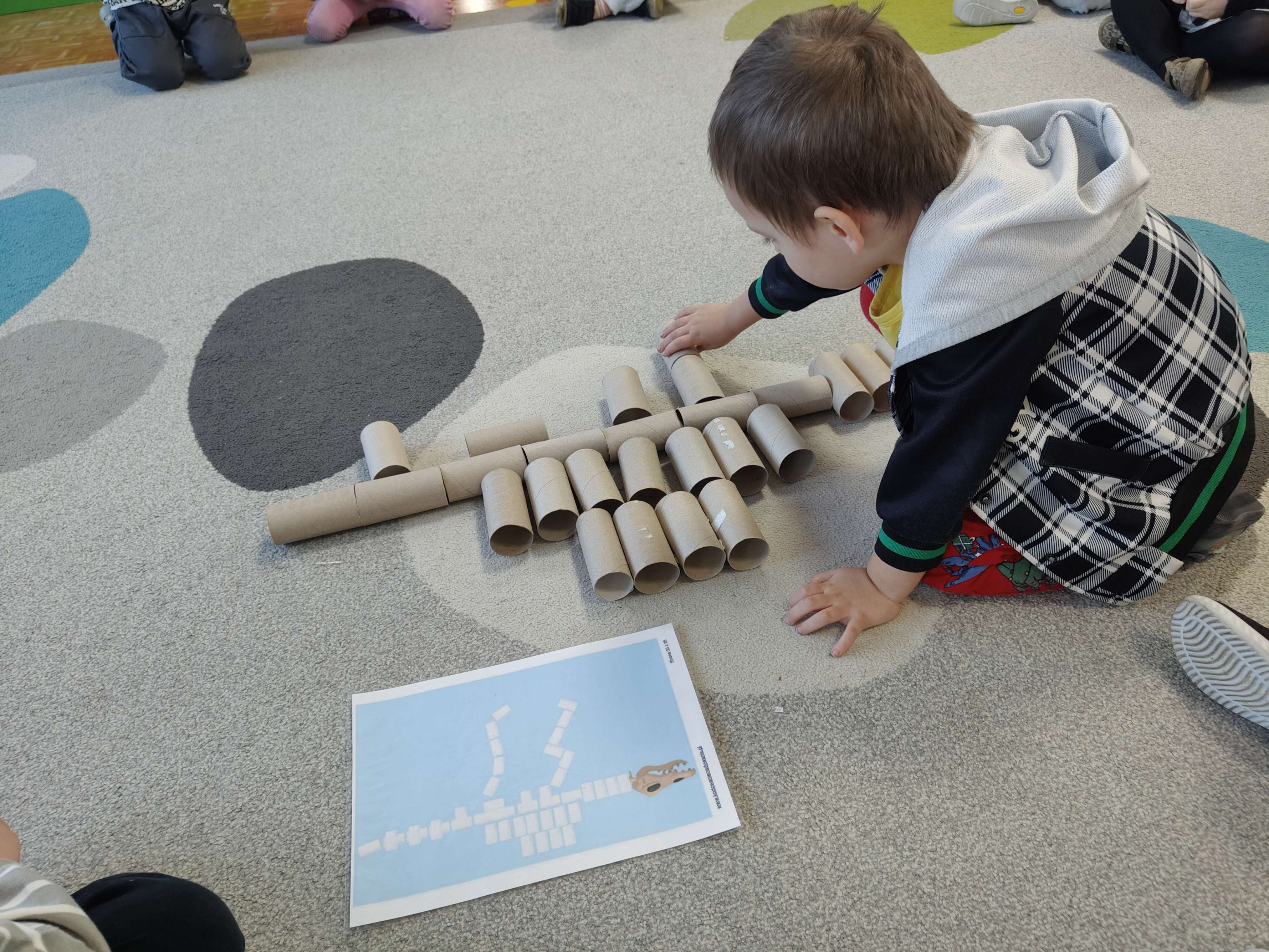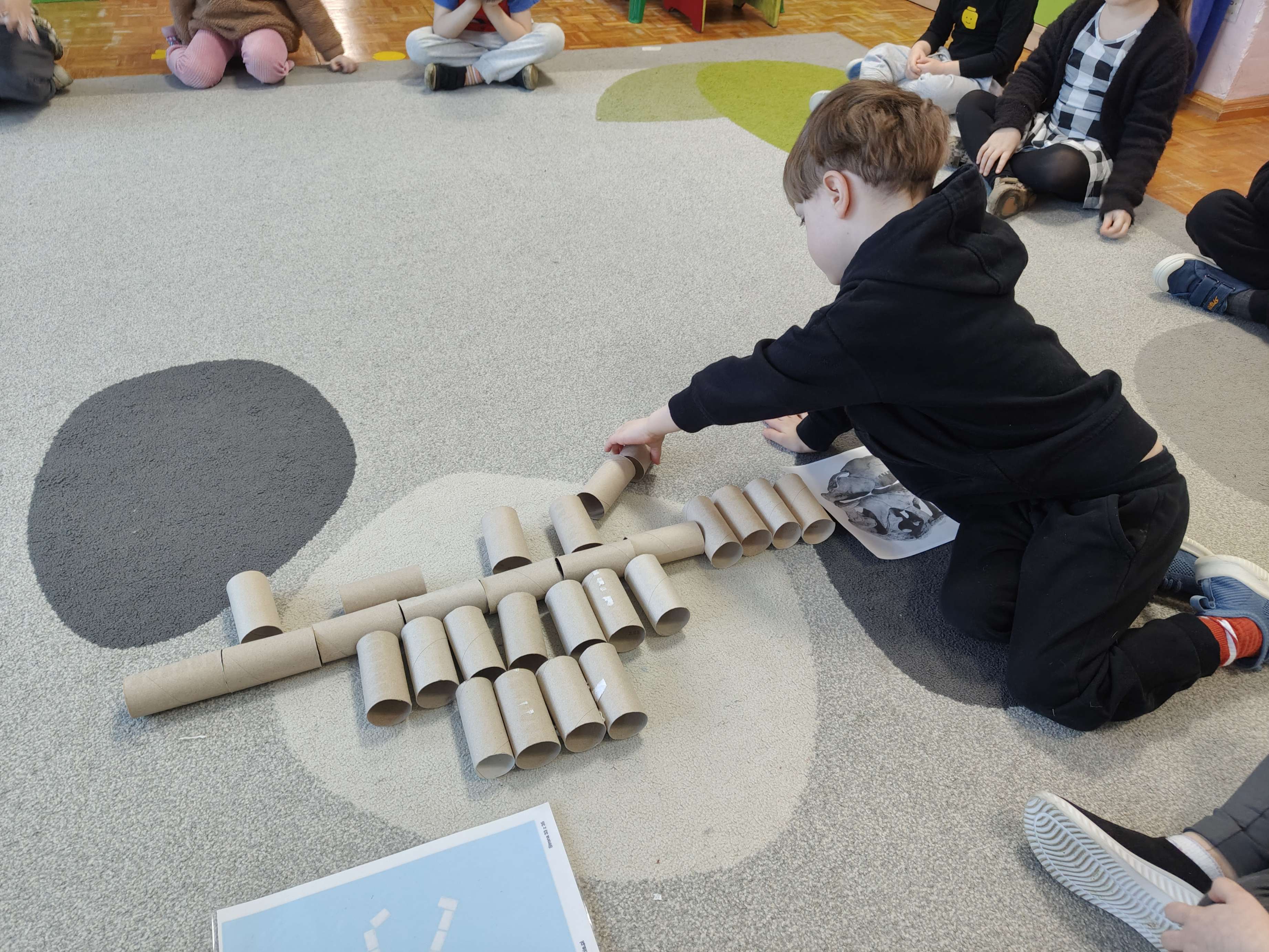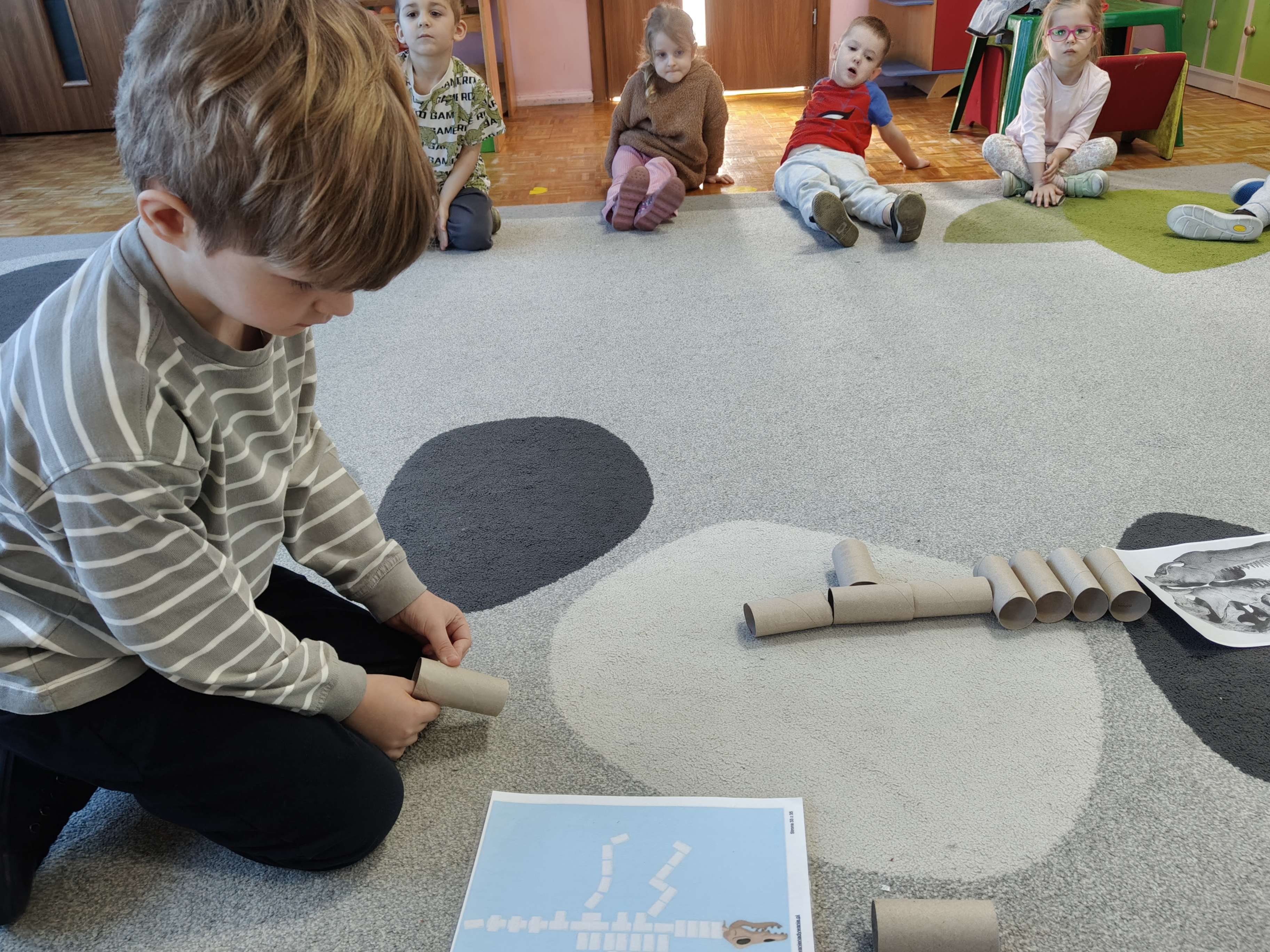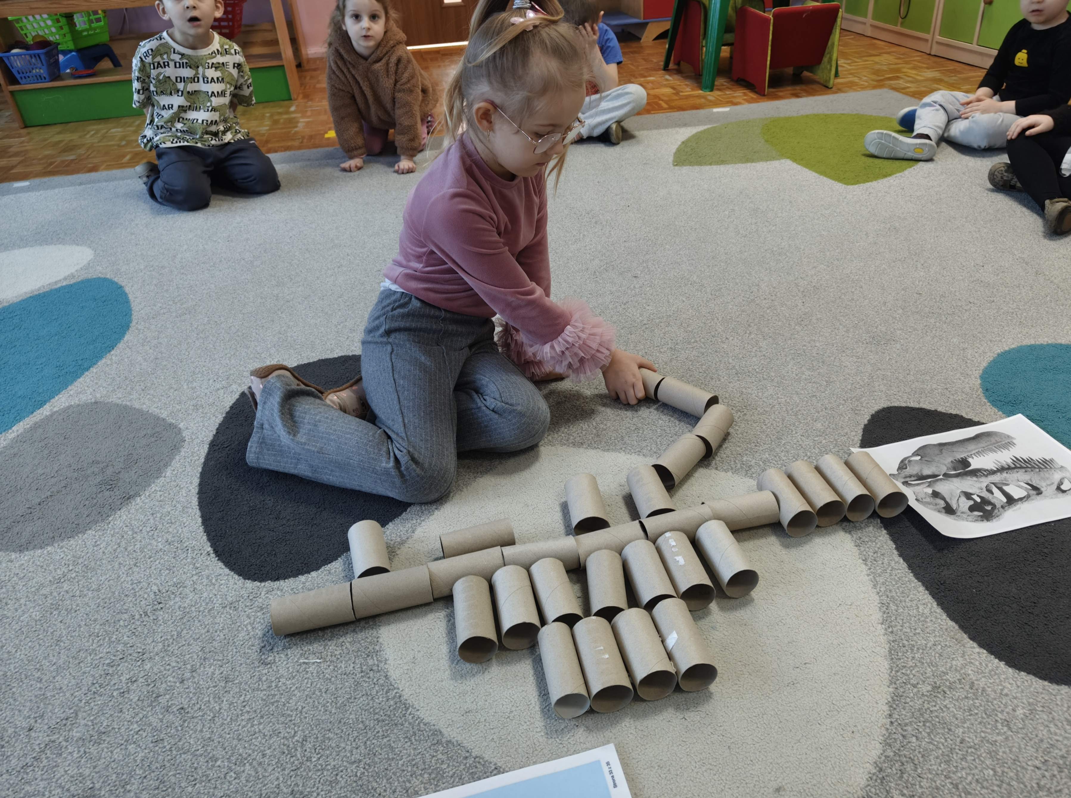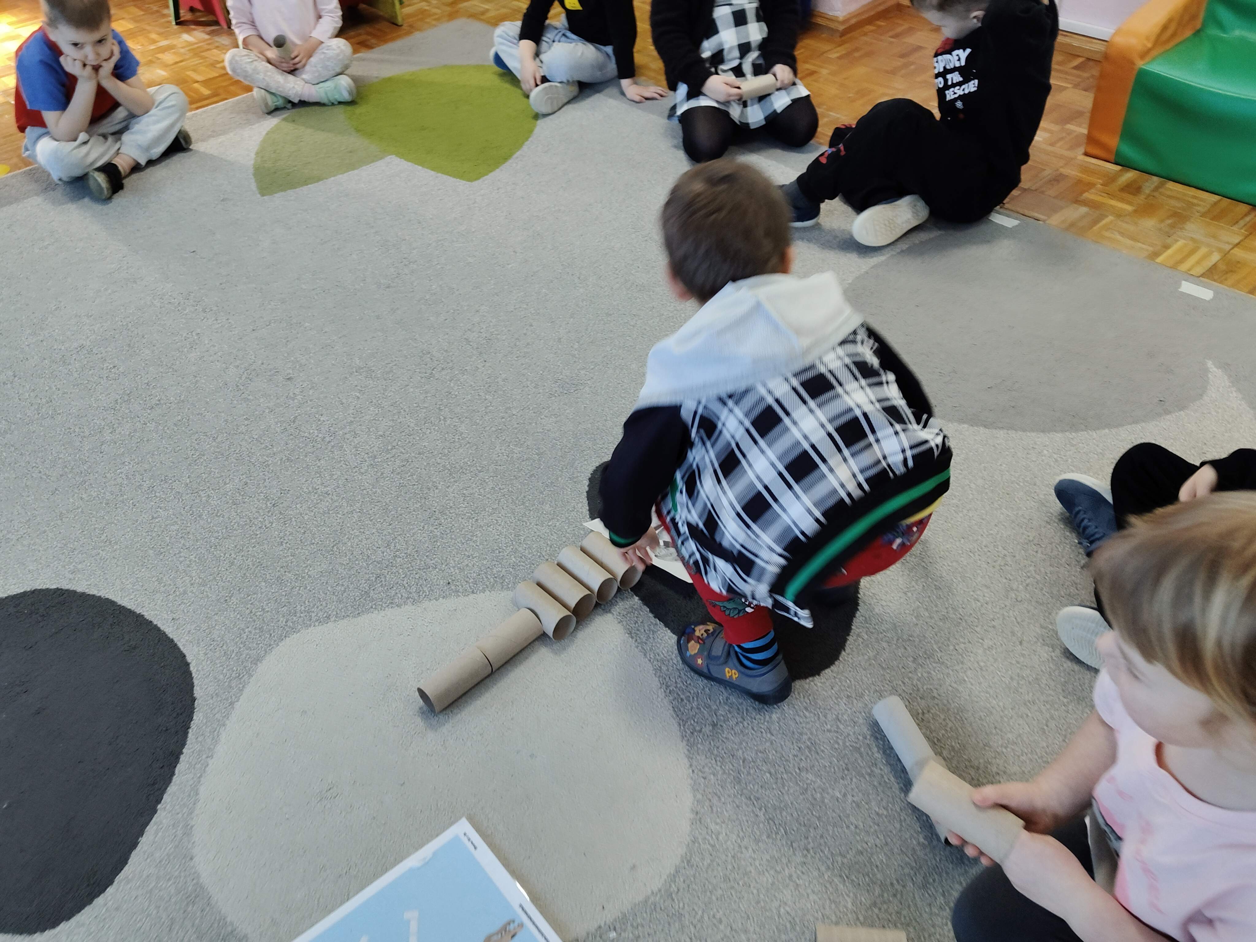 Pszczółki przeniosły się do prehistorycznego świata dinozaurów! Podczas zajęć mali odkrywcy budowali szkielety dinozaurów, poznając przy tym części ich ciała . Każdy mógł poczuć się jak prawdziwy paleontolog, składając kości w całość i odkrywając, jak wyglądały te niezwykłe stworzenia miliony lat temu. Rozmawialiśmy również o różnych gatunkach dinozaurów – takich jak Tyranozaur, Triceratops czy Brachiozaur – i uczyliśmy się ich nazw. Największą atrakcją dnia był oczywiście wybuch wulkanu! To widowiskowe doświadczenie wzbudziło ogromne emocje i zachwyt wśród dzieci. To był dzień pełen nauki, zabawy i niezapomnianych wrażeń!