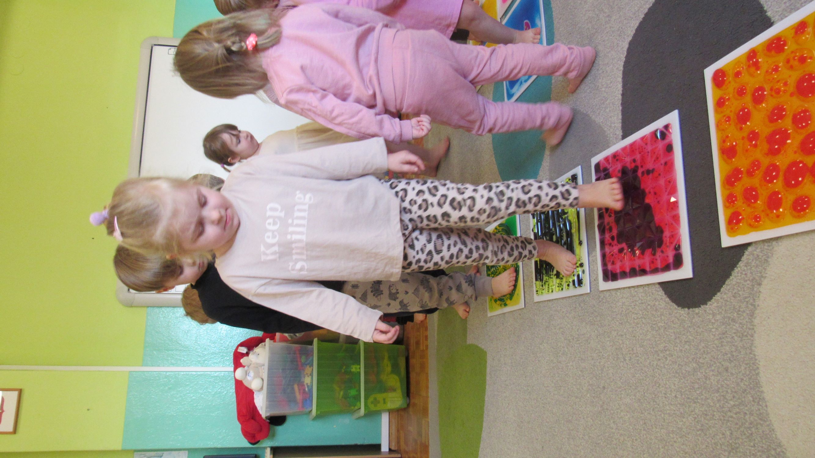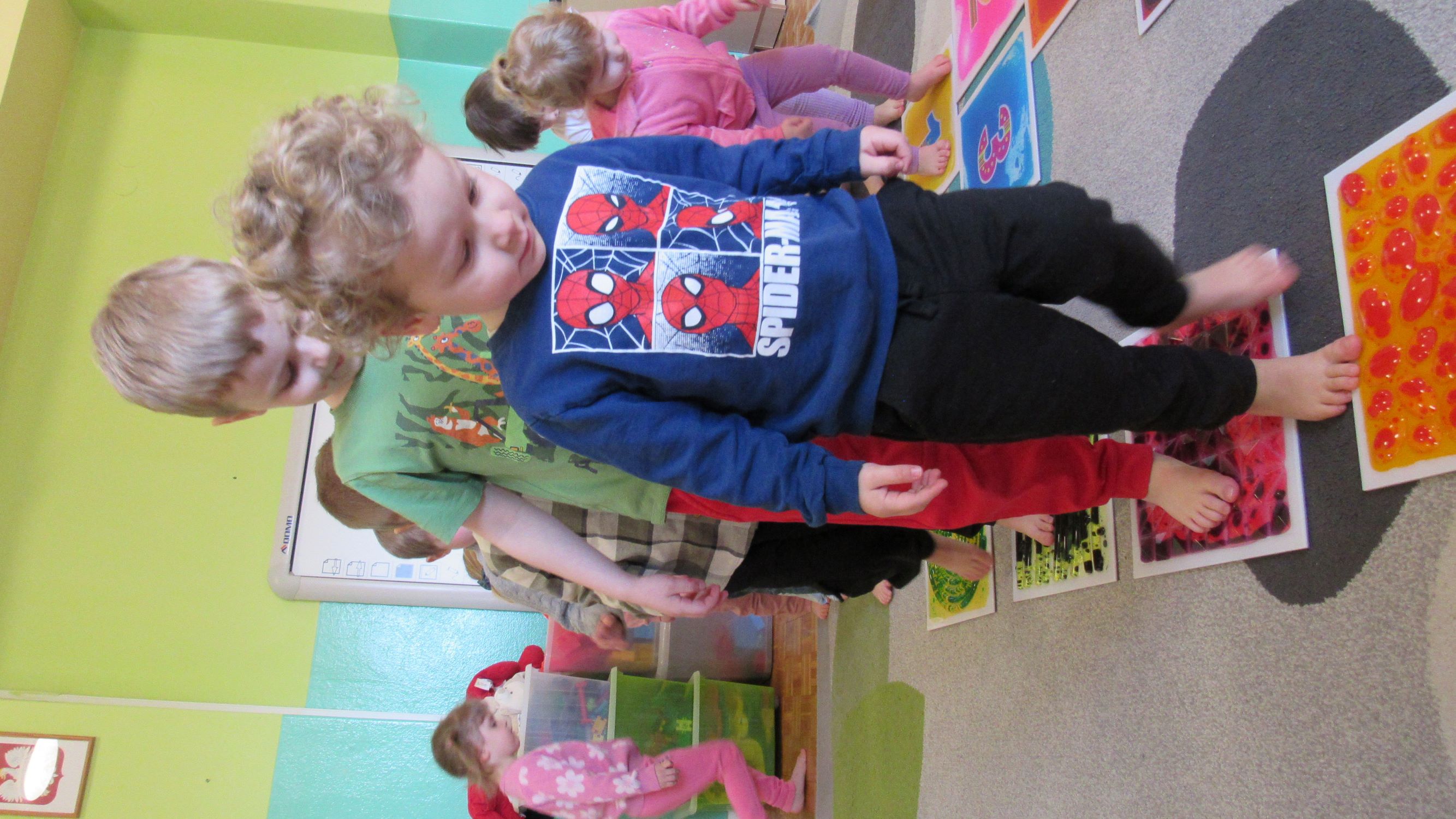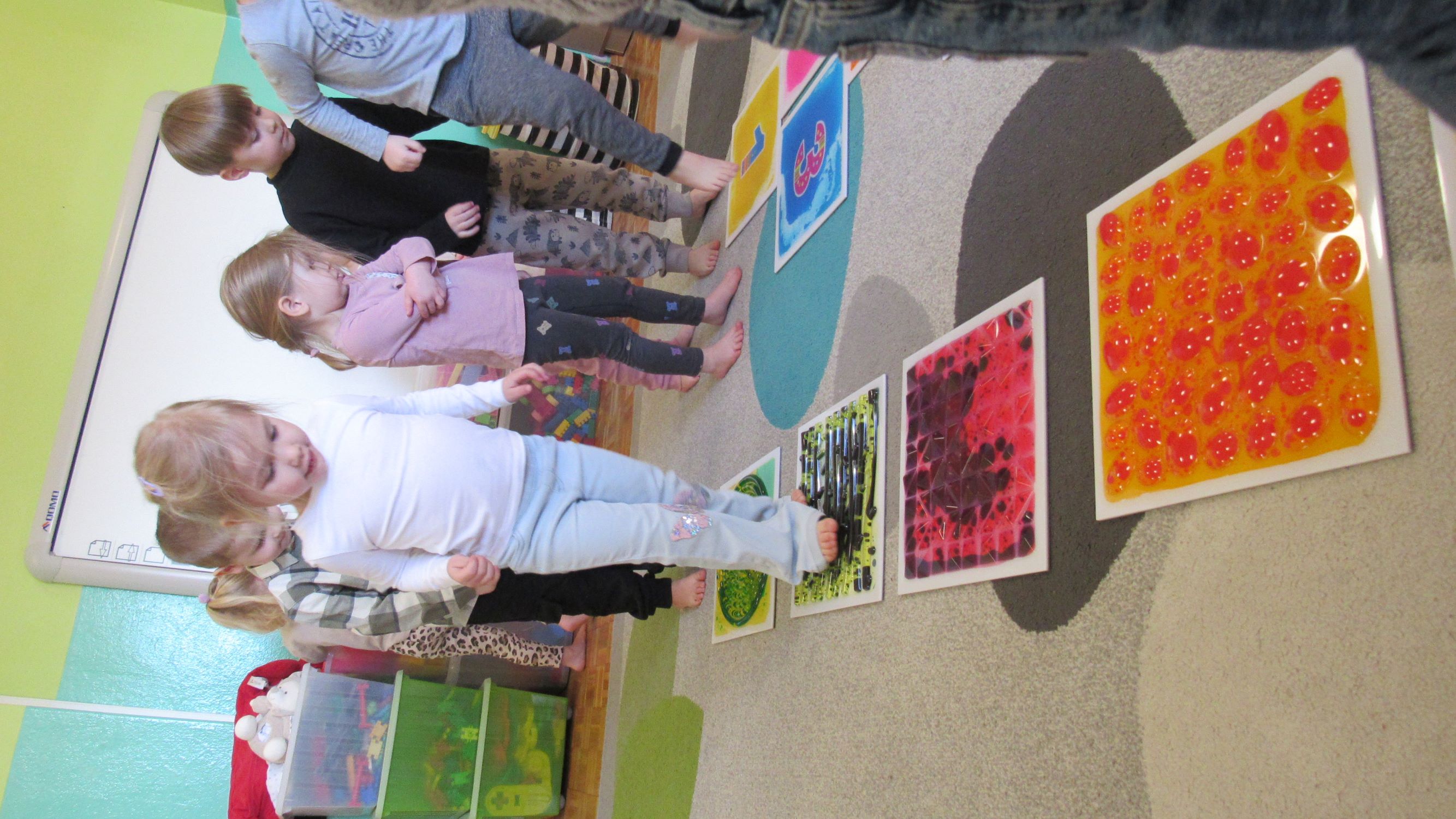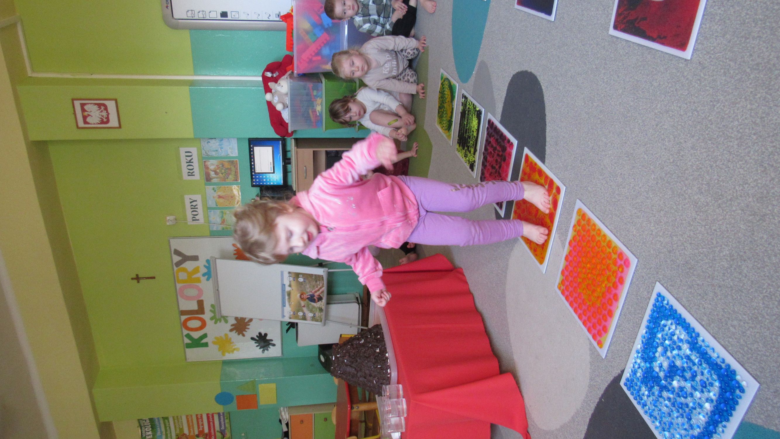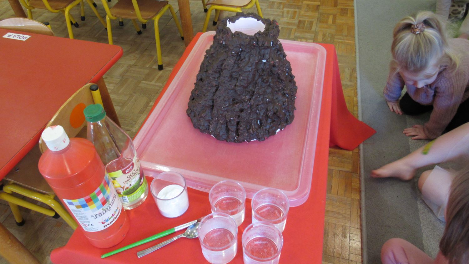 W Tygodnia Małego Naukowca – Chemika na dzieci czekały kolejne doświadczenia. Tym razem przedszkolaki miały okazję poznać różne faktury i konsystencje podczas zabawy z matami sensorycznymi. Dzieci chodziły po nich bosymi stopami, dzięki czemu mogły poczuć różne struktury, miękkie, twarde, gładkie i chropowate. Było to nie tylko świetne doświadczenie sensoryczne, ale także wspaniała zabawa, która wywołała wiele radości i śmiechu. Na zakończenie zajęć mali naukowcy wykonali wspólnie niezwykle efektowny eksperyment – wybuch wulkanu lawy. Dzieci z ogromnym zainteresowaniem obserwowały, jak po dodaniu odpowiednich składników z wulkanu zaczęła wypływać kolorowa „lawa”. Eksperyment wzbudził ogromne emocje i zachwyt wśród przedszkolaków. Dzięki takim doświadczeniom dzieci mogły jeszcze lepiej poczuć się jak prawdziwi mali naukowcy, odkrywać nowe zjawiska oraz przekonać się, że nauka może być fascynującą przygodą pełną niespodzianek.