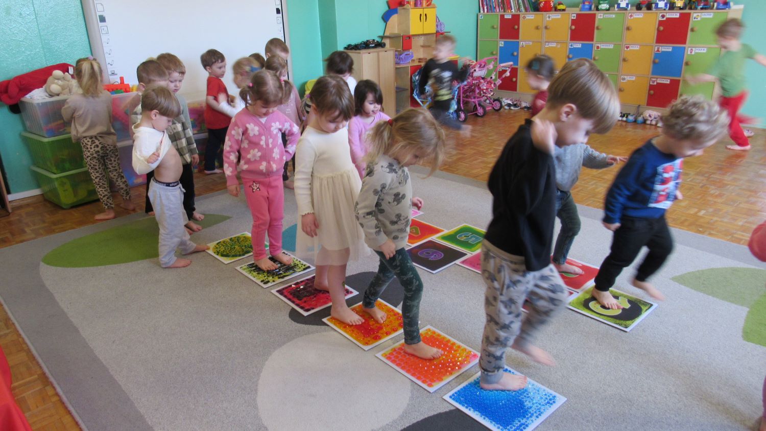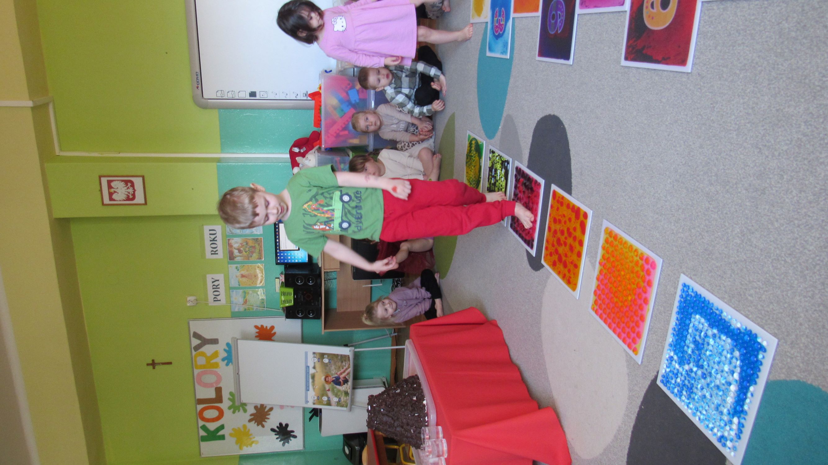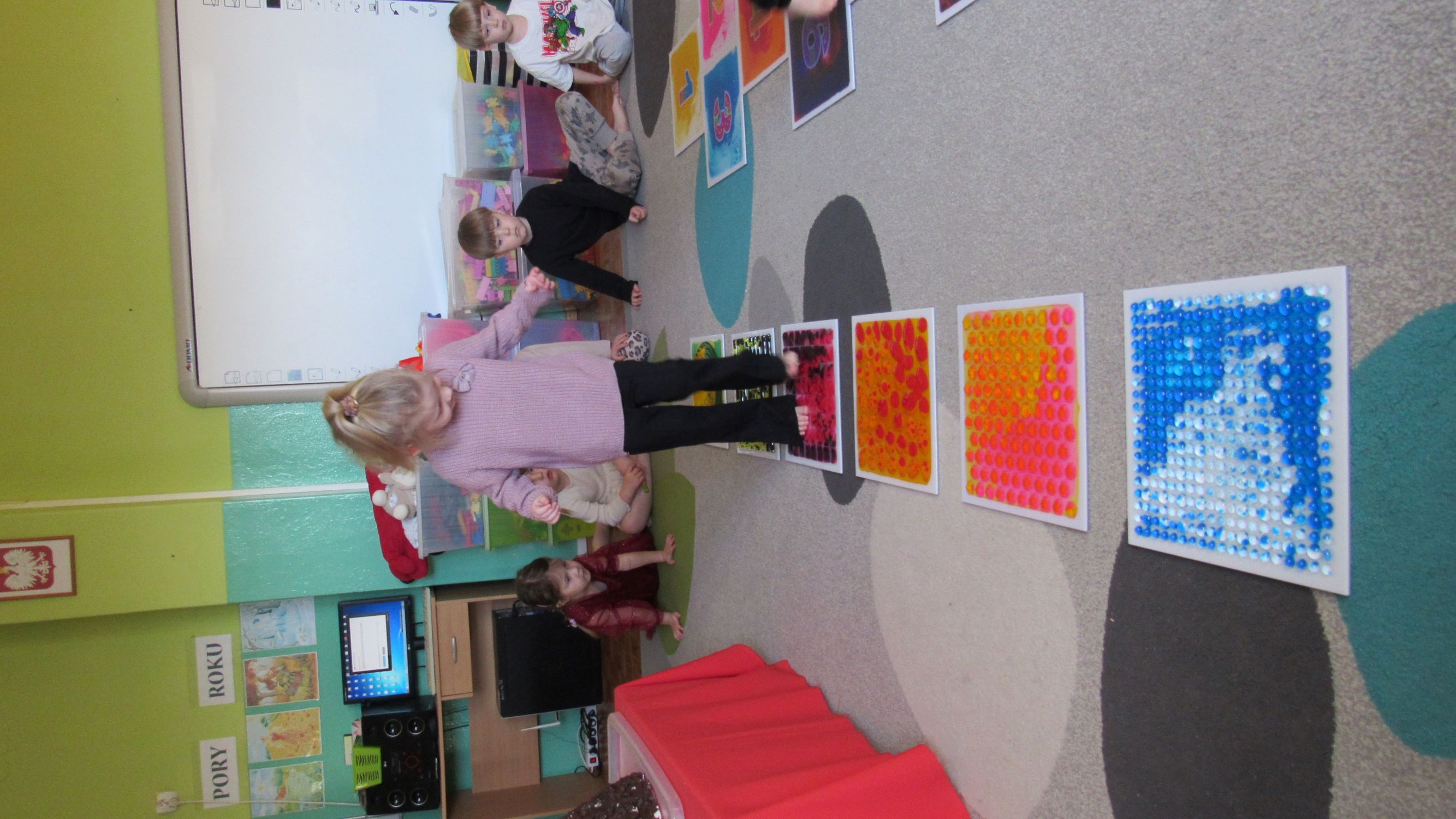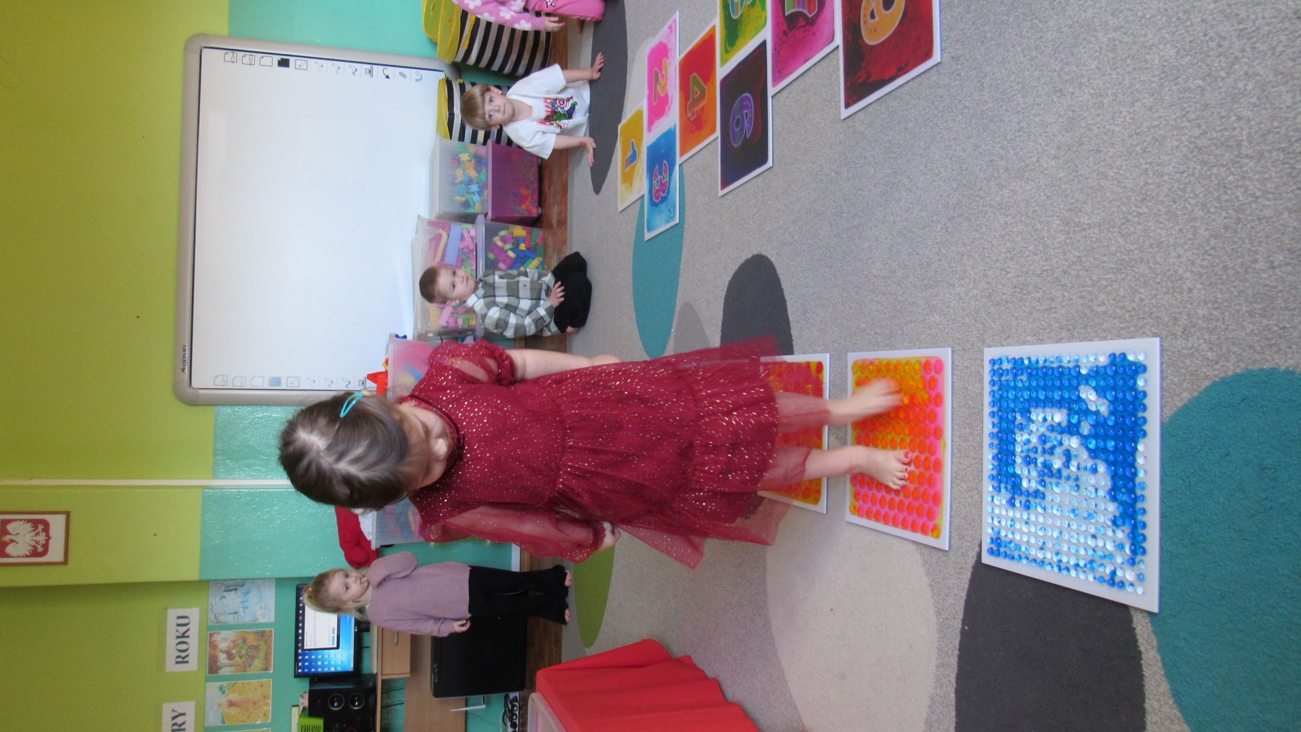 W Tygodnia Małego Naukowca – Chemika na dzieci czekały kolejne doświadczenia. Tym razem przedszkolaki miały okazję poznać różne faktury i konsystencje podczas zabawy z matami sensorycznymi. Dzieci chodziły po nich bosymi stopami, dzięki czemu mogły poczuć różne struktury, miękkie, twarde, gładkie i chropowate. Było to nie tylko świetne doświadczenie sensoryczne, ale także wspaniała zabawa, która wywołała wiele radości i śmiechu. Na zakończenie zajęć mali naukowcy wykonali wspólnie niezwykle efektowny eksperyment – wybuch wulkanu lawy. Dzieci z ogromnym zainteresowaniem obserwowały, jak po dodaniu odpowiednich składników z wulkanu zaczęła wypływać kolorowa „lawa”. Eksperyment wzbudził ogromne emocje i zachwyt wśród przedszkolaków. Dzięki takim doświadczeniom dzieci mogły jeszcze lepiej poczuć się jak prawdziwi mali naukowcy, odkrywać nowe zjawiska oraz przekonać się, że nauka może być fascynującą przygodą pełną niespodzianek.