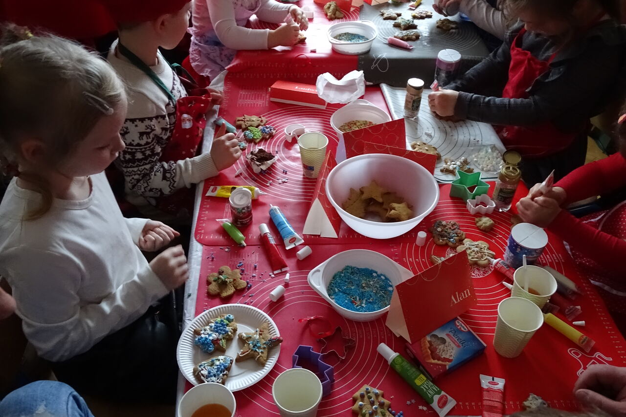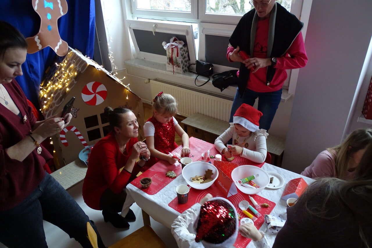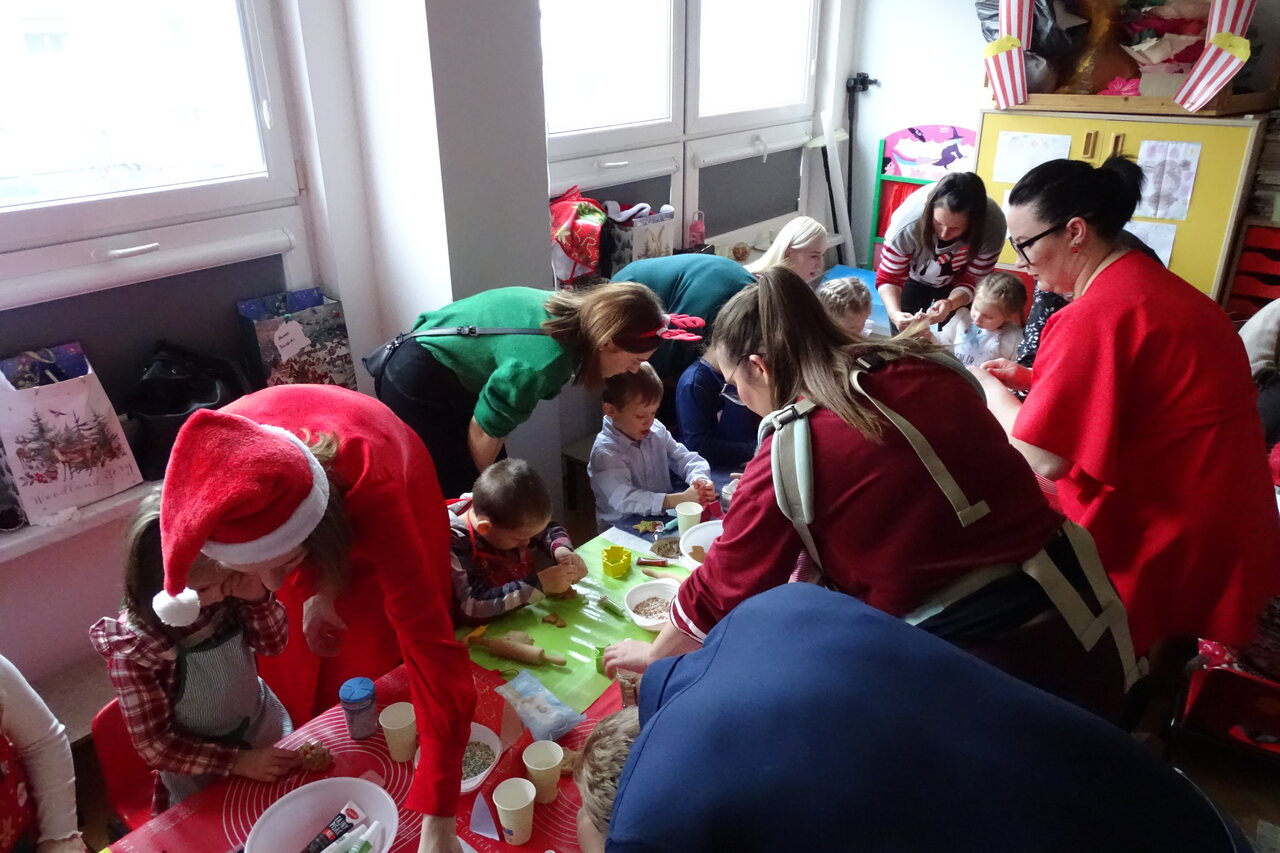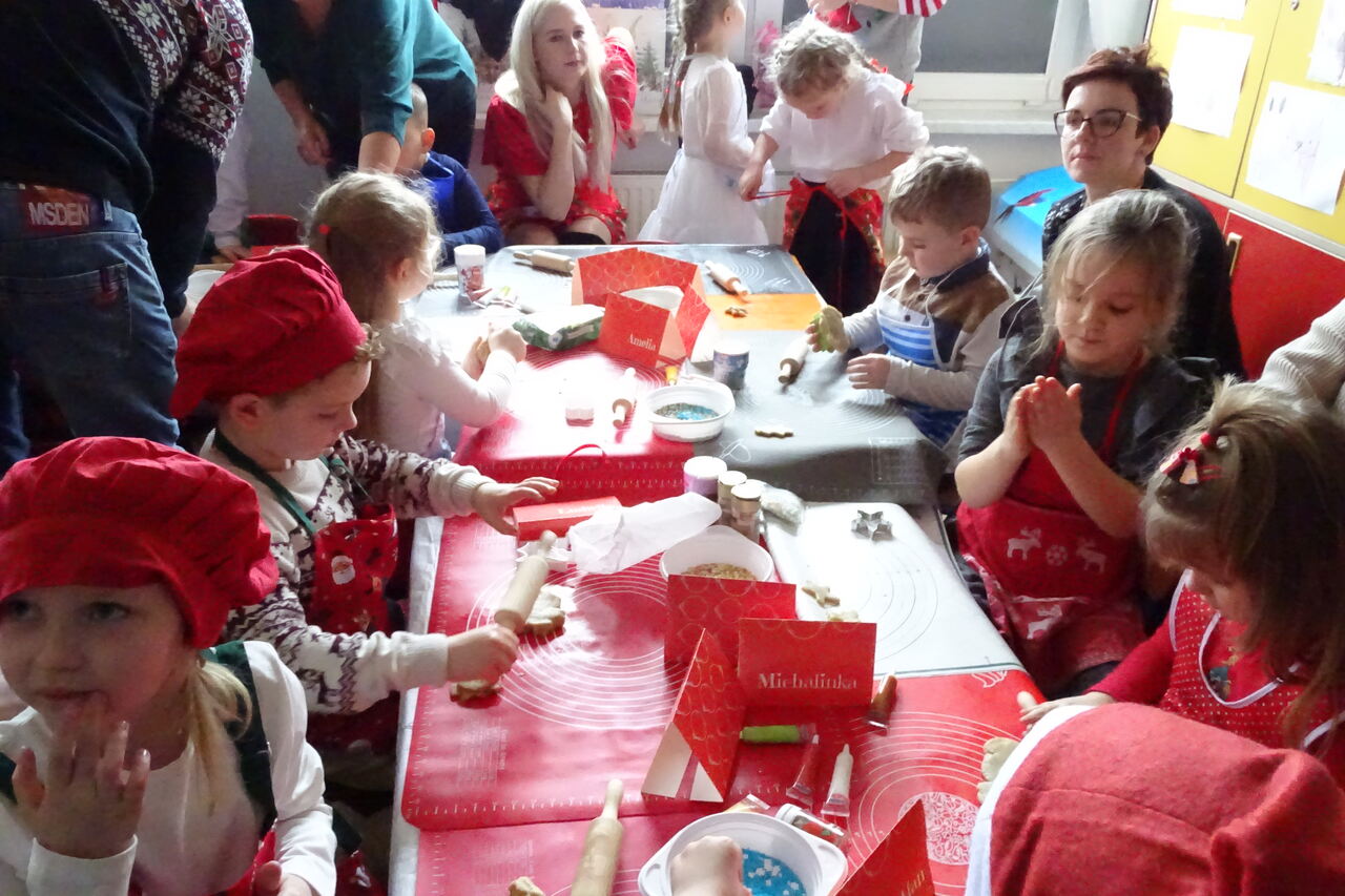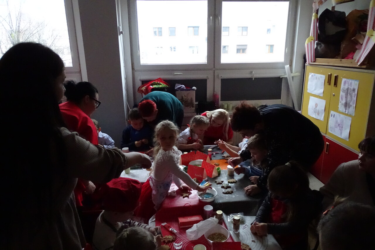 W piątek 05 grudnia w grupie Sówki odbyło się spotkanie Mikołajkowe z rodzicami. Dzieci zaprezentowały rodzicom montaż słowno – muzyczny o tematyce świątecznej oraz zebrały się wraz z rodzicami, aby udekorować świąteczne pierniczki. Na stołach pojawił się kolorowy lukier, czekolada, rysiki dekoracyjne oraz pisaki cukrowe, które królowały podczas dekorowania pierników. W tle słychać było świąteczne piosenki oraz kolędy, a w sali panowała ciepła i świąteczna atmosfera. Na zakończenie odwiedził dzieci Mikołaj i obdarował je pięknymi prezentami.