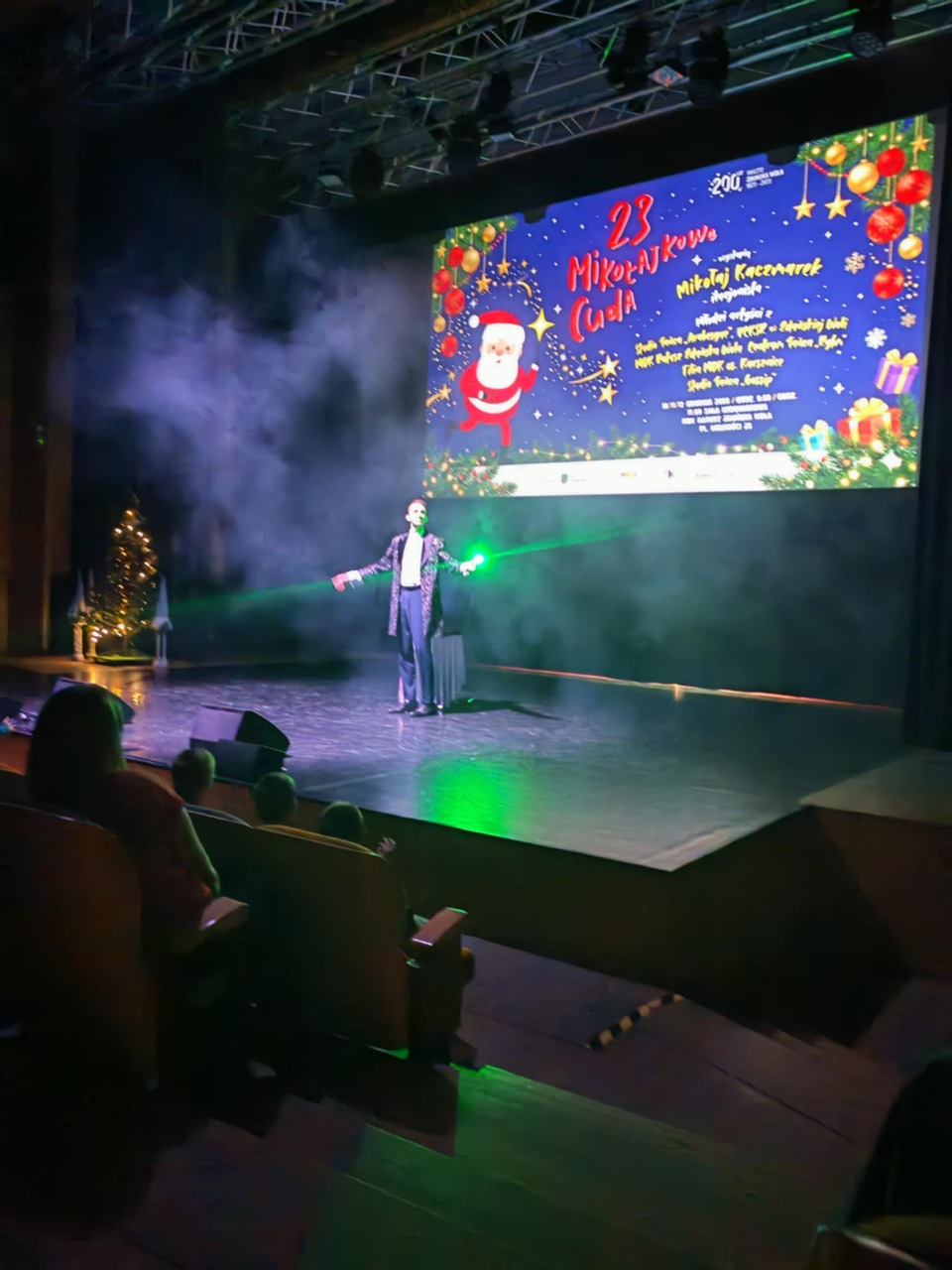 ,,Sówki" i ,,Misie" obejrzały w sali widowiskowej MDK Ratusz występy młodych artystów ze Zduńskiej woli i pokaz iluzjonisty w ramach kolejnej edycji akcji ,,Mikołajkowe cuda". Szczególne oklaski od nas dostali Jaś i Kuba z grupy ,,Misiów" za super breakdance :)