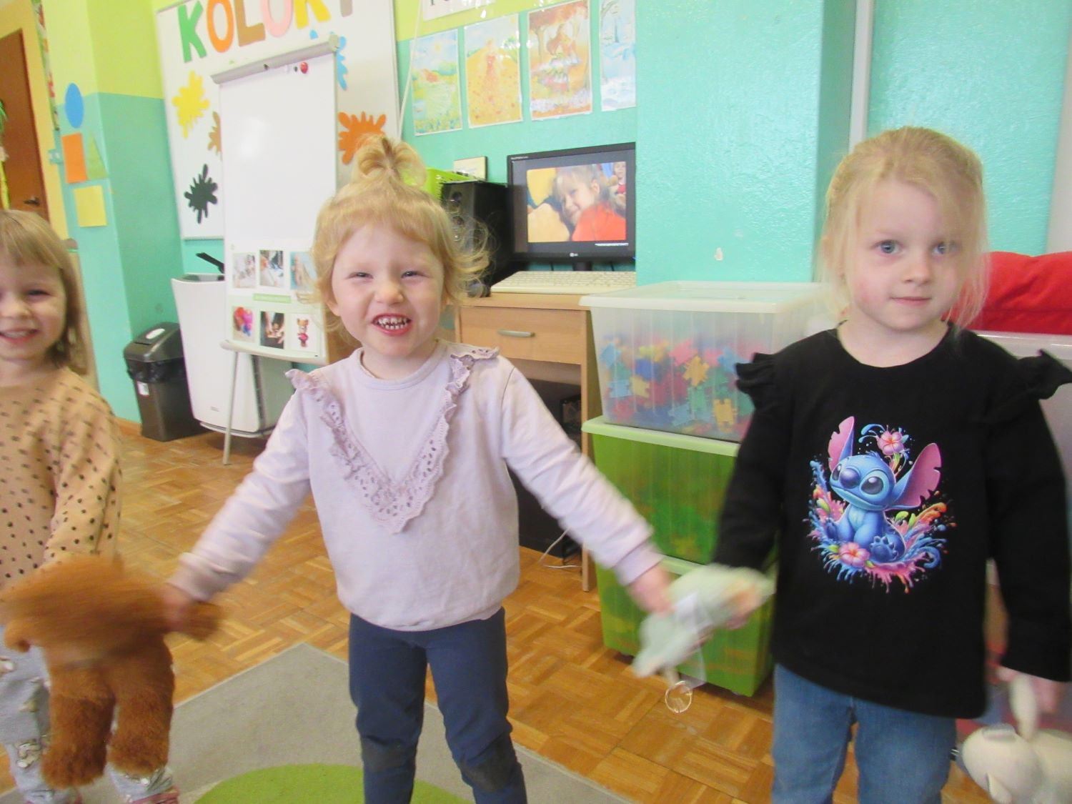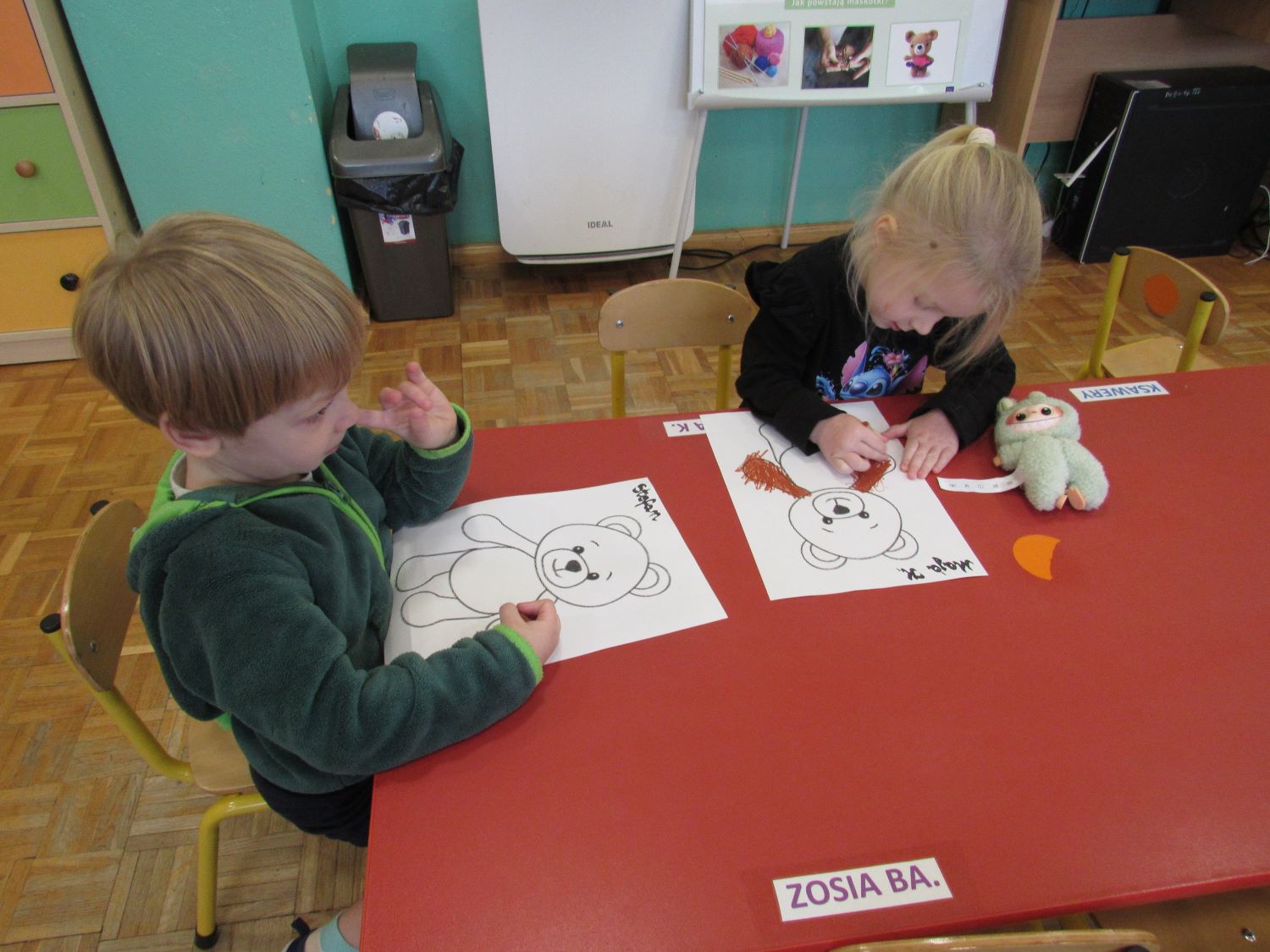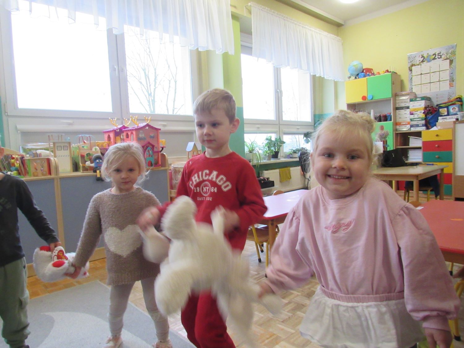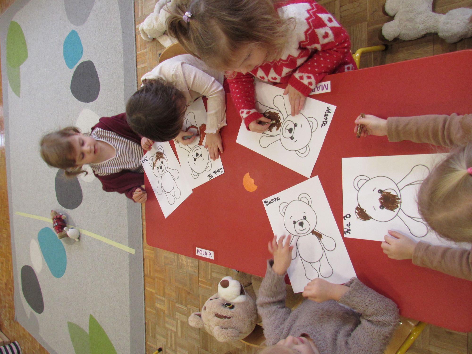 W naszym przedszkolu odbył się radosny Dzień Pluszowego Misia, który przyniósł dzieciom wiele uśmiechu i wspaniałej zabawy. Przedszkolaki przyszły tego dnia ze swoimi ukochanymi pluszakami, a misie towarzyszyły im we wszystkich aktywnościach. Na początku dzieci bawiły się ze swoimi misiami i tańczyły w kółeczku, trzymając je za łapki i śpiewając wesołe piosenki. Następnie brały udział w zabawie, podczas której karmiły misia „miodkiem” rzucając piłeczką do celu, ćwicząc celność i koordynację. Kolejnym punktem dnia było oglądanie bajki „Miś Uszatek”, która wprowadziła wszystkich w ciepły, bajkowy nastrój. Na zakończenie dzieci wykonały pracę plastyczną – kolorowały sylwetę misia, tworząc piękne i kolorowe obrazki, które ozdobiły przedszkolną galerię.
