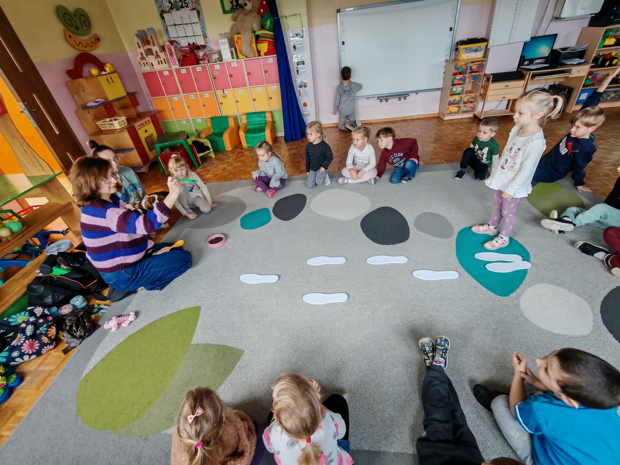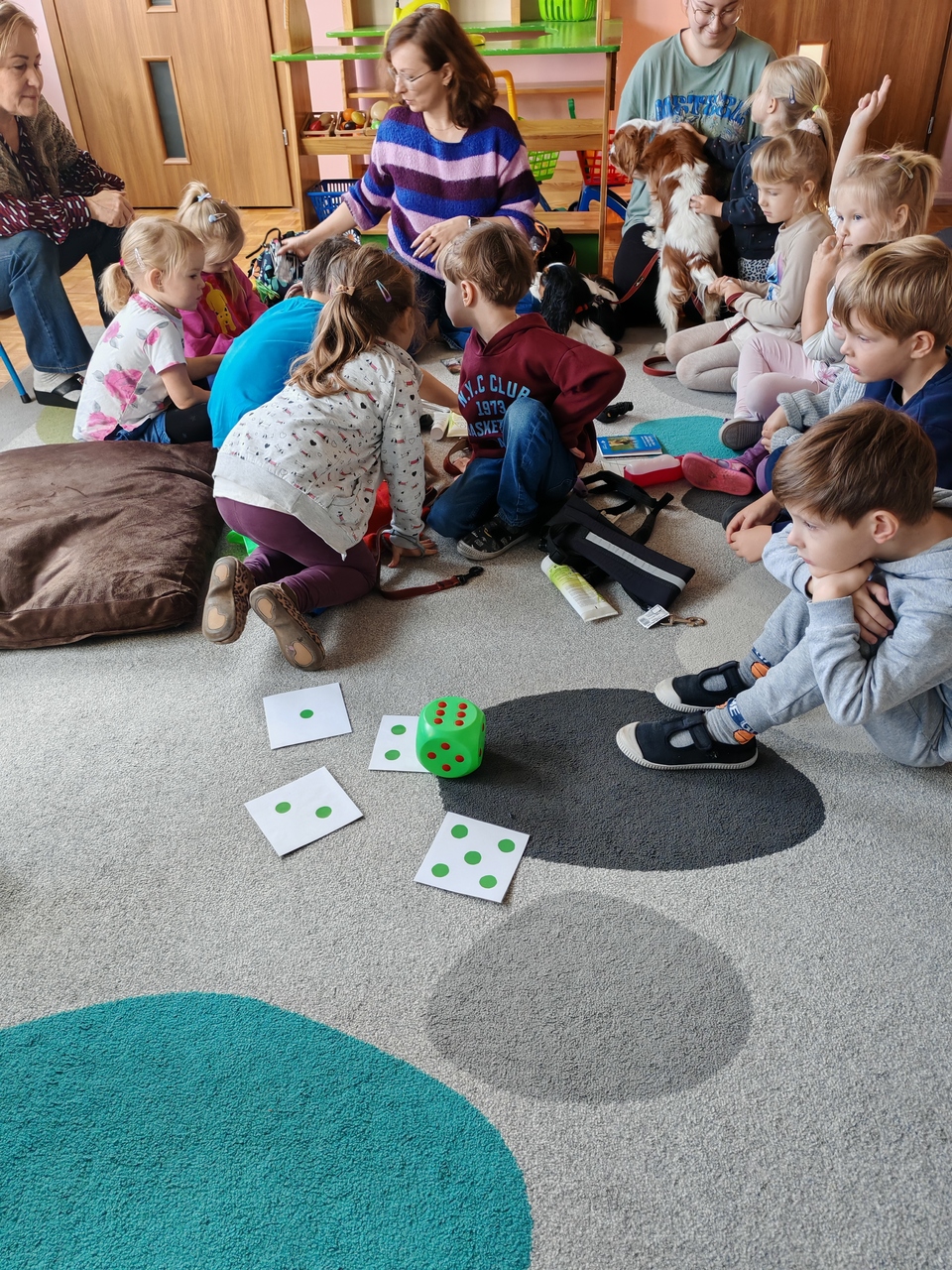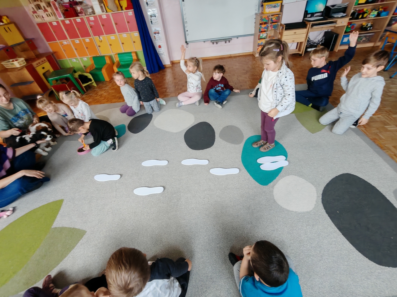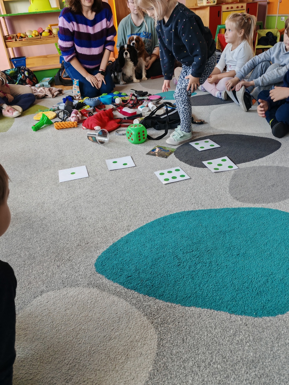 Pszczółki miały dzisiaj bardzo miłe spotkanie, odwiedziły je Pani Magdalenie Nowak, z córką Basią oraz ze swoimi pieskami rasy Cavalier King Charles Spaniel. Dzieci dowiedziały się jak opiekować się pieskami, co jest potrzebne do ich pielęgnacji, a także jakie umiejętności mają pieski. Miały również okazję nakarmić małych gości smakołykami.
