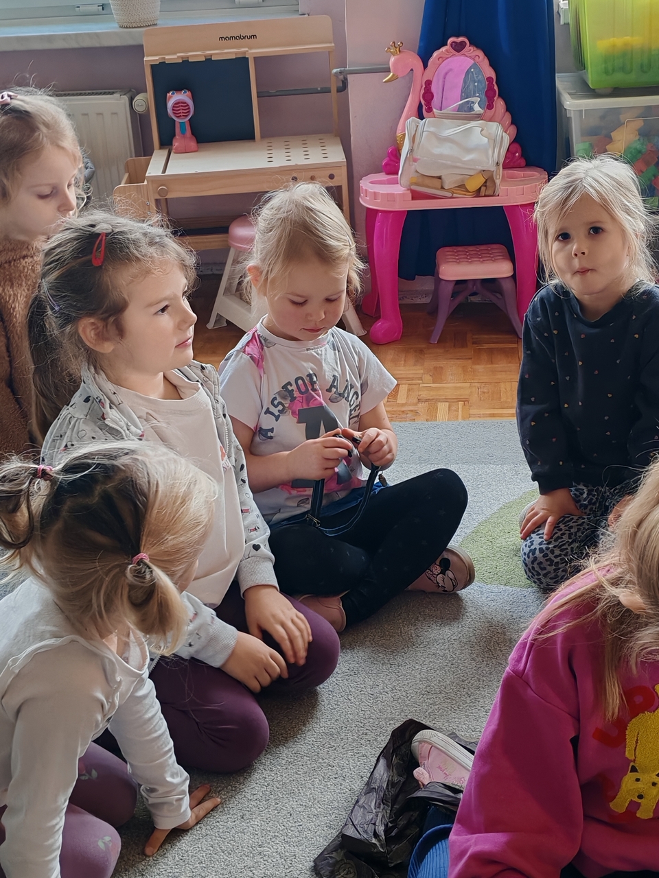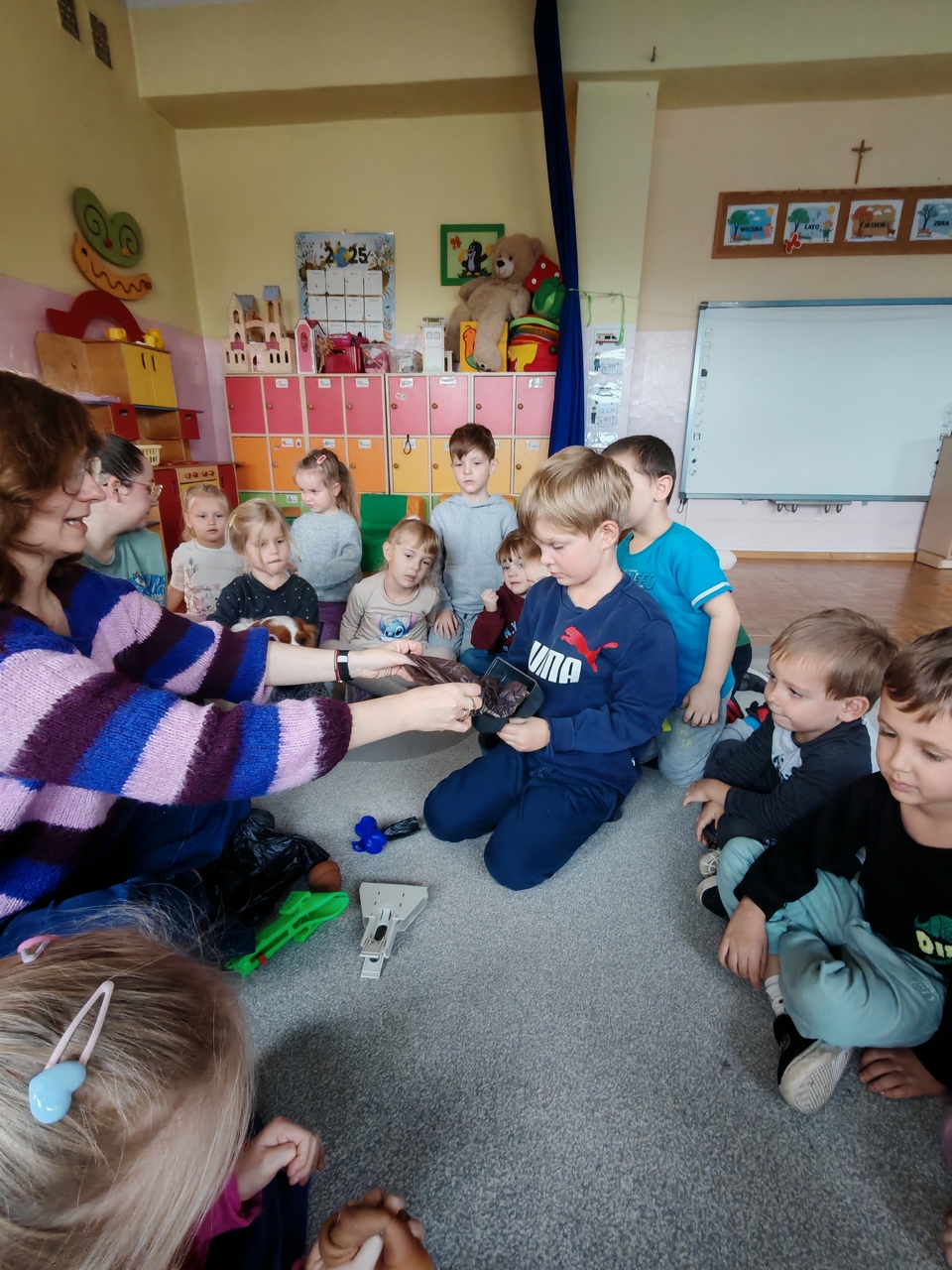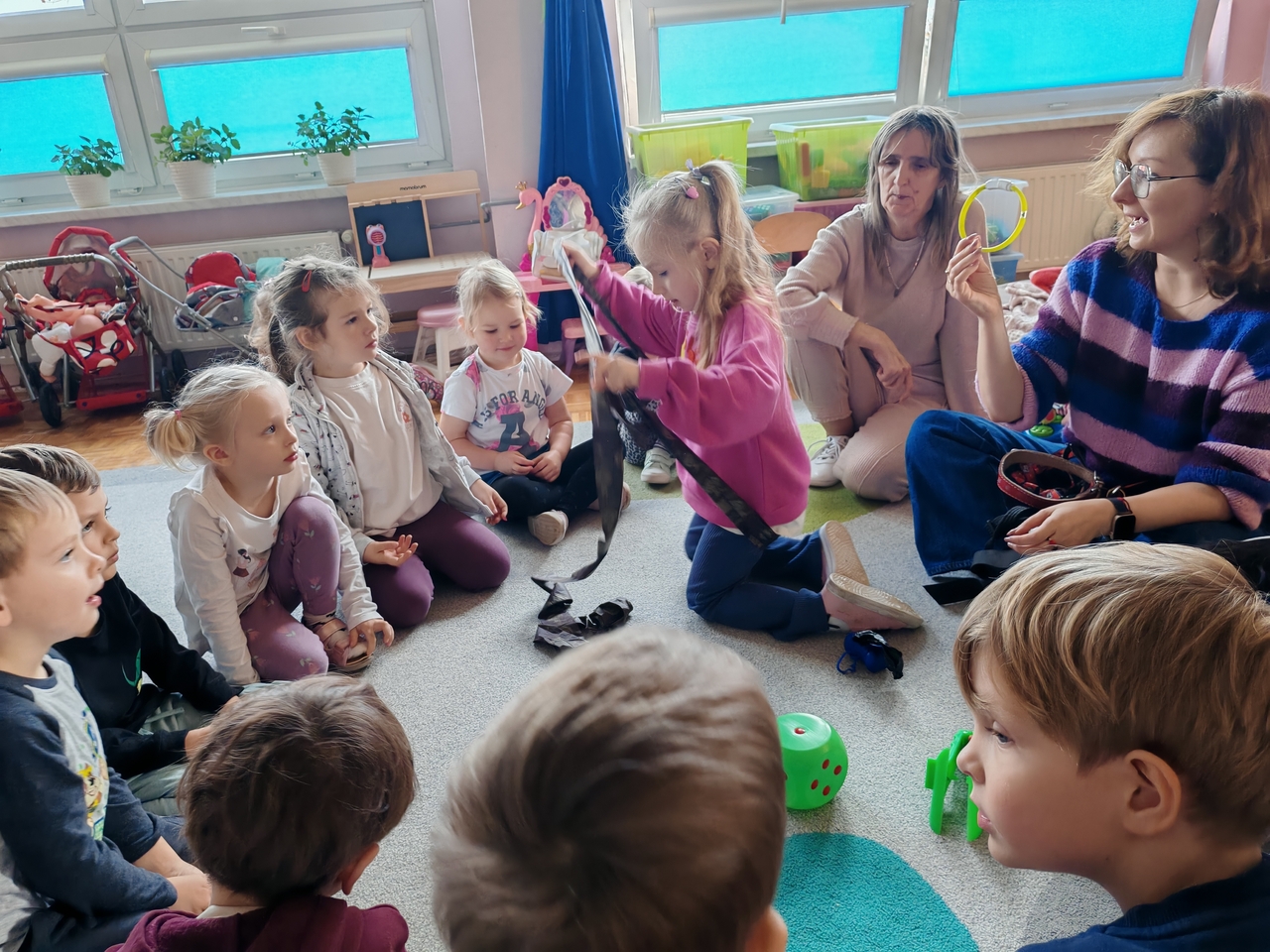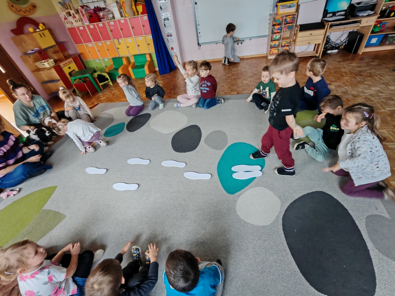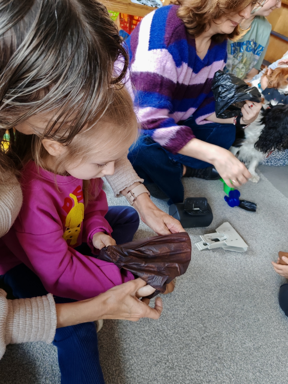 Pszczółki miały dzisiaj bardzo miłe spotkanie, odwiedziły je Pani Magdalenie Nowak, z córką Basią oraz ze swoimi pieskami rasy Cavalier King Charles Spaniel. Dzieci dowiedziały się jak opiekować się pieskami, co jest potrzebne do ich pielęgnacji, a także jakie umiejętności mają pieski. Miały również okazję nakarmić małych gości smakołykami.