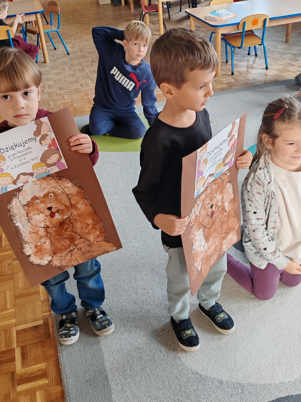 Dzieci w ramach podziękowania przygotowały piękne prace plastyczne przedstawiające pieski.