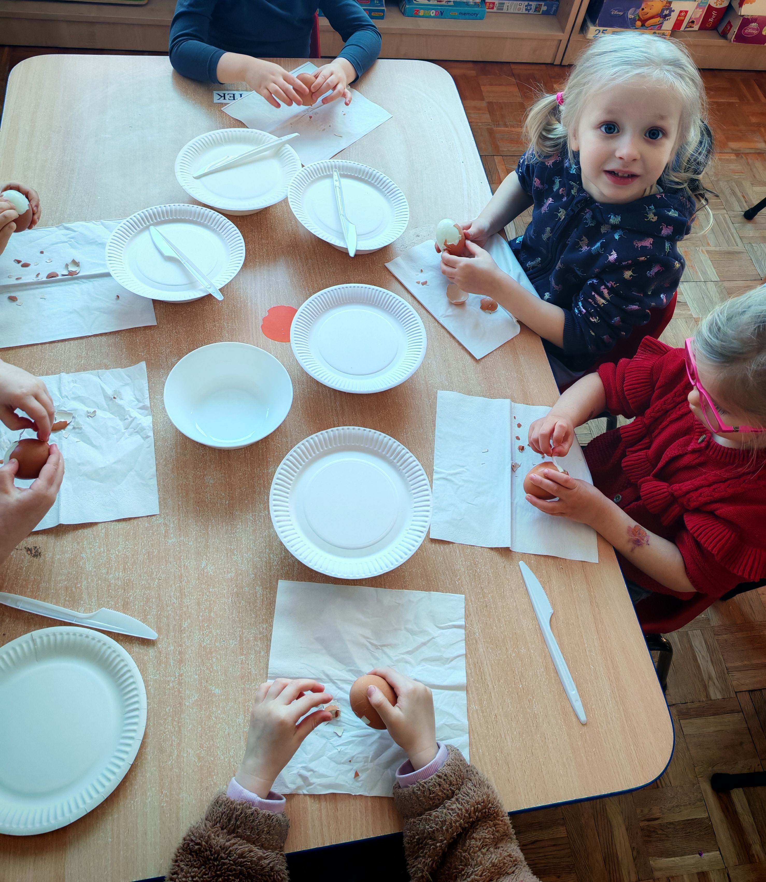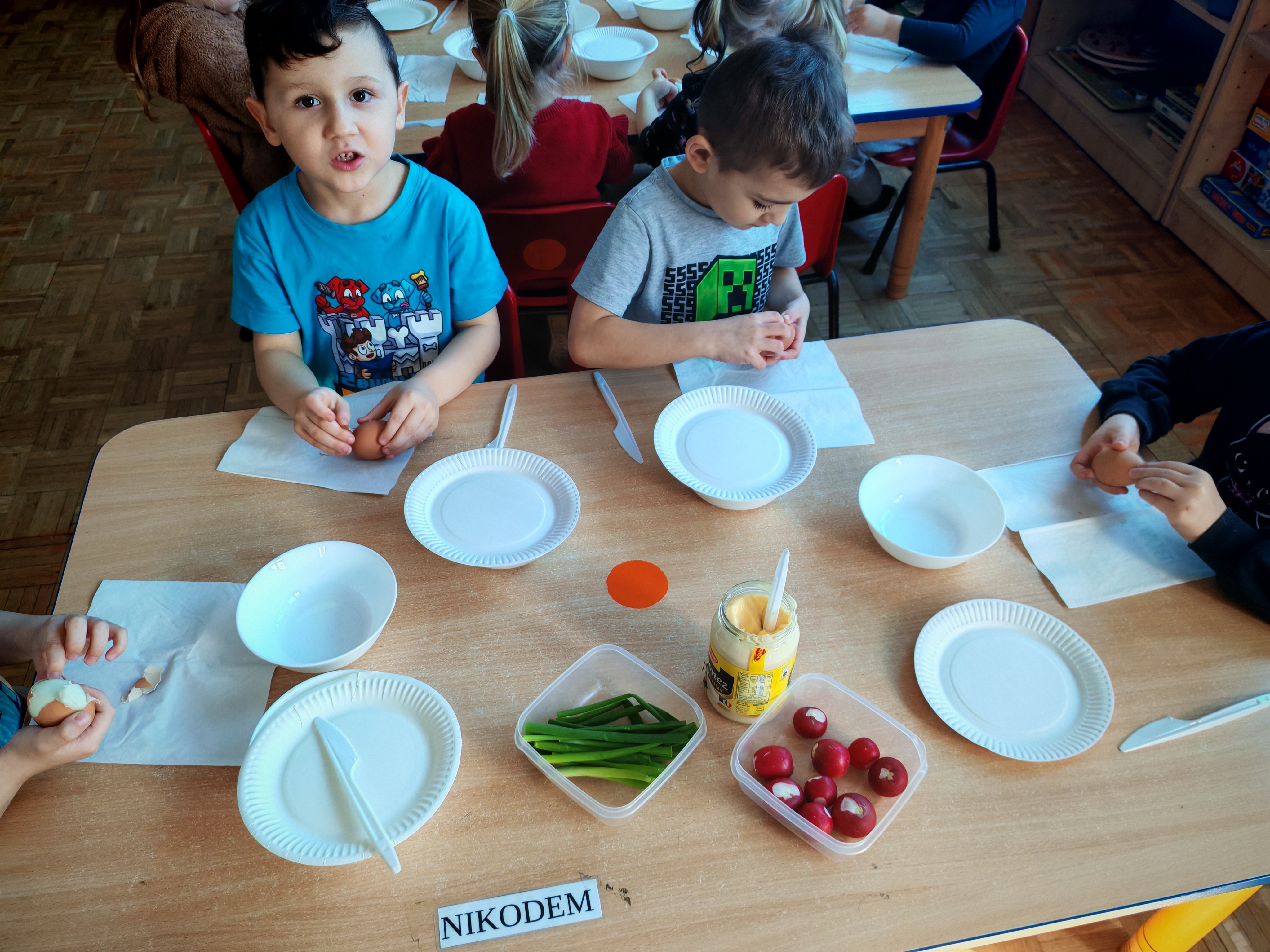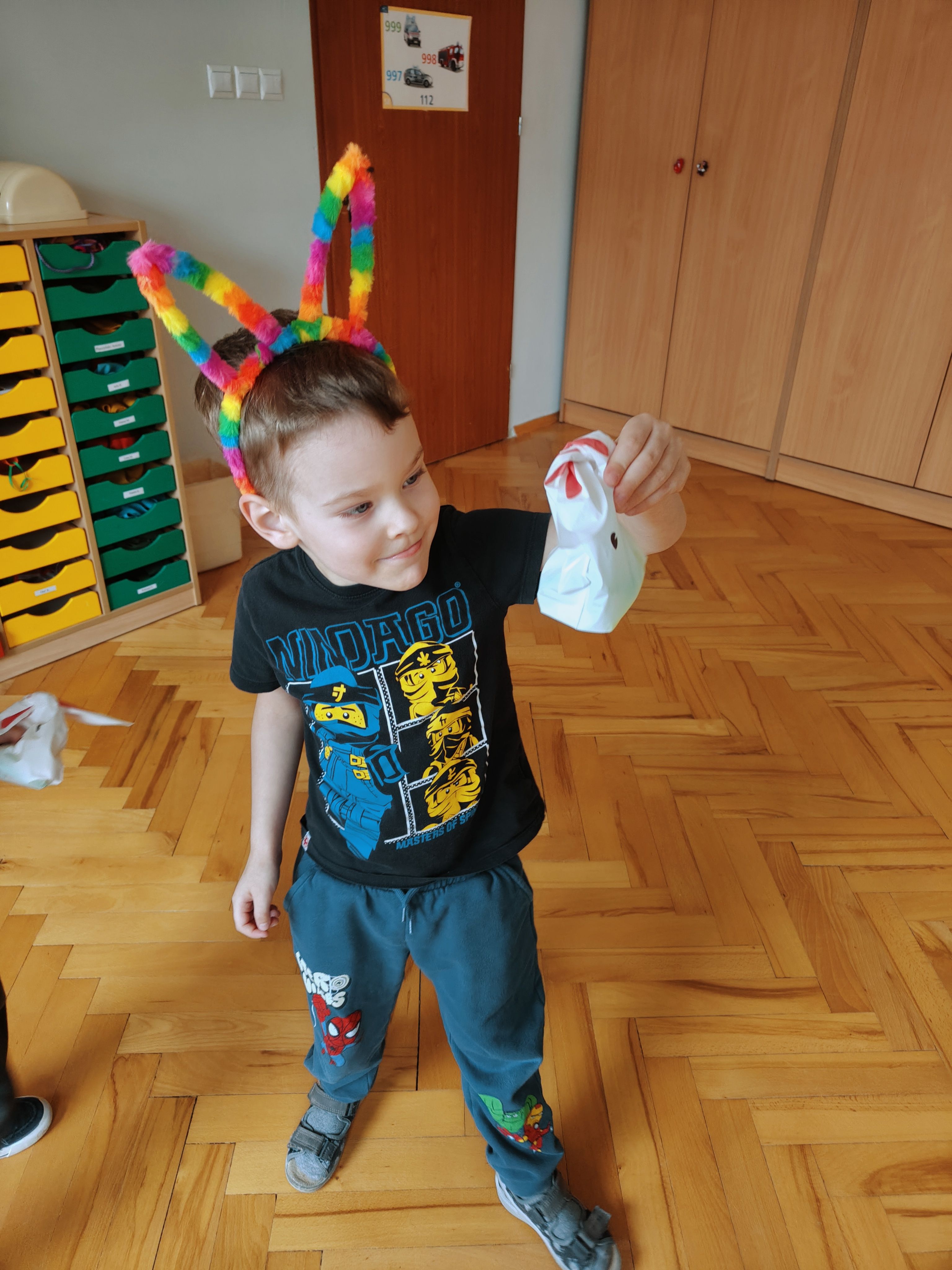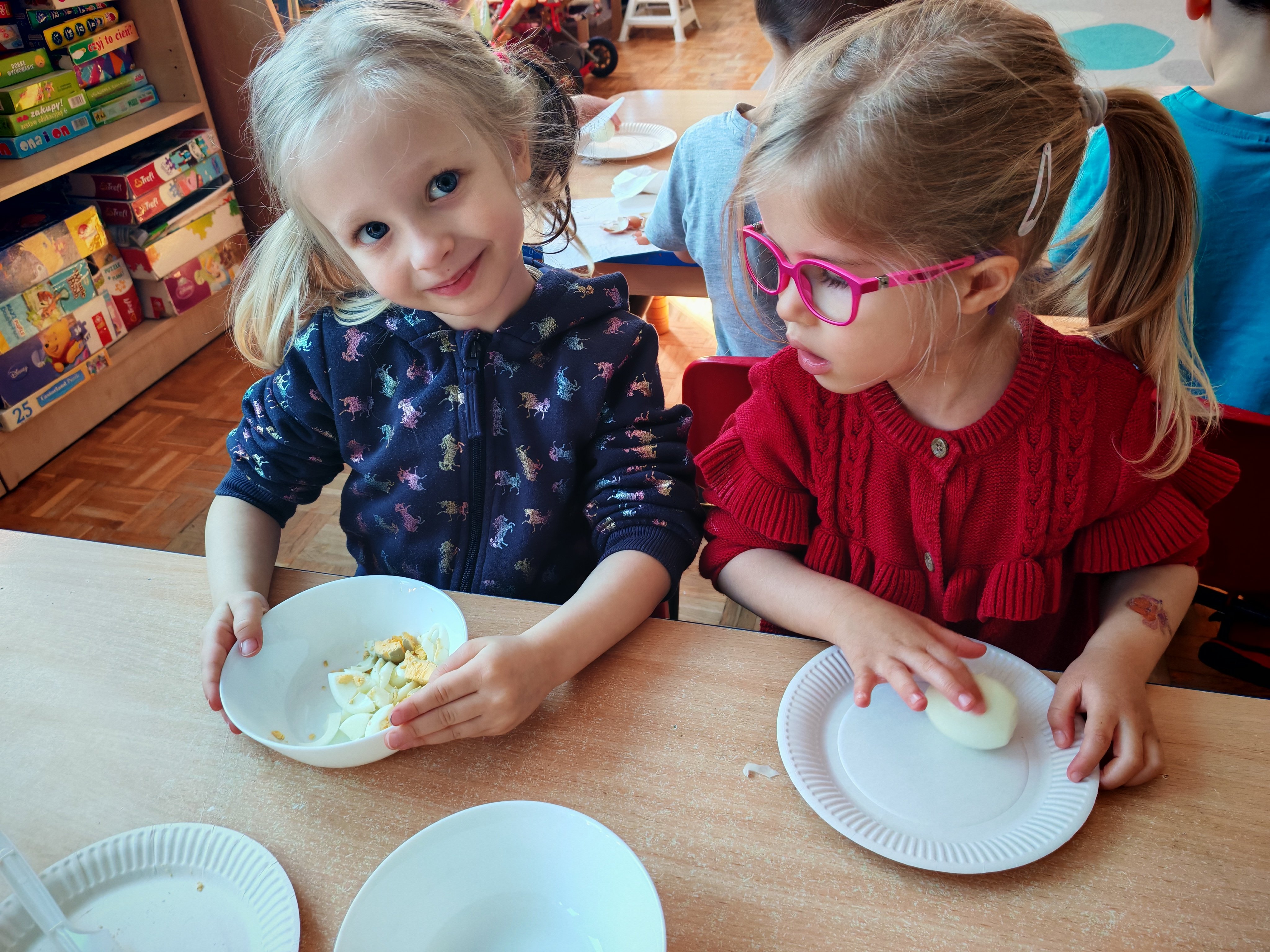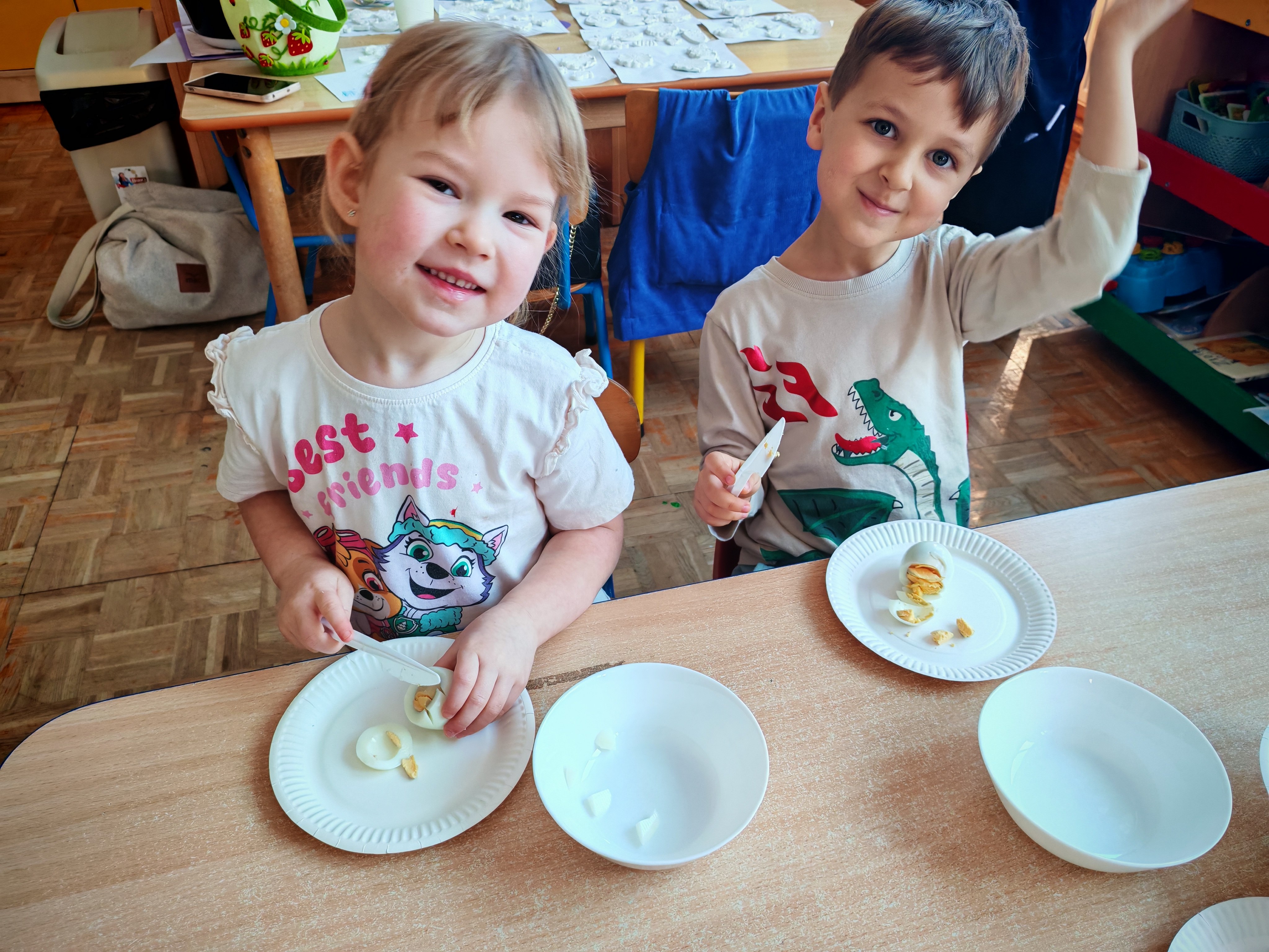 W radosnej, wiosennej atmosferze przygotowywaliśmy się do świąt – siejąc rzeżuchę i owies ,tworząc dekoracje oraz wspólnie przygotowując sałatkę . Nie zabrakło też ruchu i uśmiechu podczas Zajączkowego toru. Na zakończenie – małe upominki i wielka radość