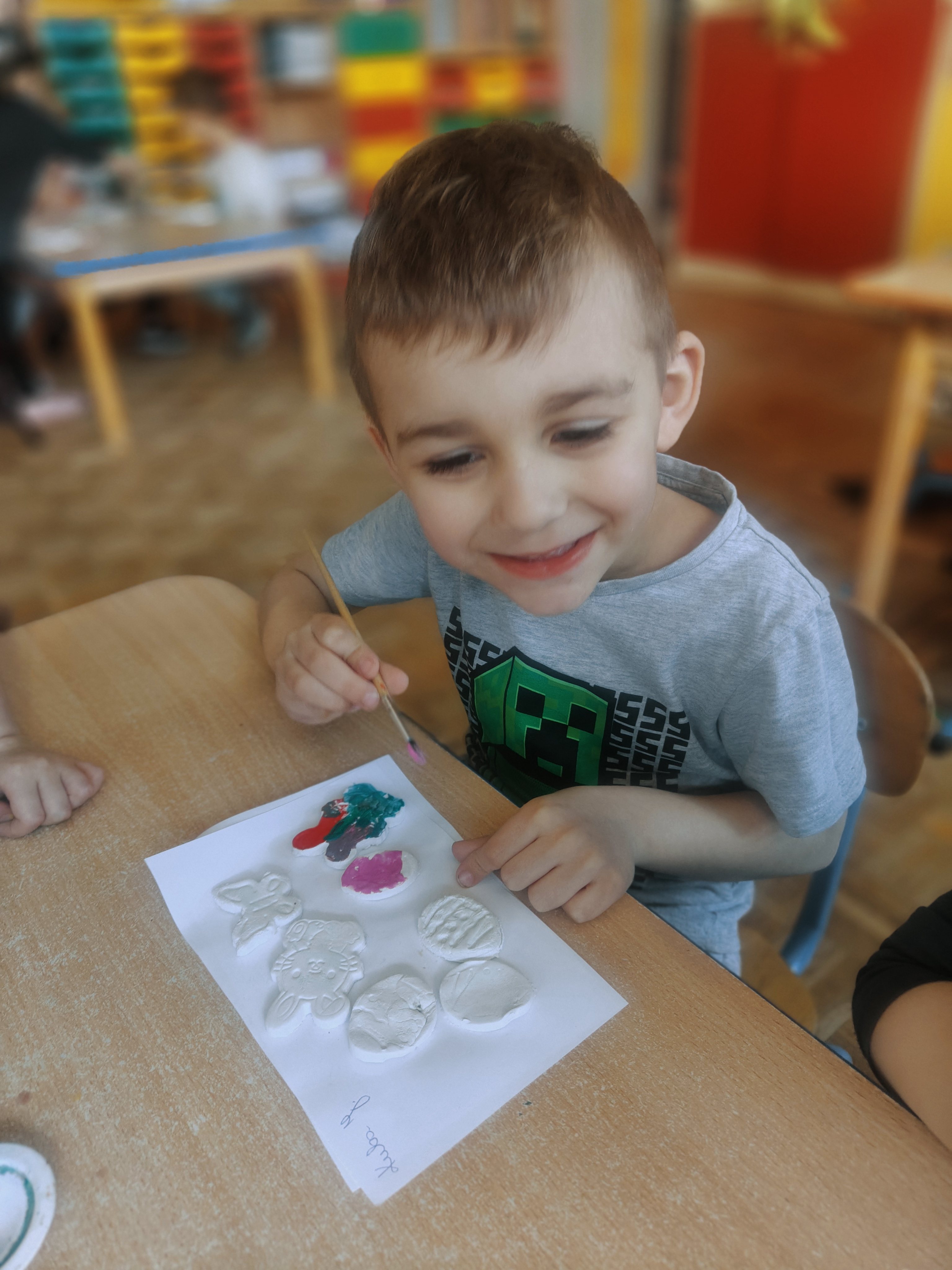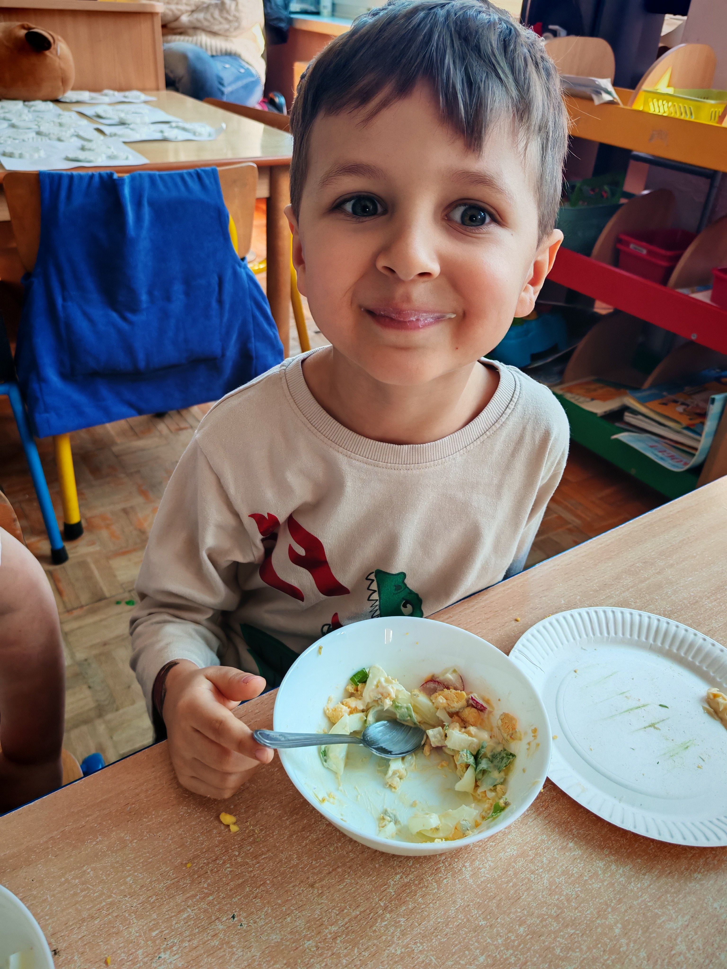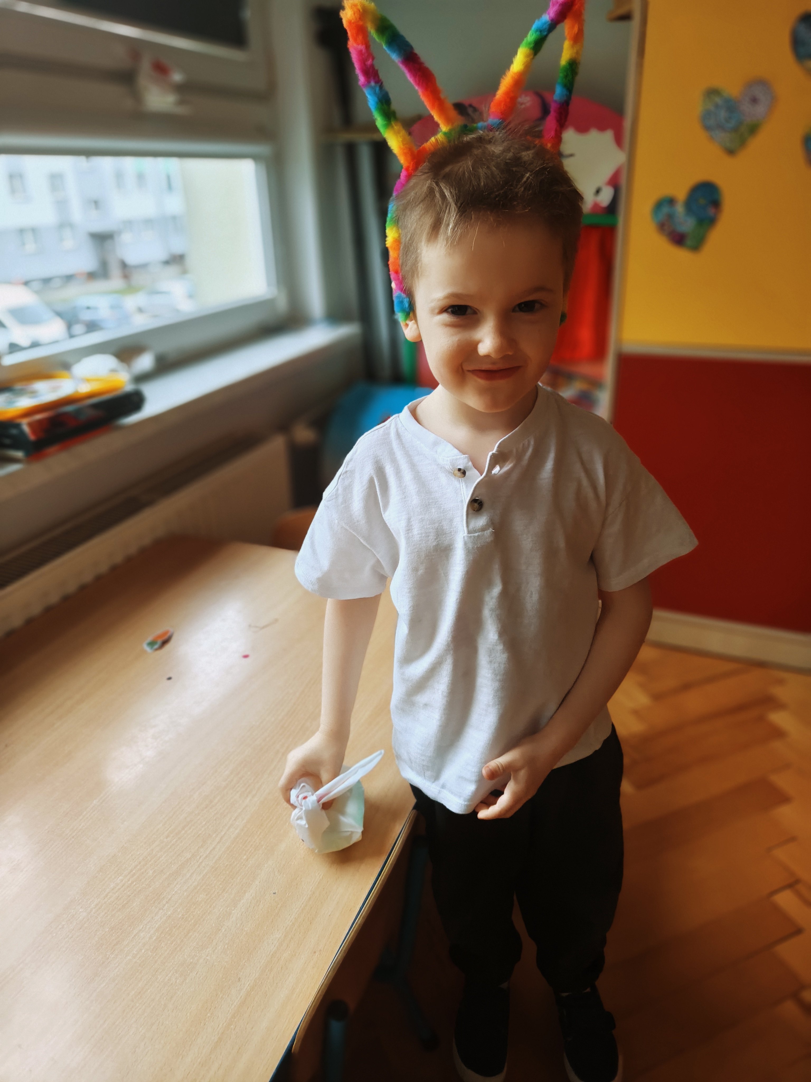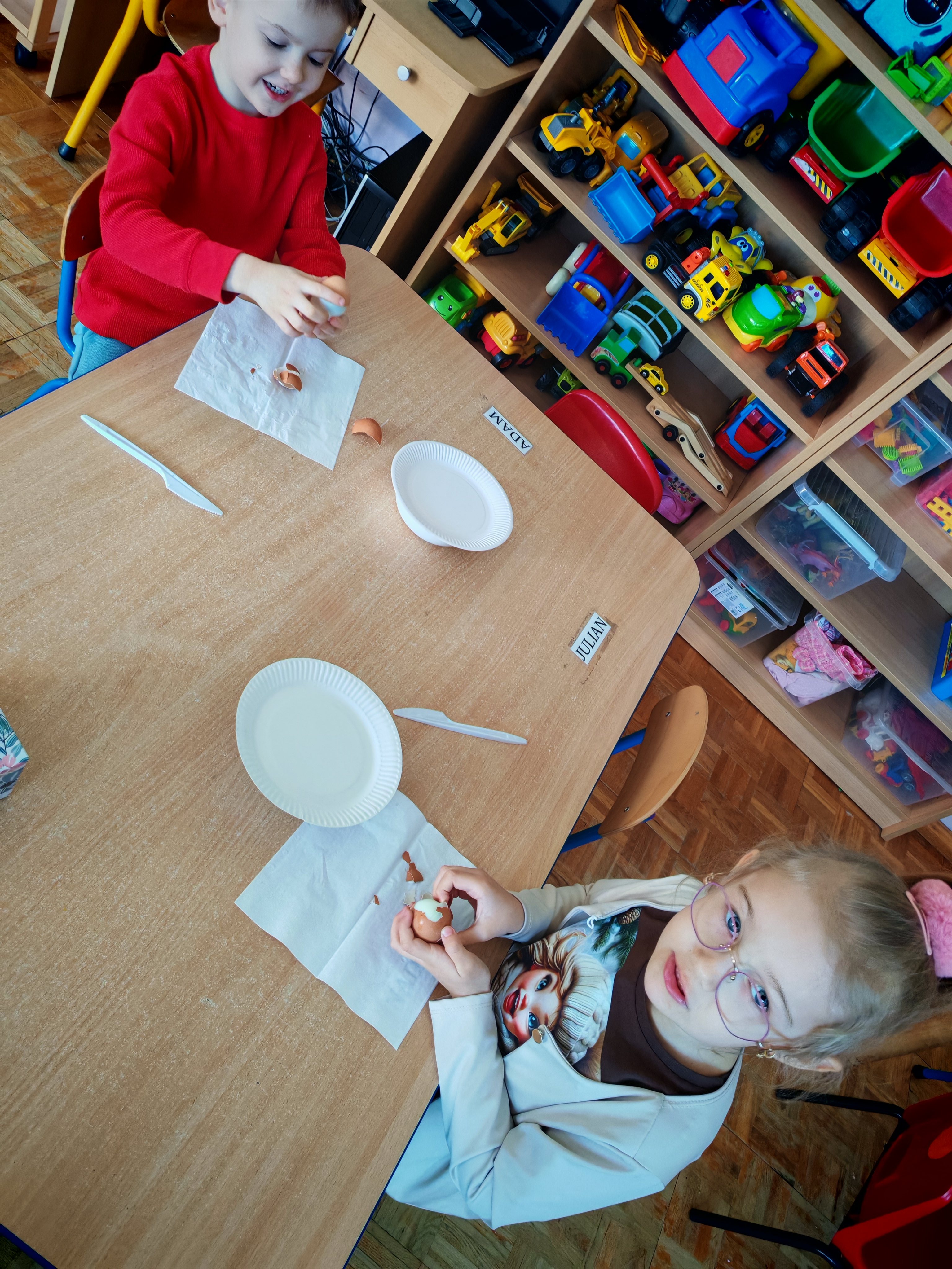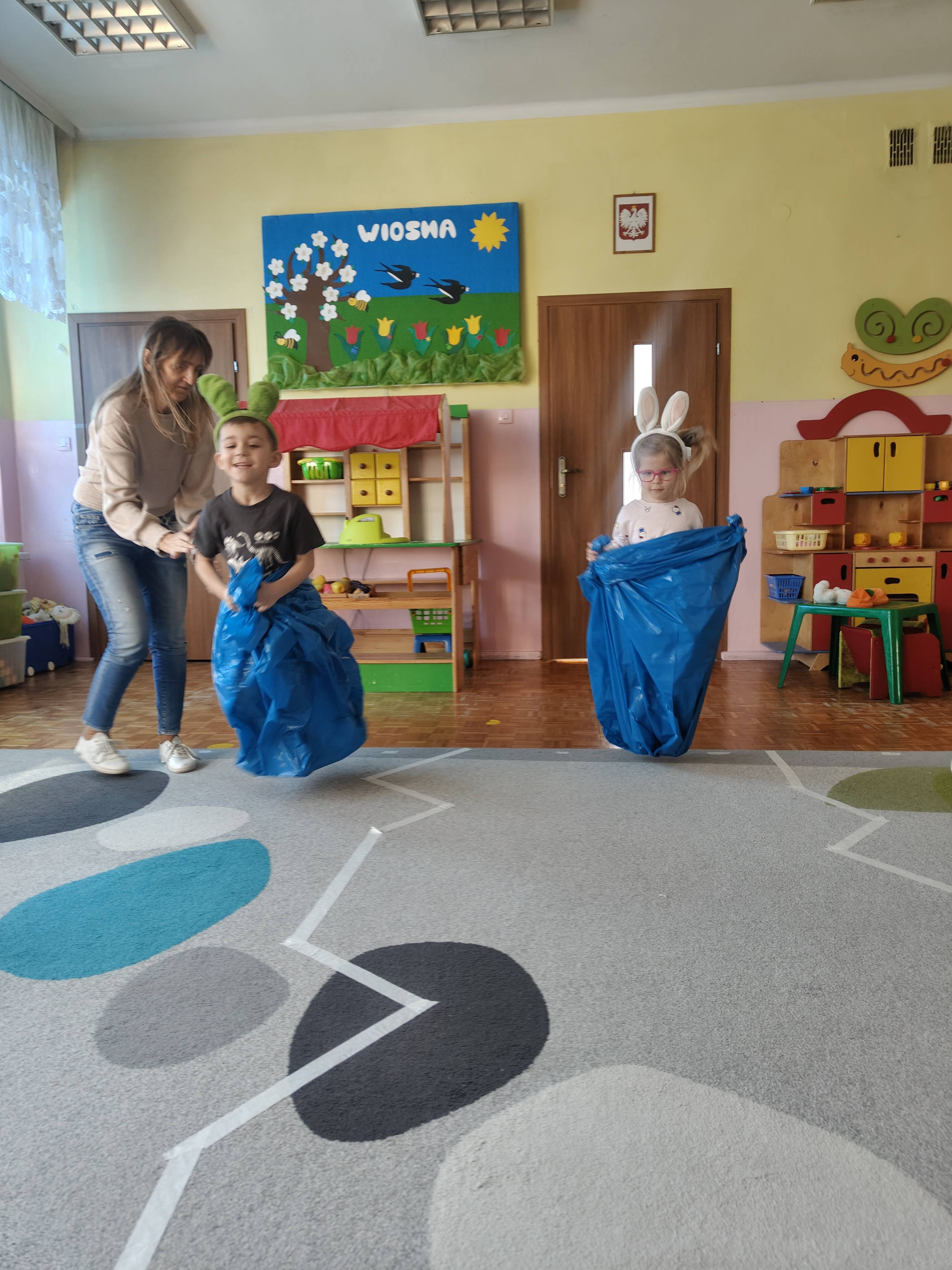 W radosnej, wiosennej atmosferze przygotowywaliśmy się do świąt – siejąc rzeżuchę i owies ,tworząc dekoracje oraz wspólnie przygotowując sałatkę . Nie zabrakło też ruchu i uśmiechu podczas Zajączkowego toru. Na zakończenie – małe upominki i wielka radość