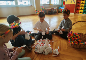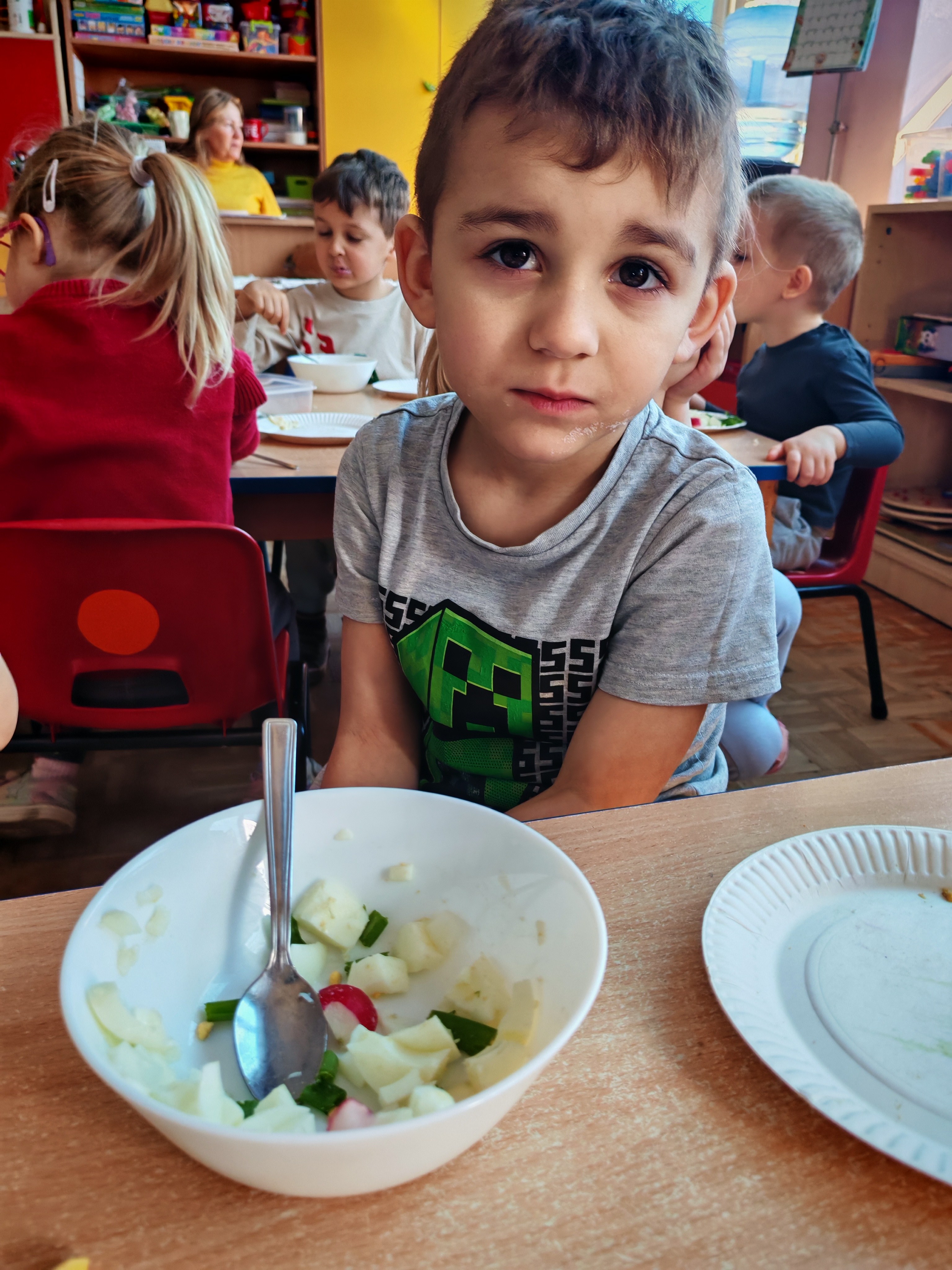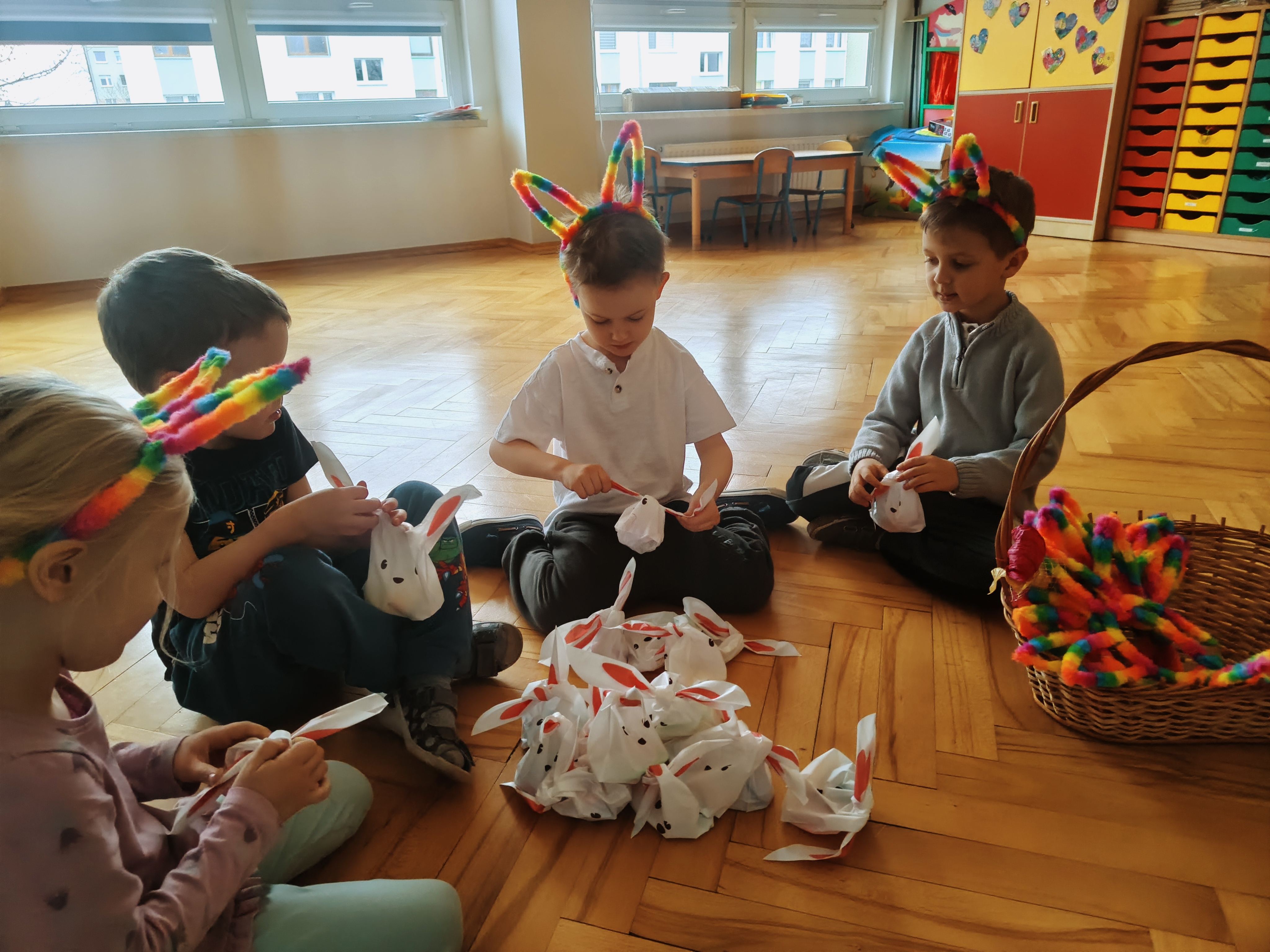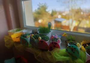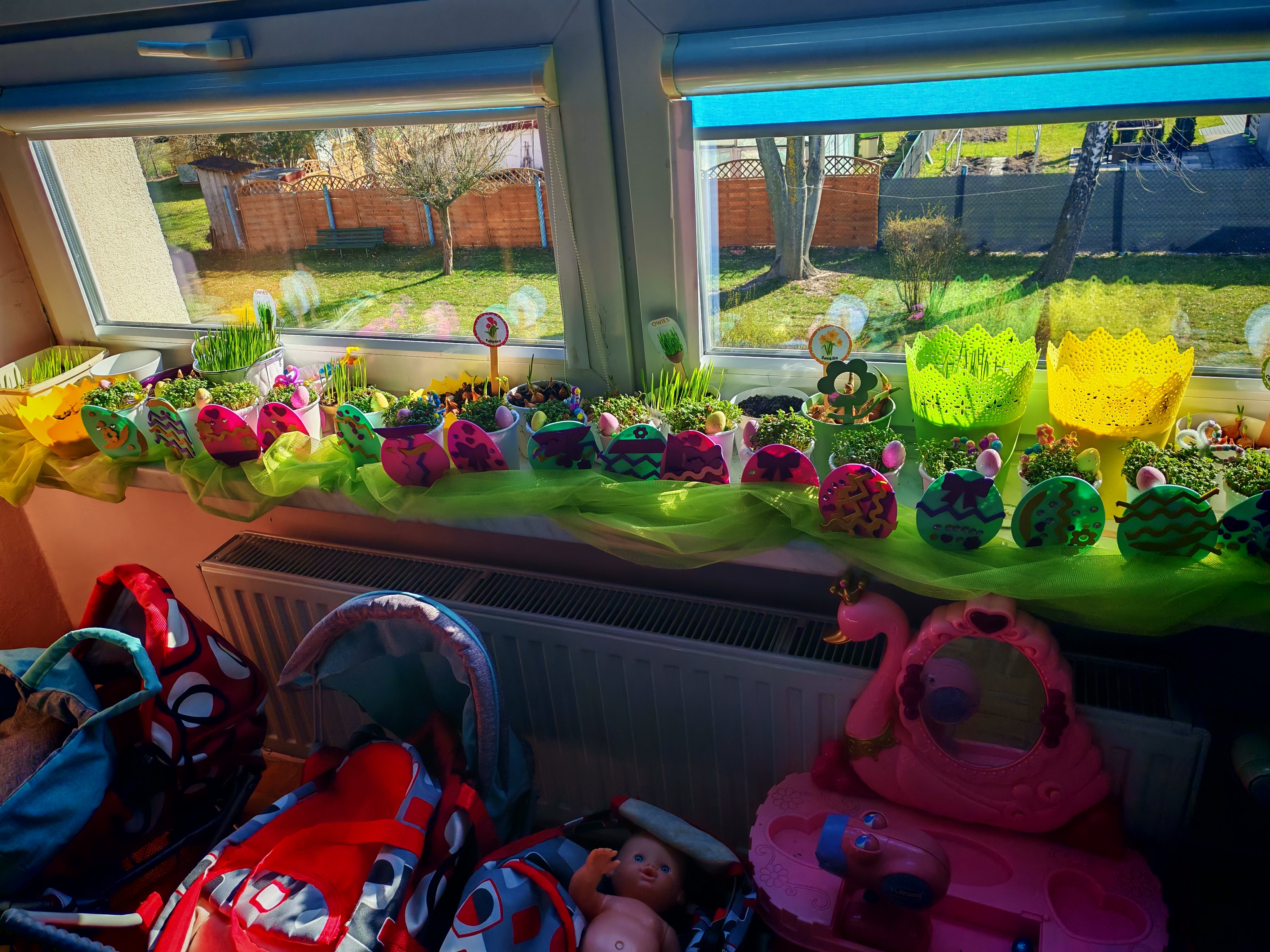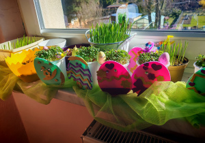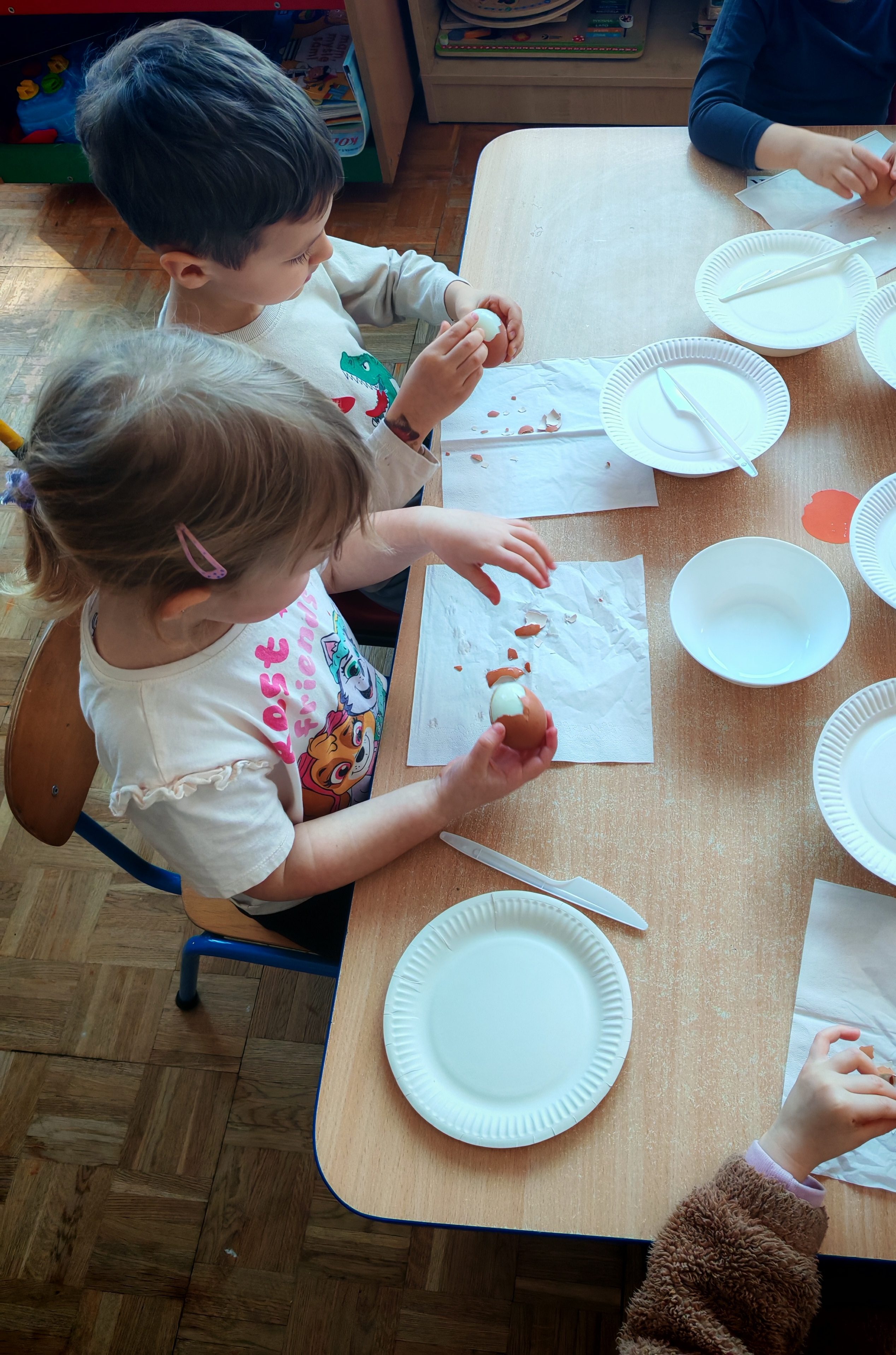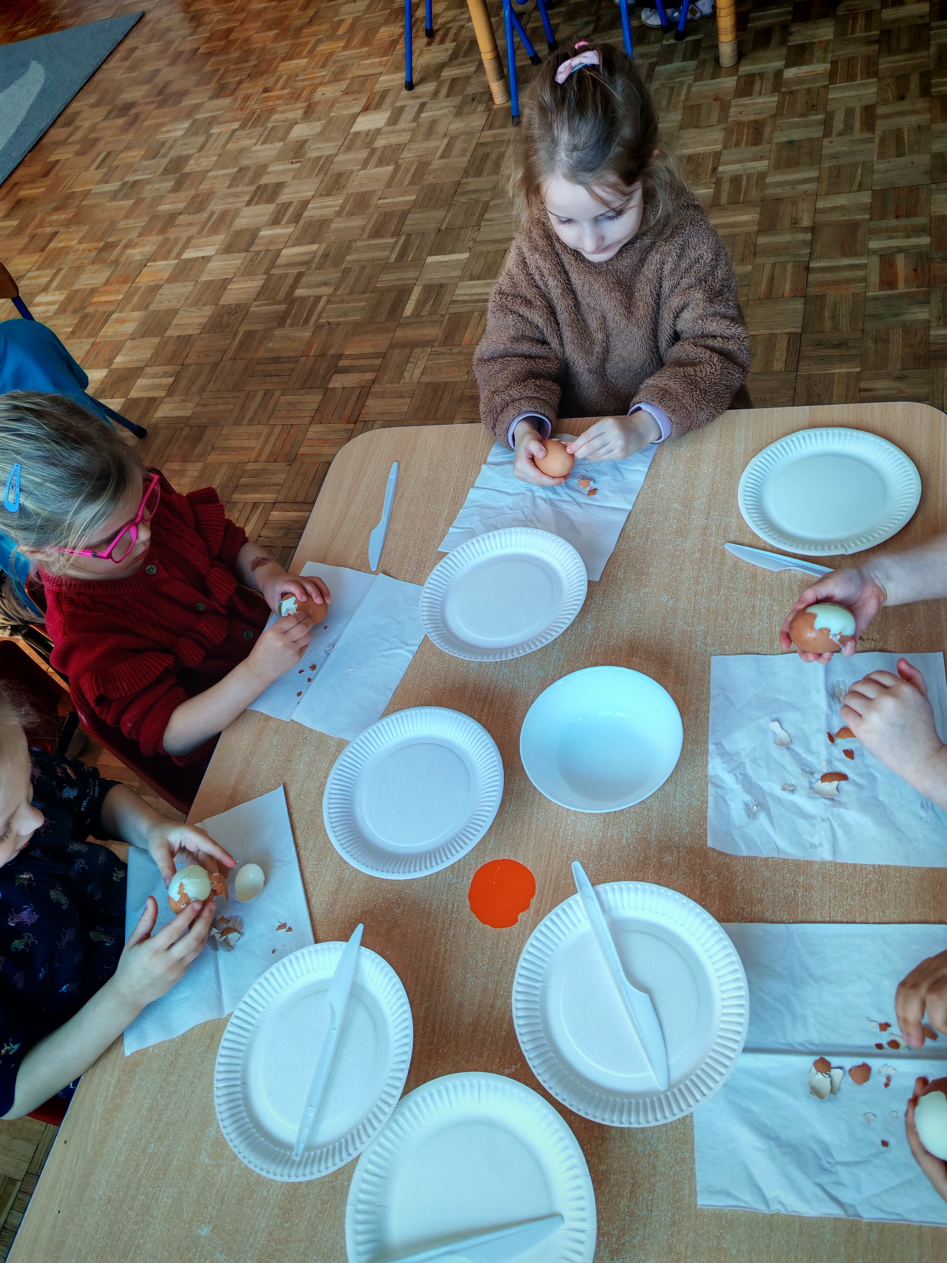 W radosnej, wiosennej atmosferze przygotowywaliśmy się do świąt – siejąc rzeżuchę i owies ,tworząc dekoracje oraz wspólnie przygotowując sałatkę . Nie zabrakło też ruchu i uśmiechu podczas Zajączkowego toru. Na zakończenie – małe upominki i wielka radość