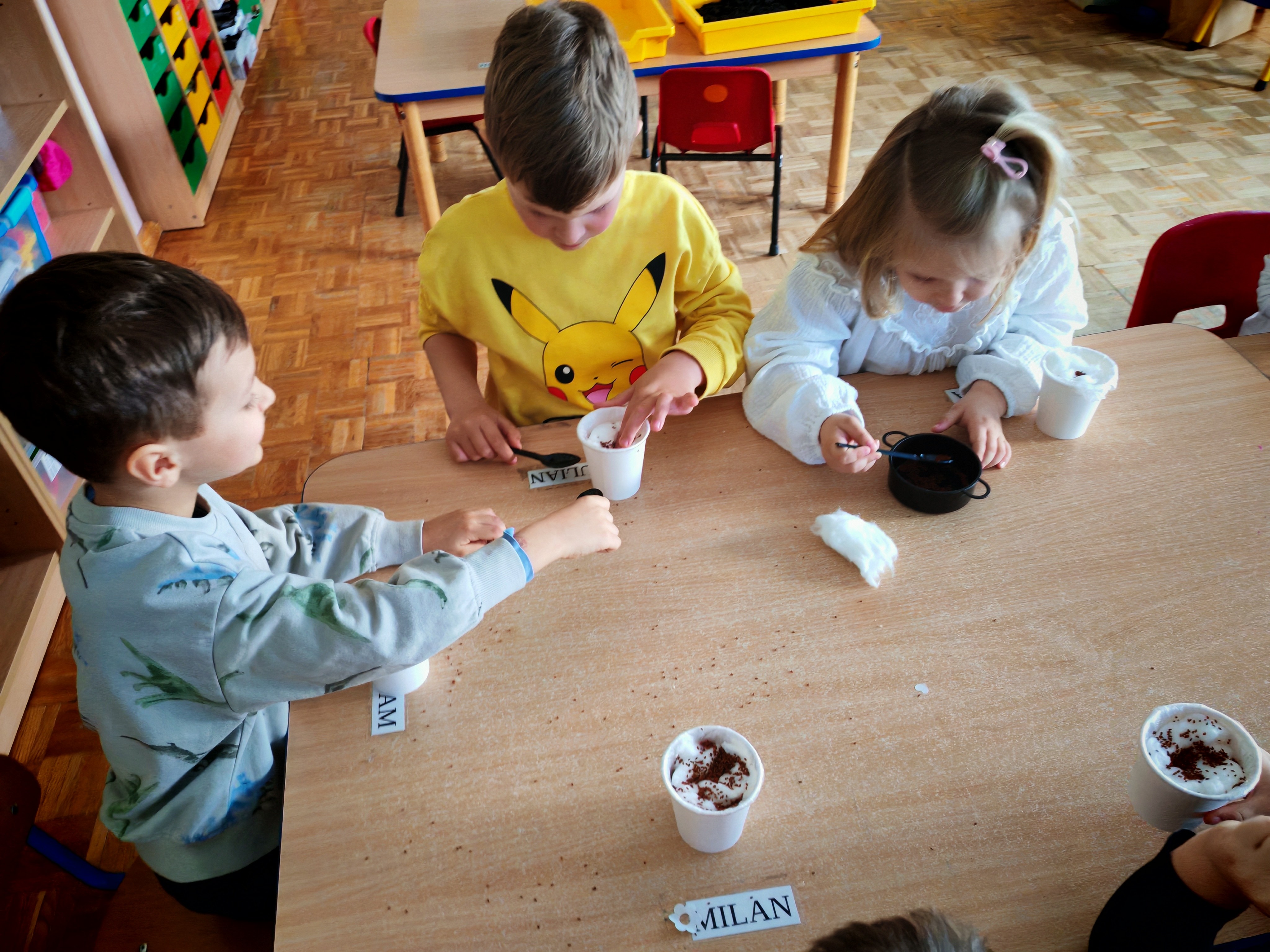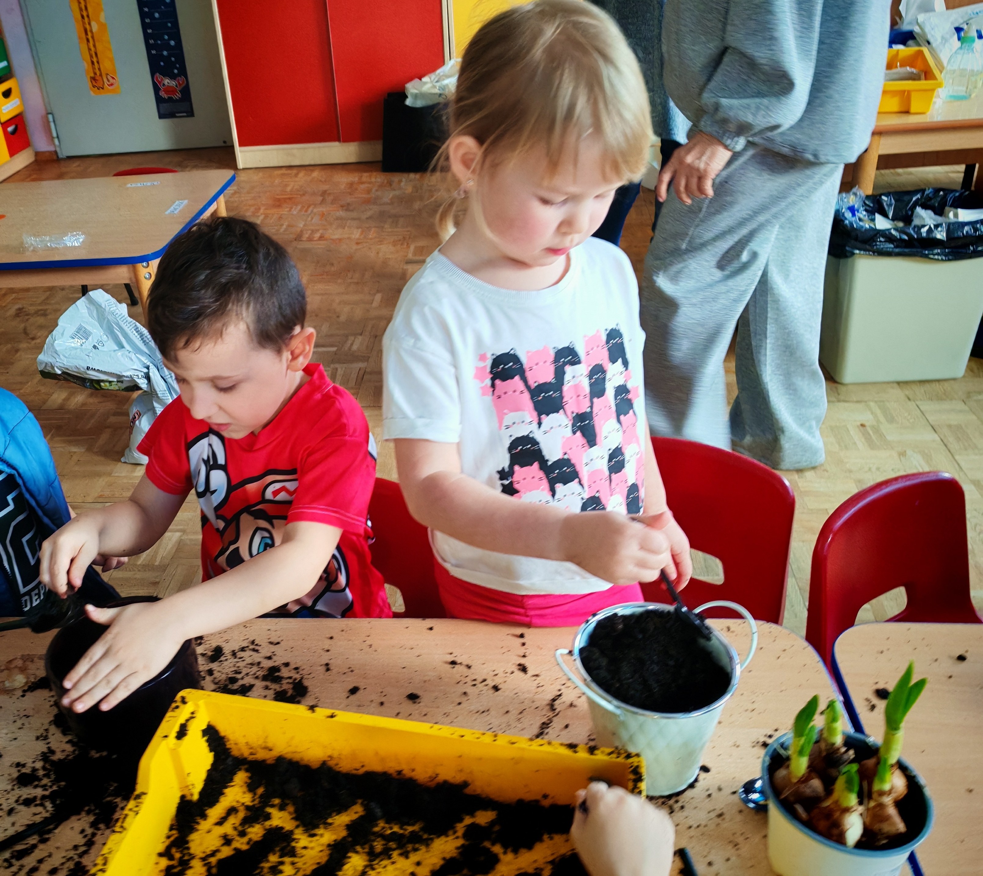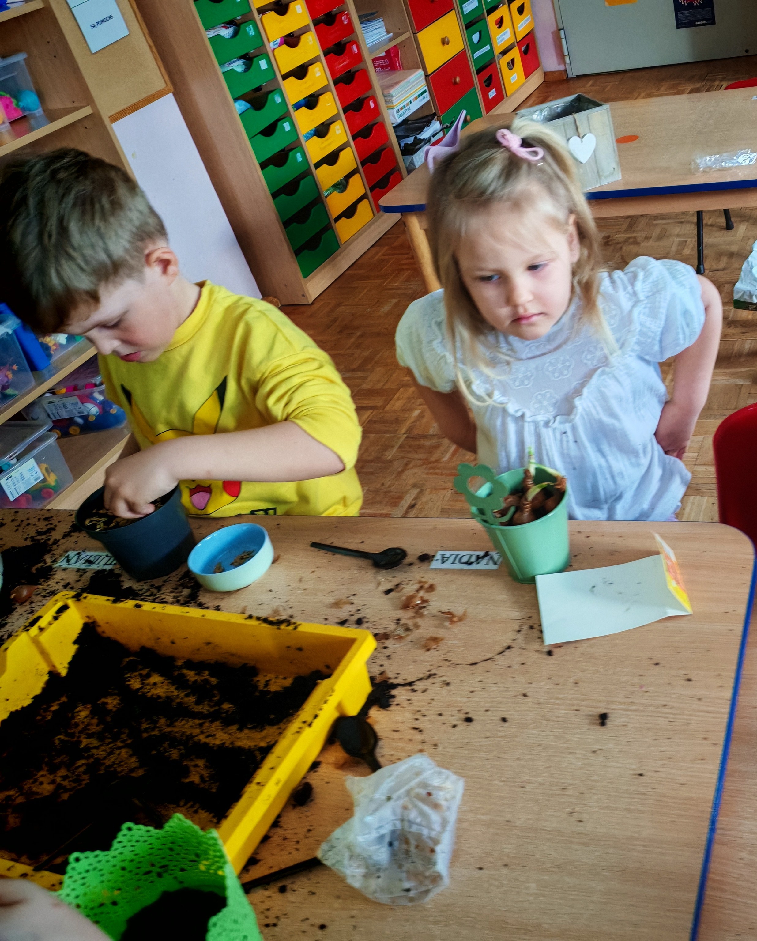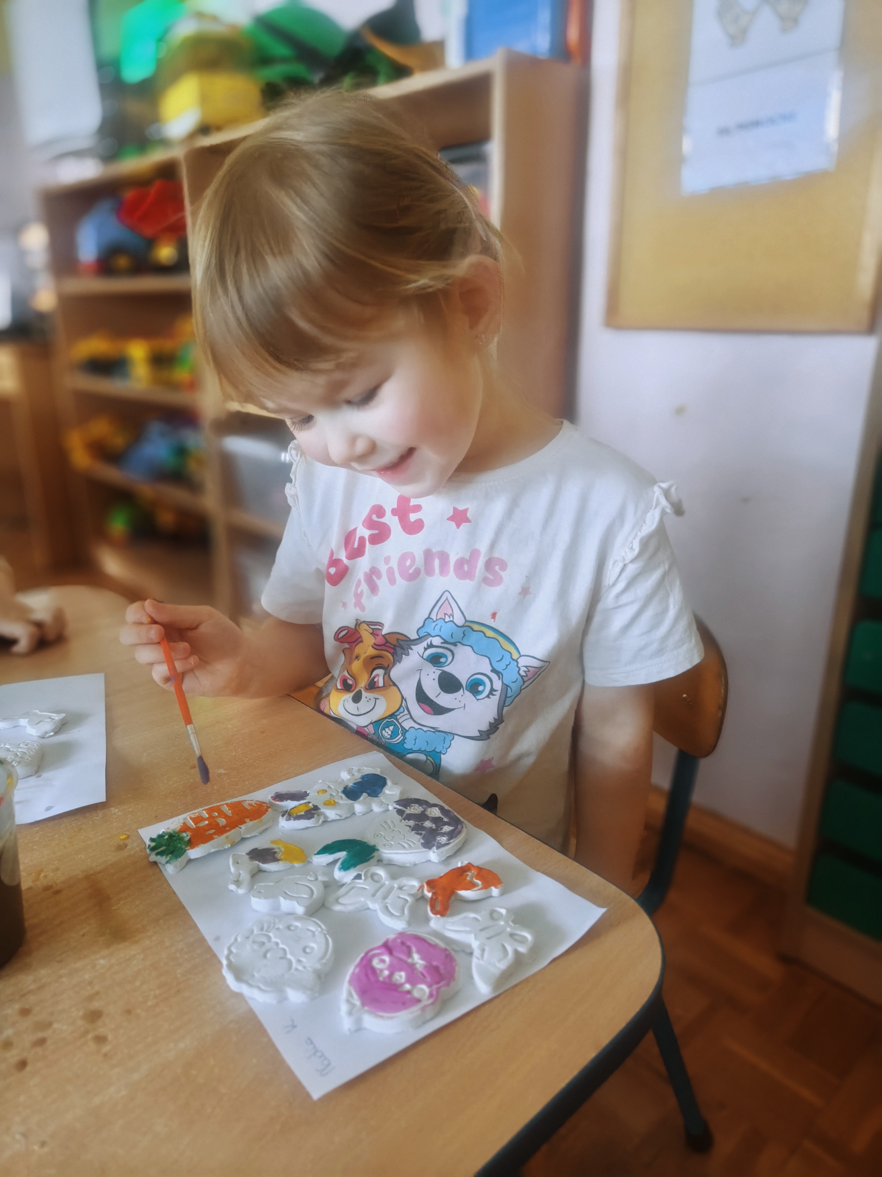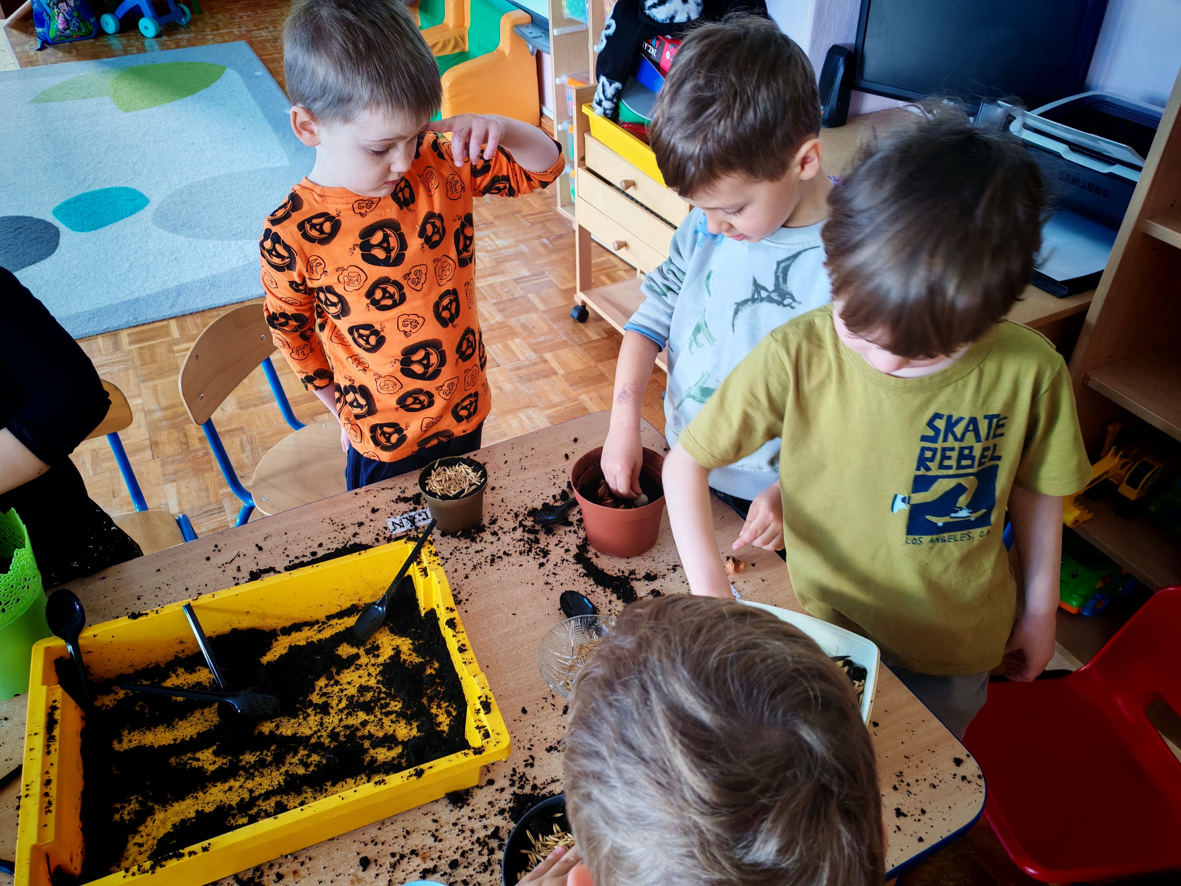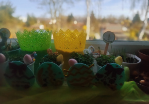 W radosnej, wiosennej atmosferze przygotowywaliśmy się do świąt – siejąc rzeżuchę i owies ,tworząc dekoracje oraz wspólnie przygotowując sałatkę . Nie zabrakło też ruchu i uśmiechu podczas Zajączkowego toru. Na zakończenie – małe upominki i wielka radość