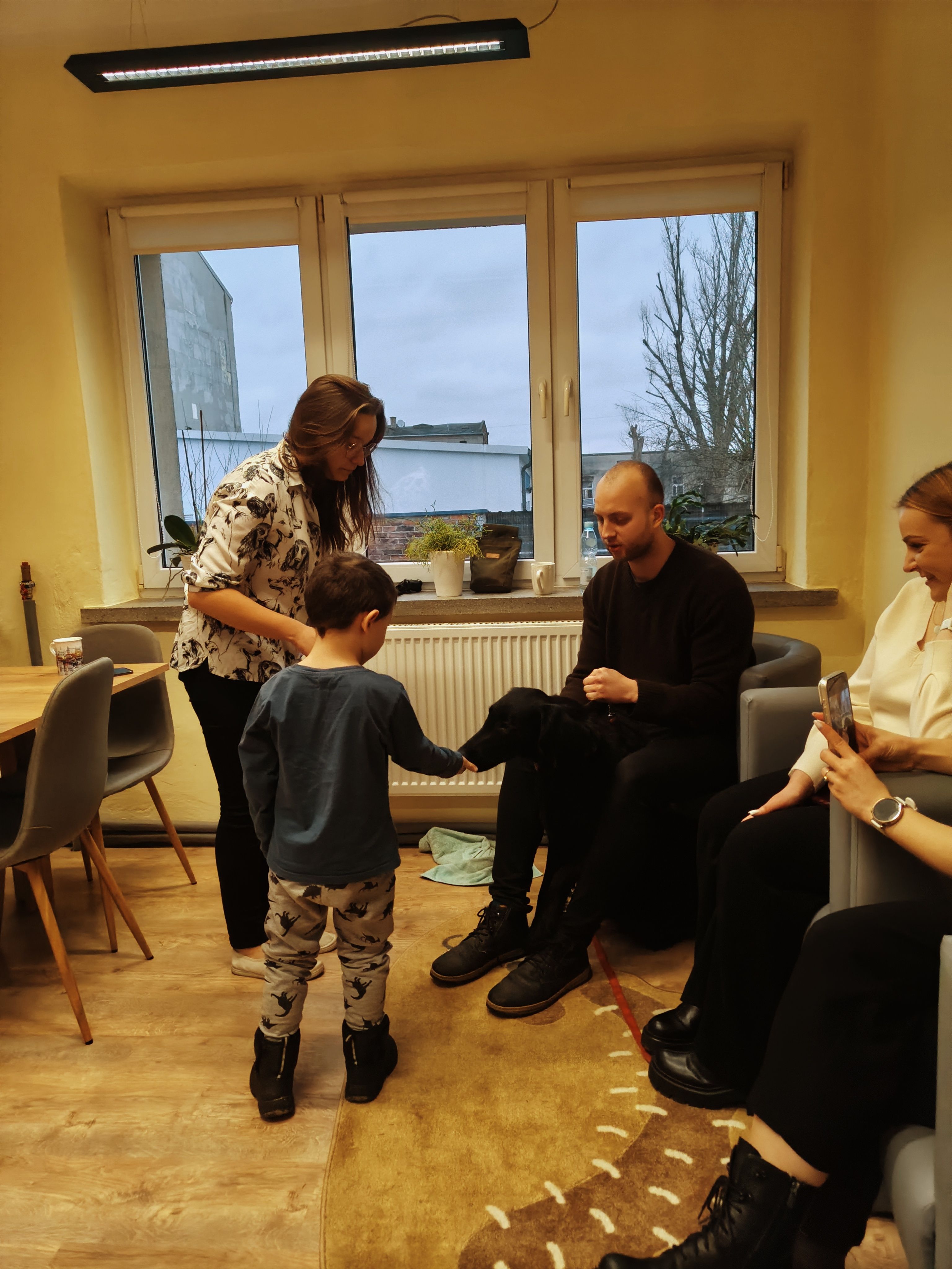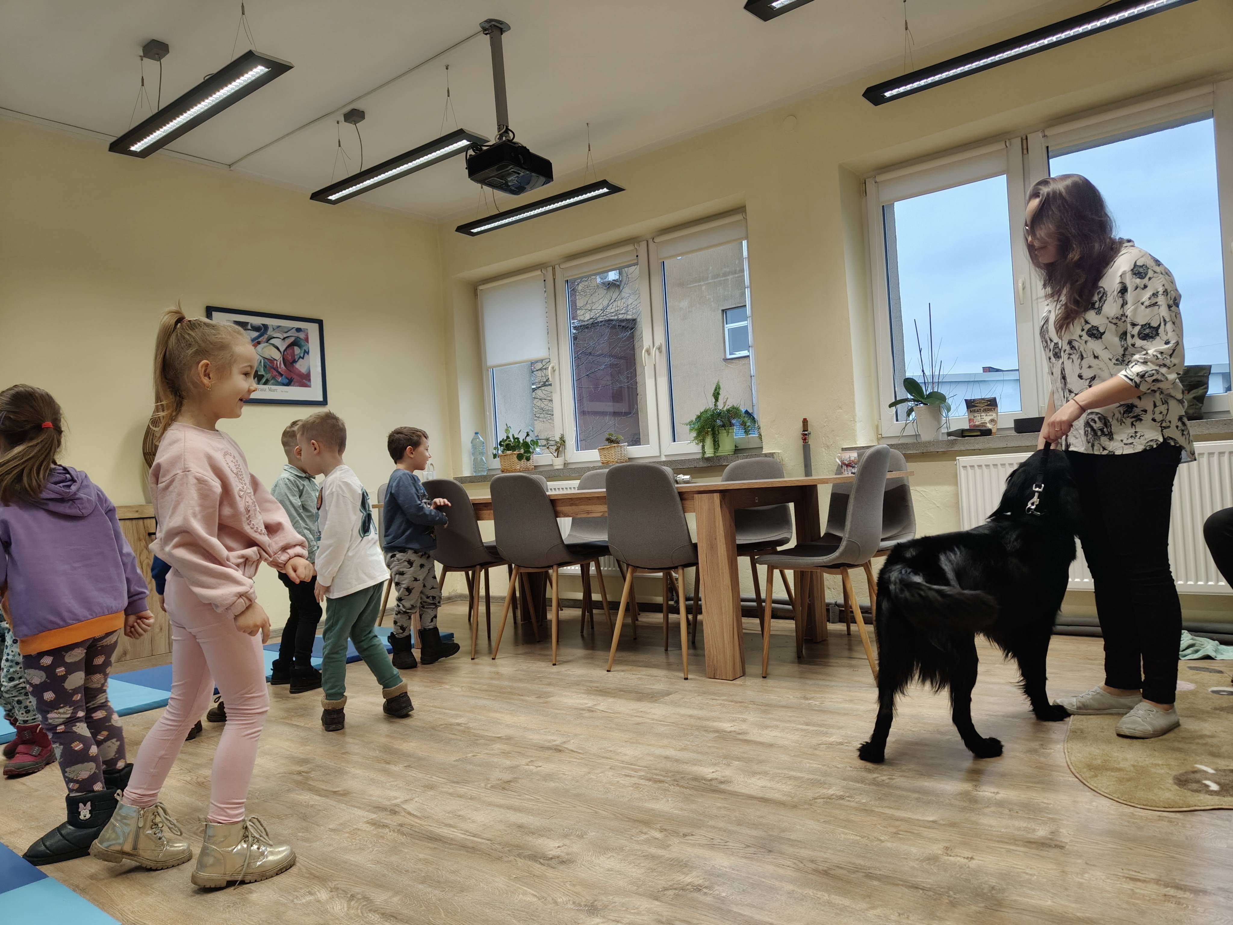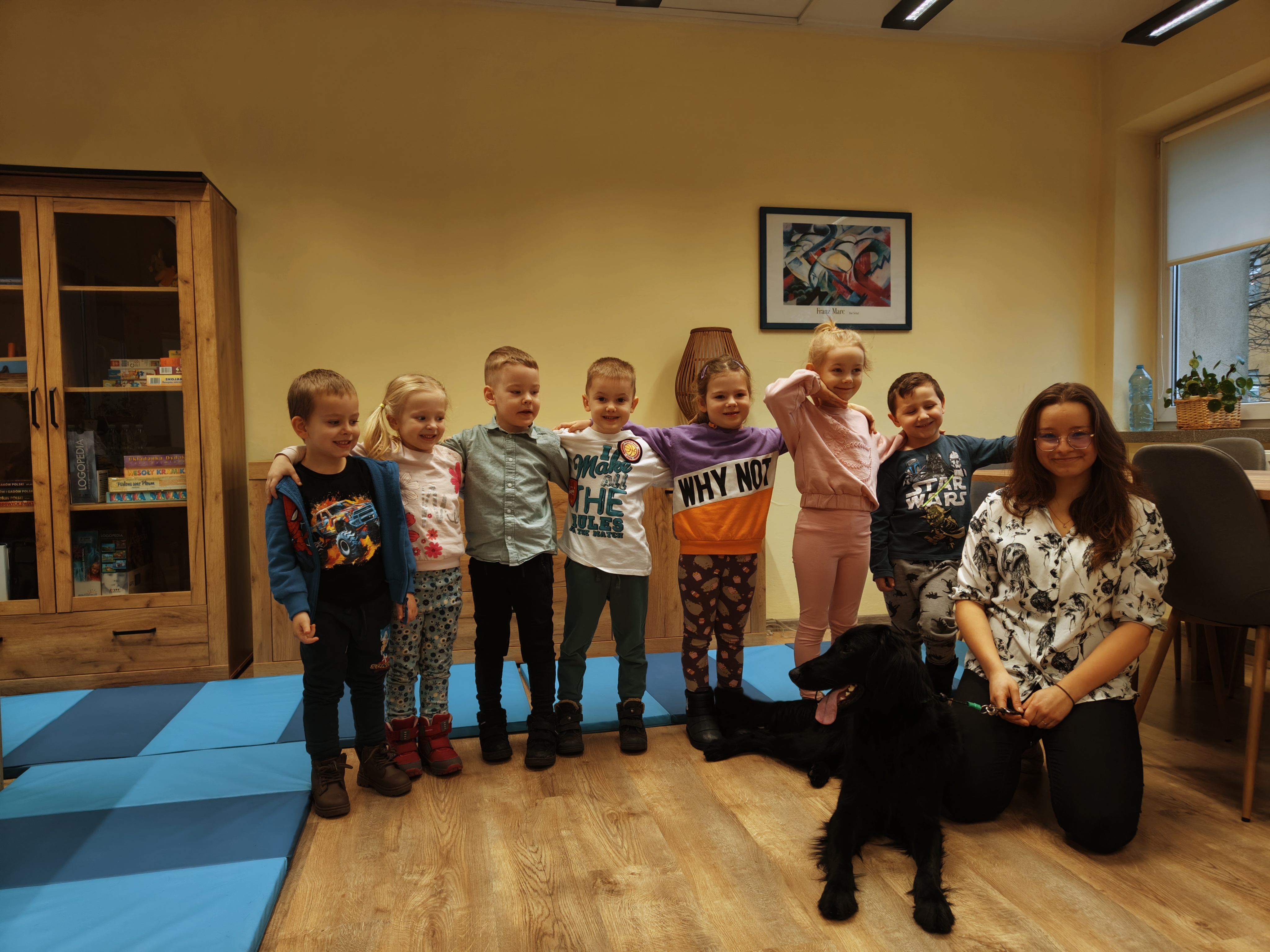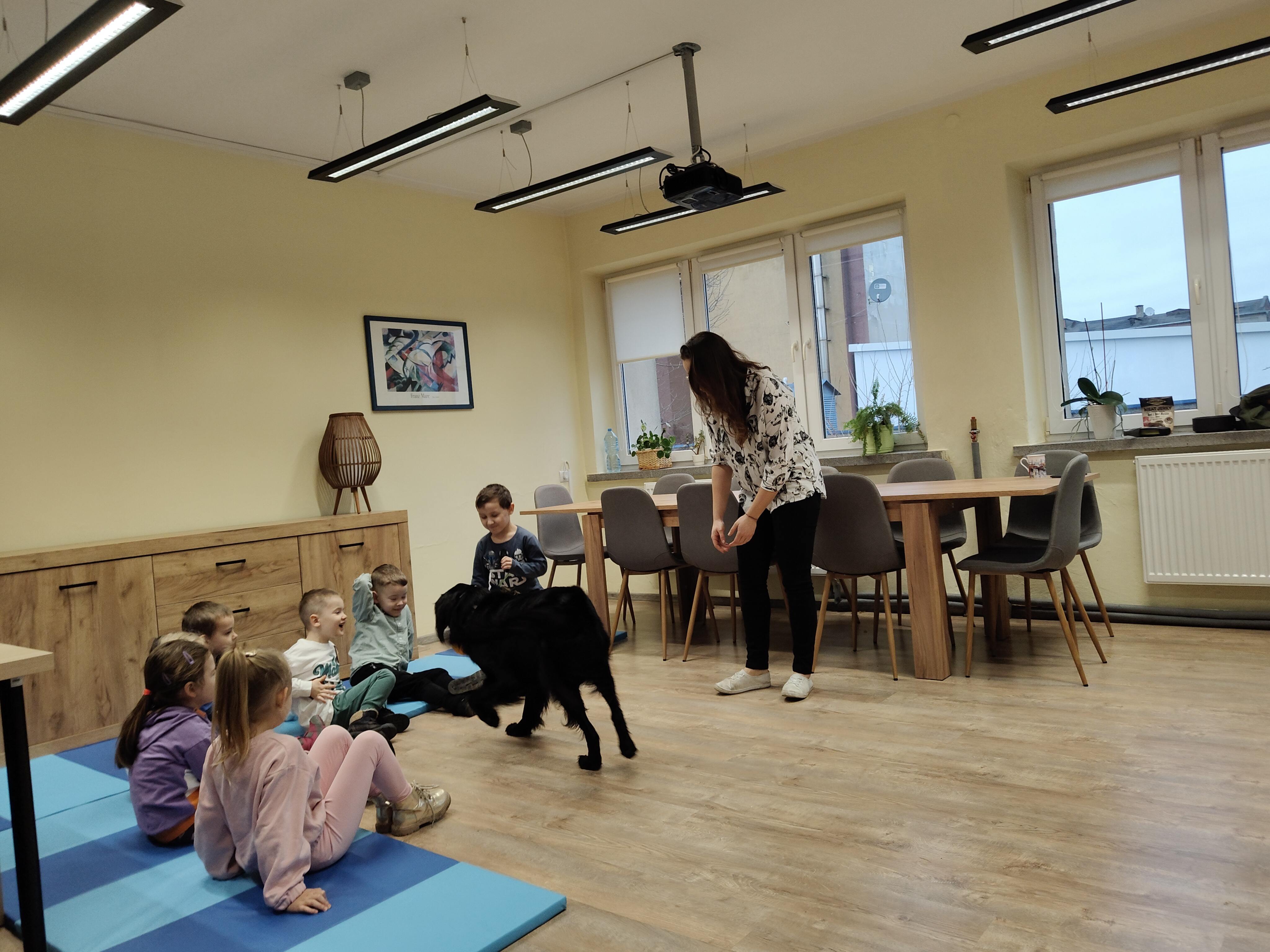 Dziś odwiedziliśmy Poradnię Psychologiczno-Pedagogiczną, gdzie mieliśmy okazję uczestniczyć w wyjątkowych zajęciach z dogoterapii. Podczas spotkania mogliśmy poznać wspaniałe pieski – głaskać je, karmić, bawić się z nimi oraz wybrać się na krótki spacer. Pani prowadząca opowiedziała nam o pracy psa terapeuty oraz zaprezentowała, jakie sztuczki potrafi wykonać pies – byliśmy pod ogromnym wrażeniem! Atmosfera była niezwykle ciepła i przyjazna. Panie w poradni przyjęły nas z uśmiechem i ogromną życzliwością, za co serdecznie dziękujemy. Na zakończenie, po długim spacerze, czekał na nas słodki poczęstunek od Helenki – to był bardzo miły akcent na koniec tak udanego dnia. To było bardzo wartościowe i pełne radości spotkanie. Dziękujemy za zaproszenie!