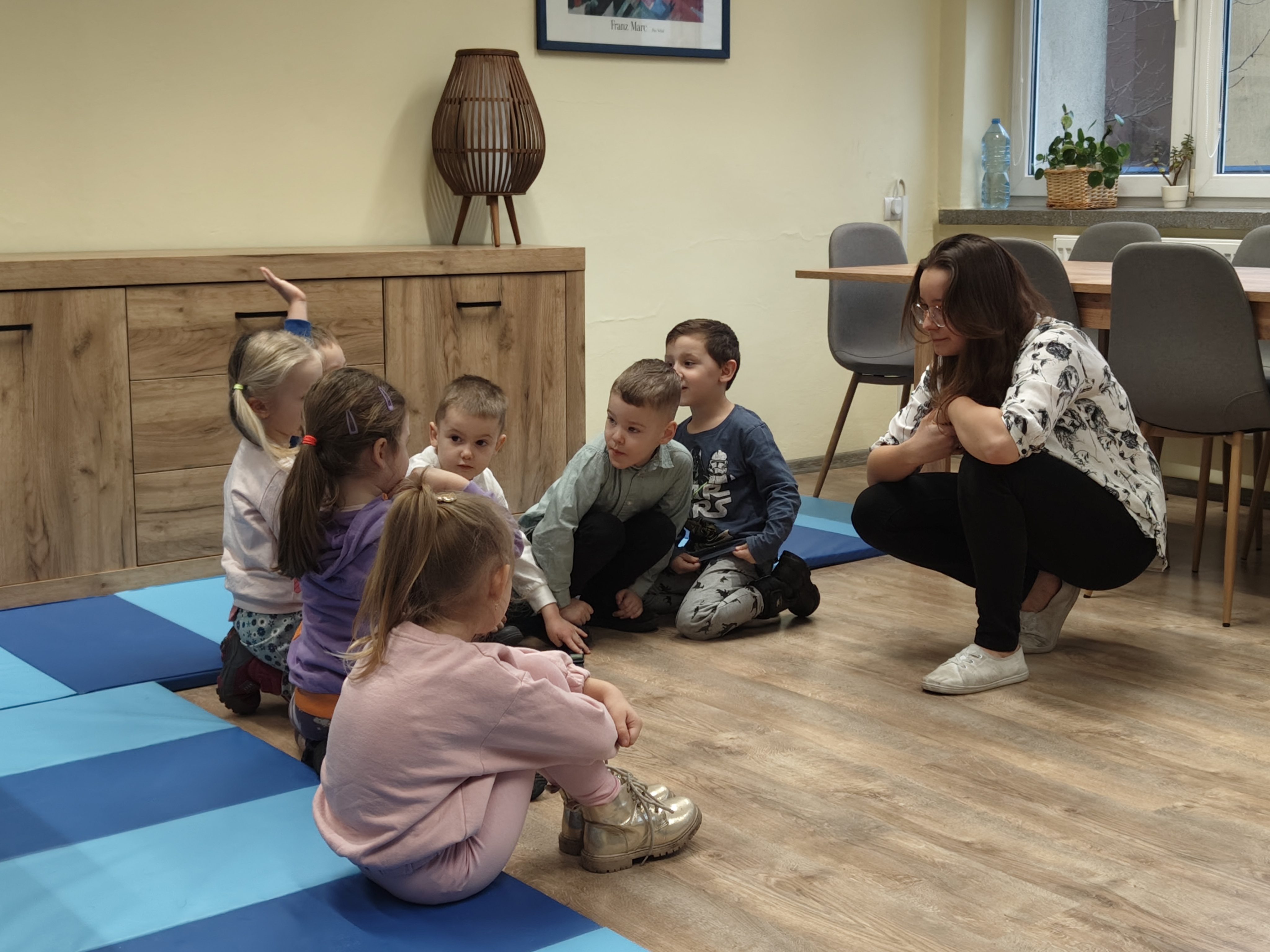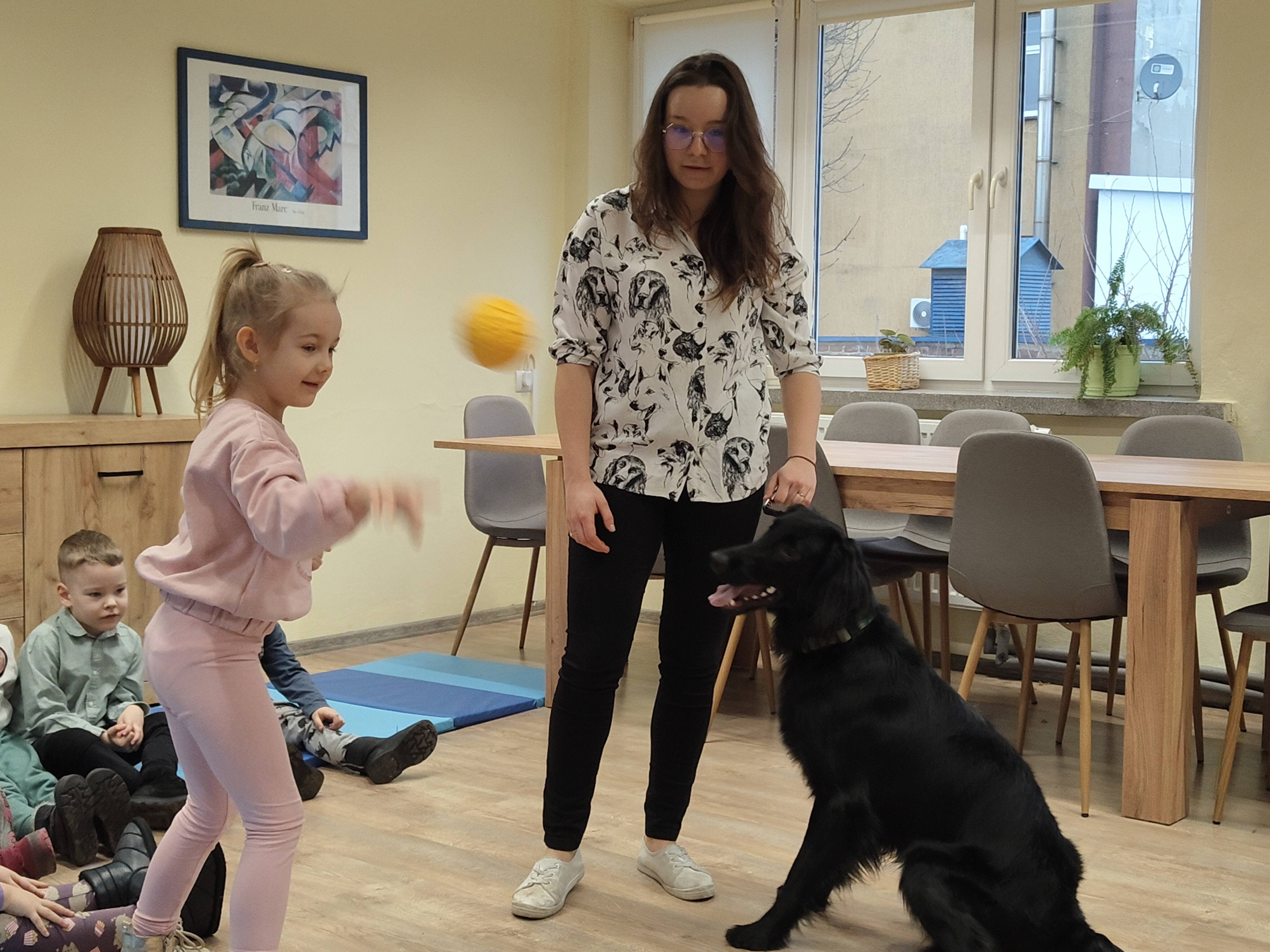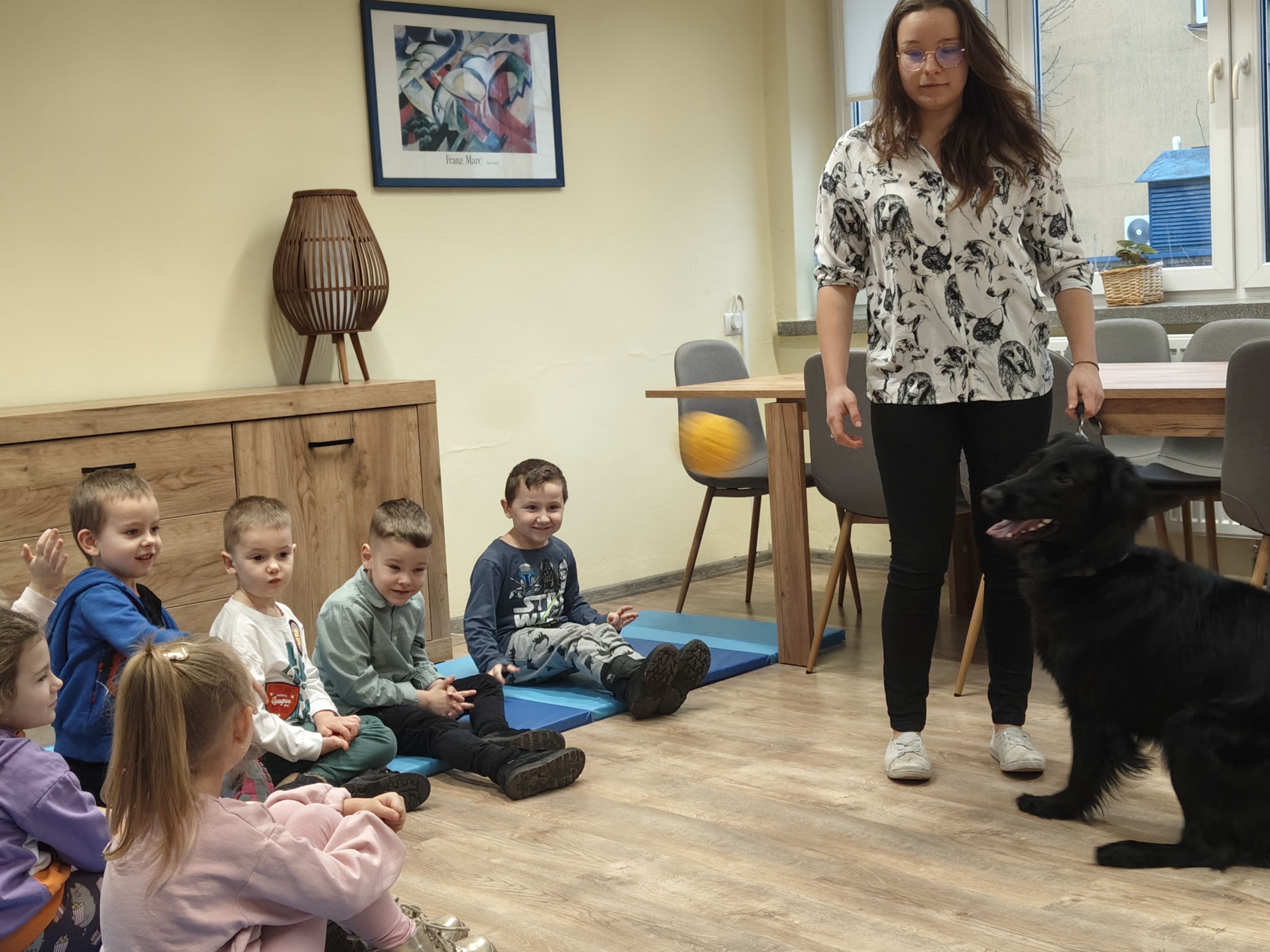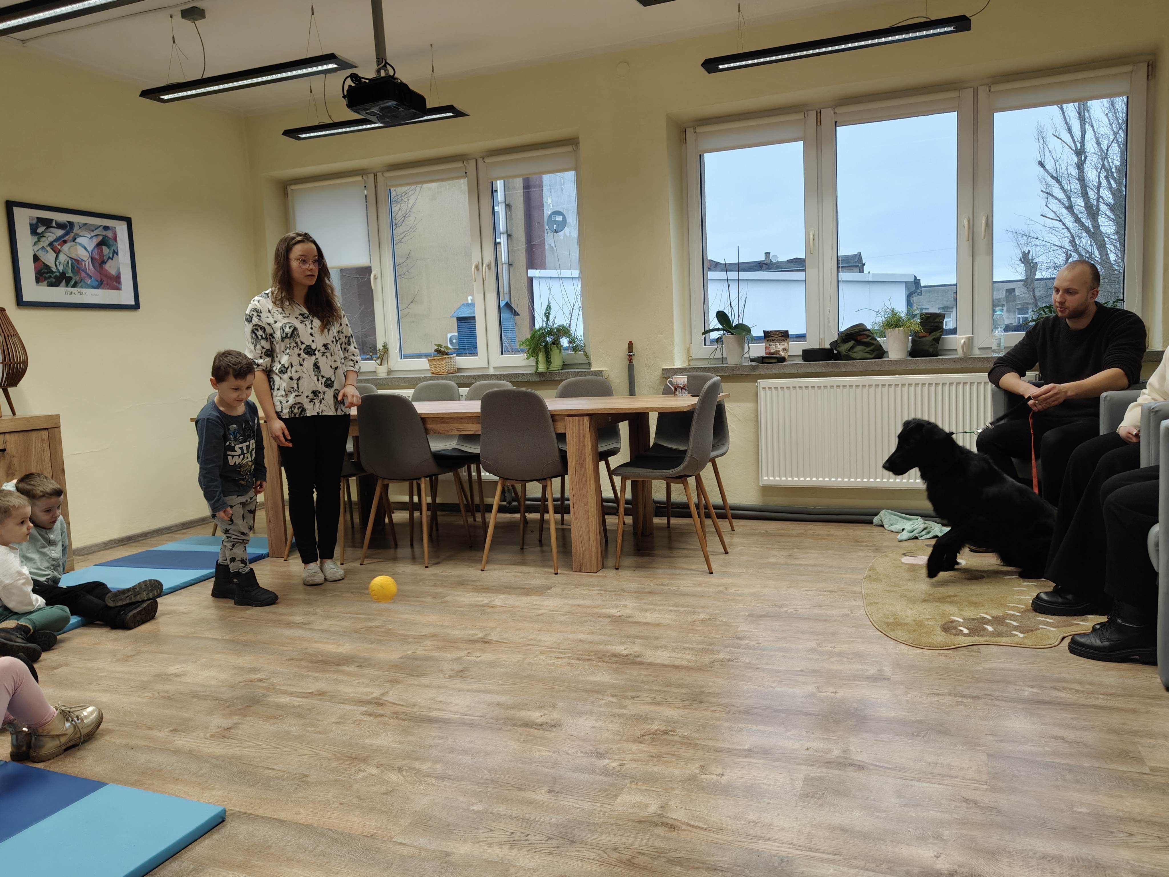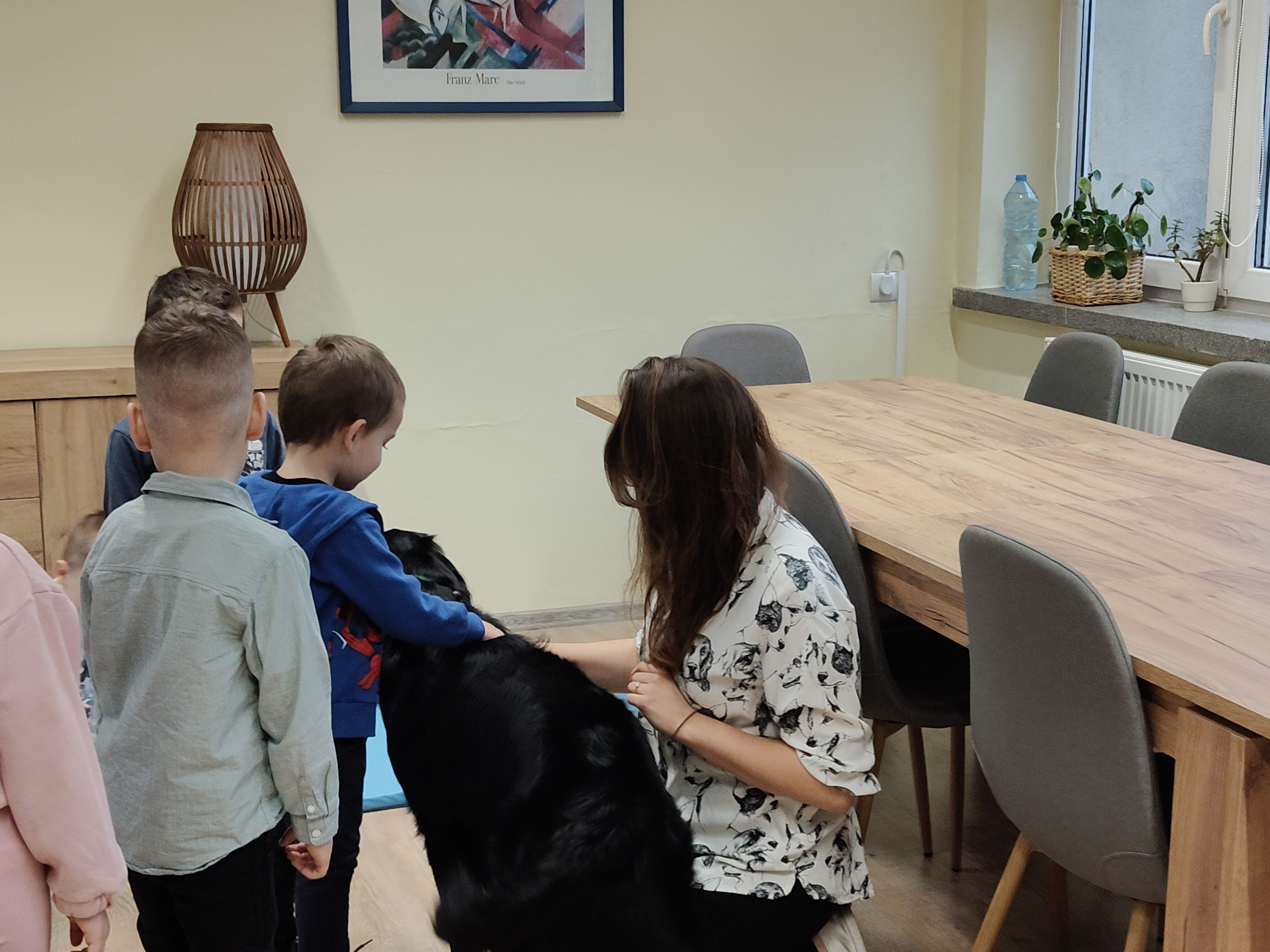 Dziś odwiedziliśmy Poradnię Psychologiczno-Pedagogiczną, gdzie mieliśmy okazję uczestniczyć w wyjątkowych zajęciach z dogoterapii. Podczas spotkania mogliśmy poznać wspaniałe pieski – głaskać je, karmić, bawić się z nimi oraz wybrać się na krótki spacer. Pani prowadząca opowiedziała nam o pracy psa terapeuty oraz zaprezentowała, jakie sztuczki potrafi wykonać pies – byliśmy pod ogromnym wrażeniem! Atmosfera była niezwykle ciepła i przyjazna. Panie w poradni przyjęły nas z uśmiechem i ogromną życzliwością, za co serdecznie dziękujemy. Na zakończenie, po długim spacerze, czekał na nas słodki poczęstunek od Helenki – to był bardzo miły akcent na koniec tak udanego dnia. To było bardzo wartościowe i pełne radości spotkanie. Dziękujemy za zaproszenie!
