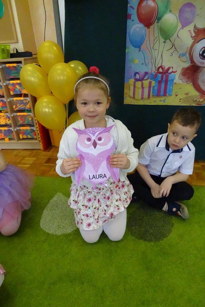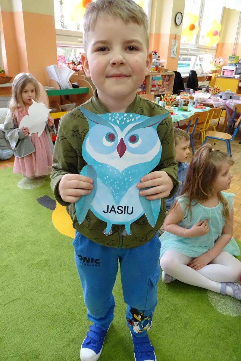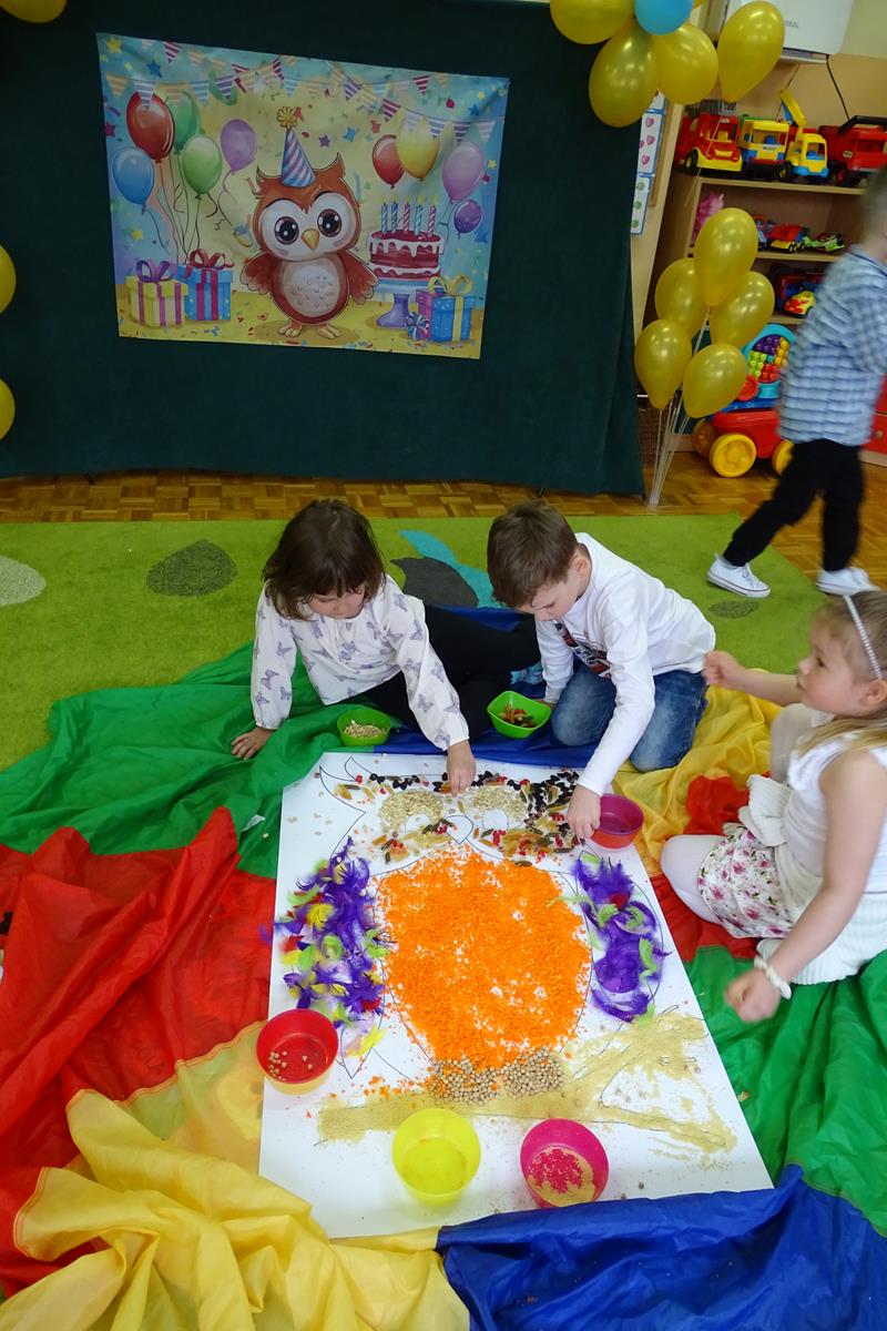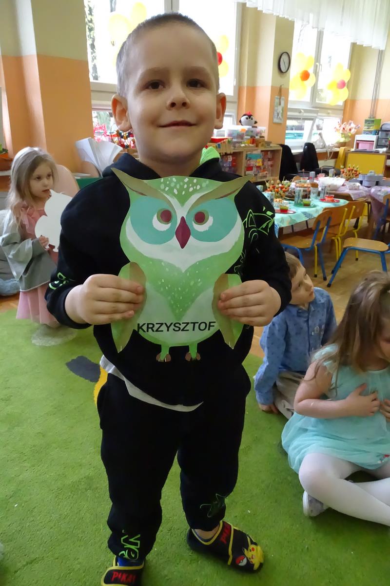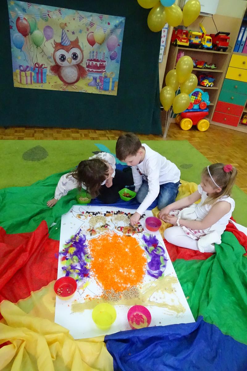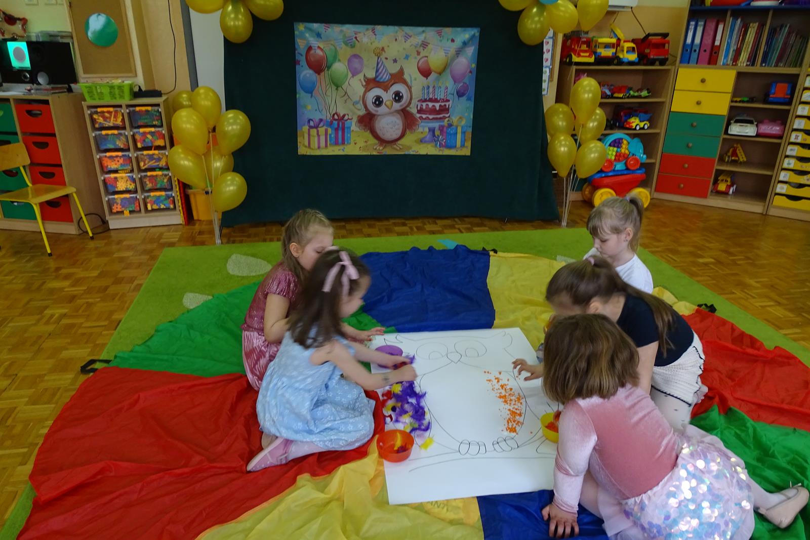 20 kwietnia w naszej sali zapanowała wyjątkowa atmosfera – świętowaliśmy Dzień Sowy, czyli urodziny naszej grupy „Sówki”! Był to dzień pełen radości, uśmiechów i wspólnego bycia razem. Dzieci przyszły odświętnie ubrane, co dodało wydarzeniu uroczystego charakteru. Ogromną niespodziankę przygotowali Rodzice – stoły wypełniły się pysznymi słodkościami i zdrowymi przekąskami, za co serdecznie dziękujemy!!! ;) Nie zabrakło także wspaniałych aktywności. Przedszkolaki z zaangażowaniem szukały sówek ze swoimi imionami, utrwalając przy tym czytanie globalne. Były radosne pląsy, zabawy ruchowe przy muzyce oraz gry integracyjne, które jeszcze bardziej zbliżyły naszą grupę. Wspólnie stworzyliśmy również dużą, sensoryczną sowę – symbol naszej grupy, która będzie przypominać nam o tym wyjątkowym dniu.